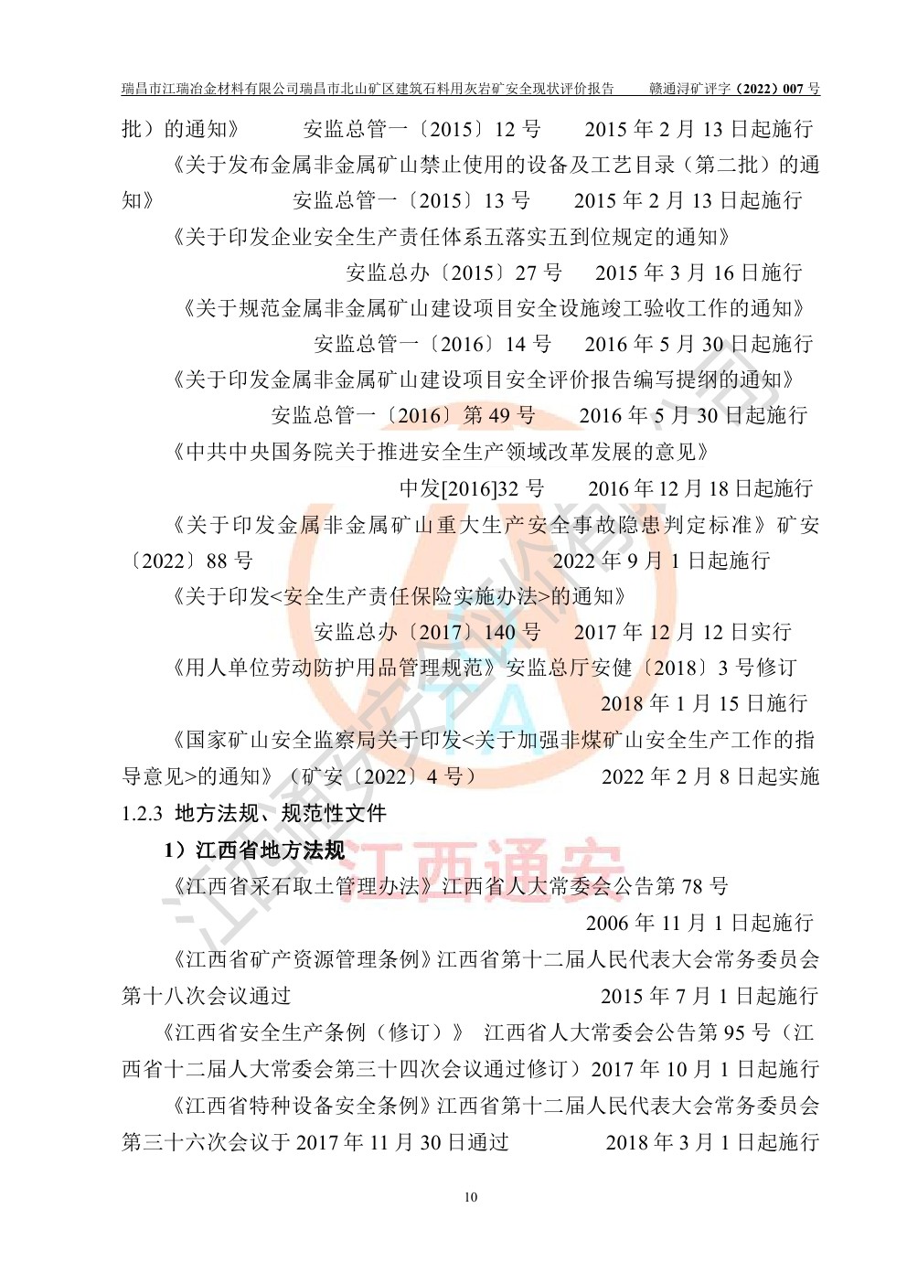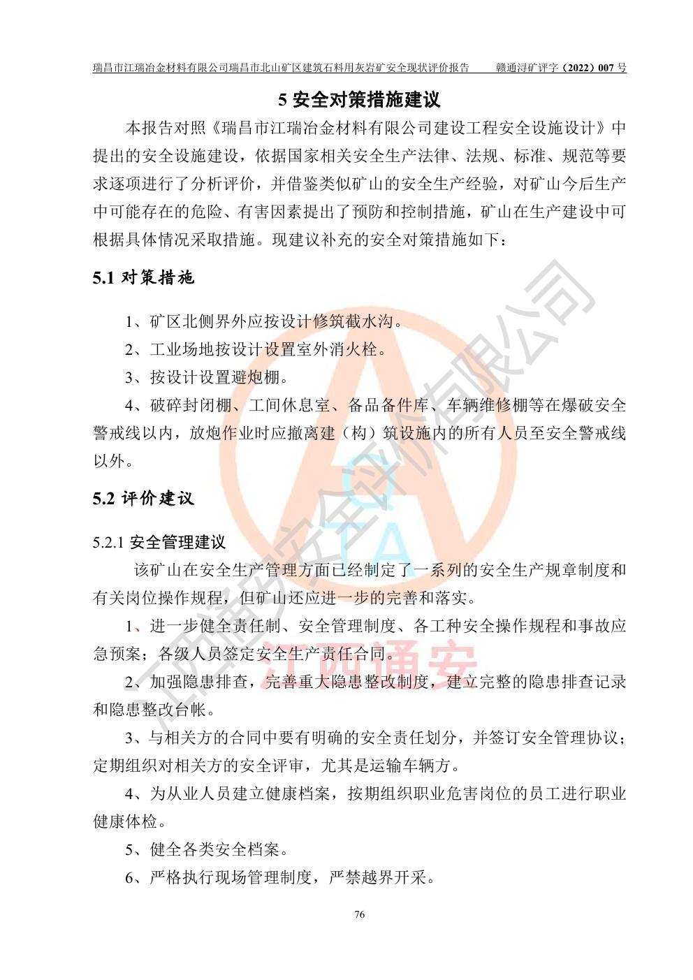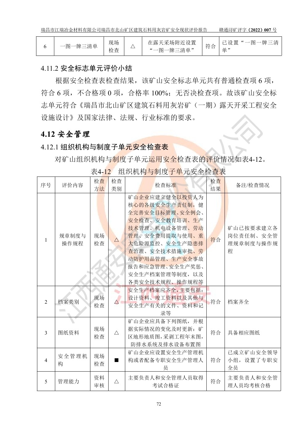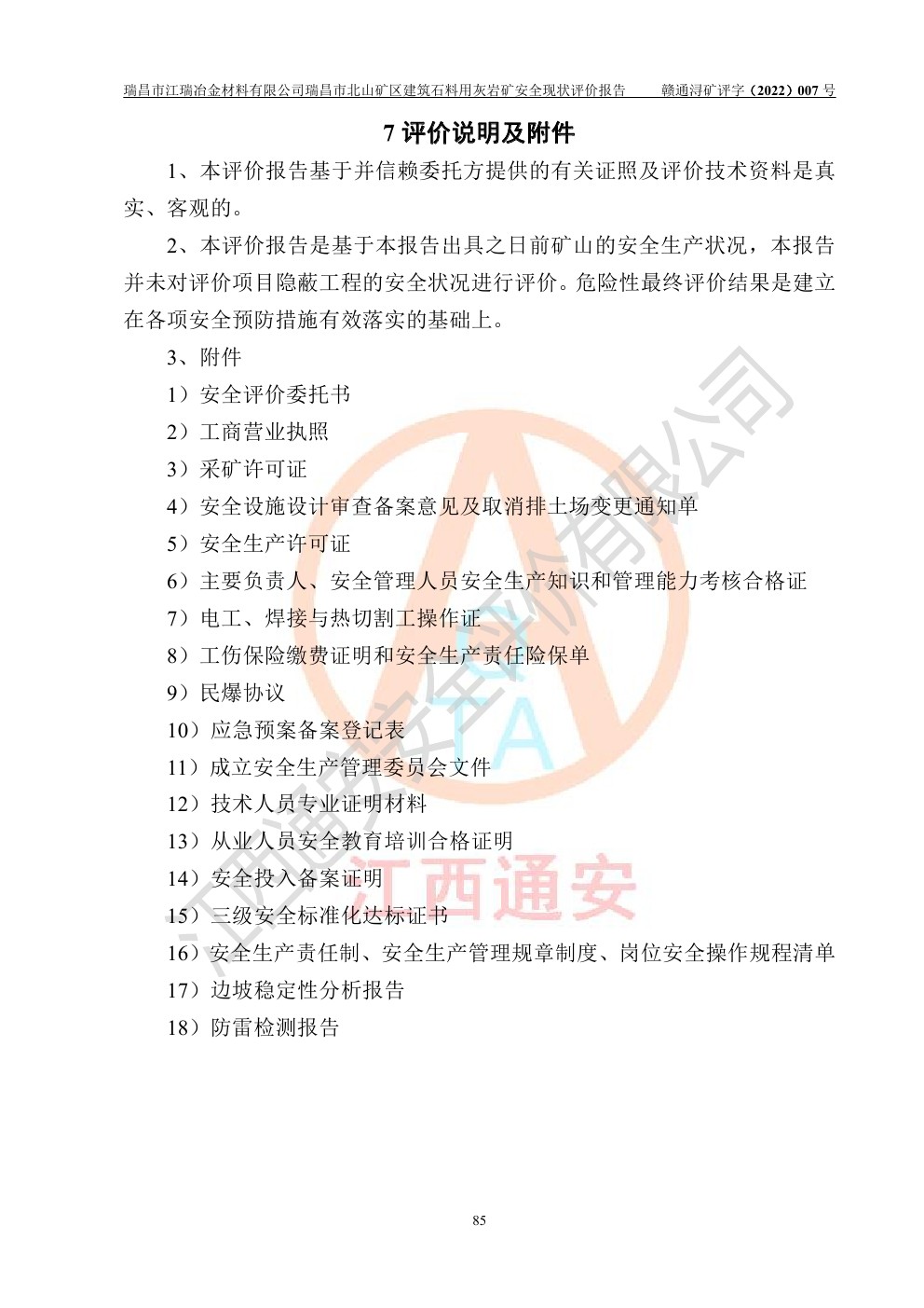 瑞昌市江瑞冶金材料有限公司瑞昌市北山礦區(qū)建筑石料用灰?guī)r礦安全現(xiàn)狀評價