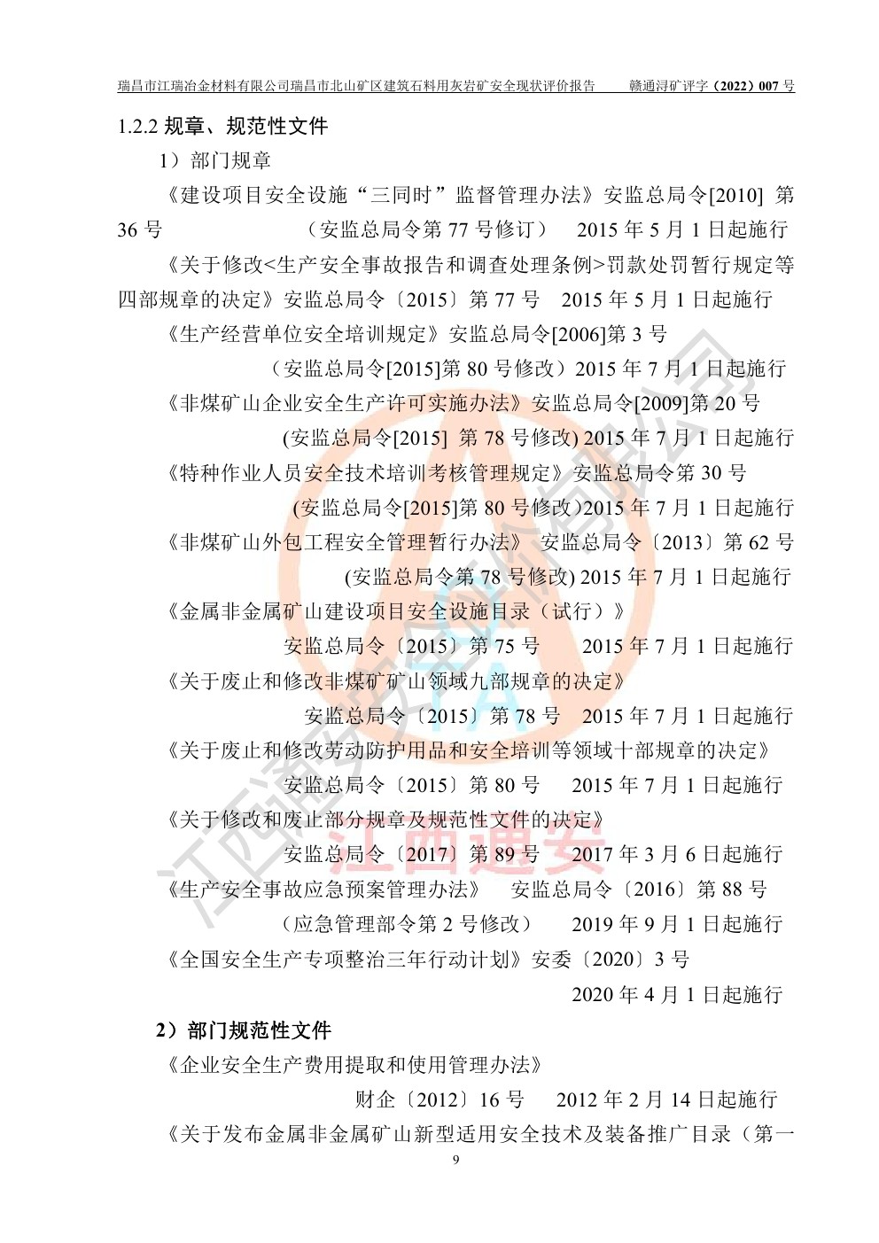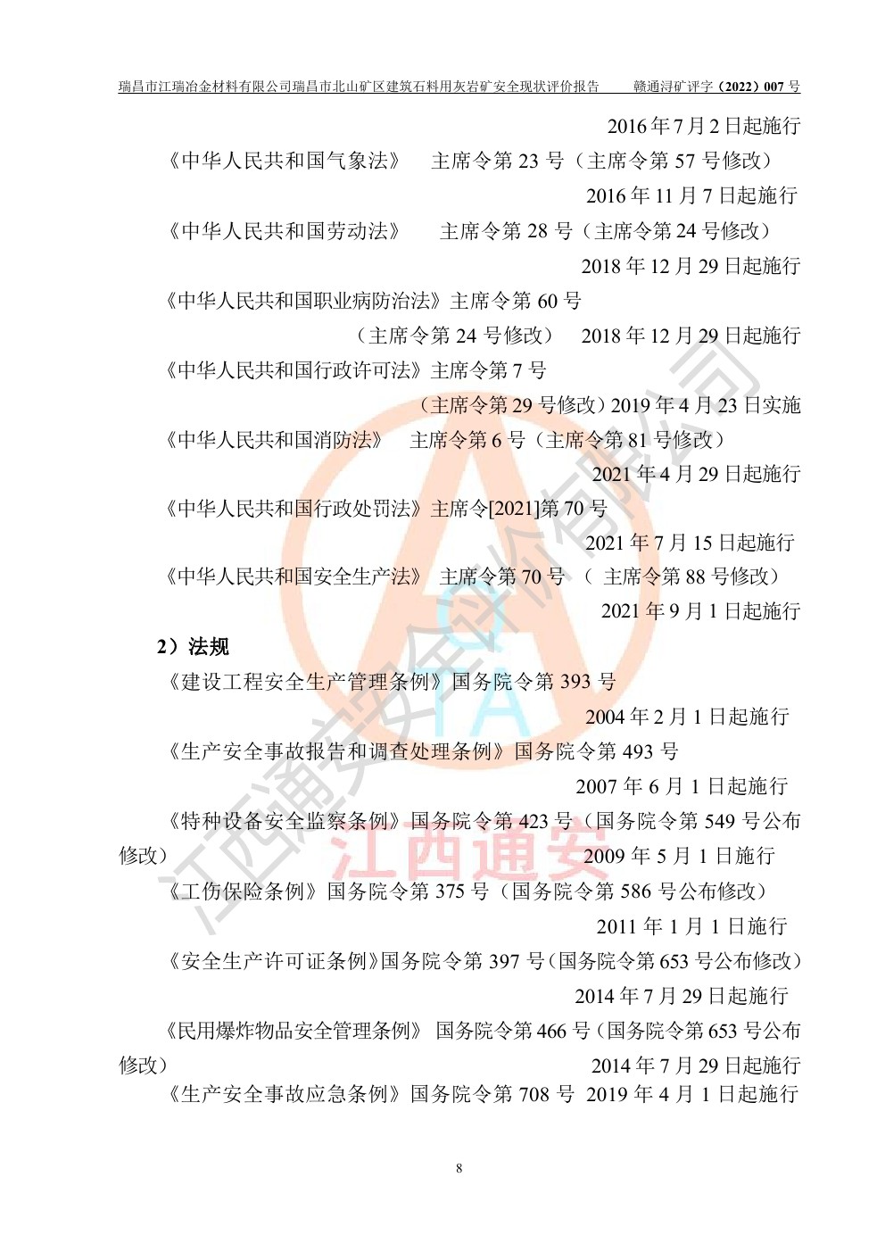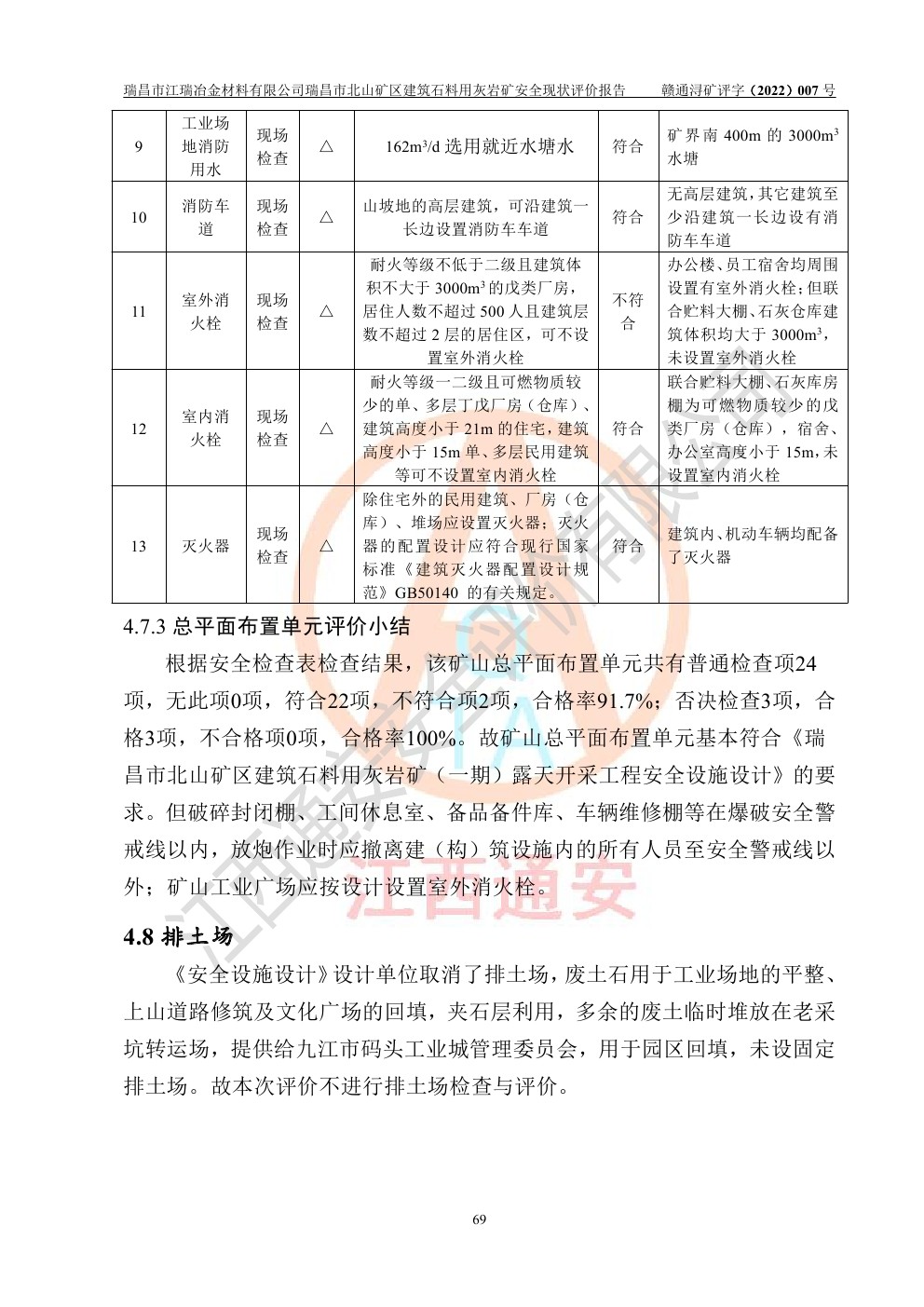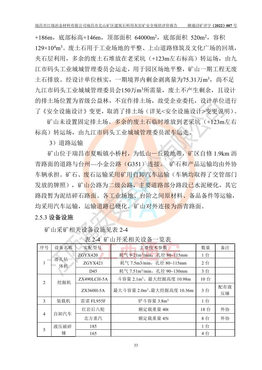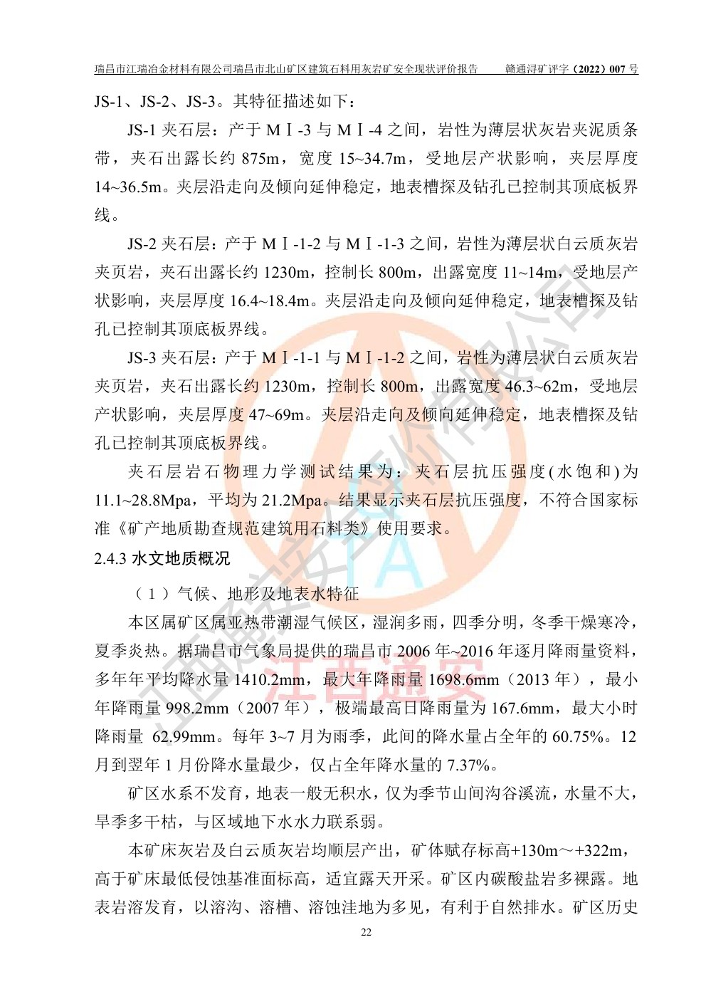 瑞昌市江瑞冶金材料有限公司瑞昌市北山礦區(qū)建筑石料用灰?guī)r礦安全現(xiàn)狀評價