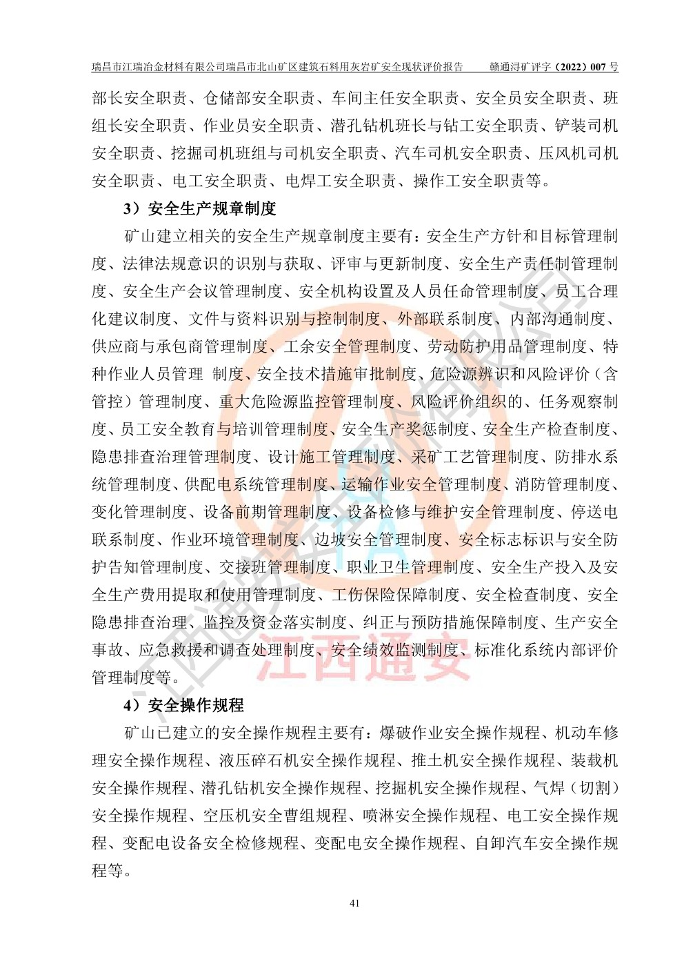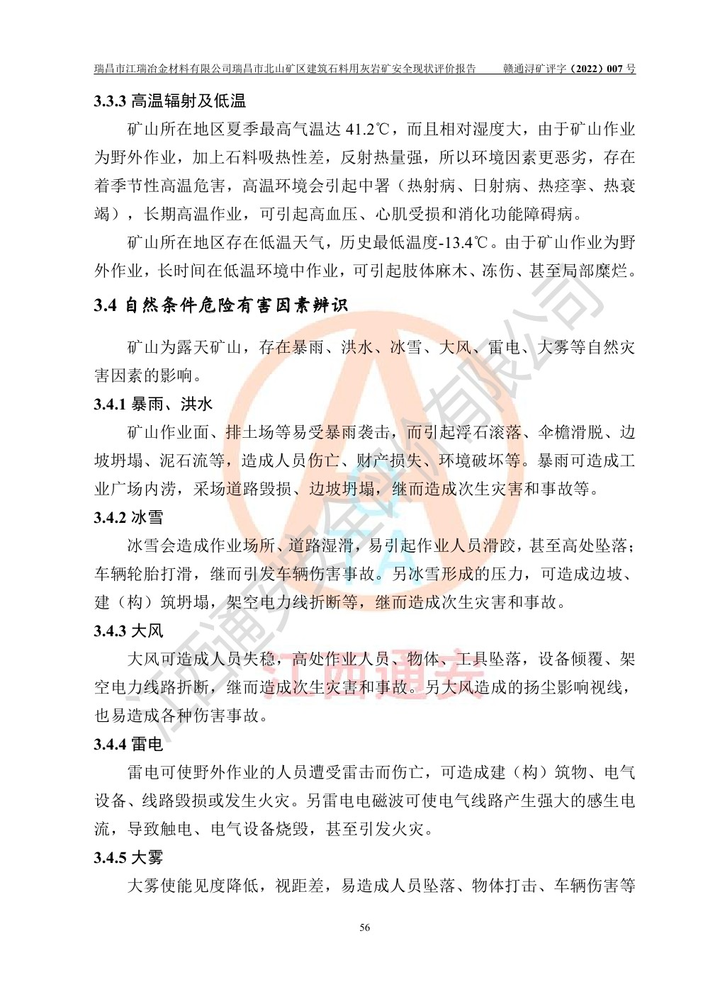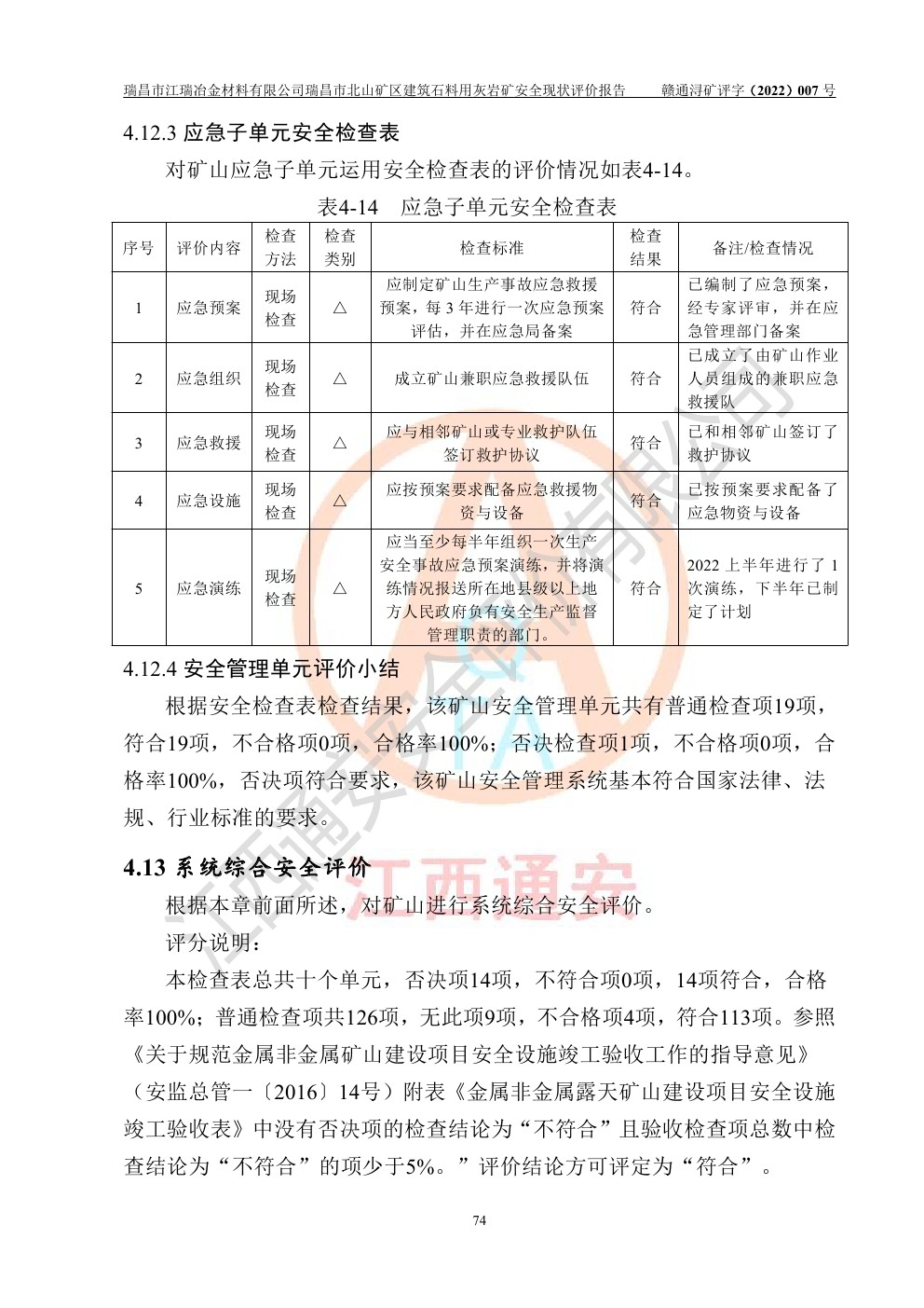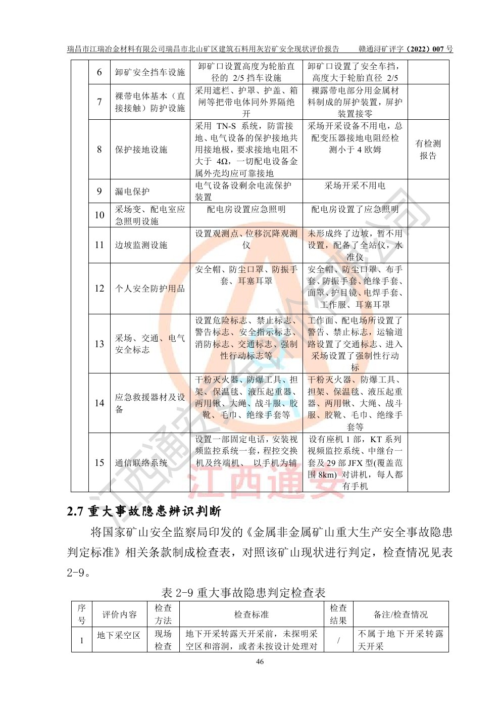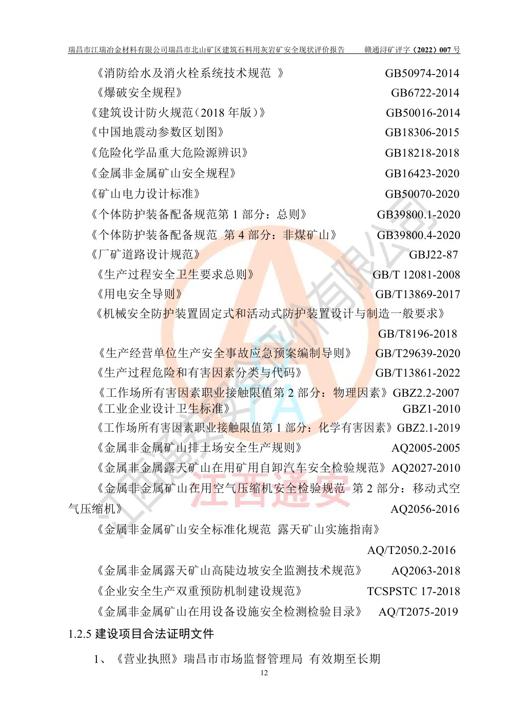 瑞昌市江瑞冶金材料有限公司瑞昌市北山礦區(qū)建筑石料用灰?guī)r礦安全現(xiàn)狀評價