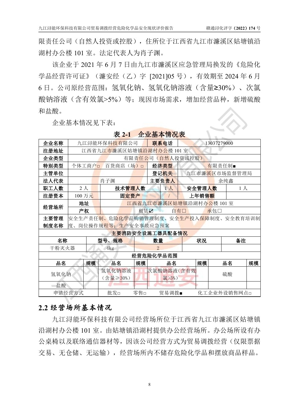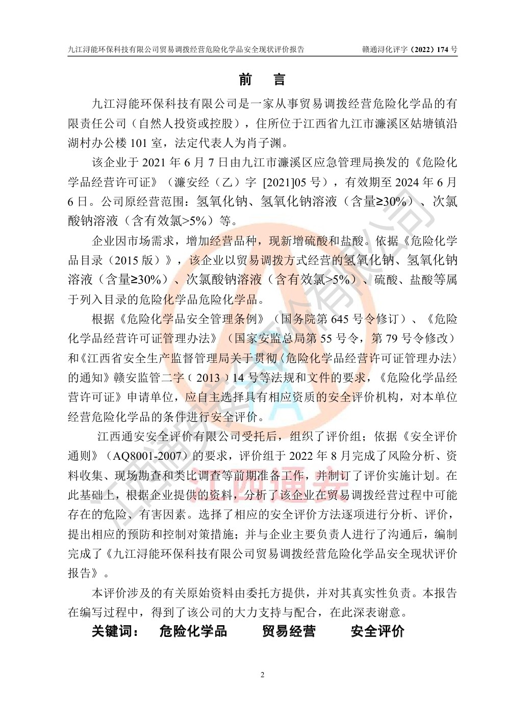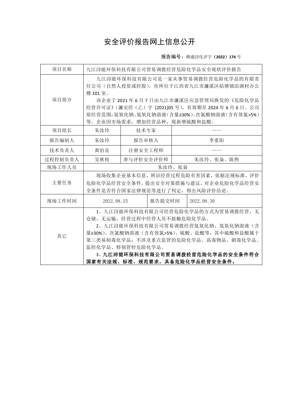 九江潯能**科技有限公司貿(mào)易調(diào)撥經(jīng)營危險化學(xué)品安全現(xiàn)狀評價報告