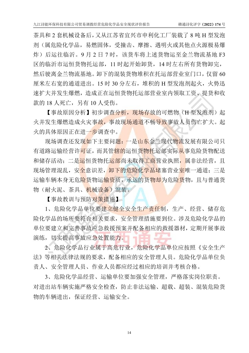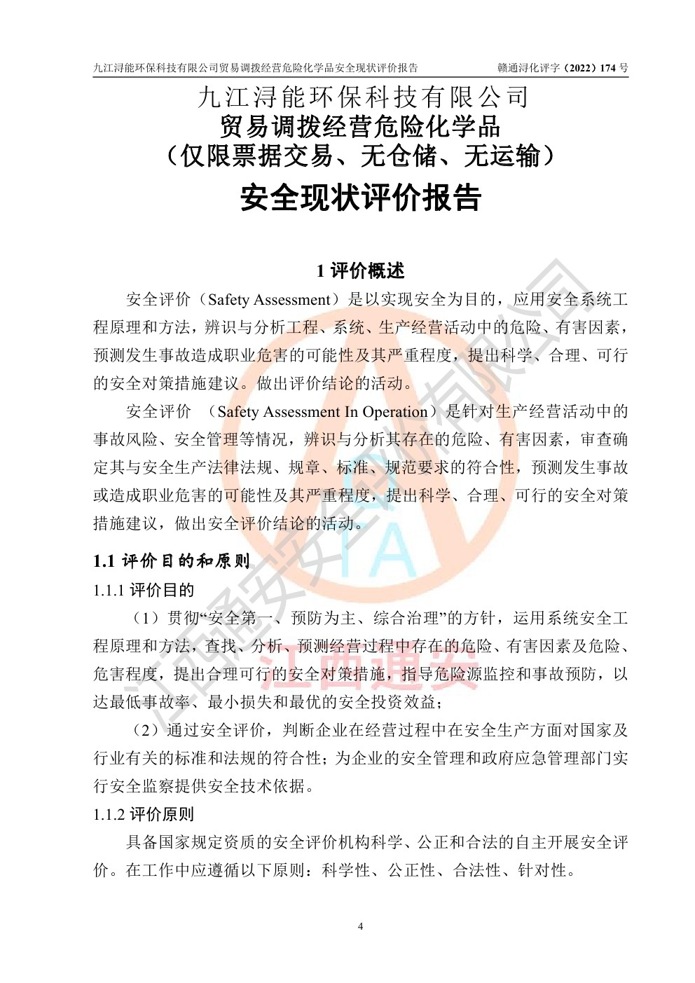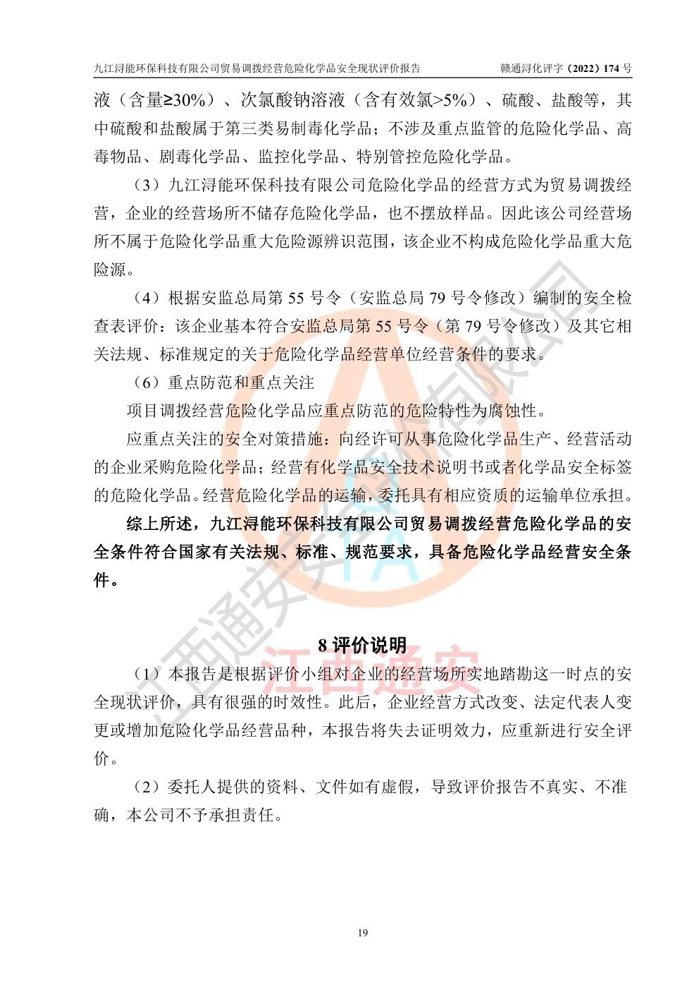 九江潯能**科技有限公司貿(mào)易調(diào)撥經(jīng)營危險化學(xué)品安全現(xiàn)狀評價報告