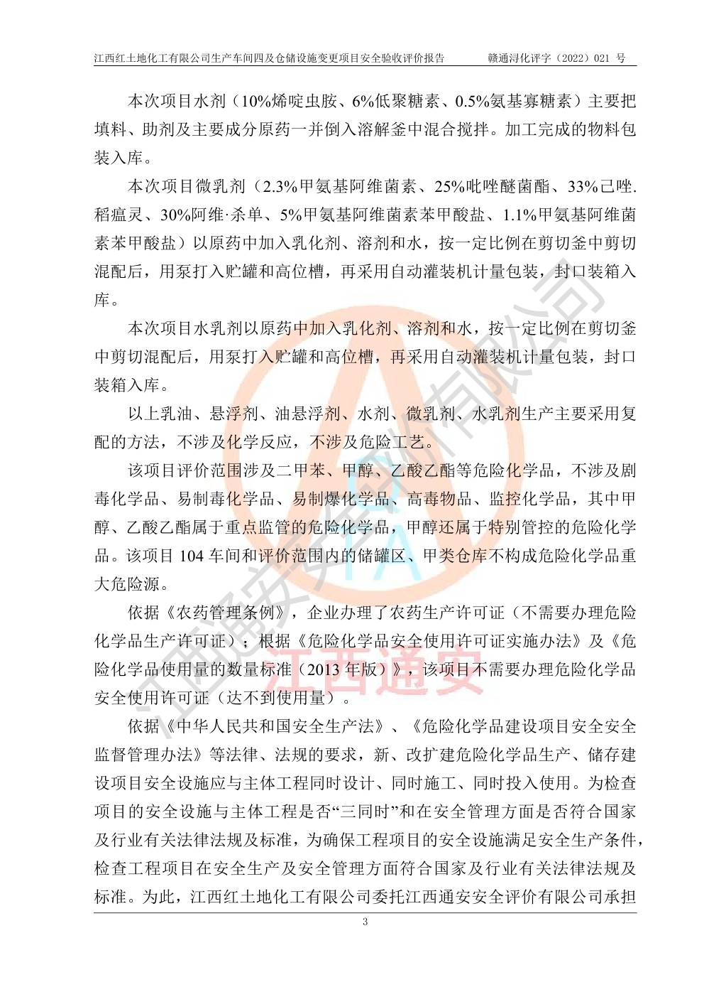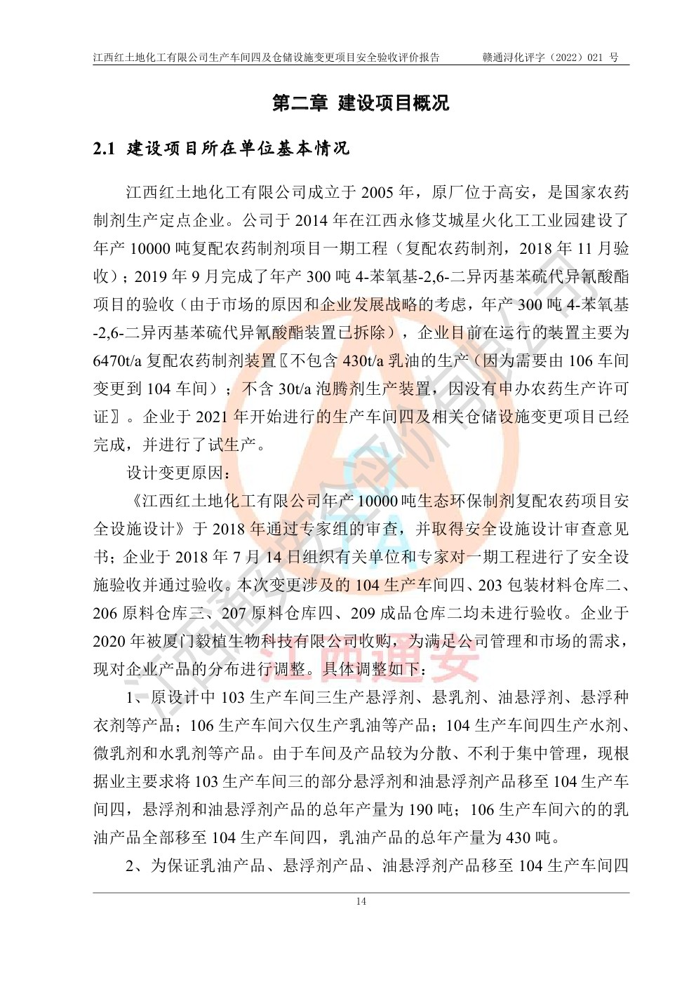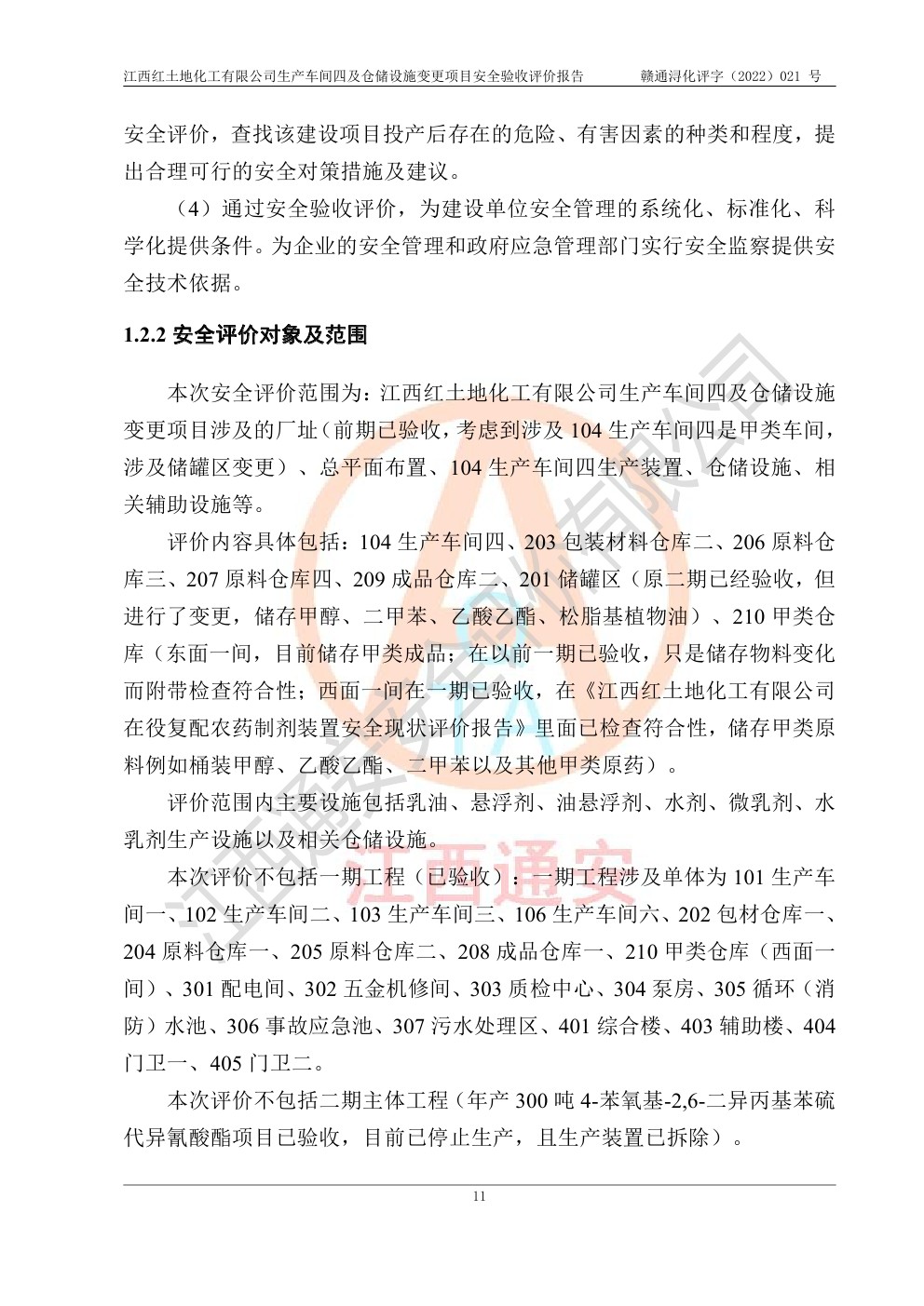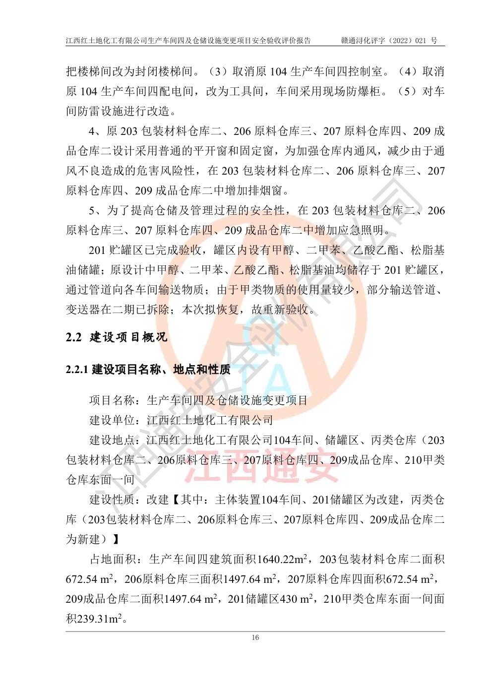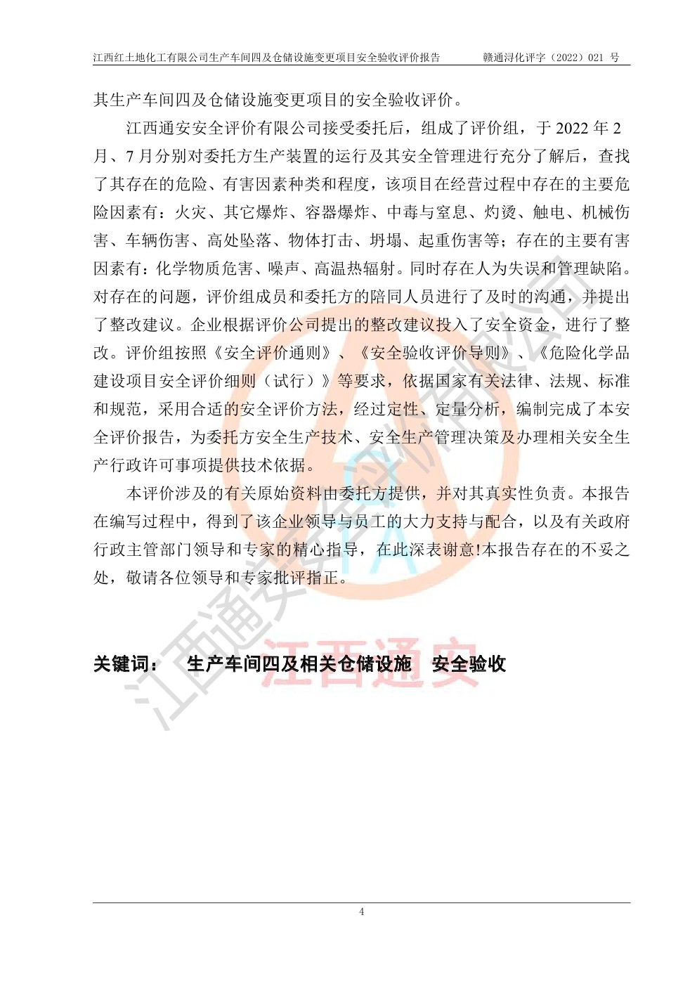 江西紅土地化工有限公司生產車間四及倉儲設施變更項目安全驗收評價報告