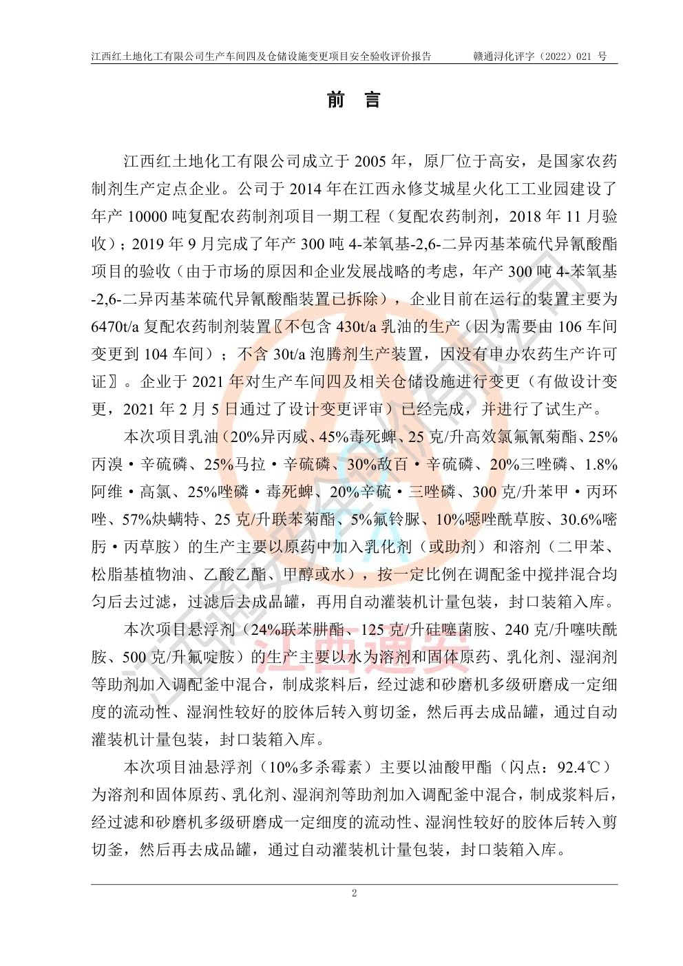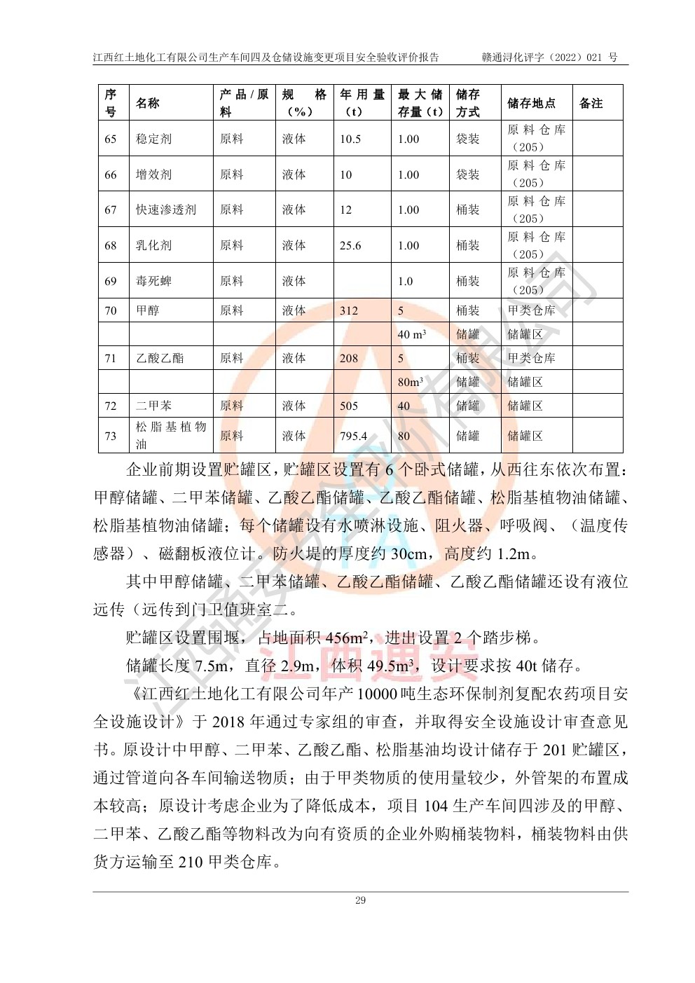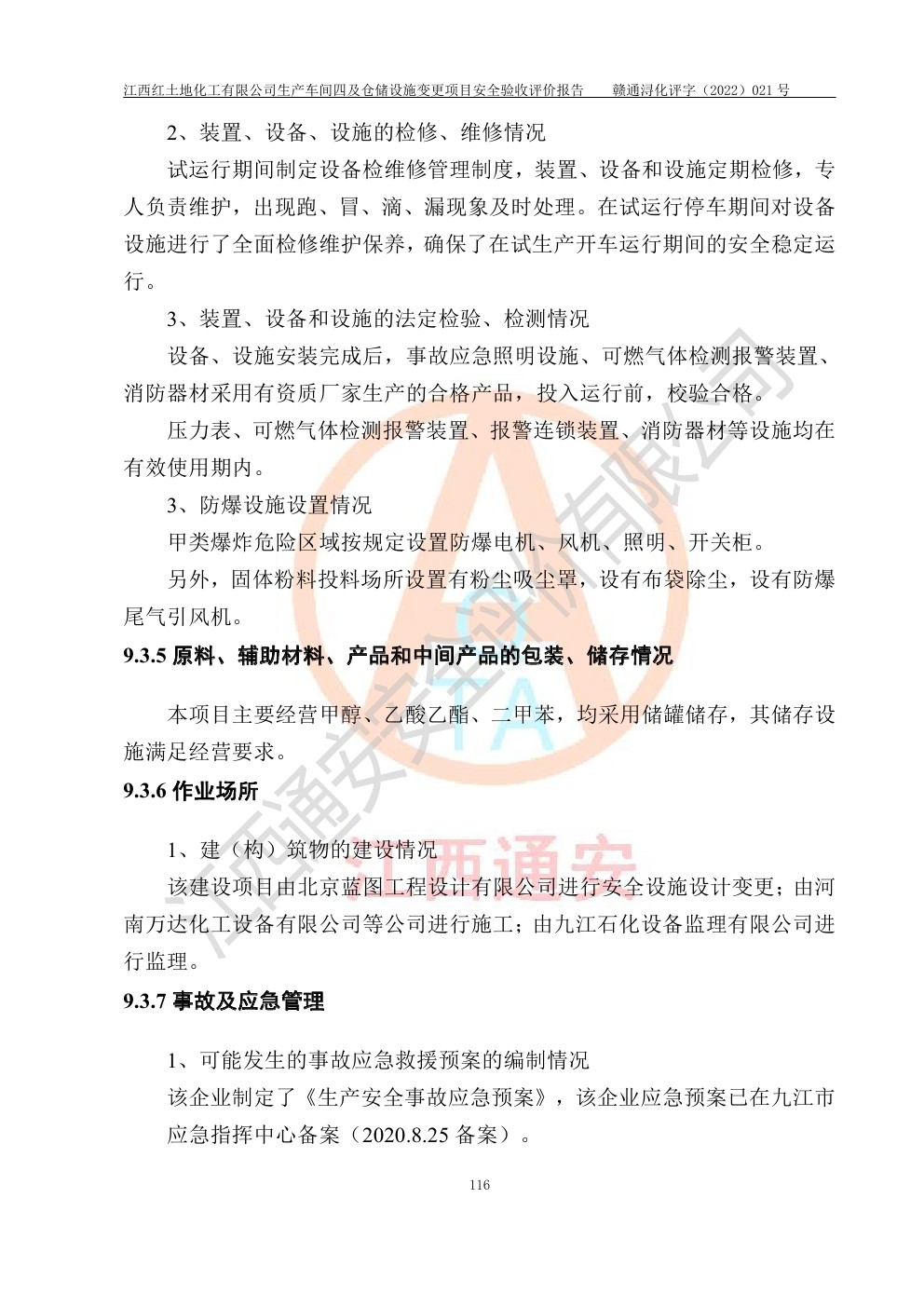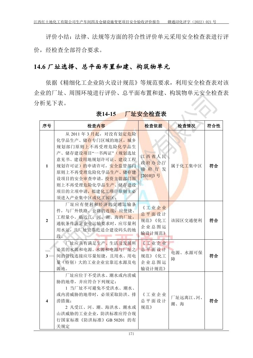 江西紅土地化工有限公司生產車間四及倉儲設施變更項目安全驗收評價報告