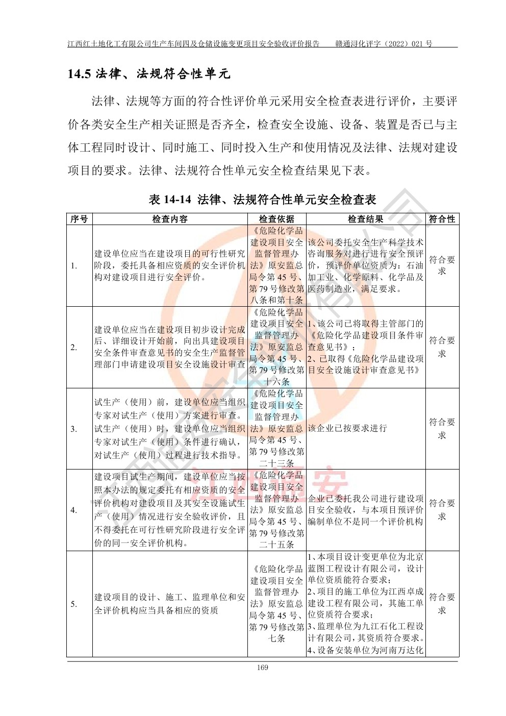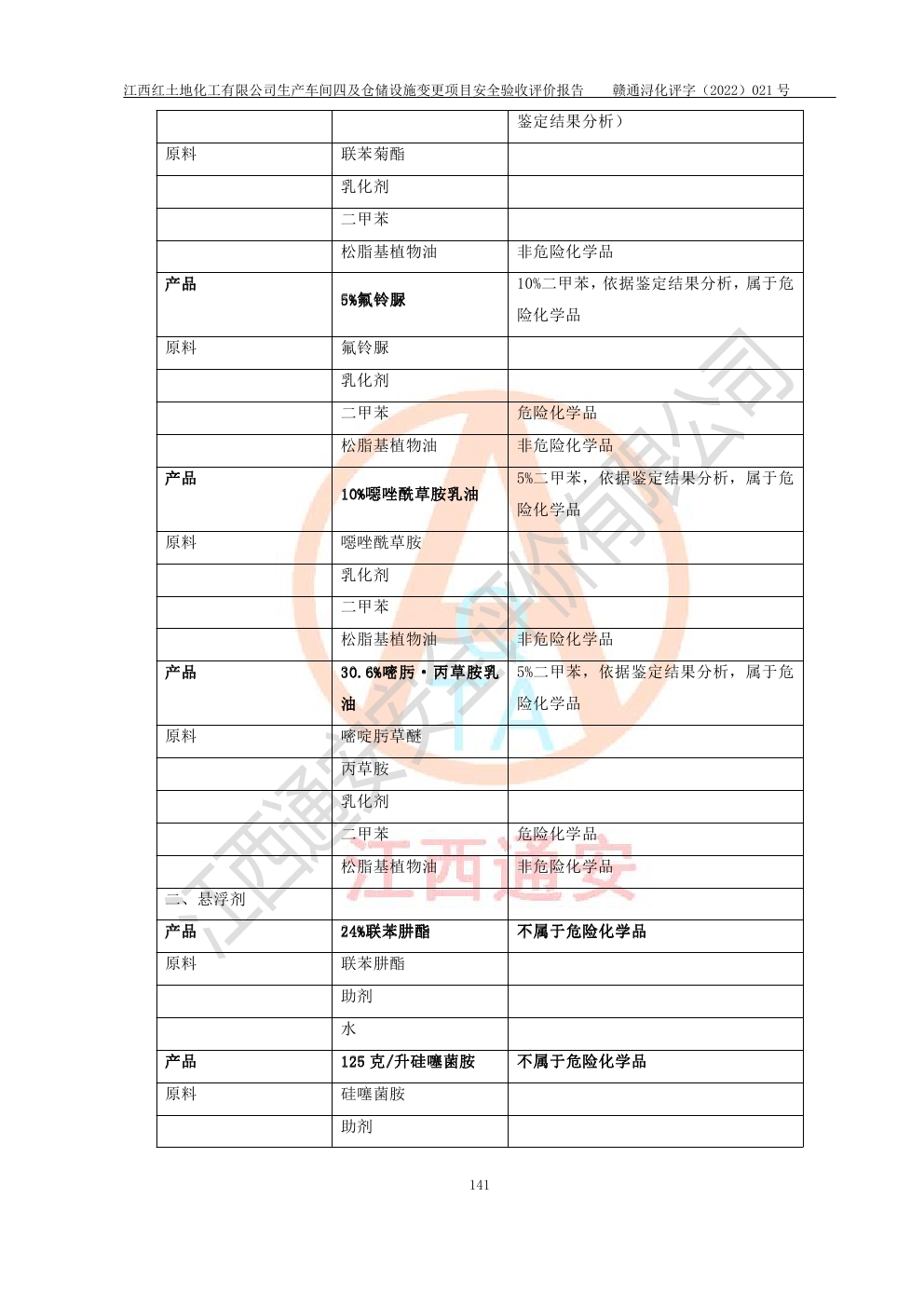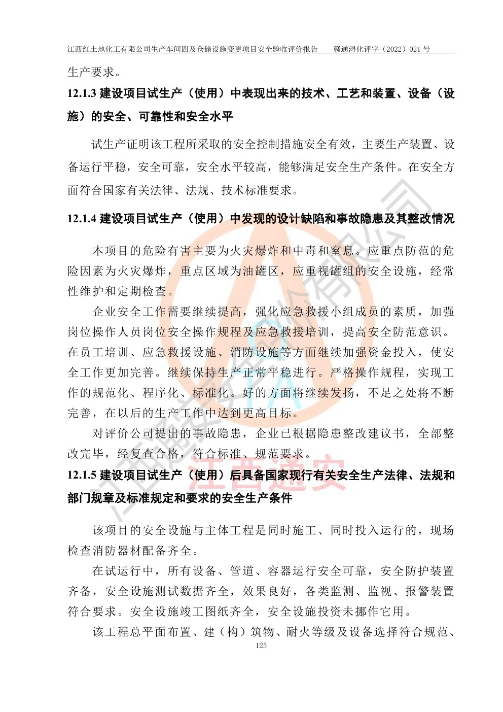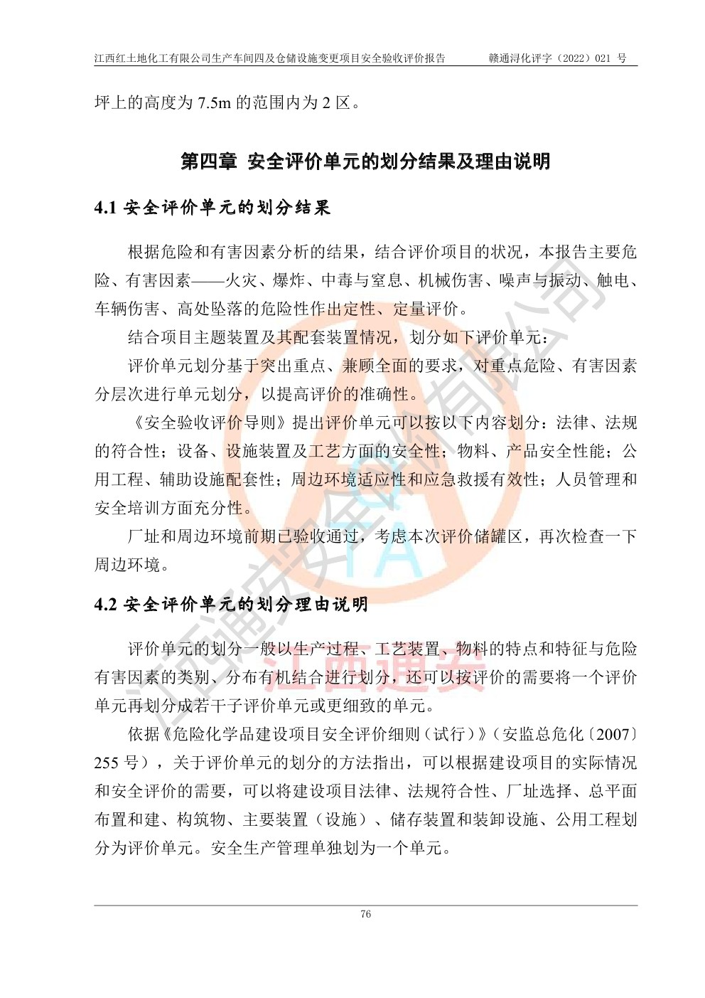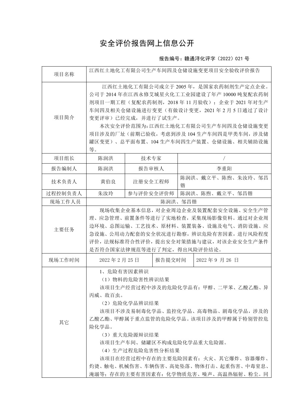 江西紅土地化工有限公司生產車間四及倉儲設施變更項目安全驗收評價報告