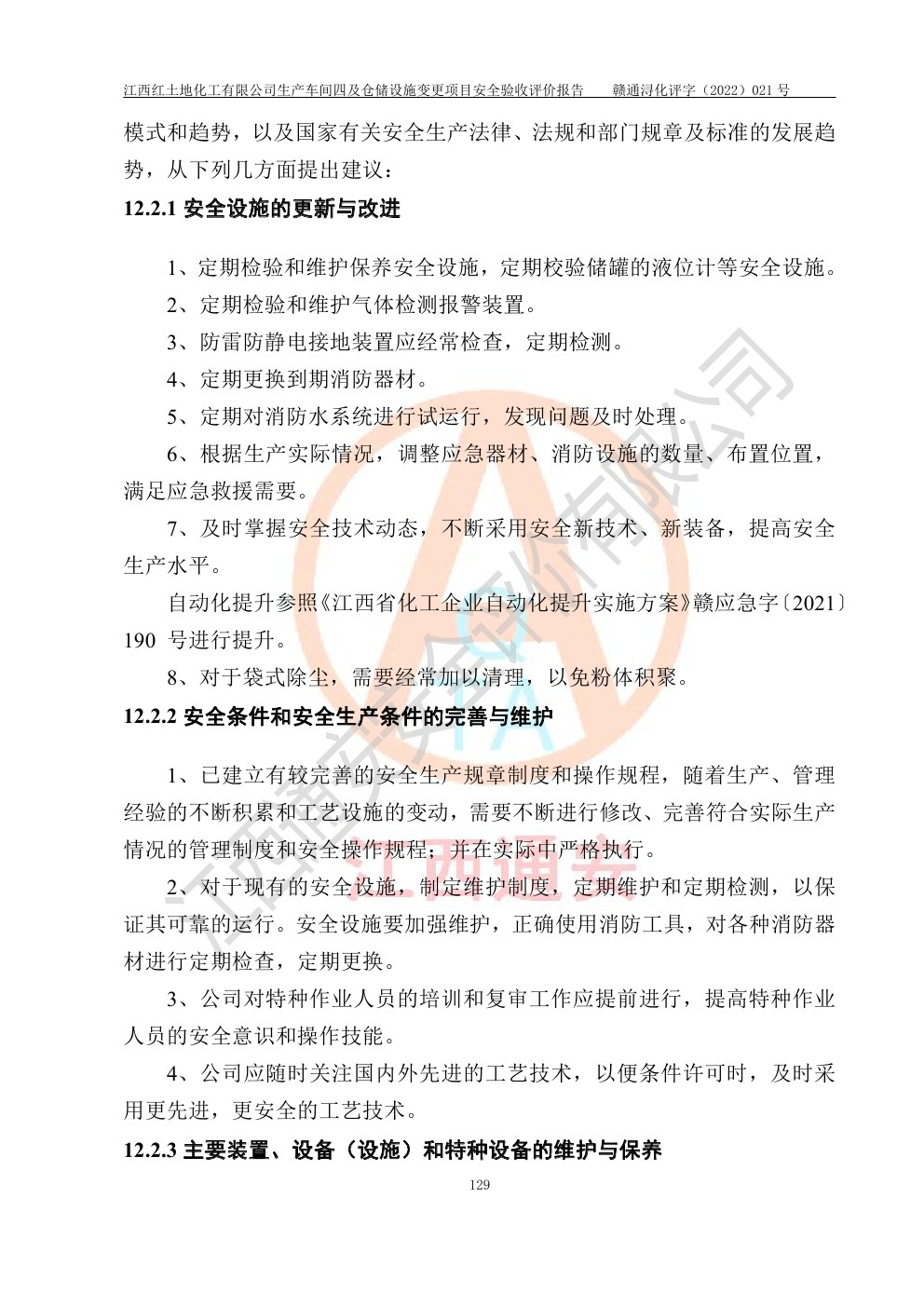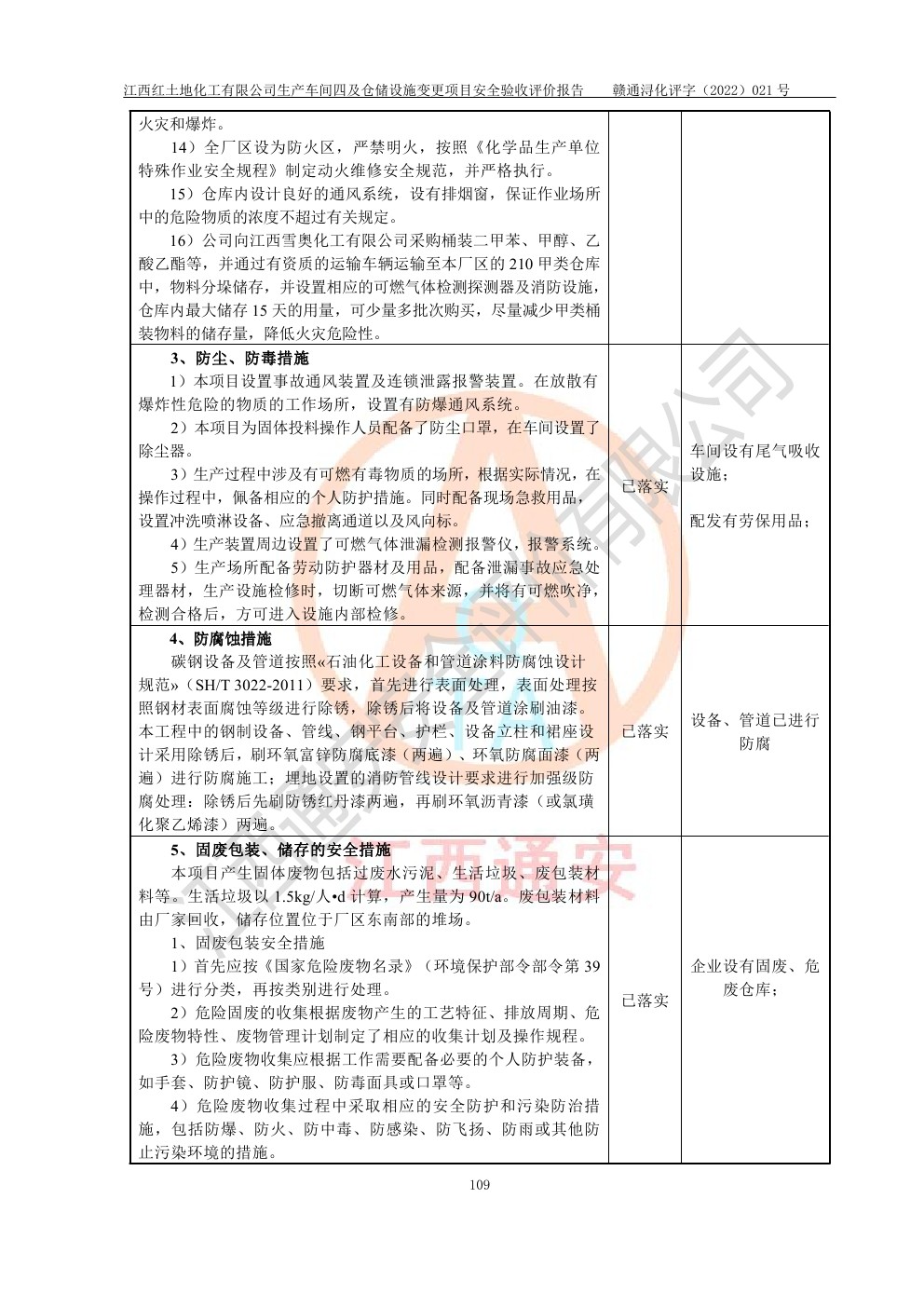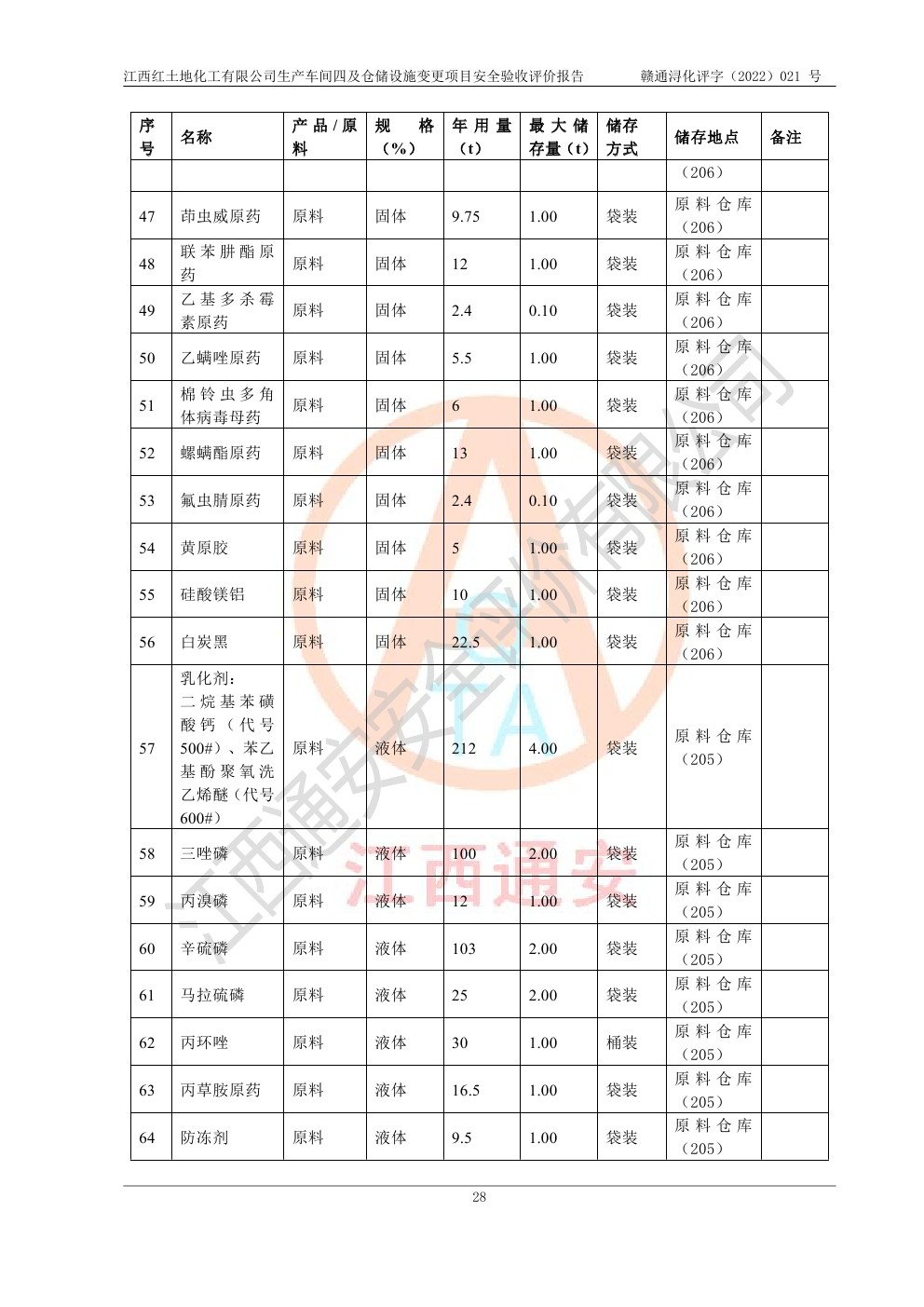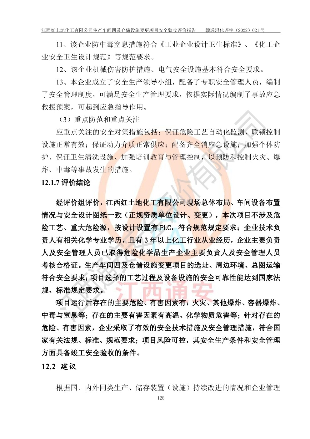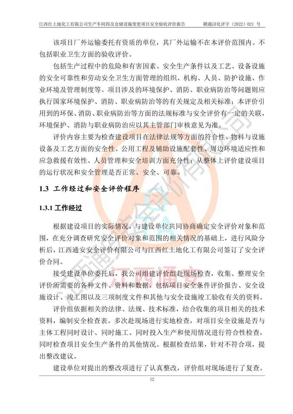 江西紅土地化工有限公司生產車間四及倉儲設施變更項目安全驗收評價報告