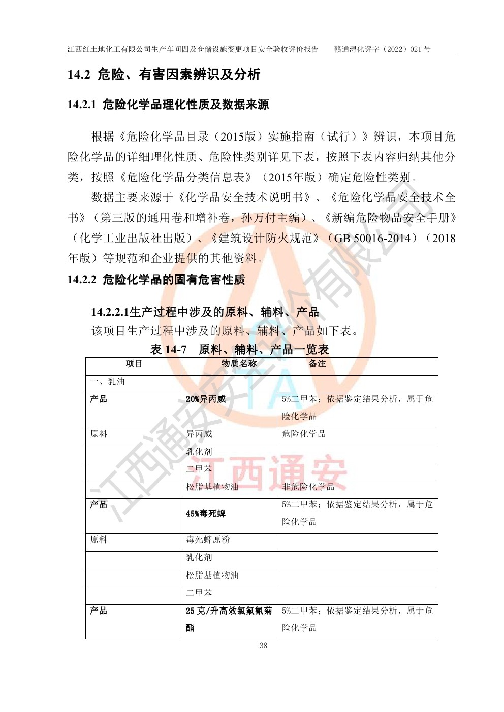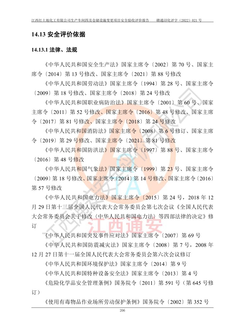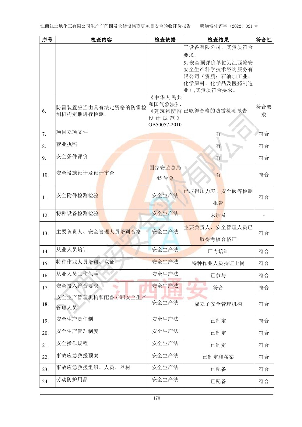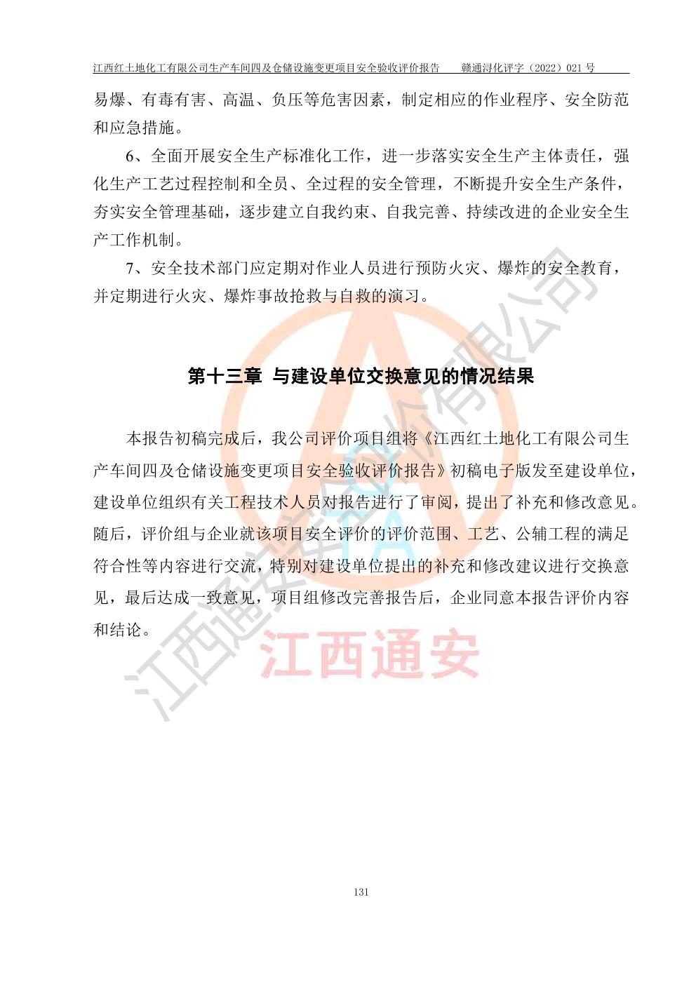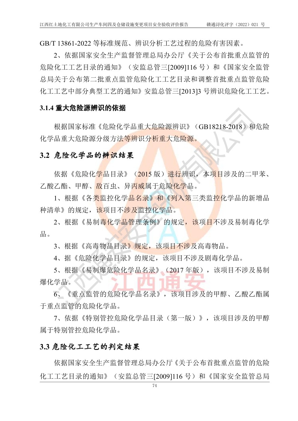 江西紅土地化工有限公司生產車間四及倉儲設施變更項目安全驗收評價報告