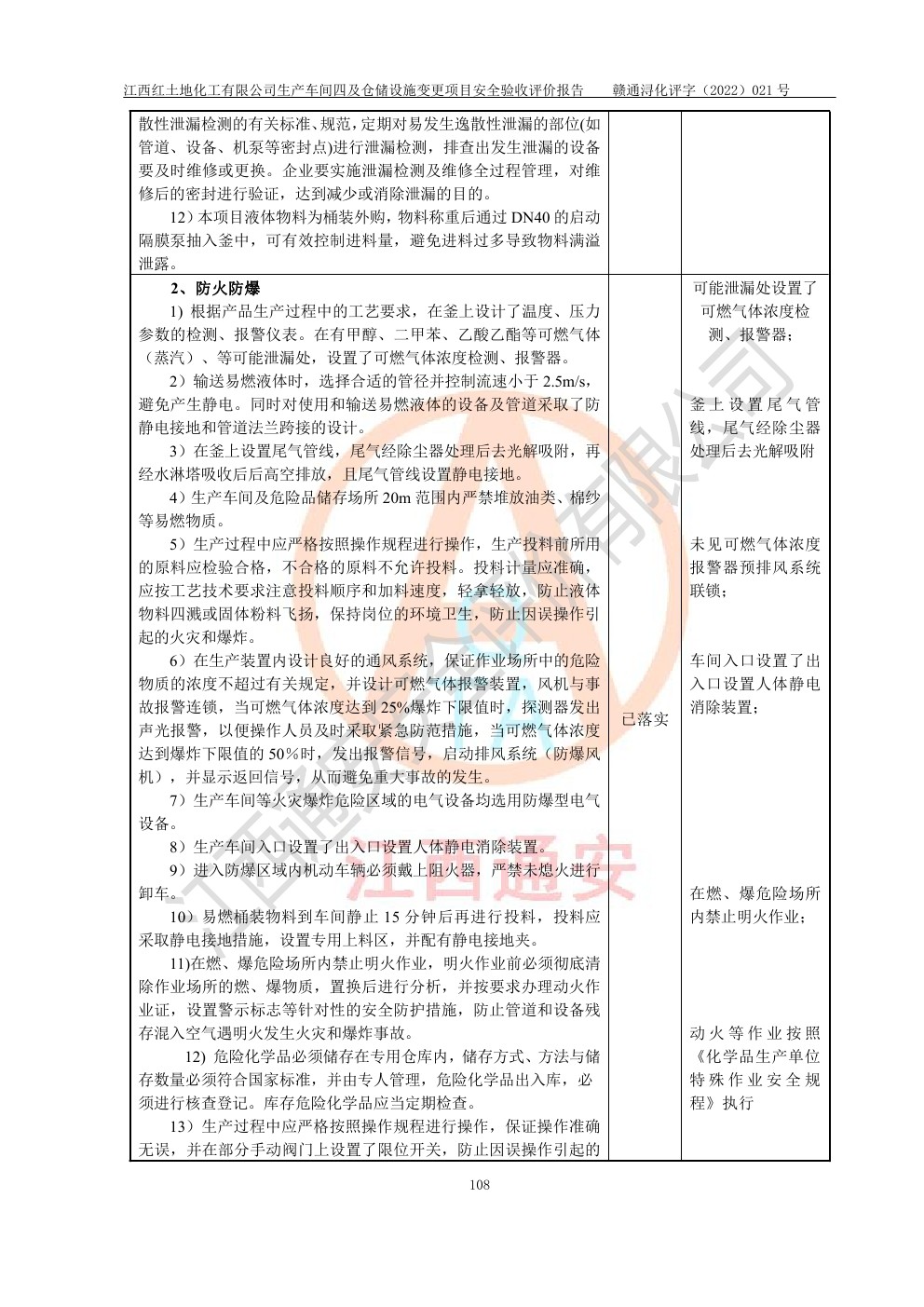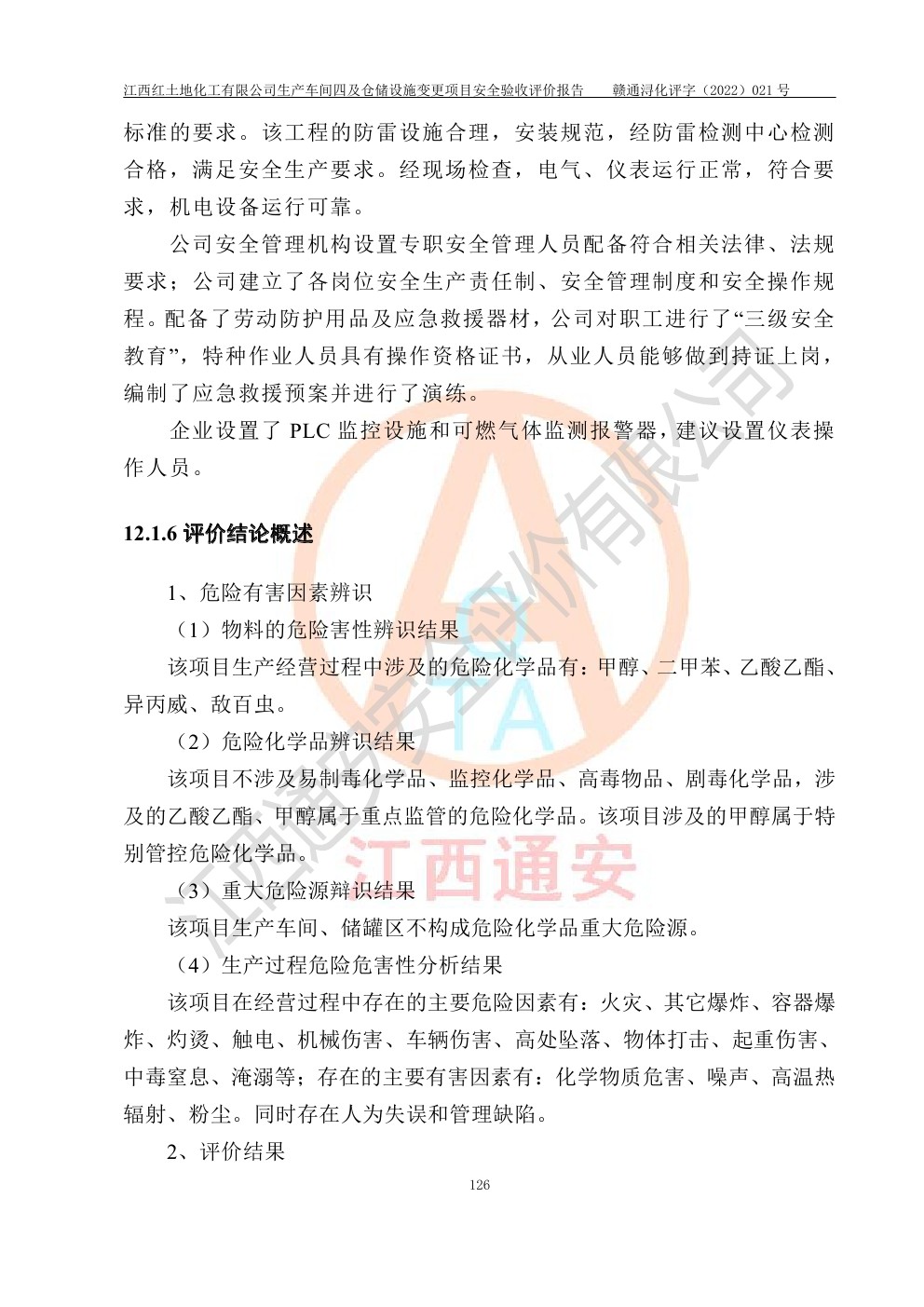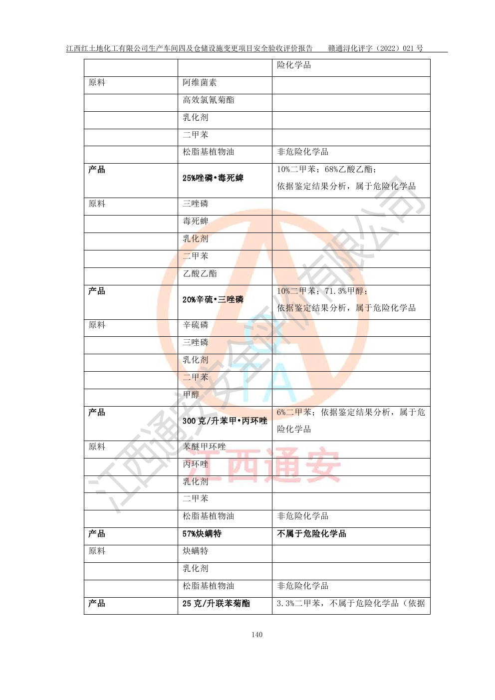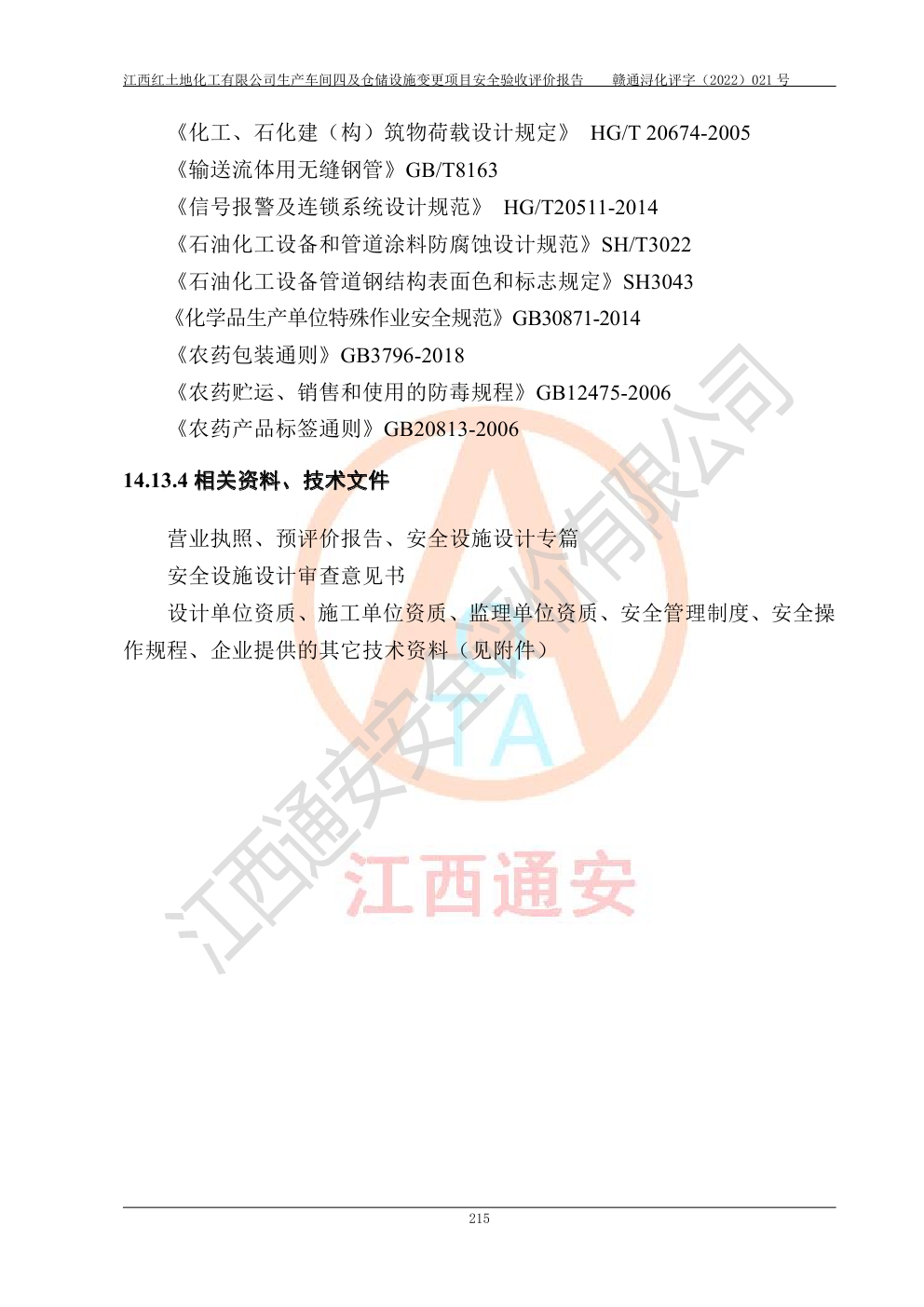 江西紅土地化工有限公司生產車間四及倉儲設施變更項目安全驗收評價報告