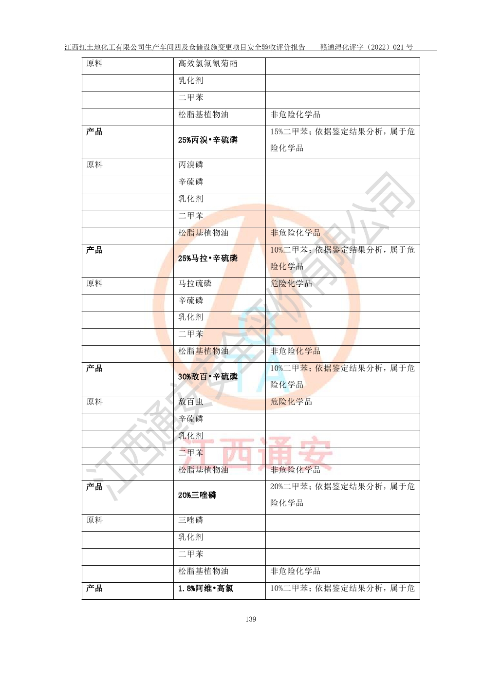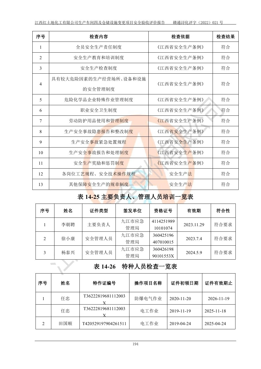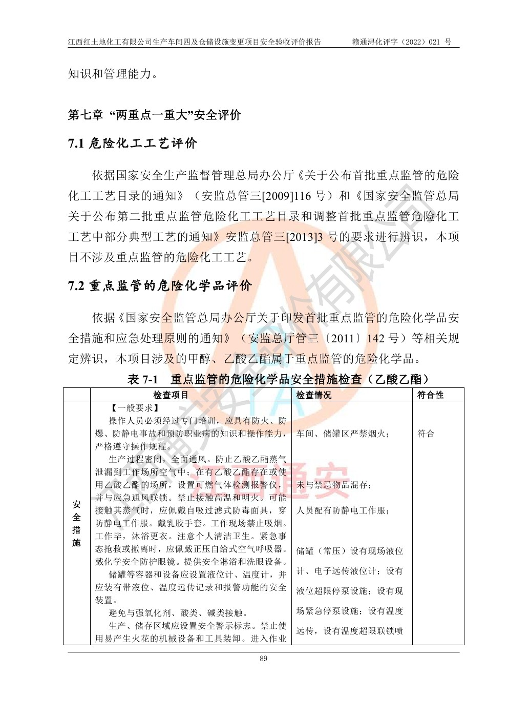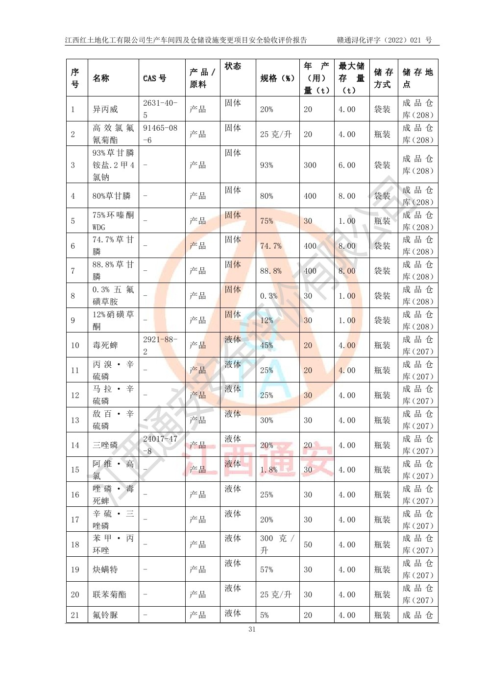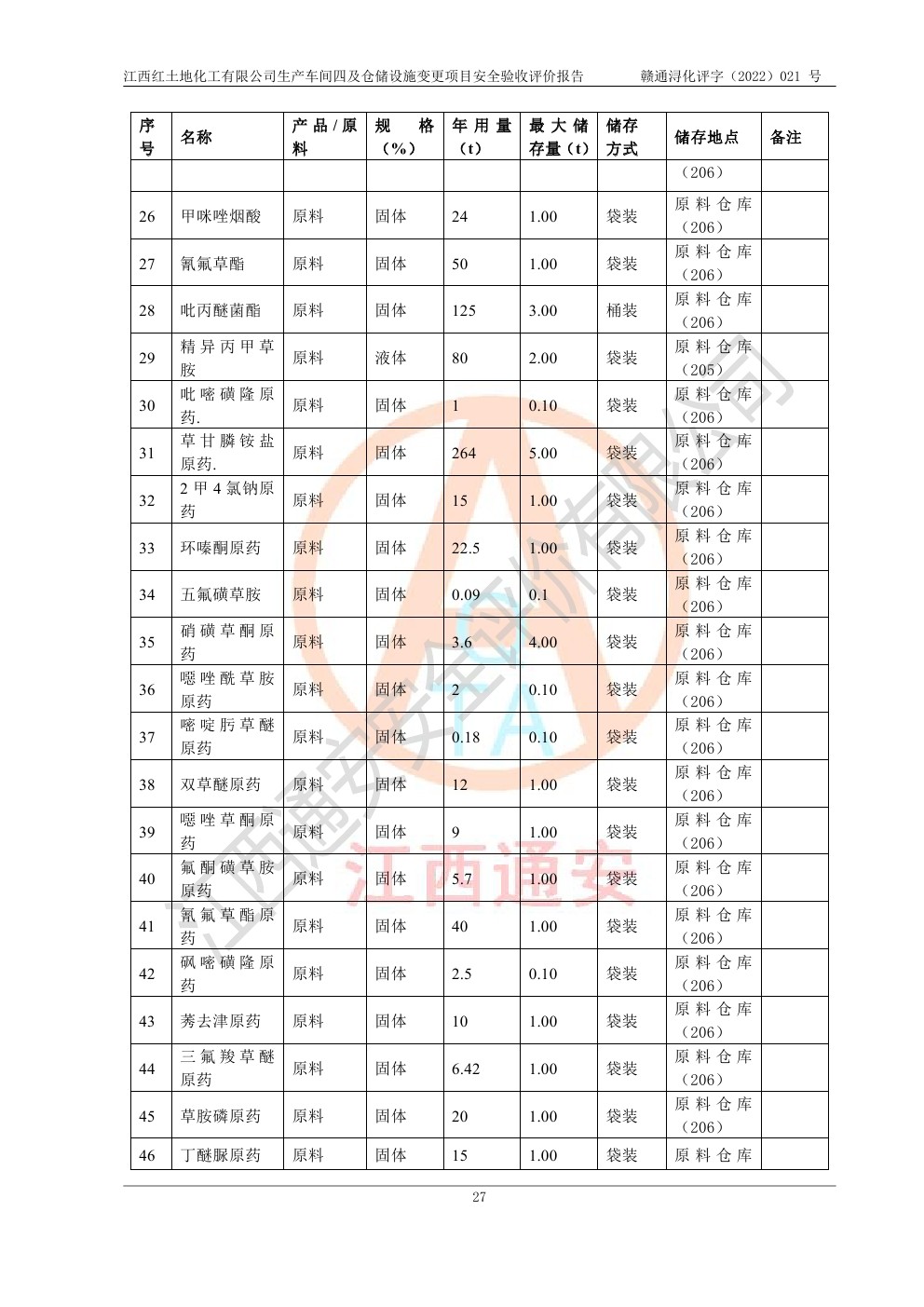 江西紅土地化工有限公司生產車間四及倉儲設施變更項目安全驗收評價報告