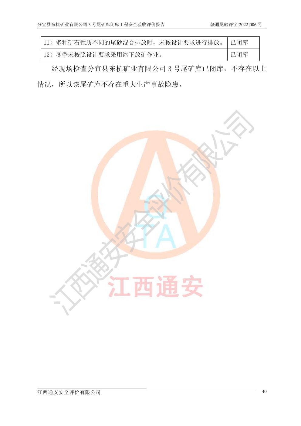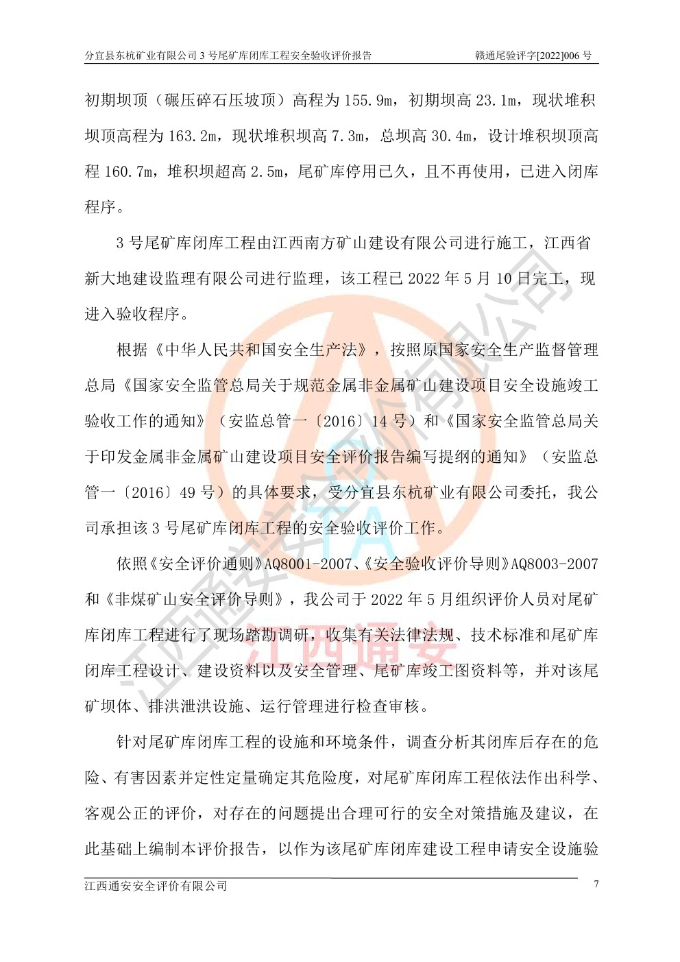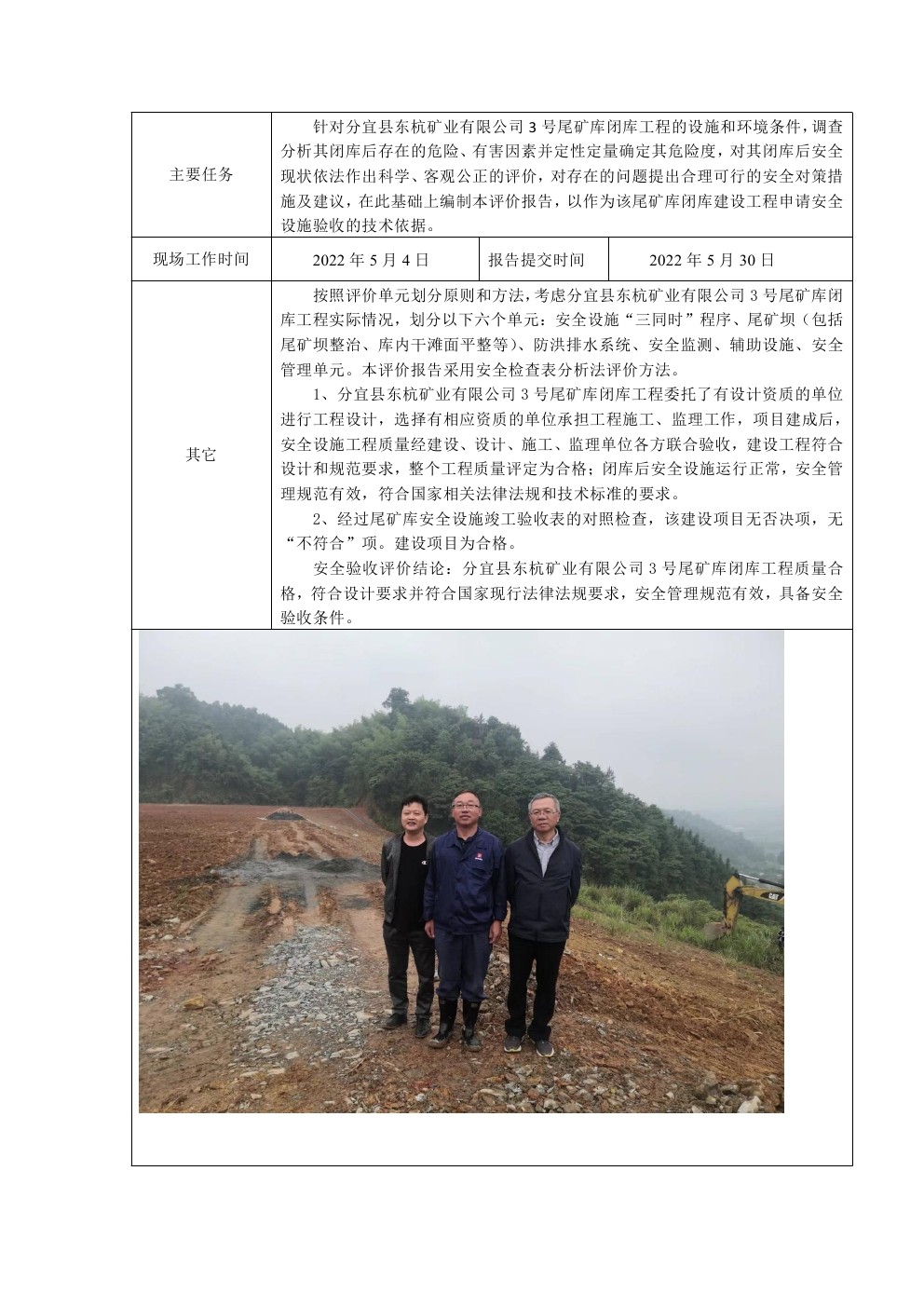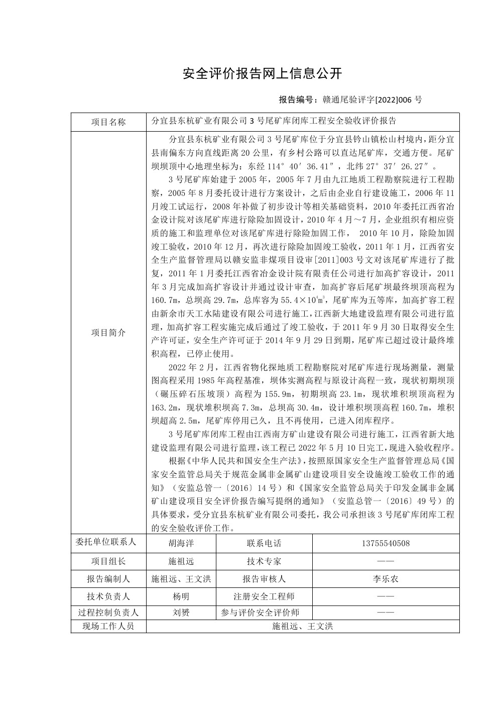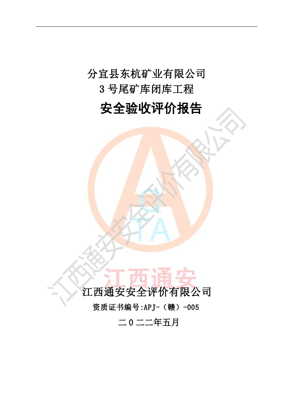 分宜縣東杭礦業(yè)有限公司3號尾礦庫閉庫工程安全驗收評價報告