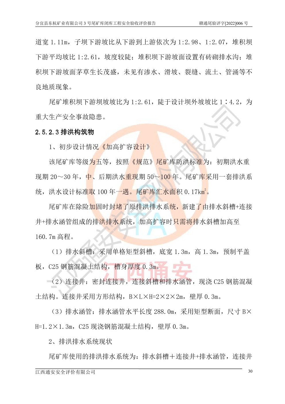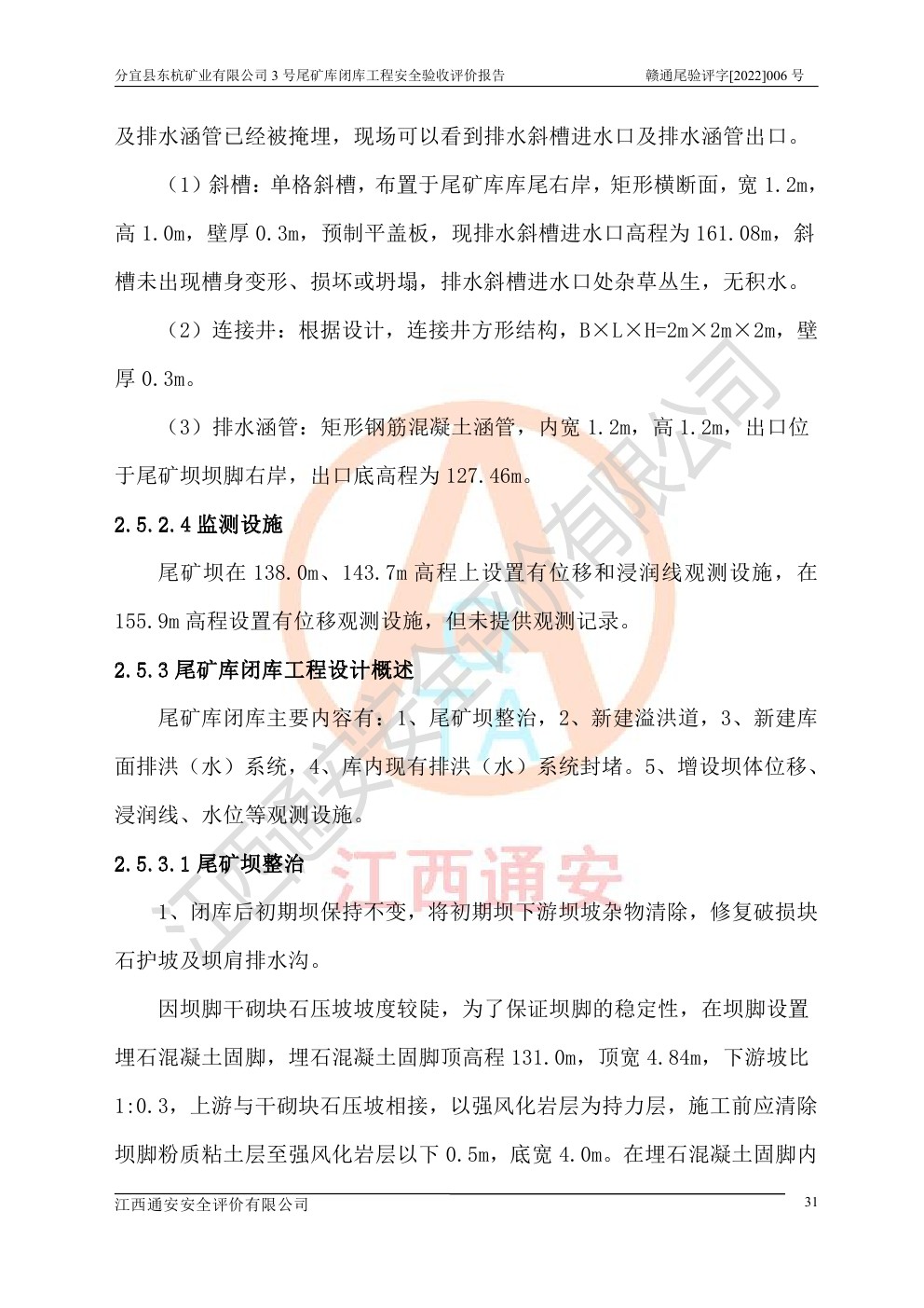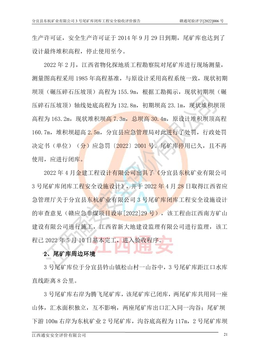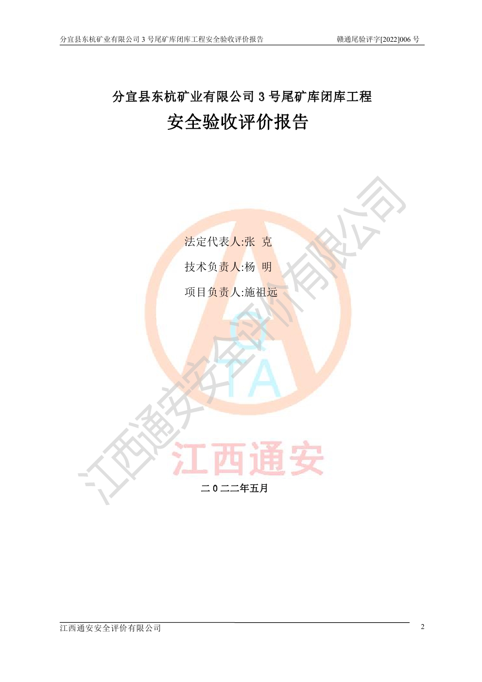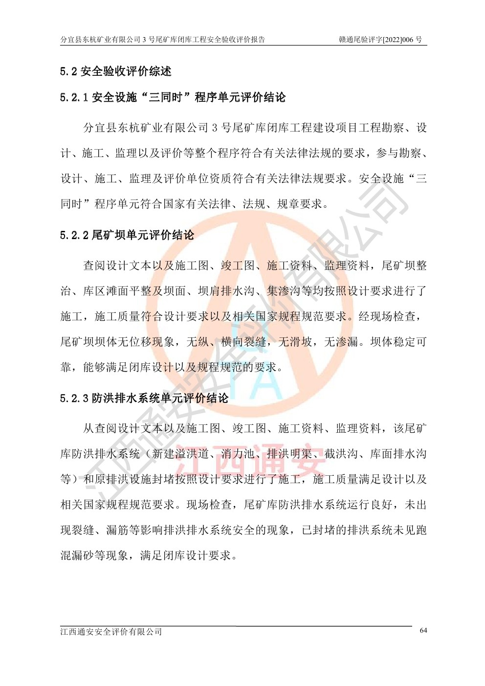 分宜縣東杭礦業(yè)有限公司3號尾礦庫閉庫工程安全驗收評價報告