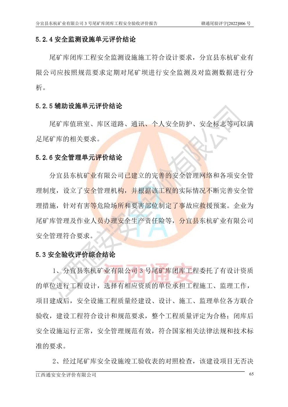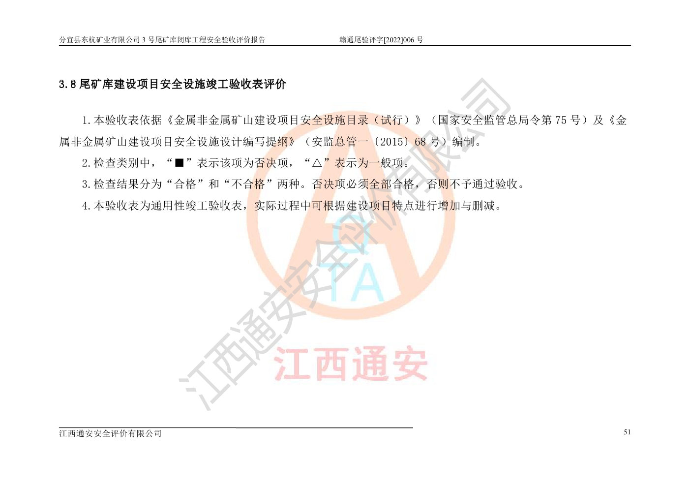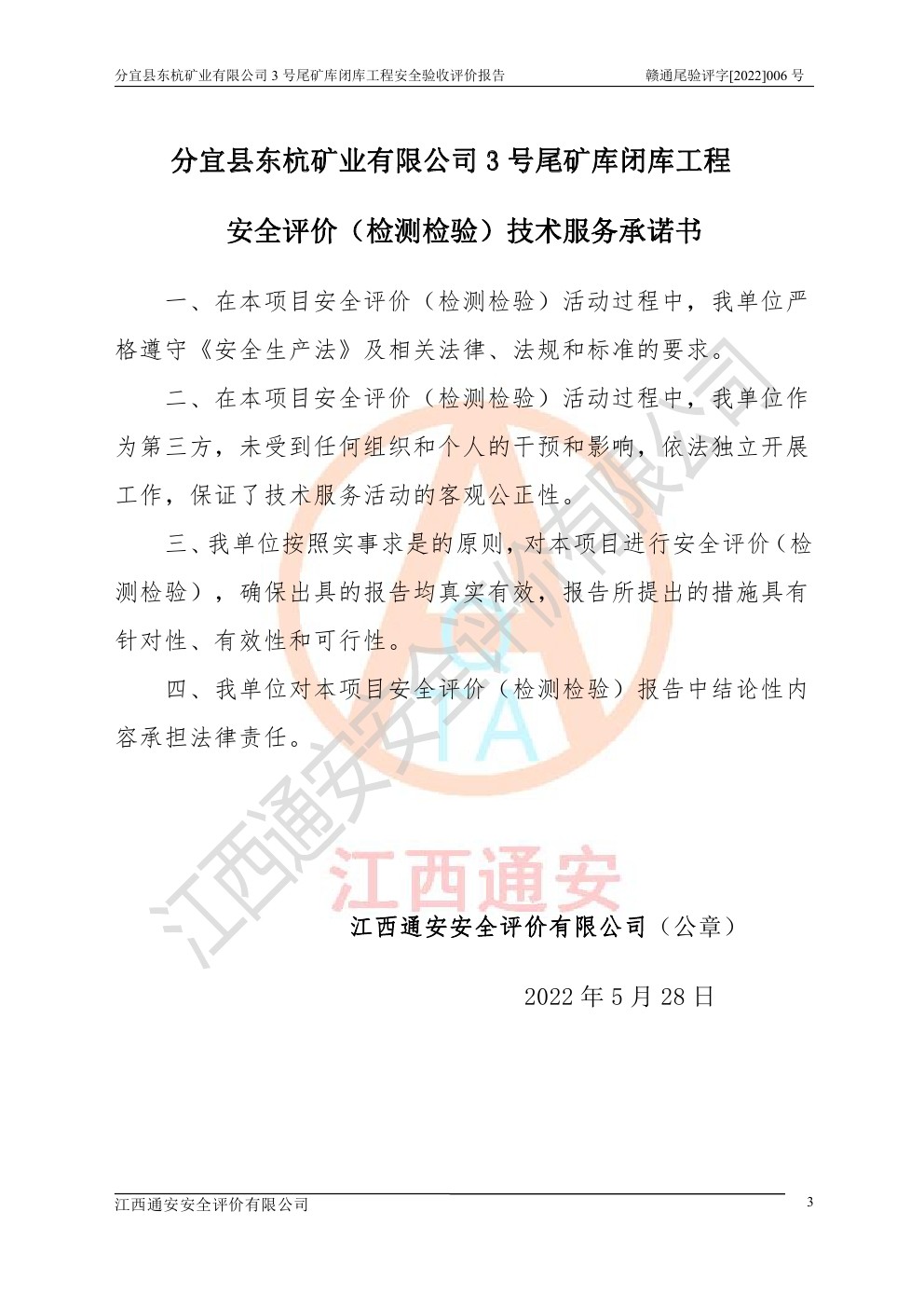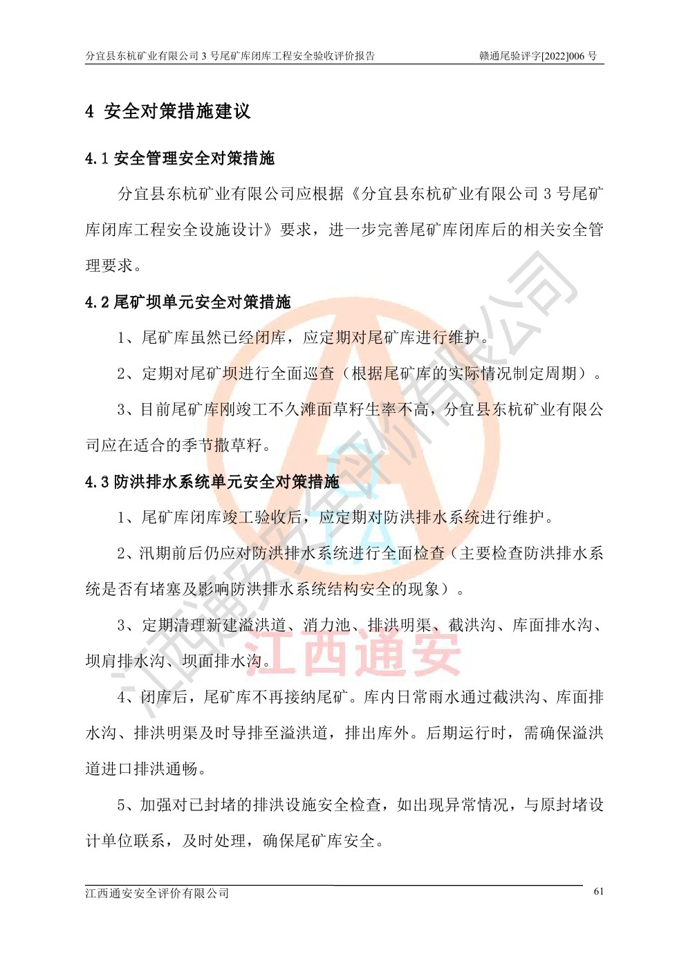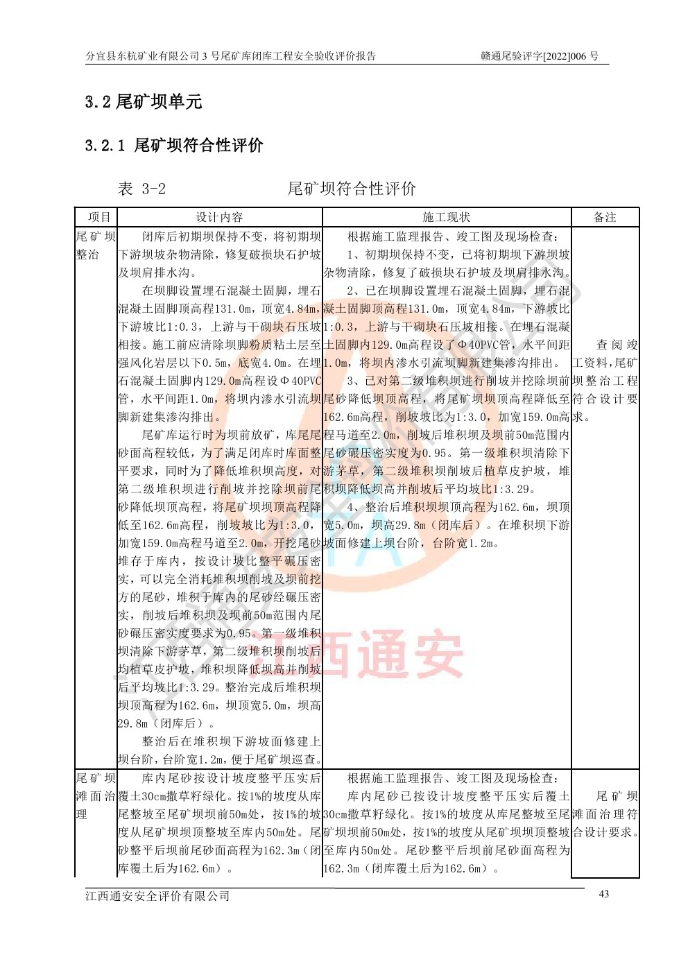 分宜縣東杭礦業(yè)有限公司3號尾礦庫閉庫工程安全驗收評價報告