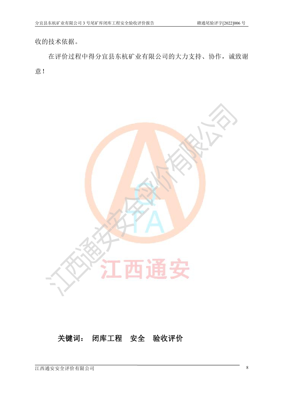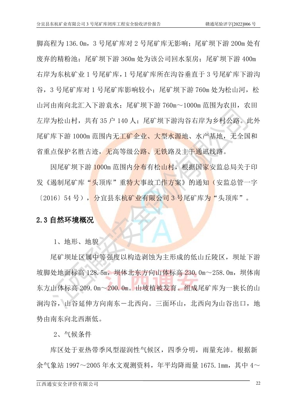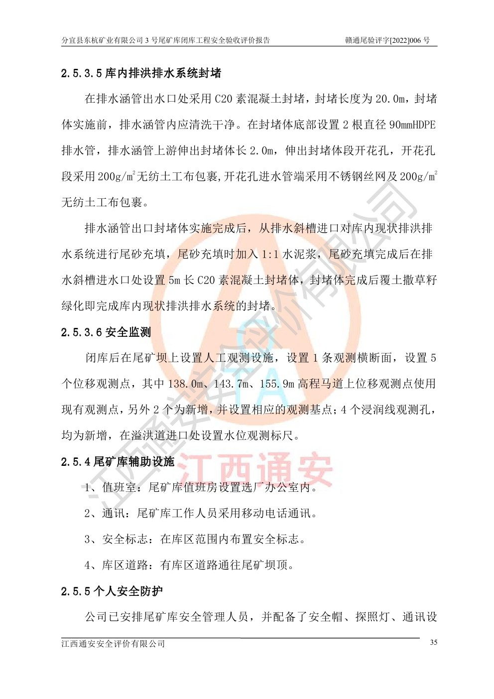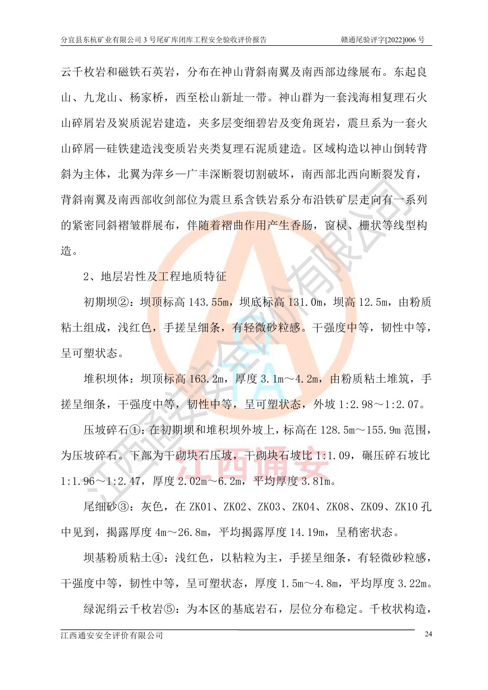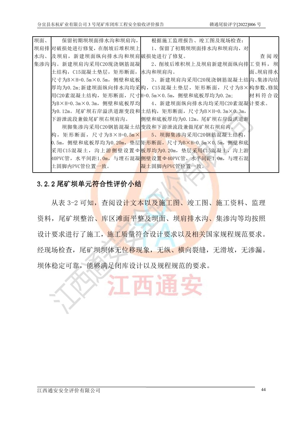 分宜縣東杭礦業(yè)有限公司3號尾礦庫閉庫工程安全驗收評價報告