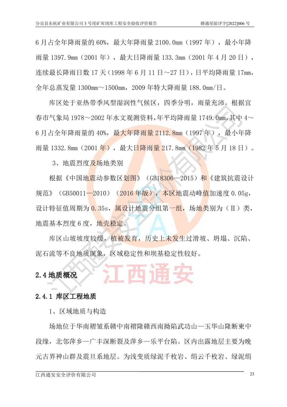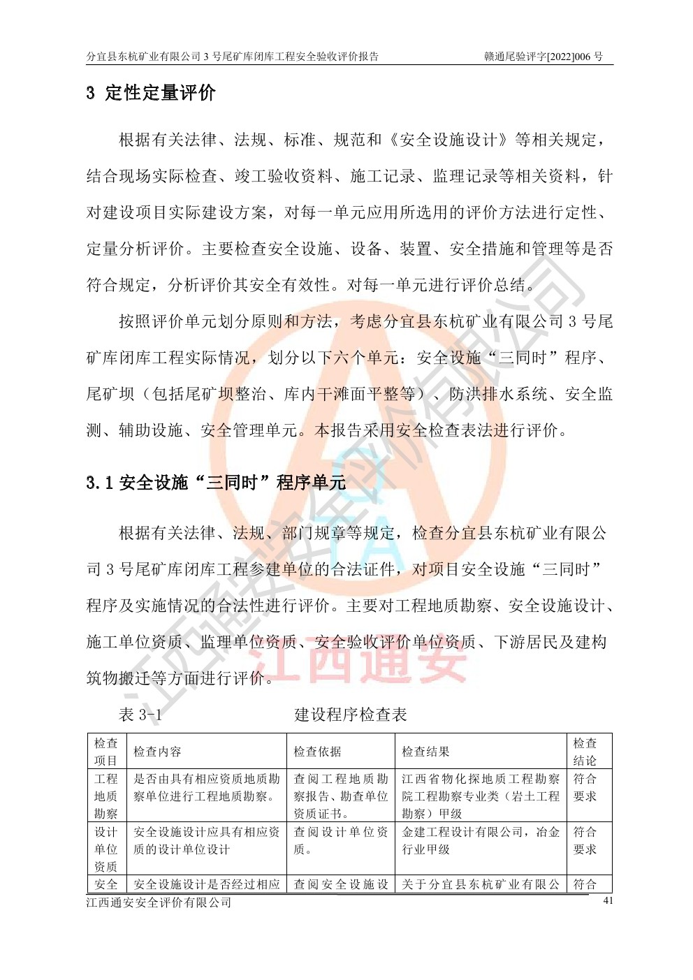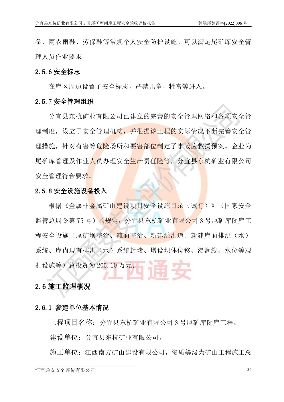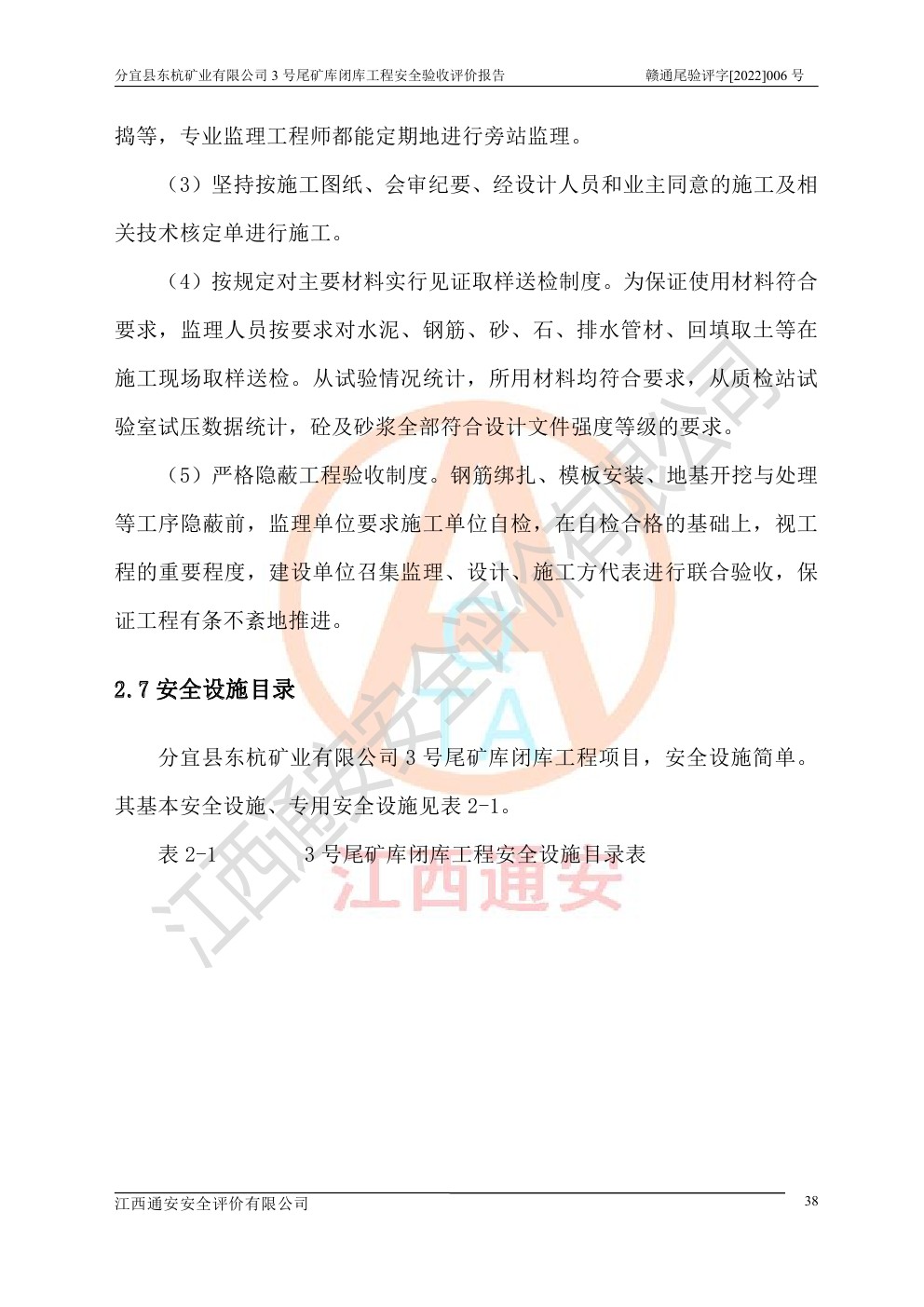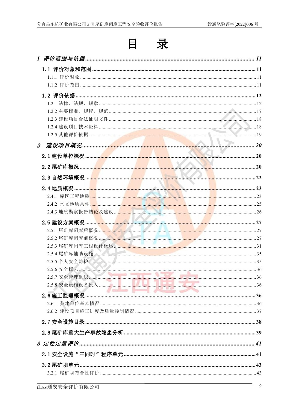 分宜縣東杭礦業(yè)有限公司3號尾礦庫閉庫工程安全驗收評價報告