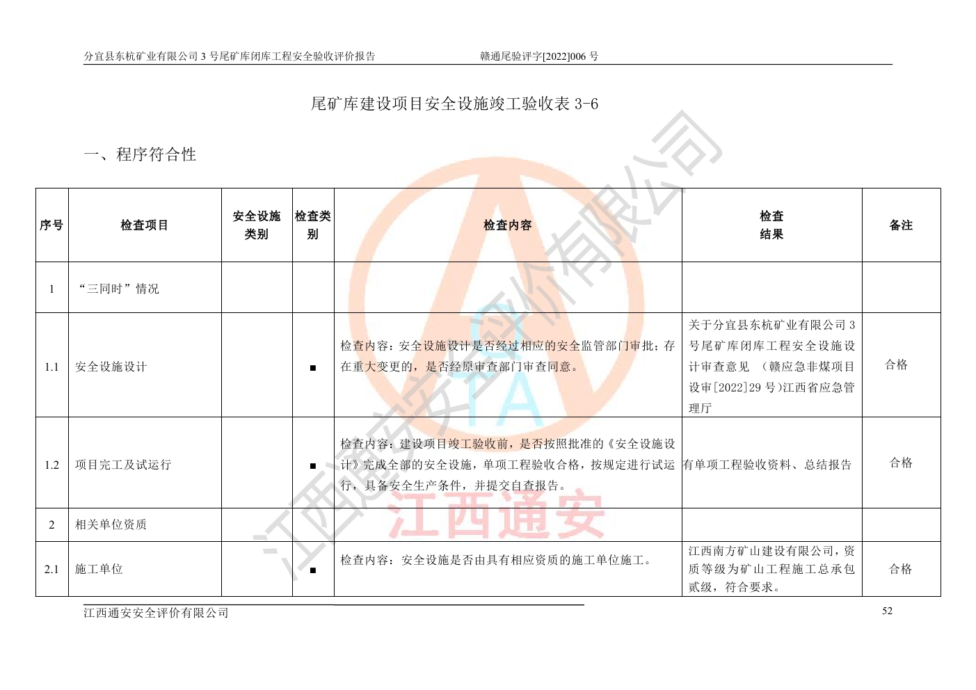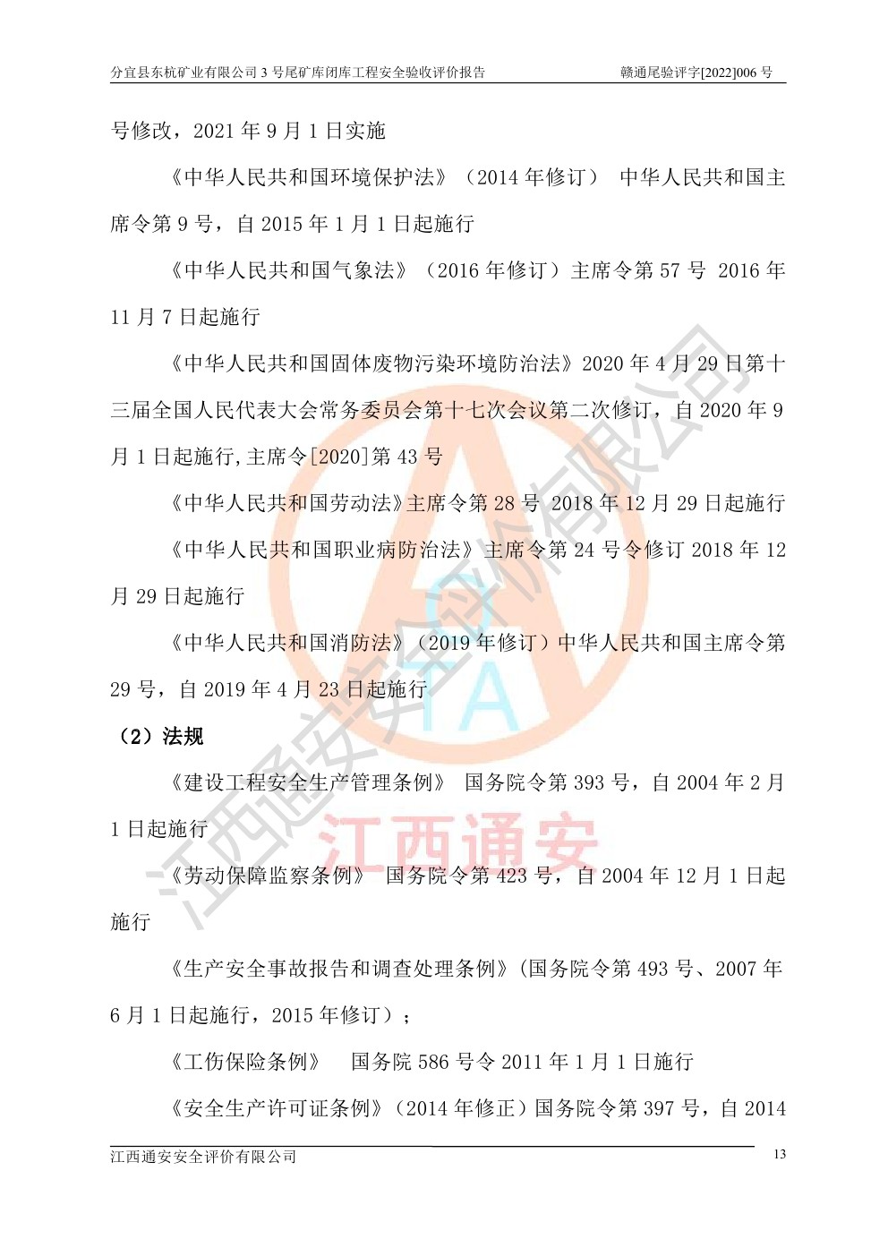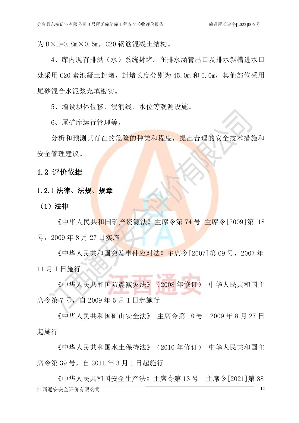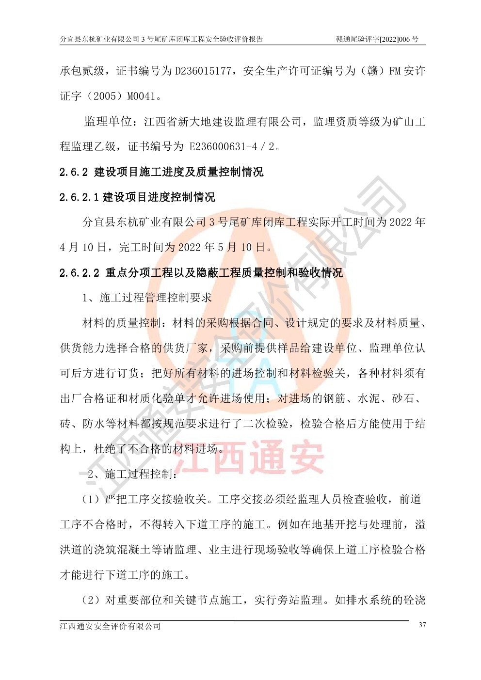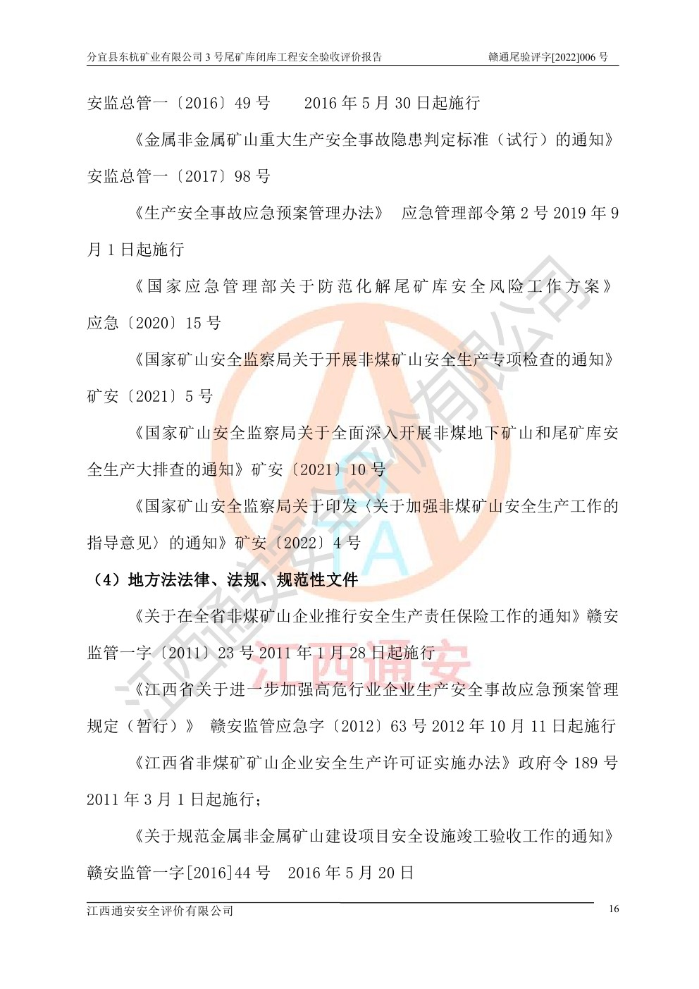 分宜縣東杭礦業(yè)有限公司3號尾礦庫閉庫工程安全驗收評價報告