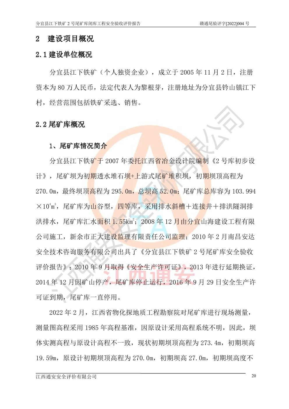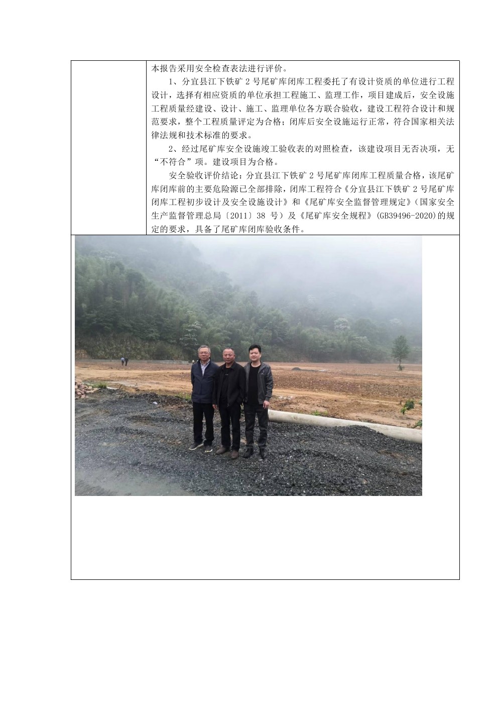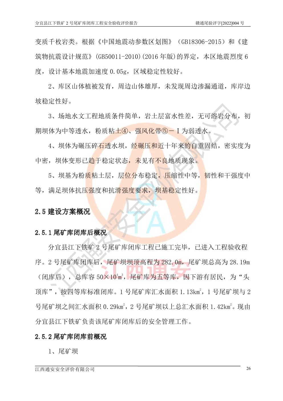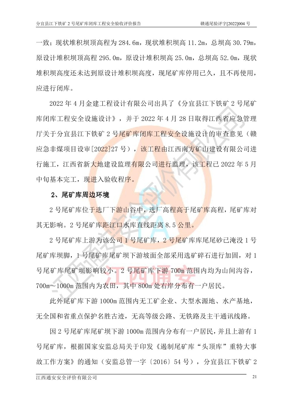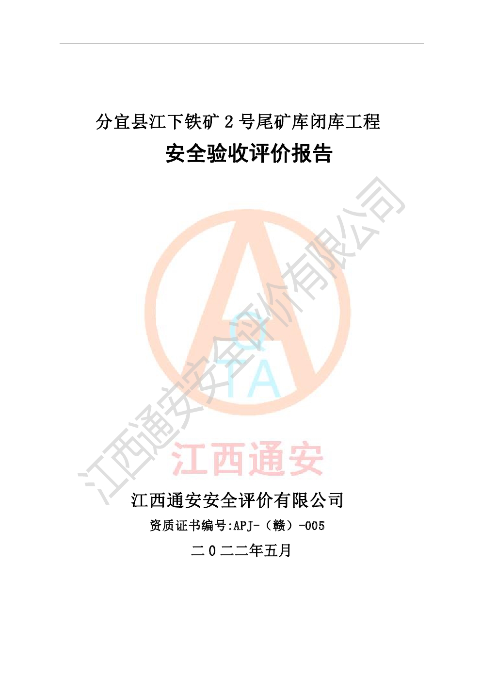 分宜縣江下鐵礦2號尾礦庫閉庫工程安全驗收評價報告