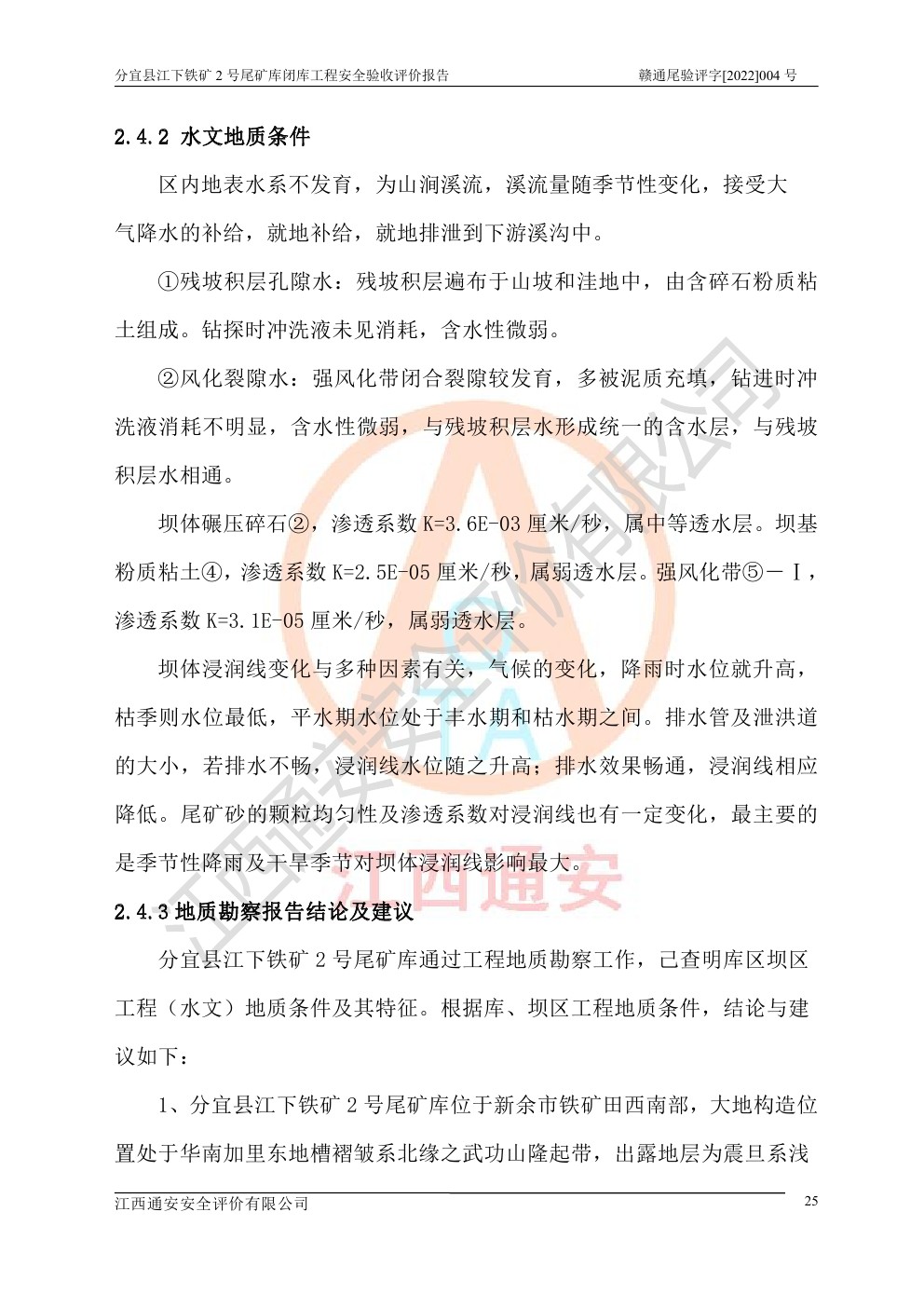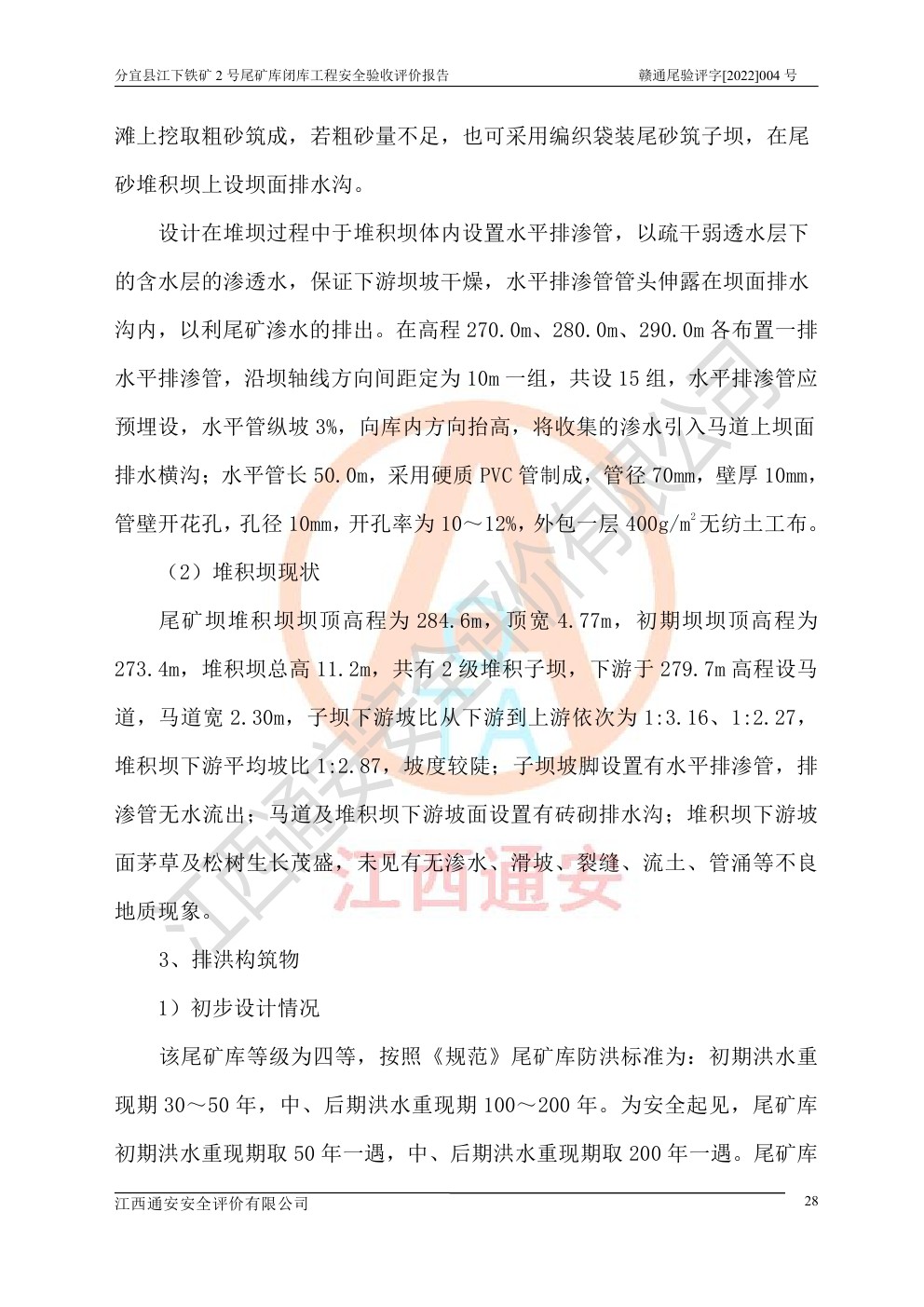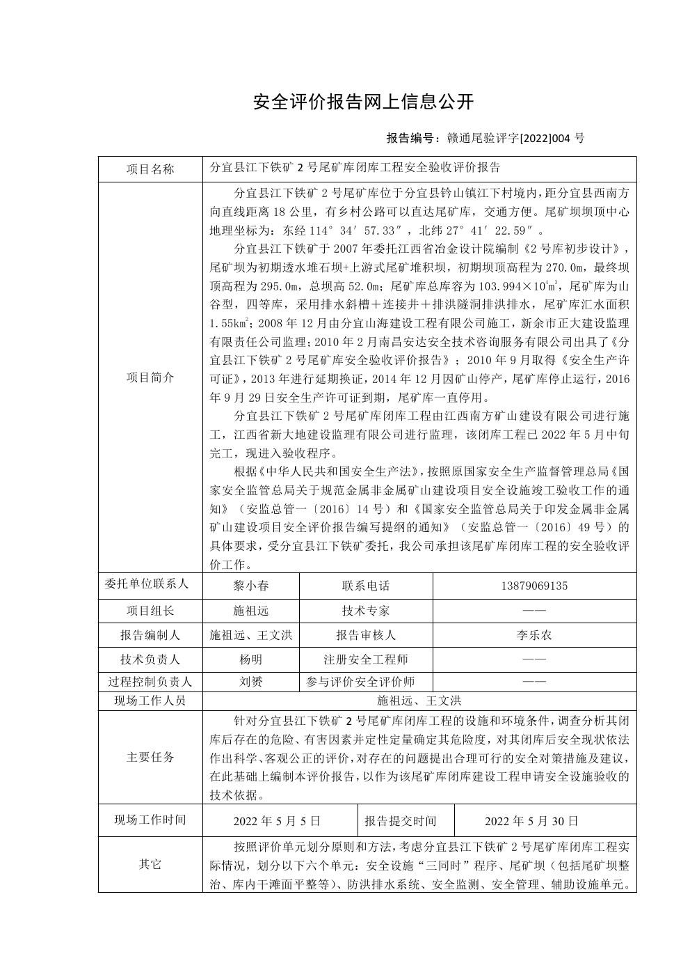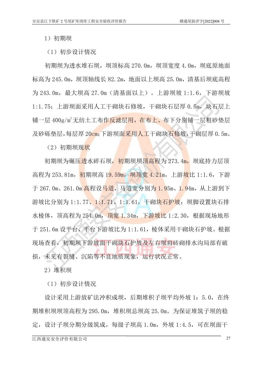 分宜縣江下鐵礦2號尾礦庫閉庫工程安全驗收評價報告