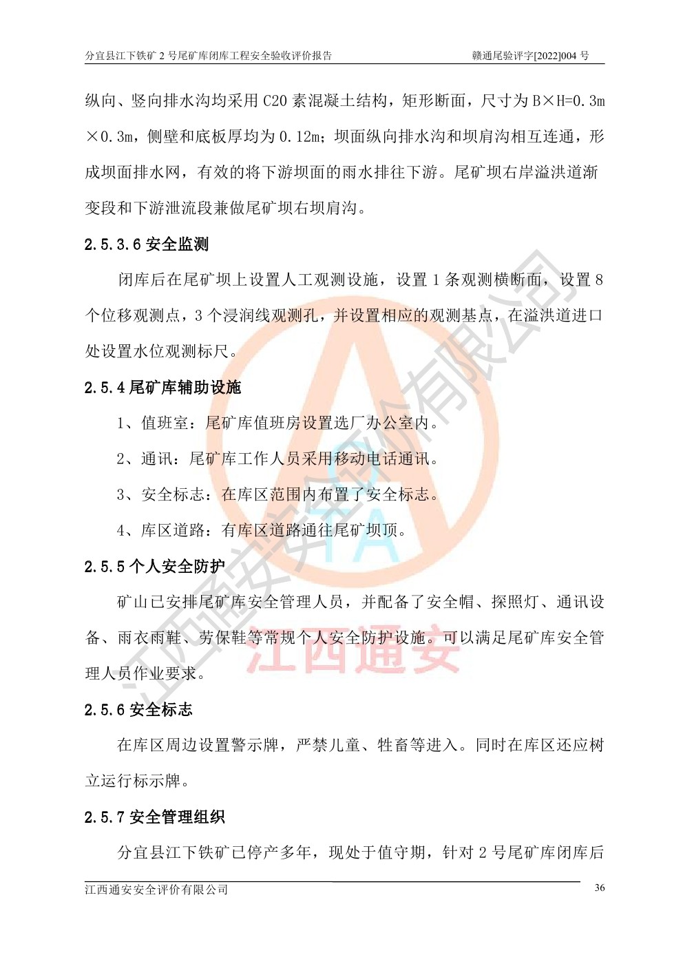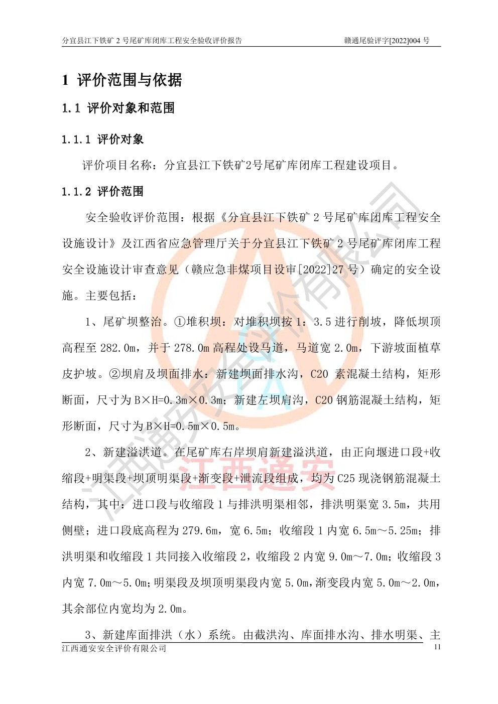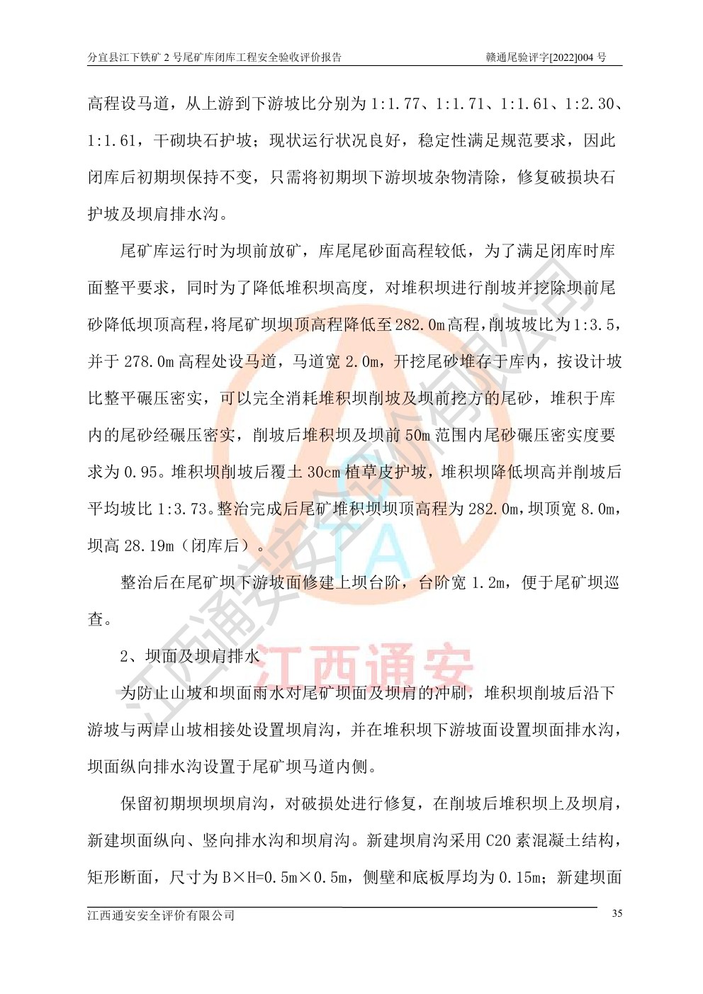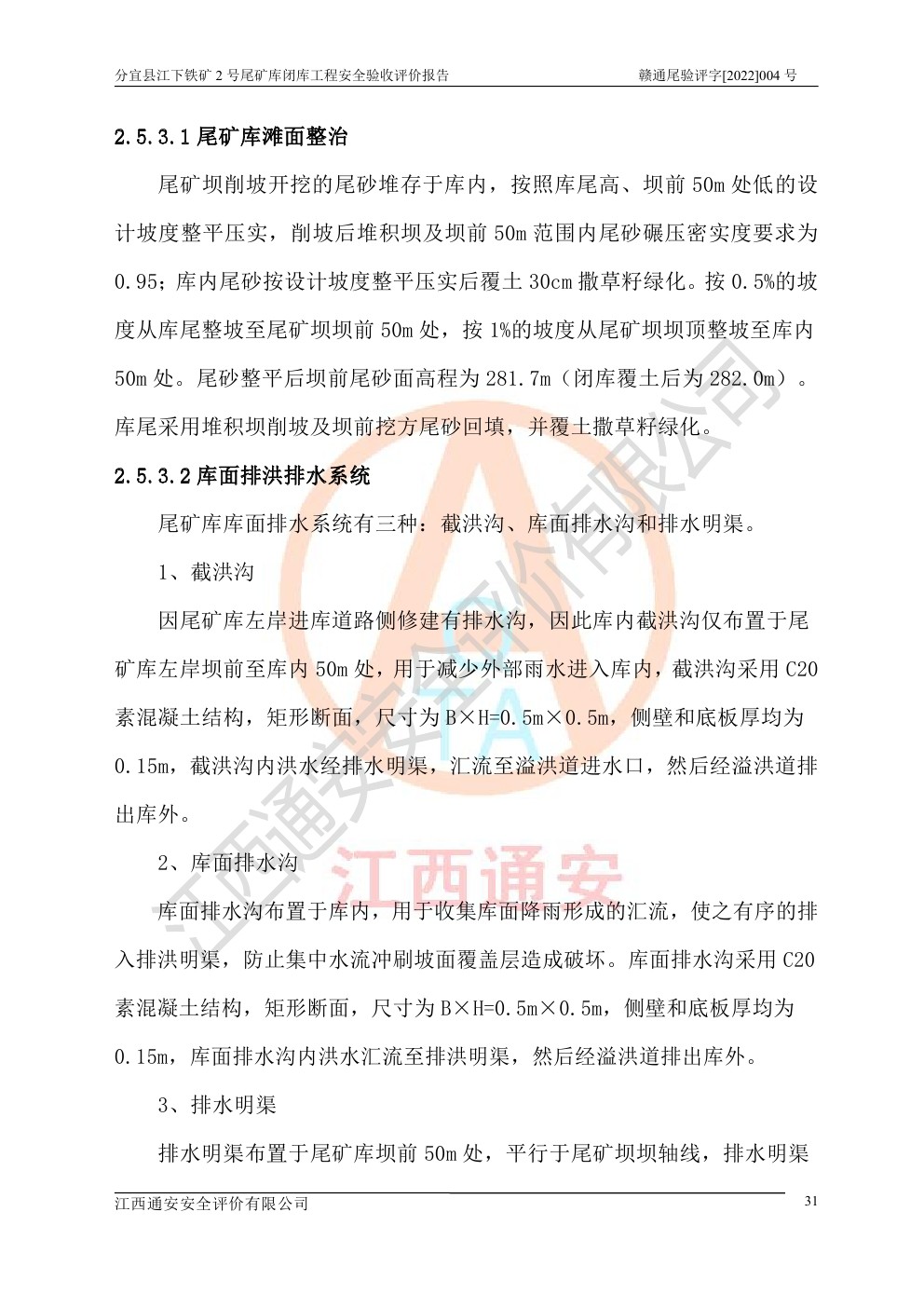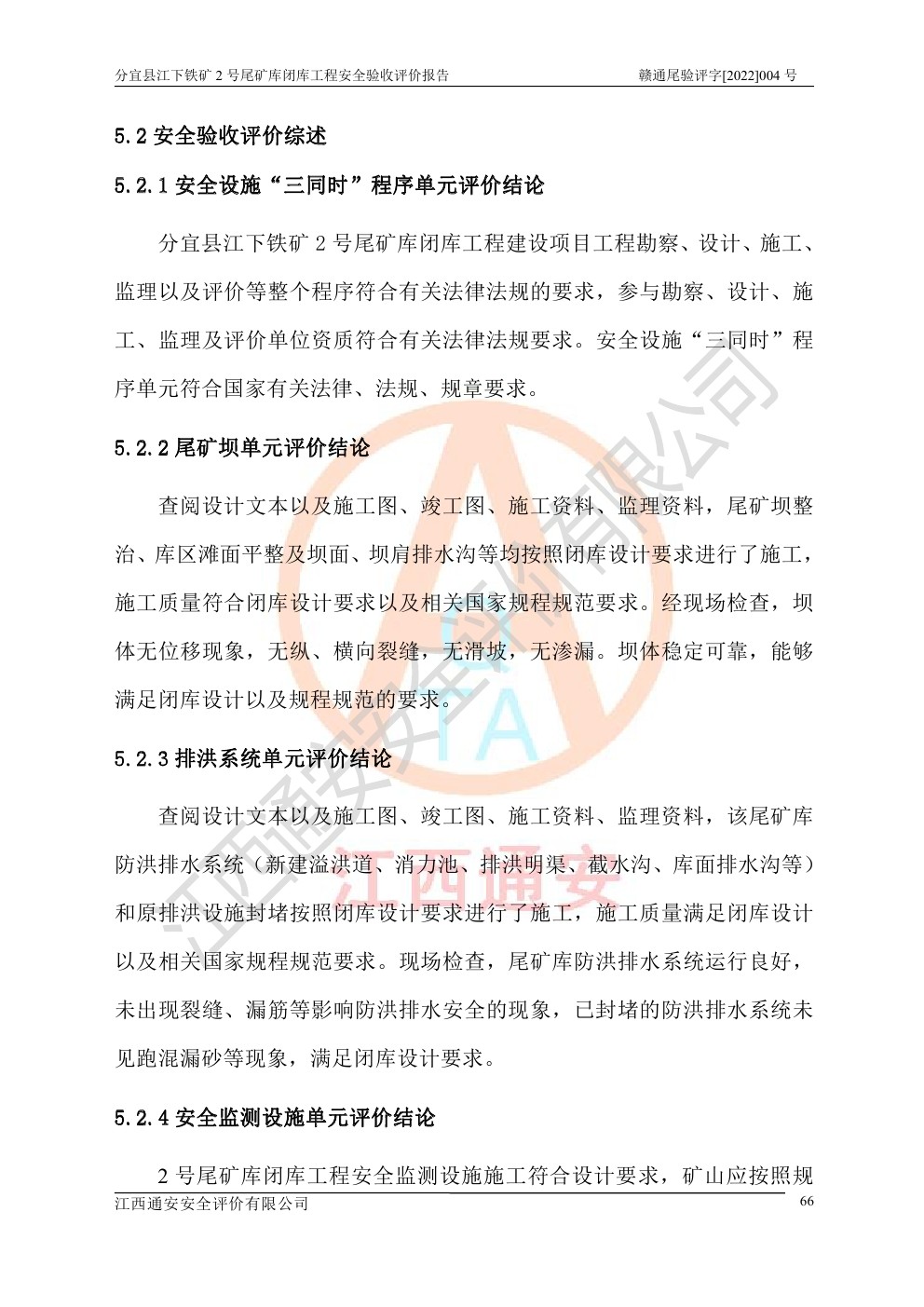 分宜縣江下鐵礦2號尾礦庫閉庫工程安全驗收評價報告