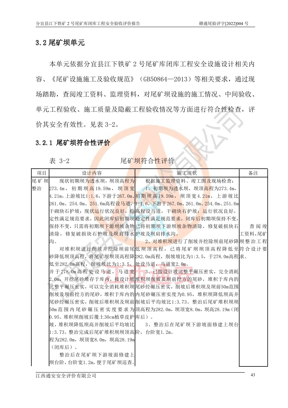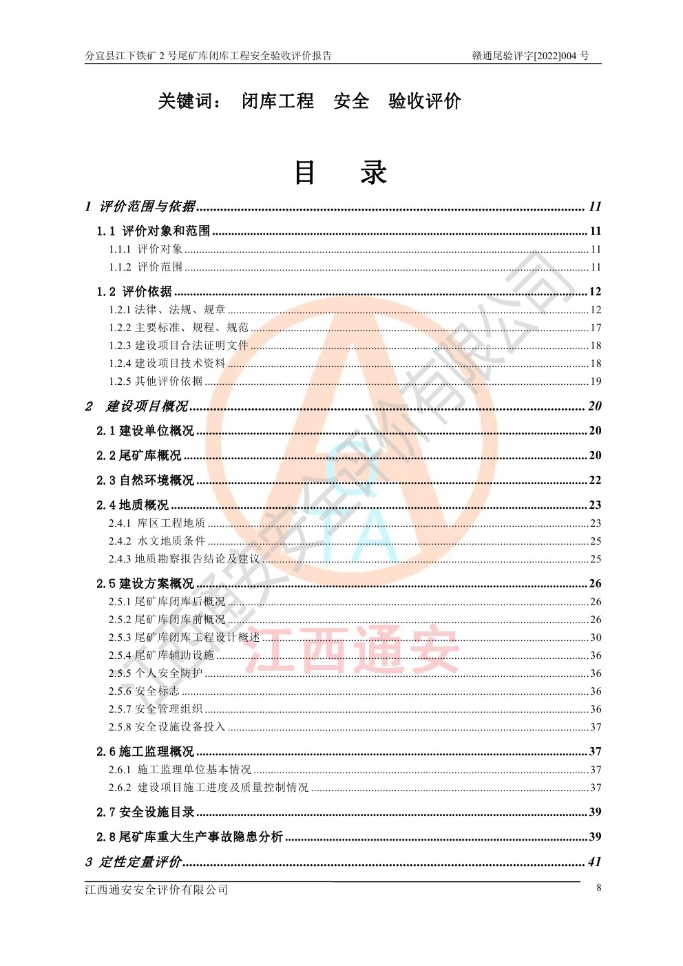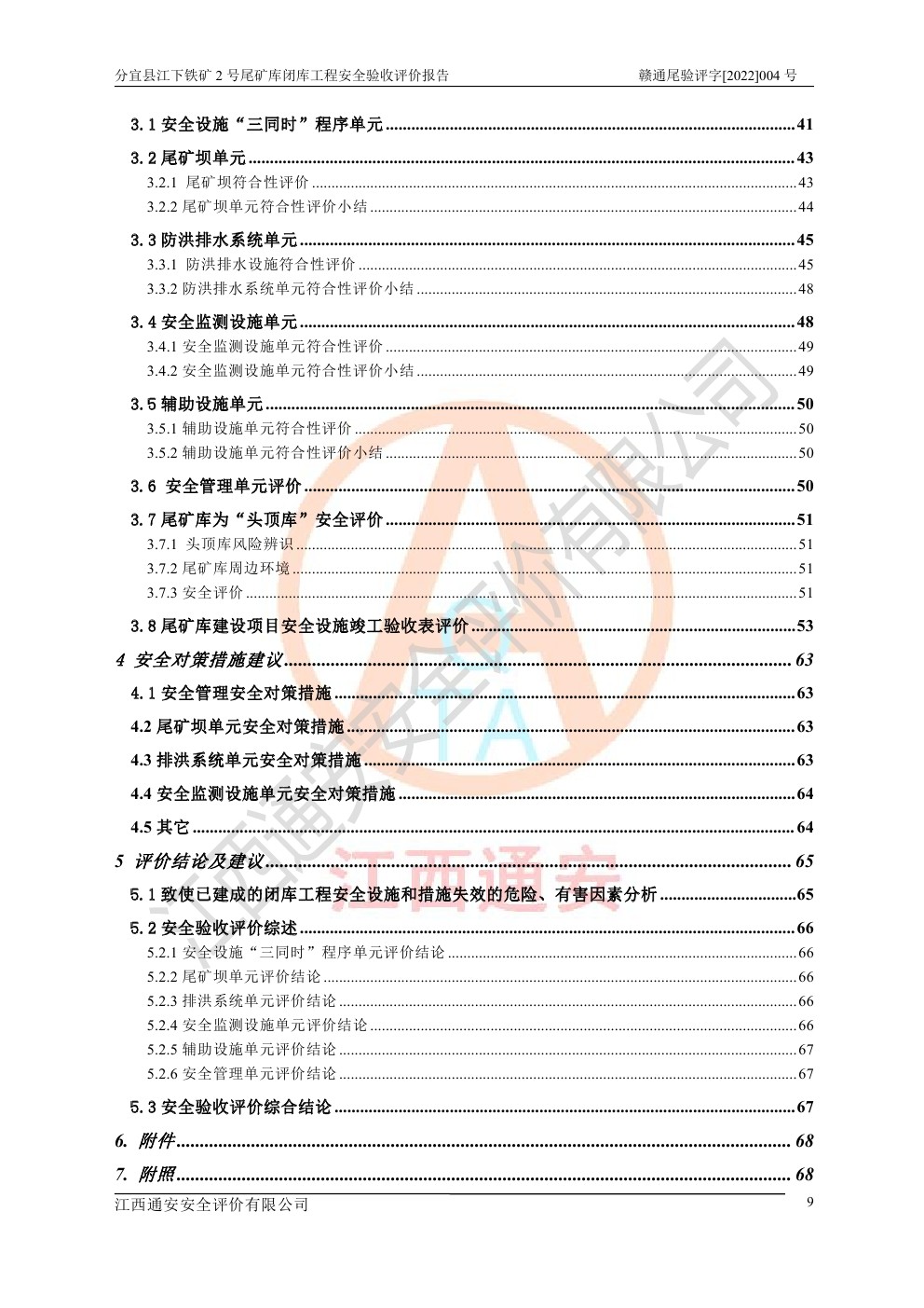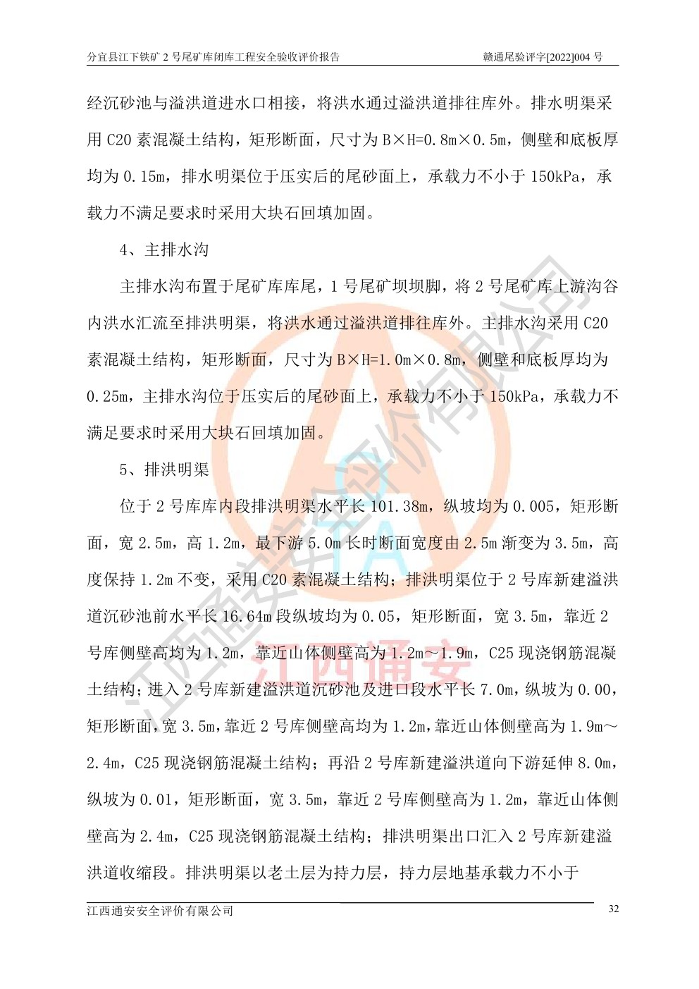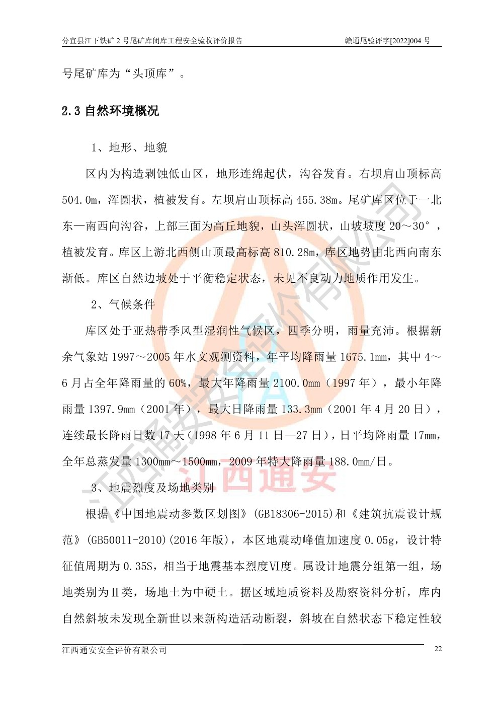 分宜縣江下鐵礦2號尾礦庫閉庫工程安全驗收評價報告