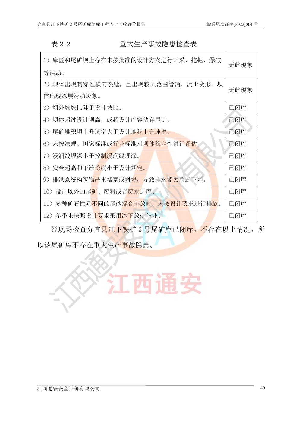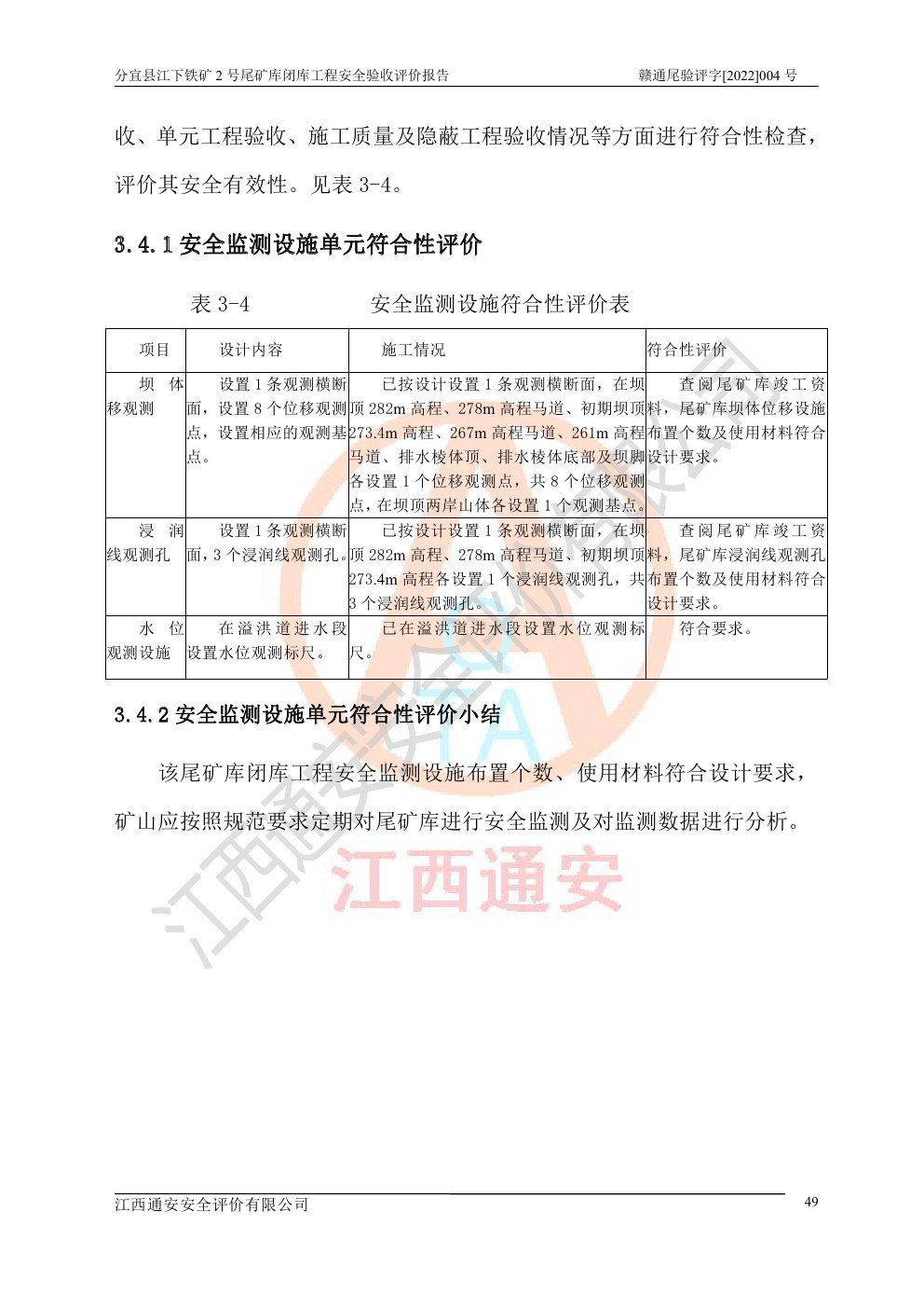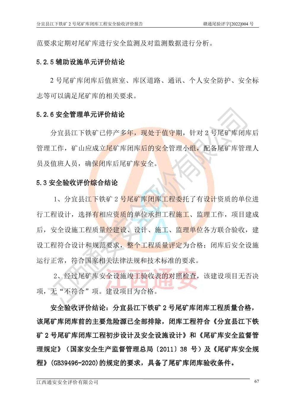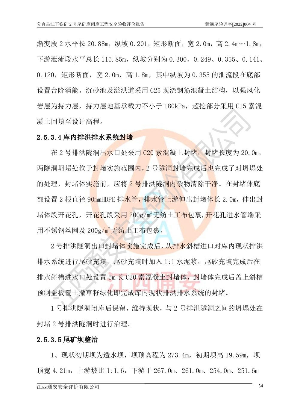 分宜縣江下鐵礦2號尾礦庫閉庫工程安全驗收評價報告