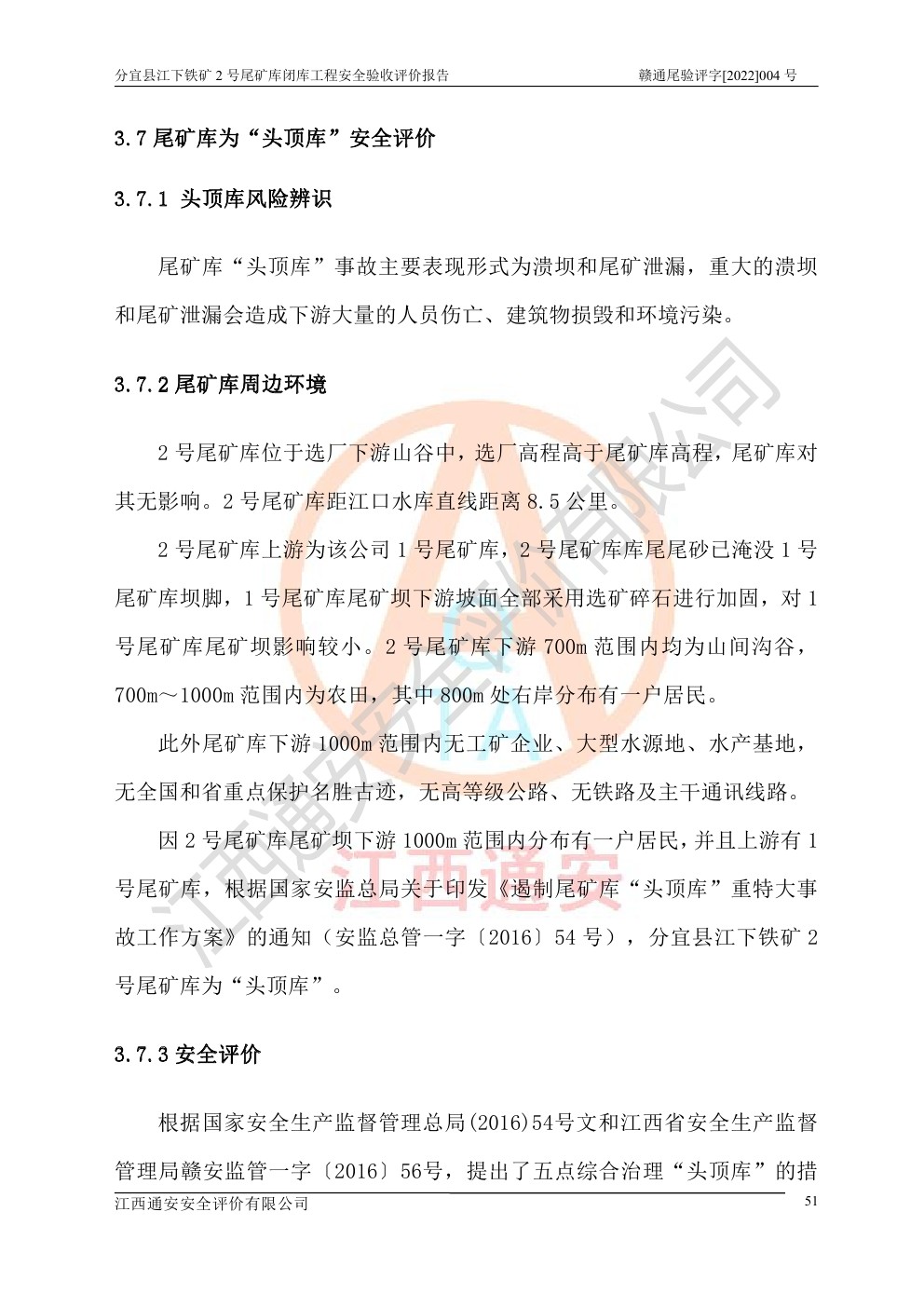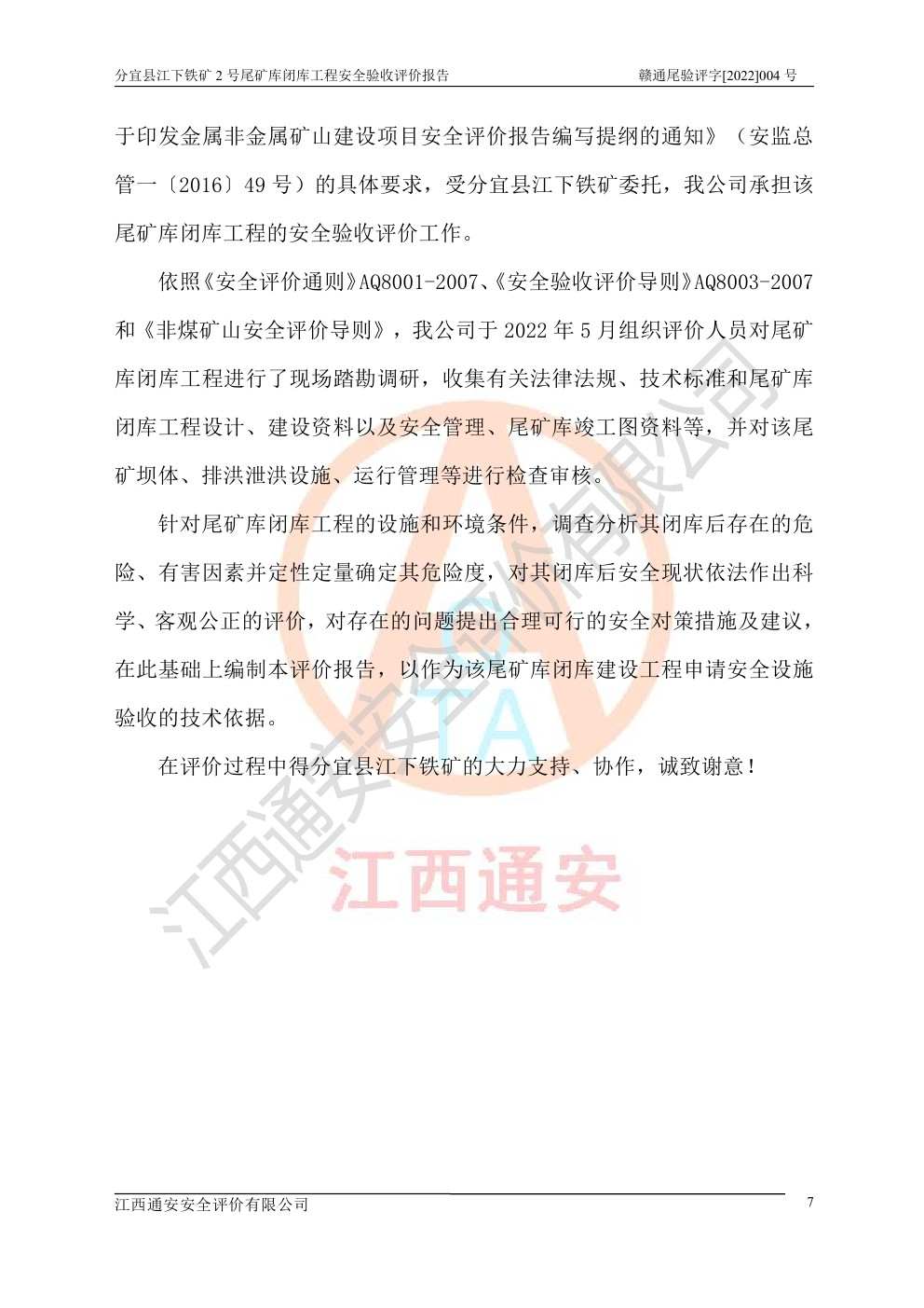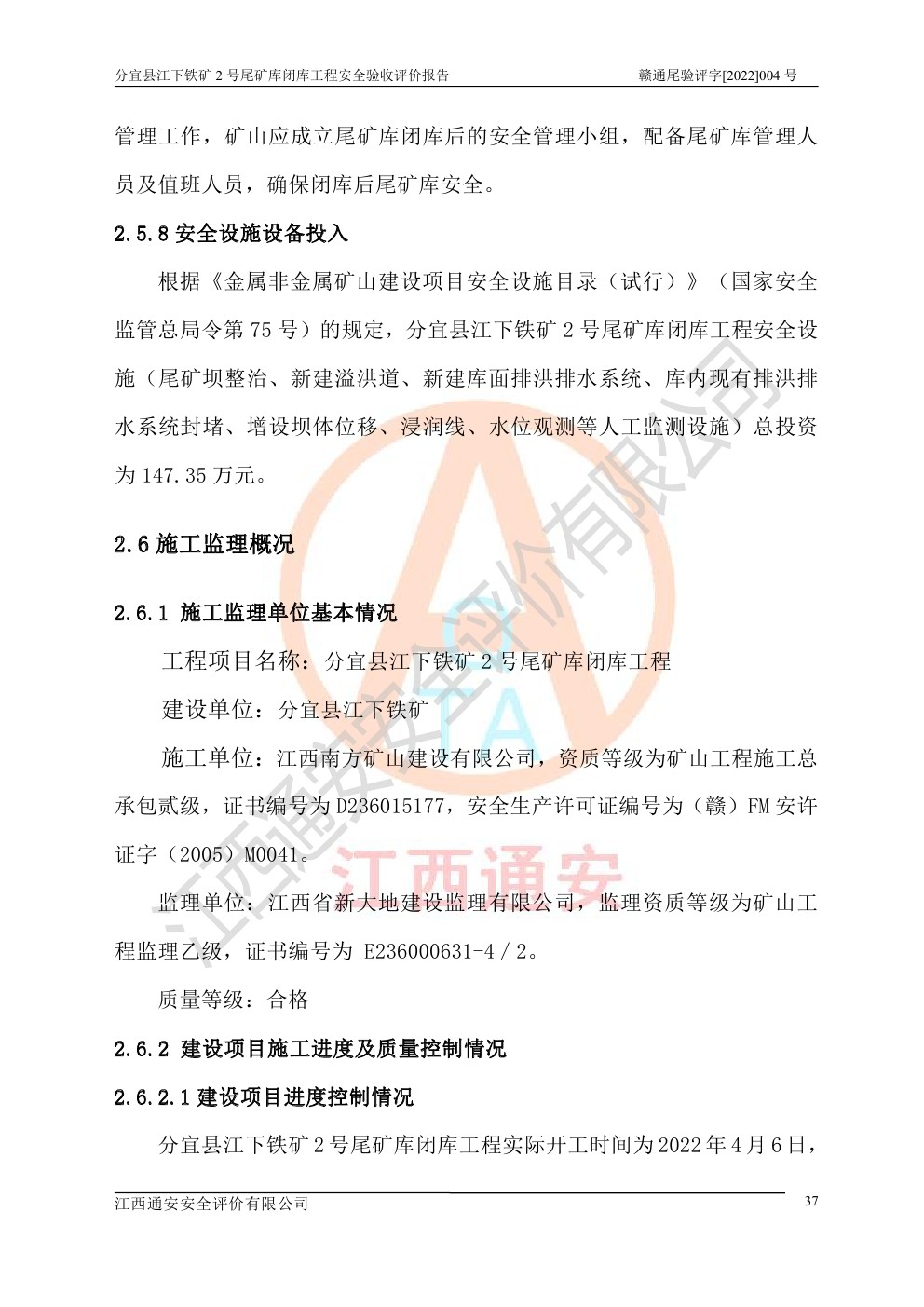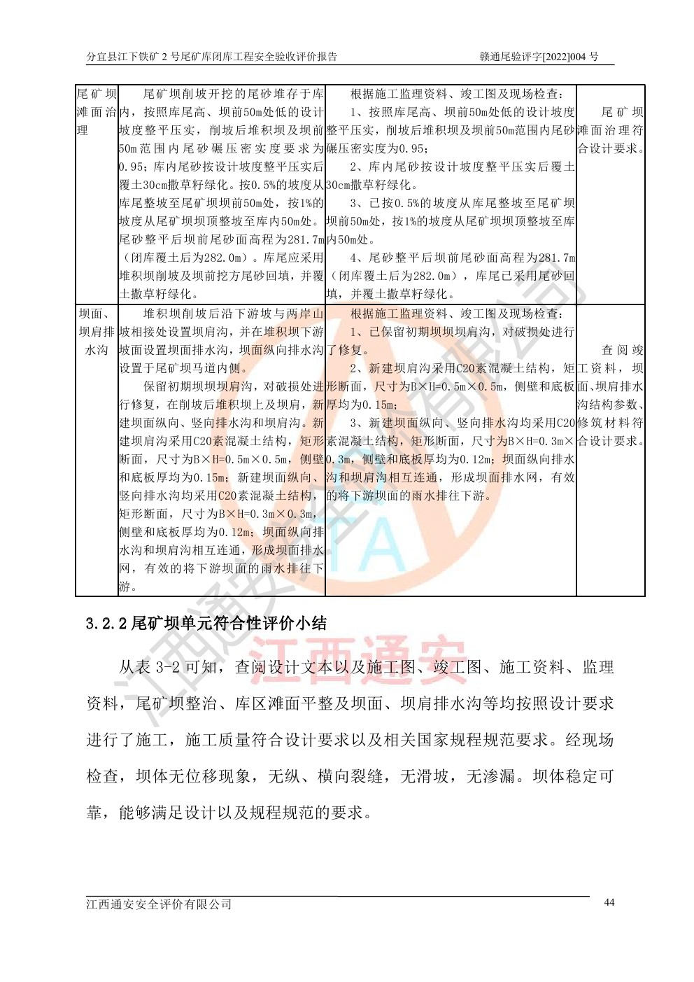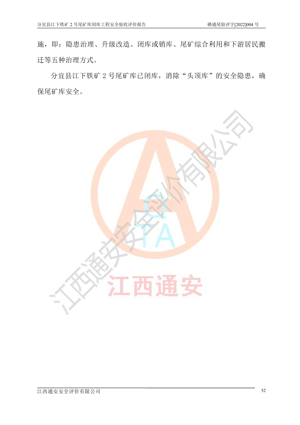 分宜縣江下鐵礦2號尾礦庫閉庫工程安全驗收評價報告