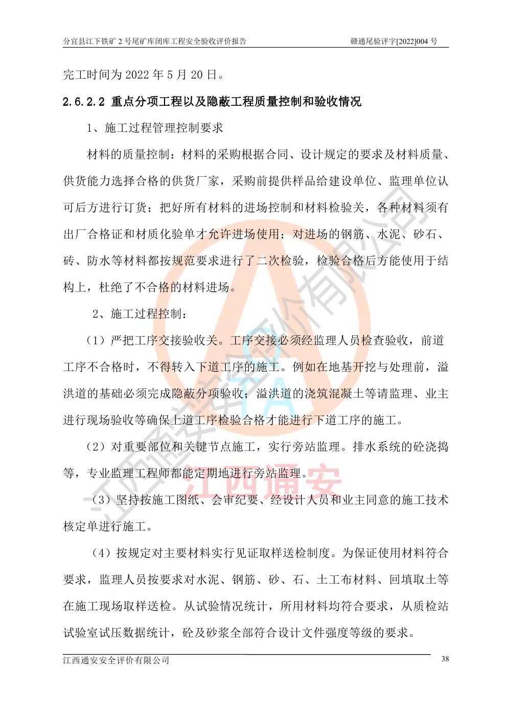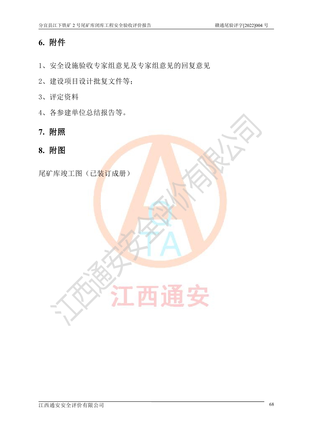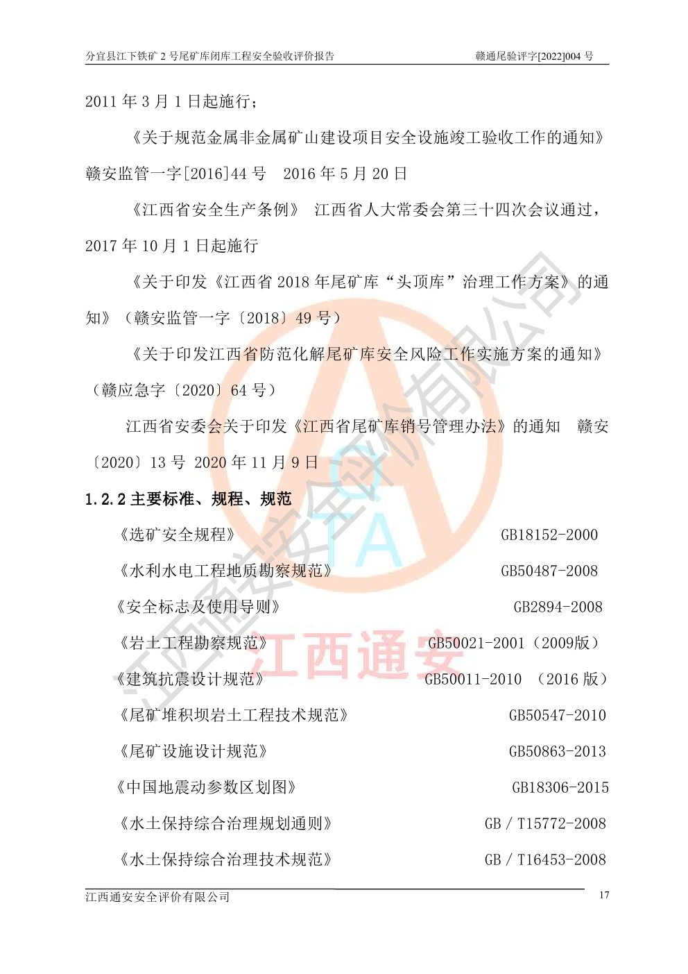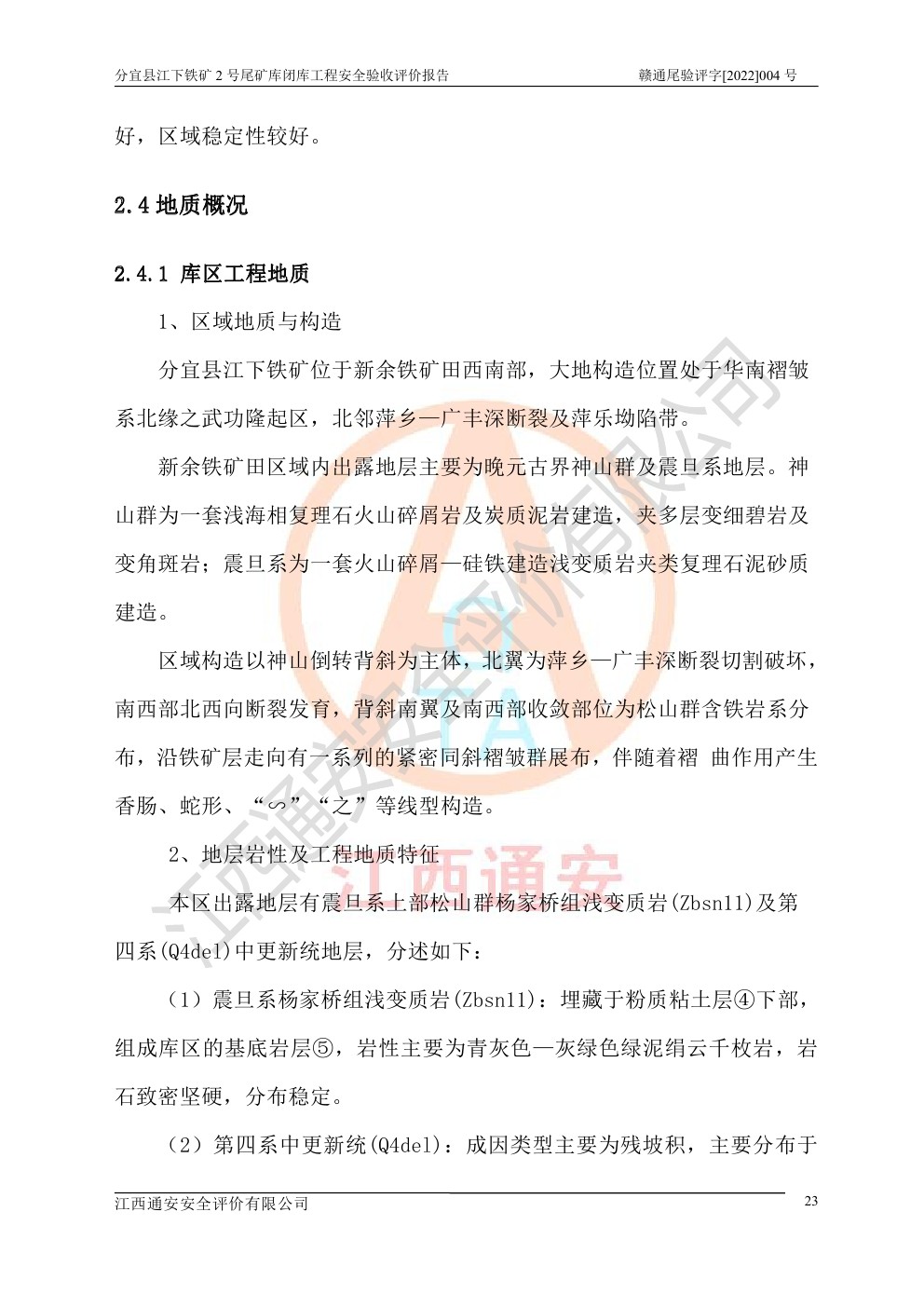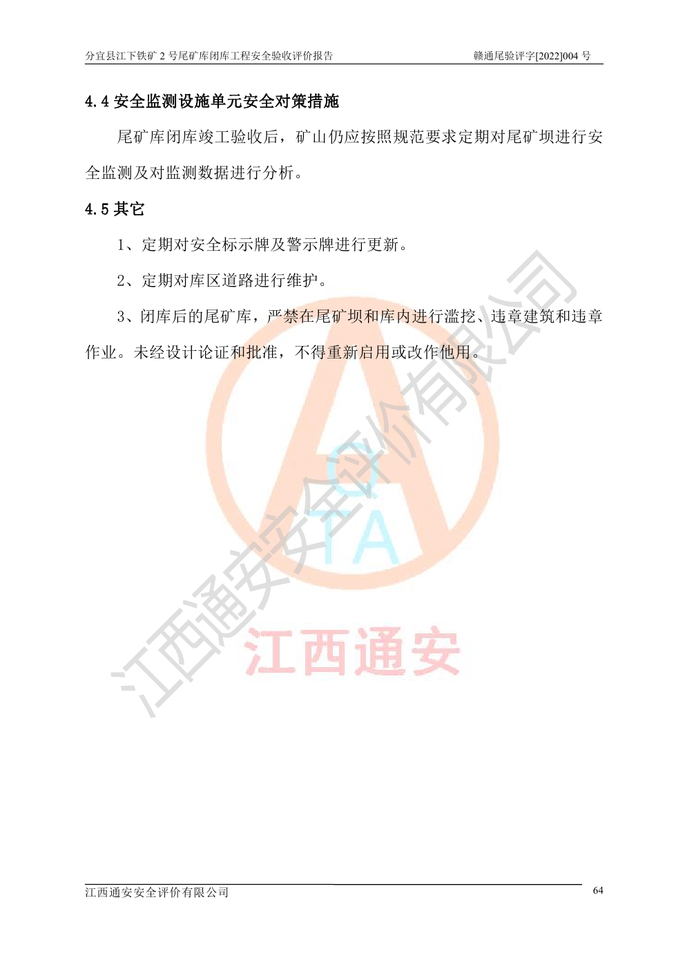 分宜縣江下鐵礦2號尾礦庫閉庫工程安全驗收評價報告
