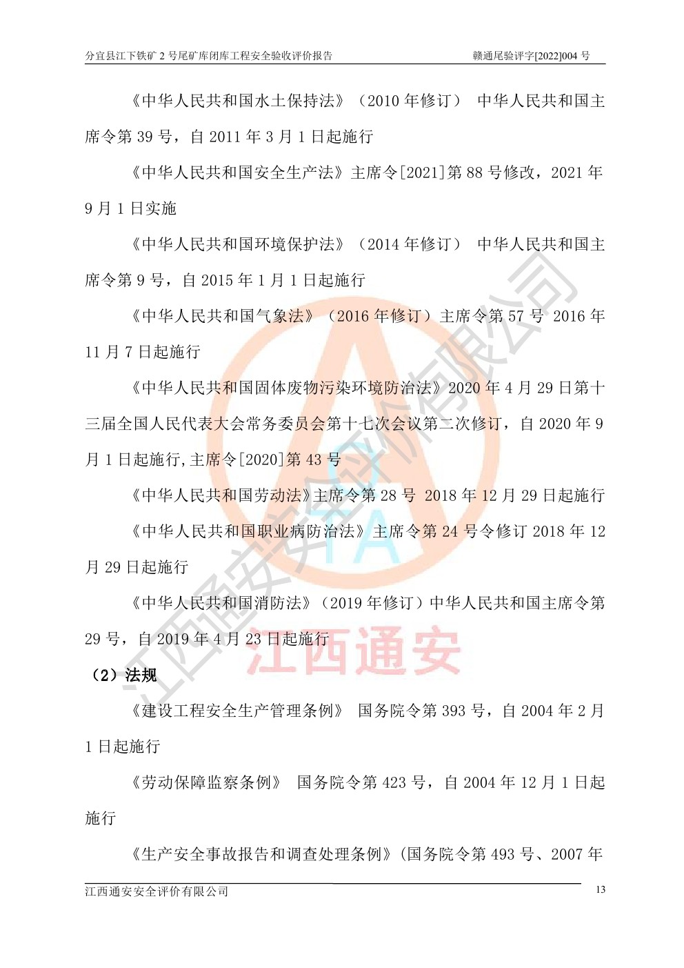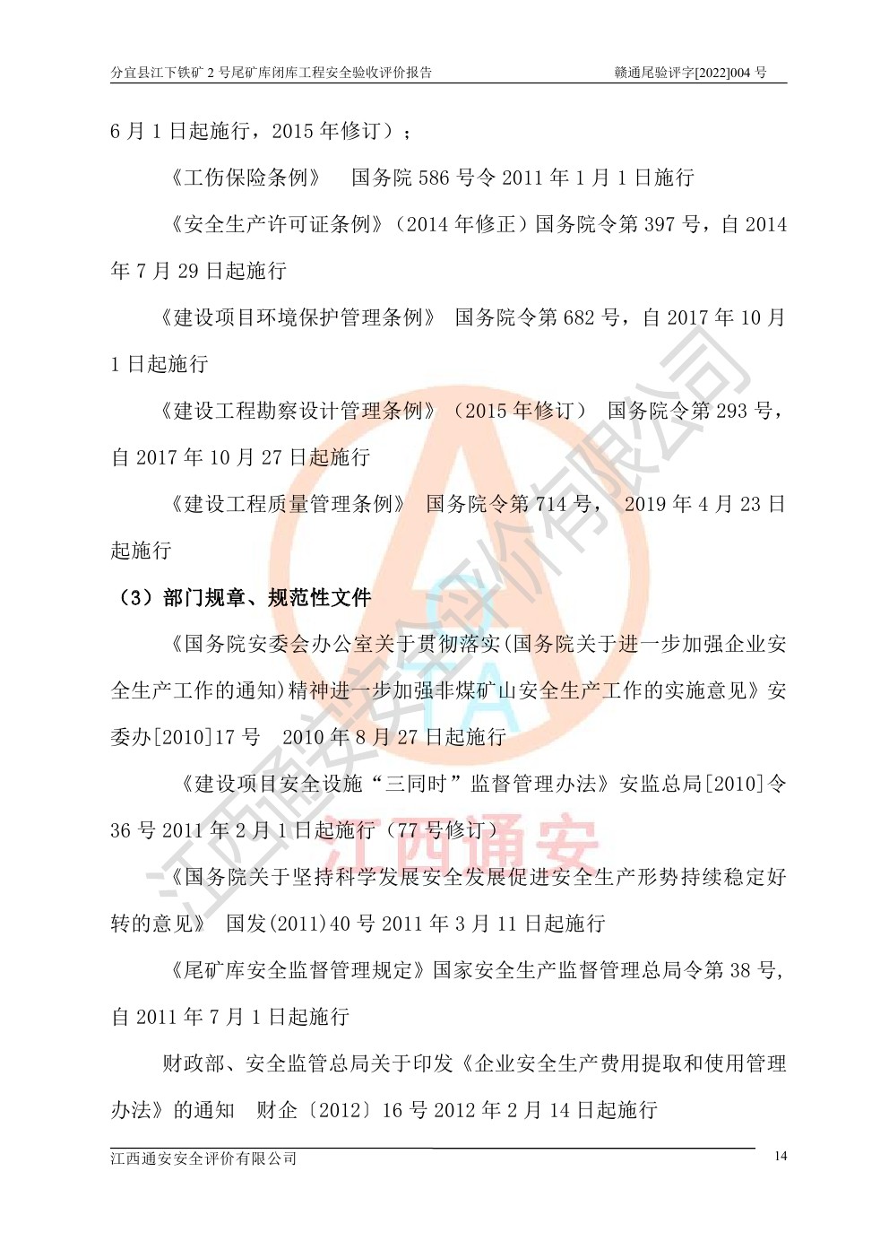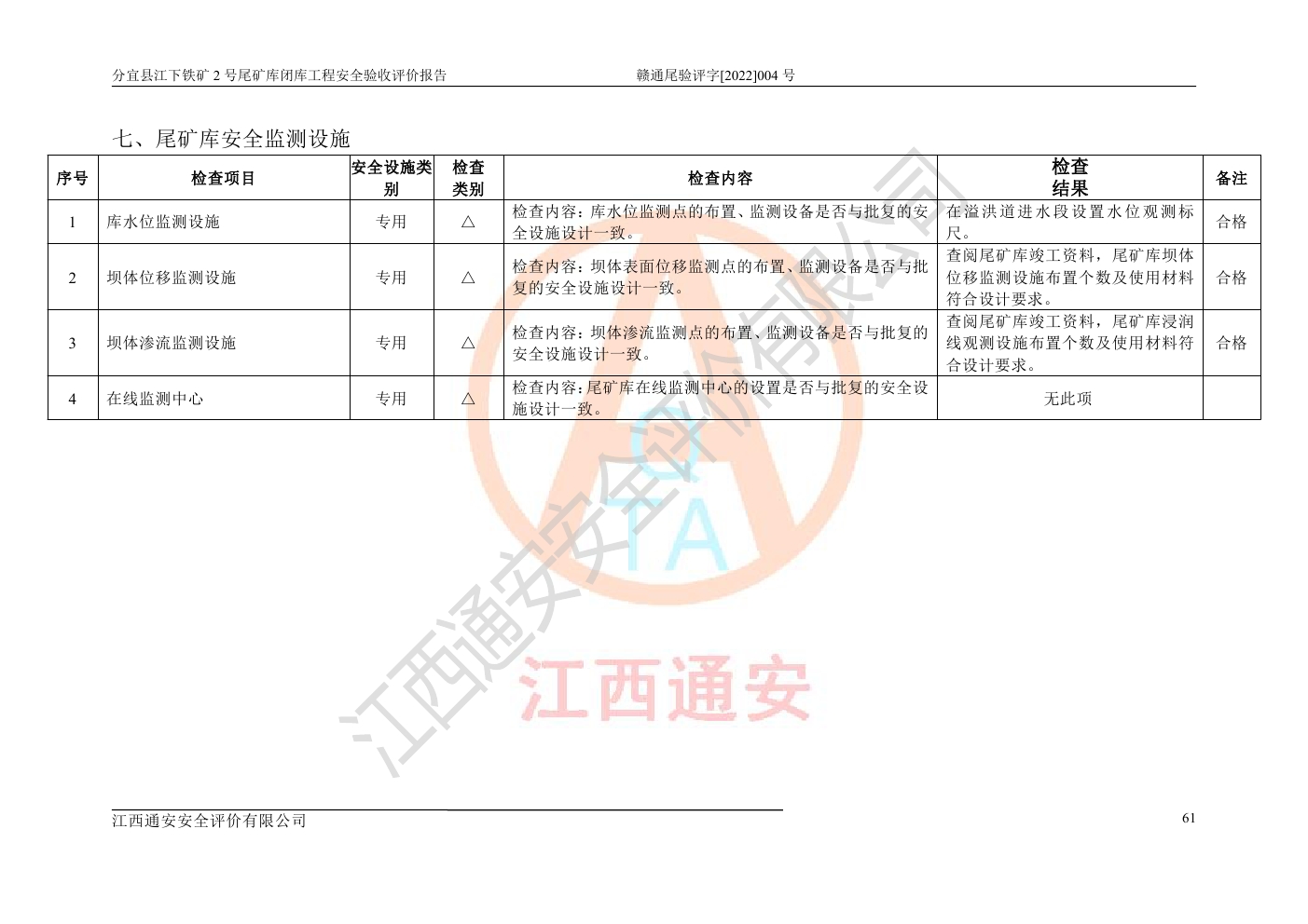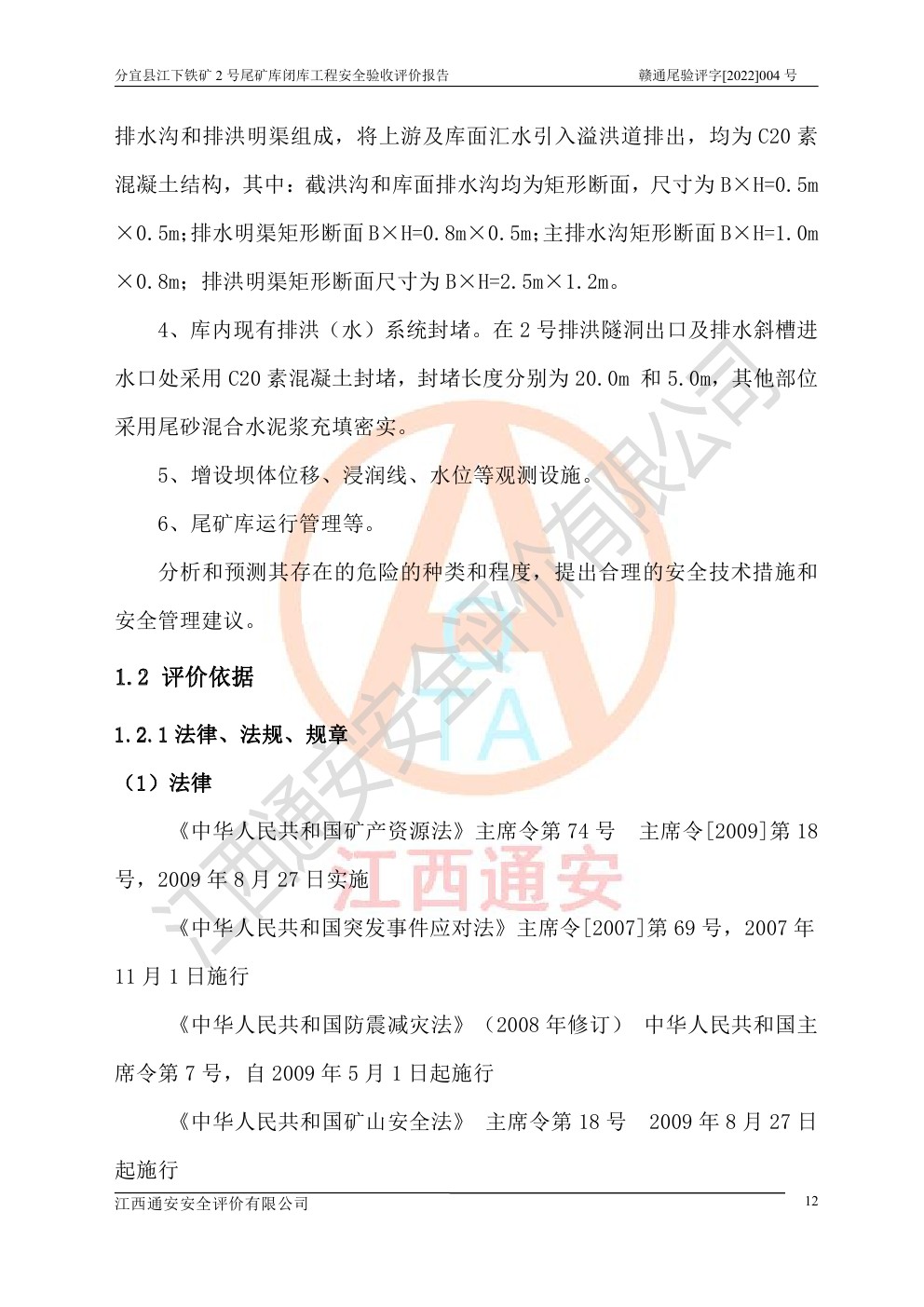 分宜縣江下鐵礦2號尾礦庫閉庫工程安全驗收評價報告