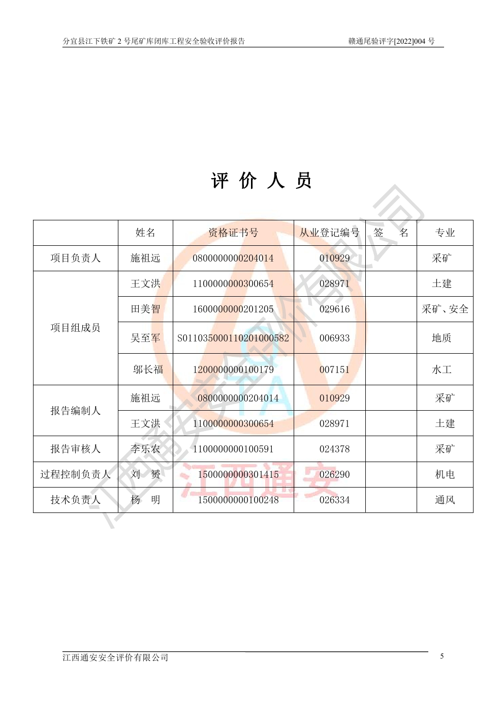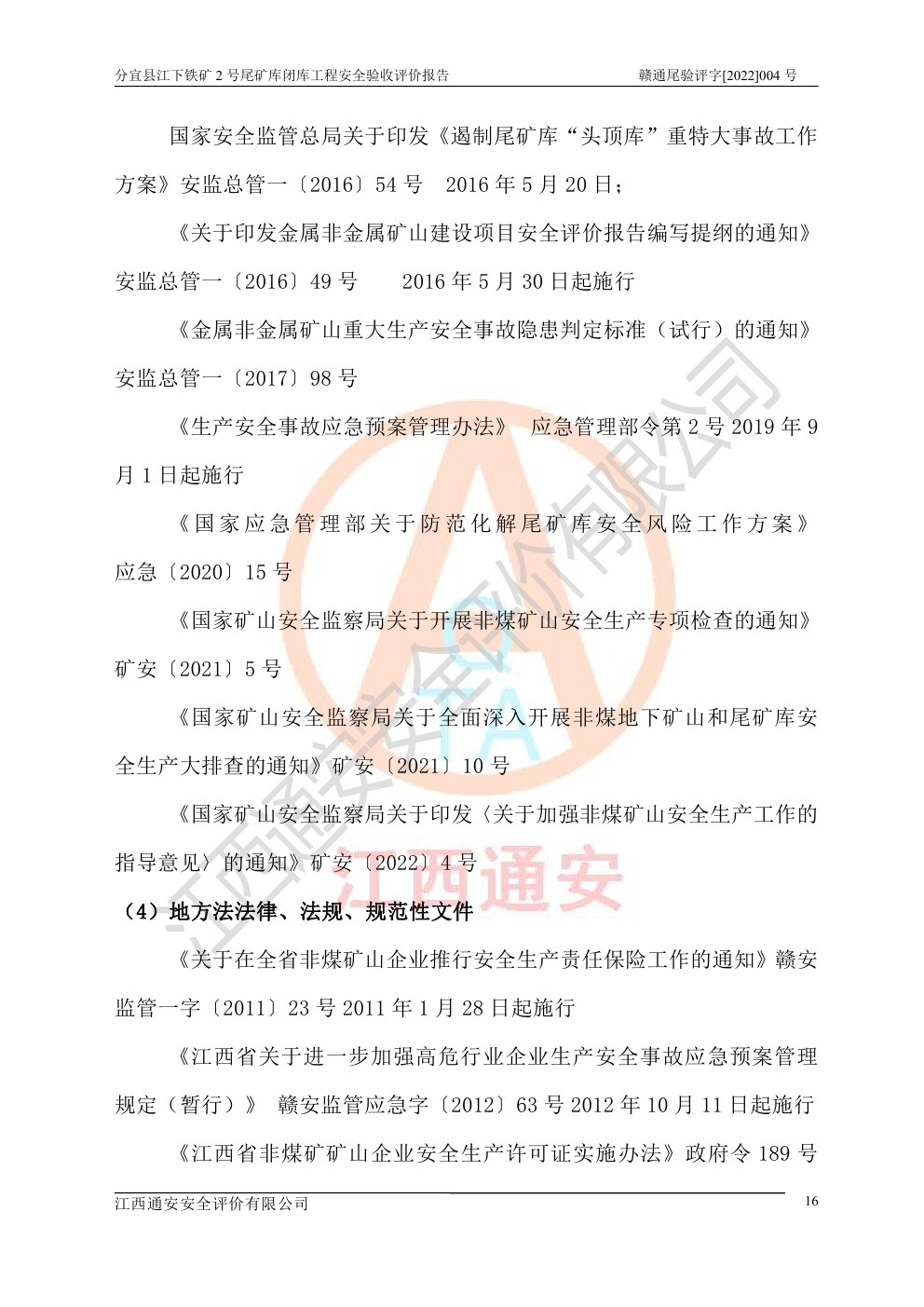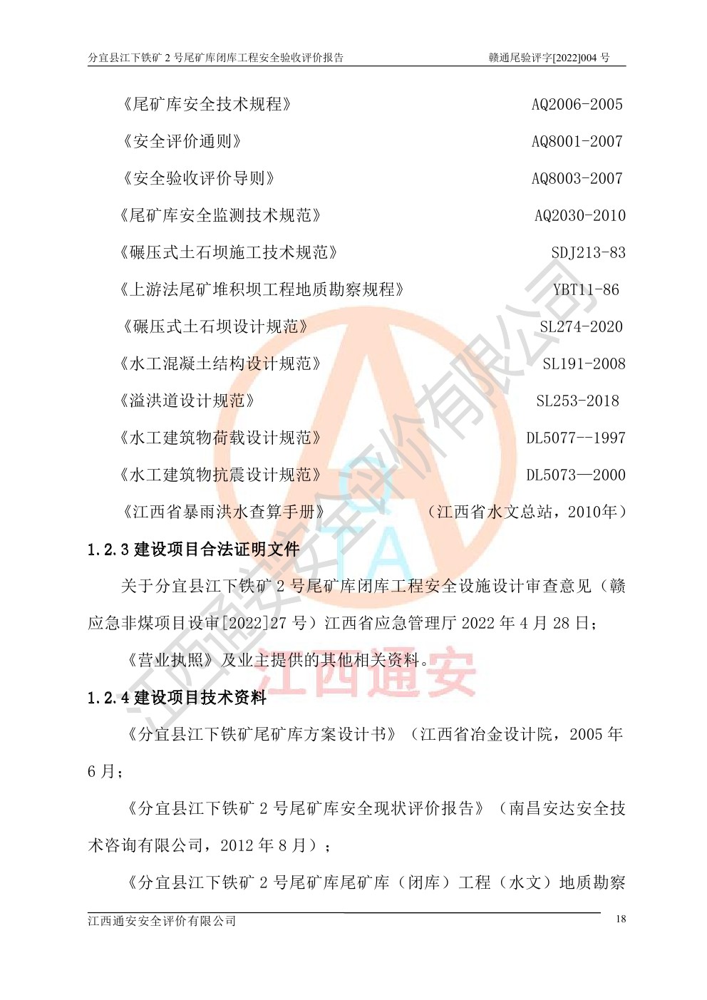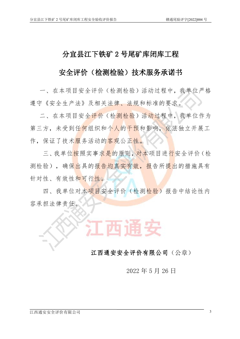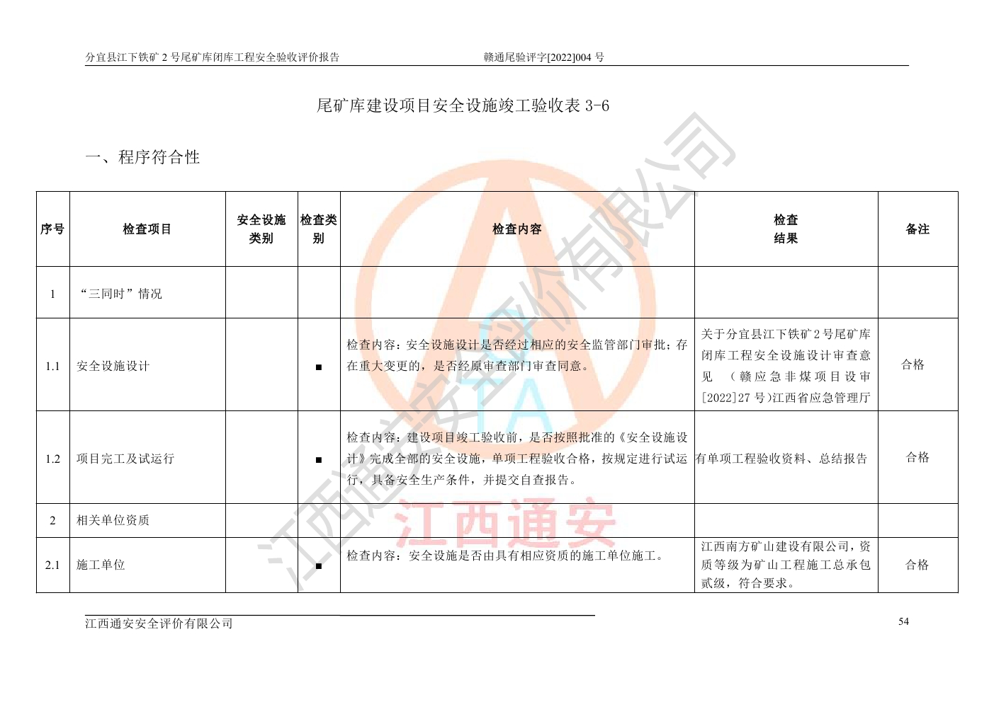 分宜縣江下鐵礦2號尾礦庫閉庫工程安全驗收評價報告
