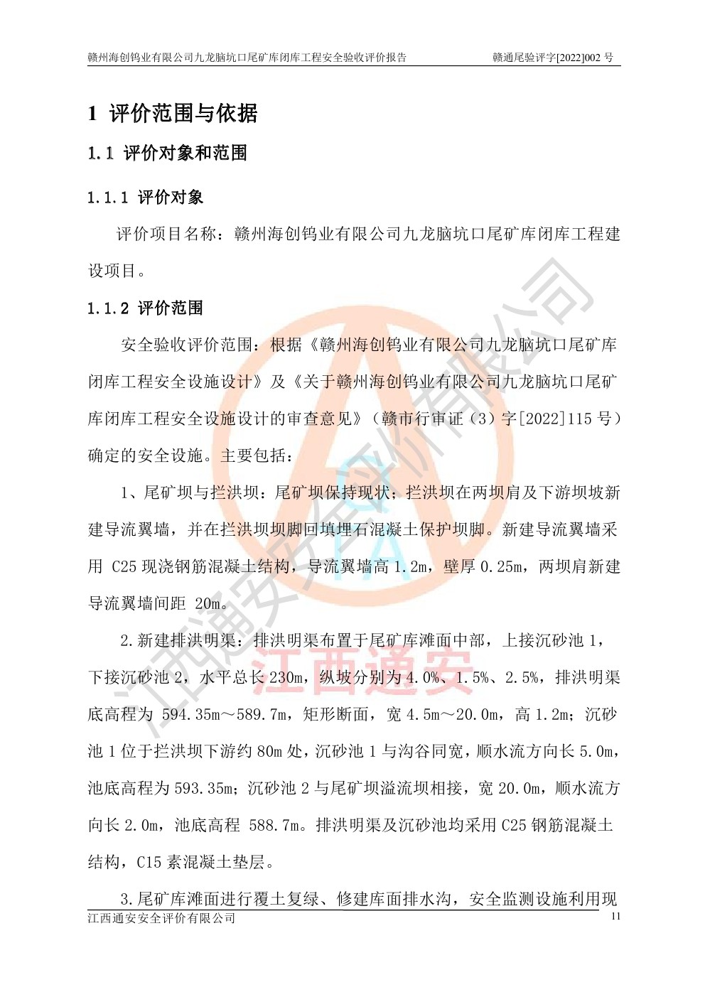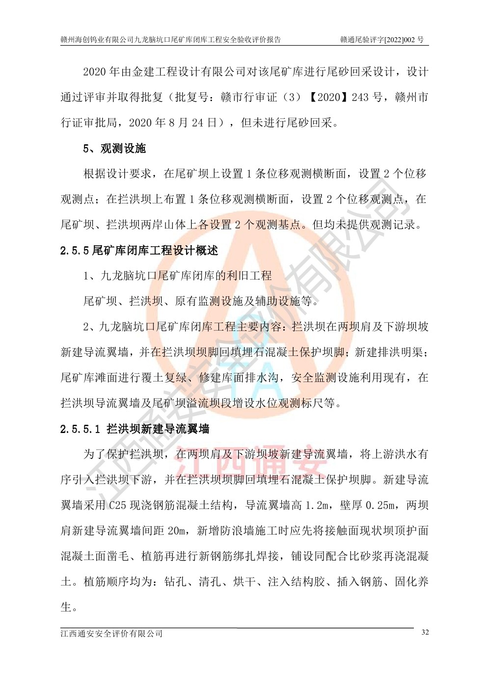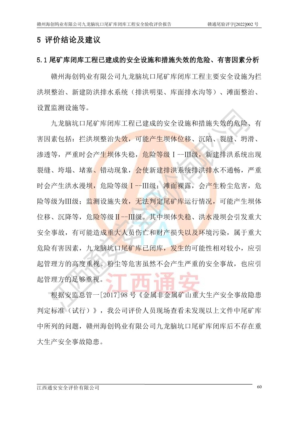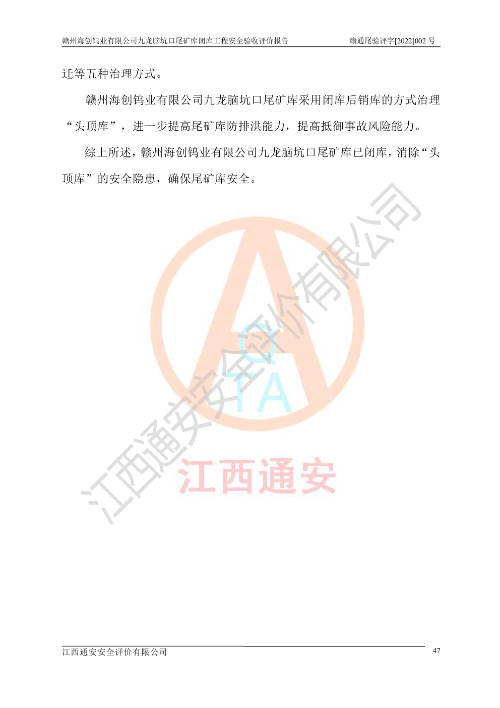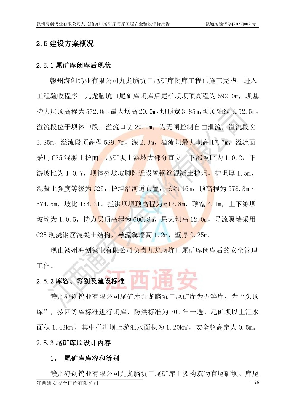 贛州海創(chuàng)鎢業(yè)有限公司九龍腦坑口尾礦庫(kù)閉庫(kù)工程安全驗(yàn)收評(píng)價(jià)報(bào)告