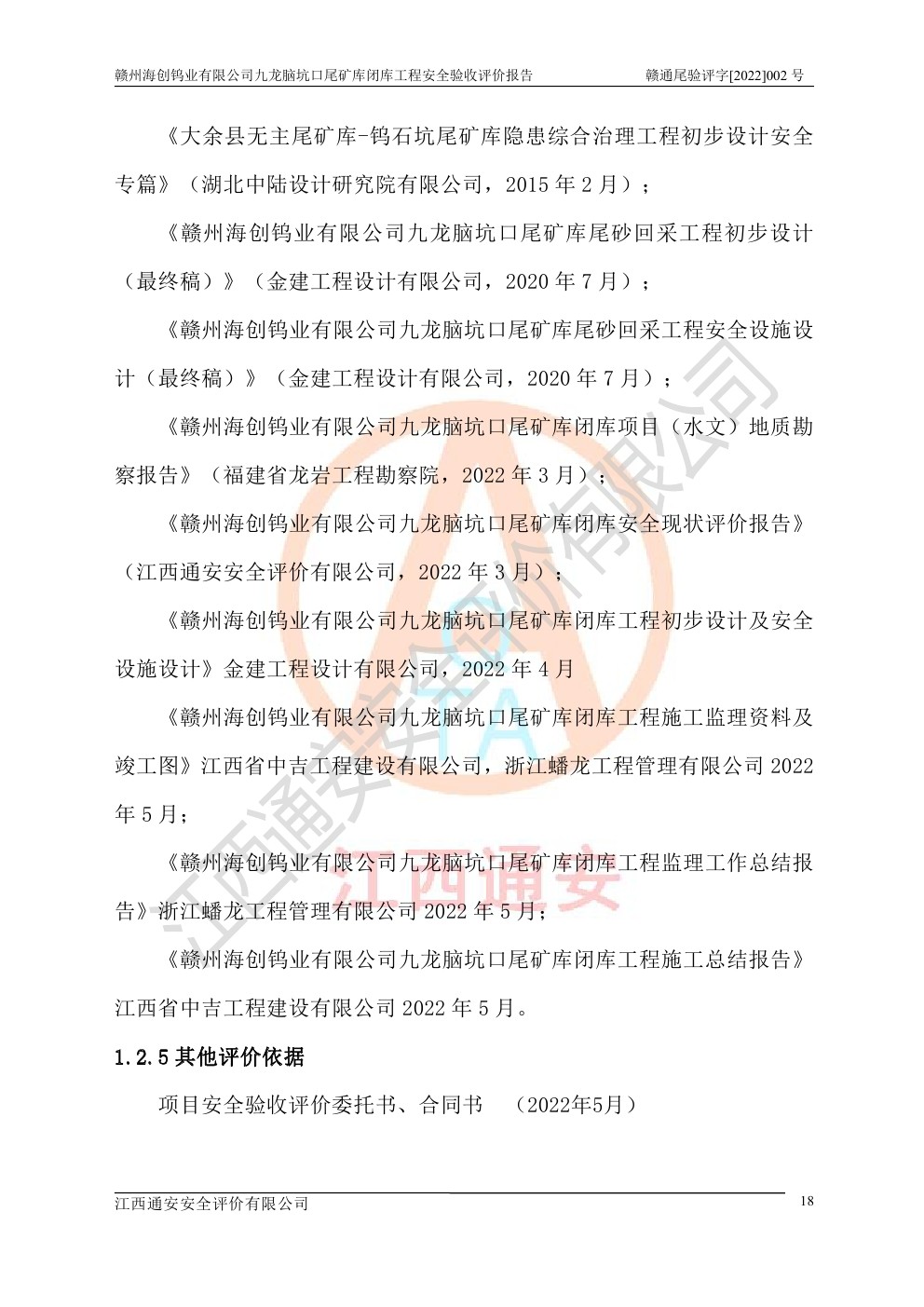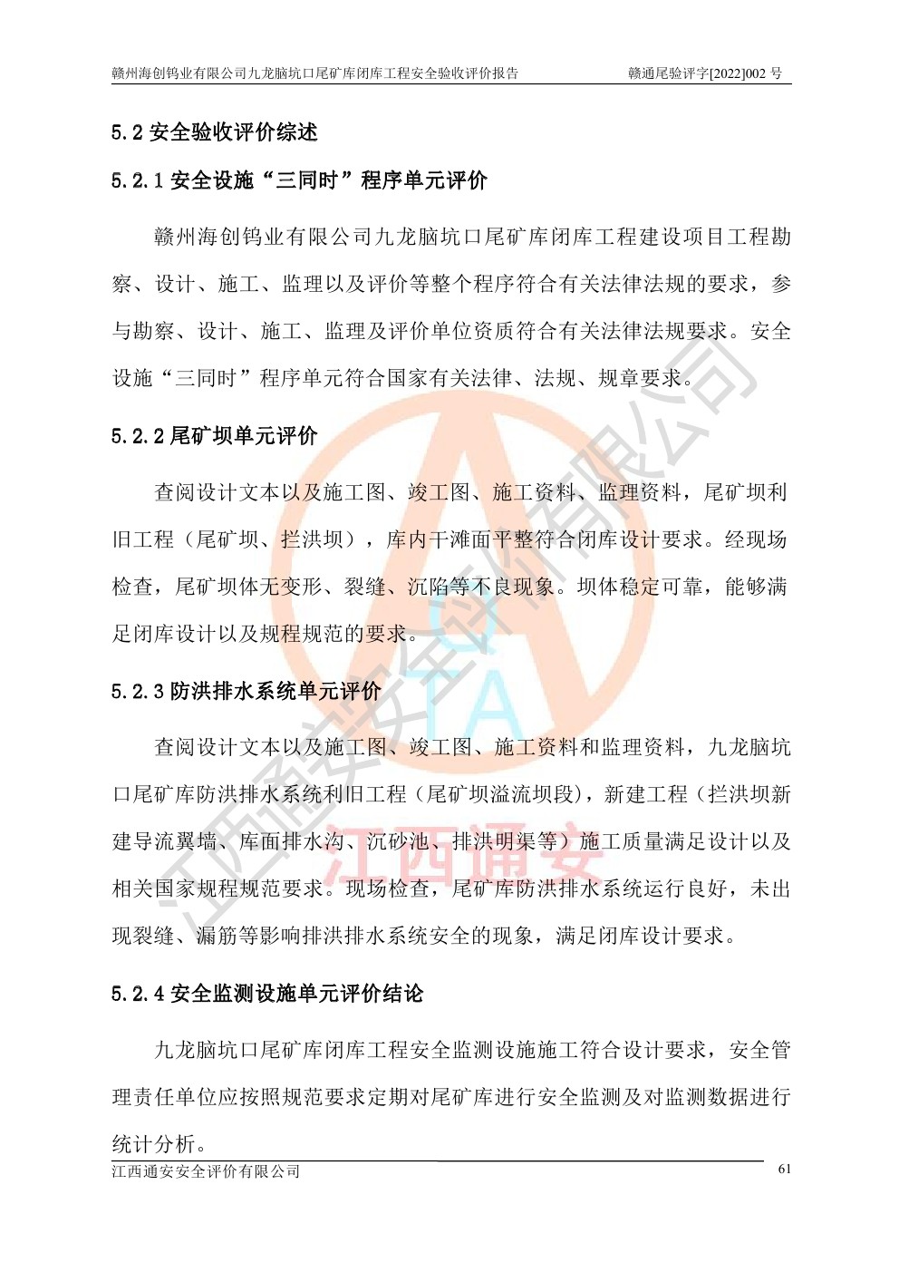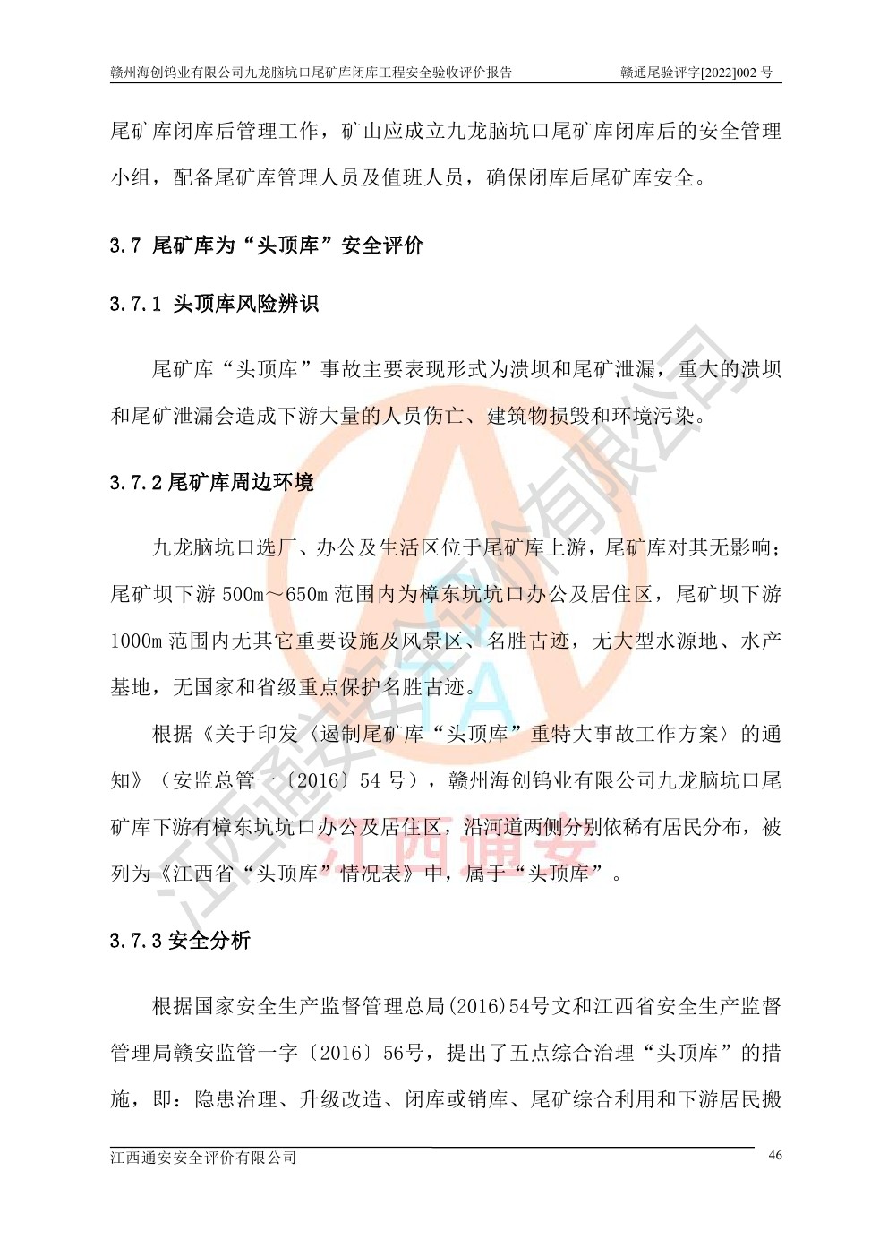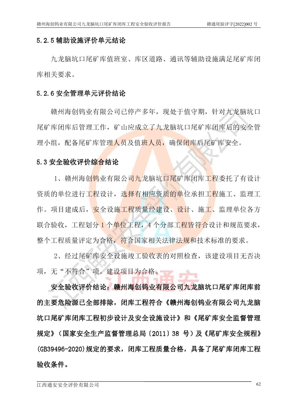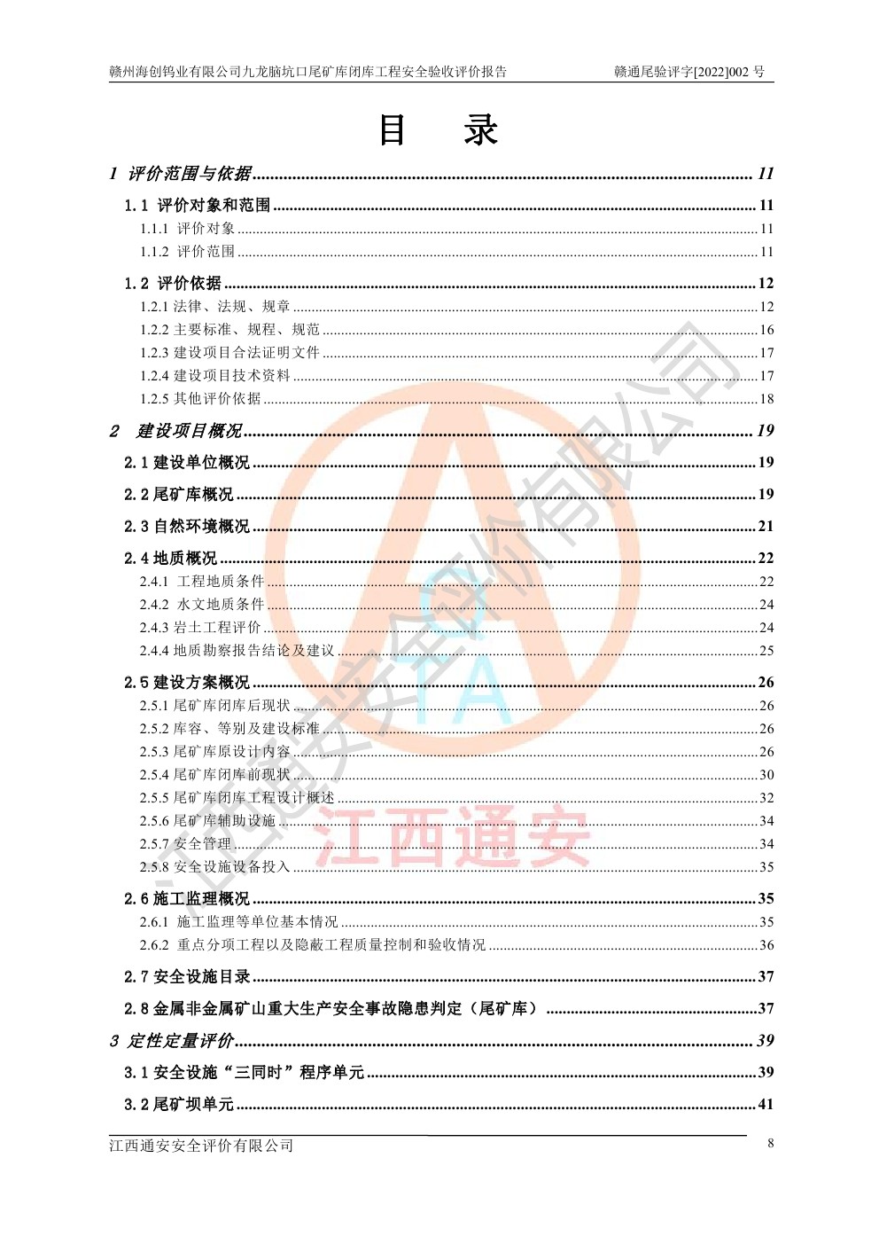 贛州海創(chuàng)鎢業(yè)有限公司九龍腦坑口尾礦庫(kù)閉庫(kù)工程安全驗(yàn)收評(píng)價(jià)報(bào)告