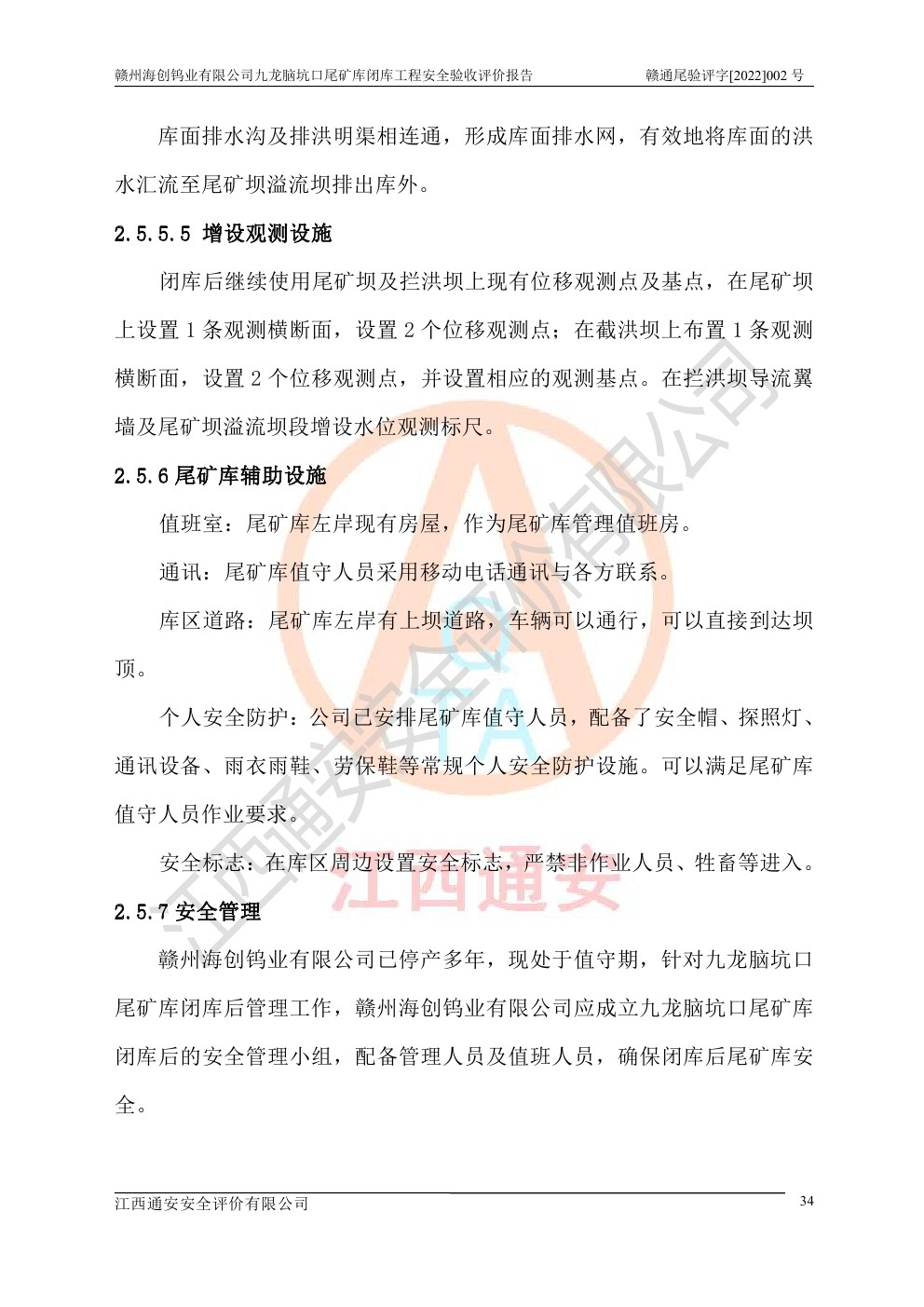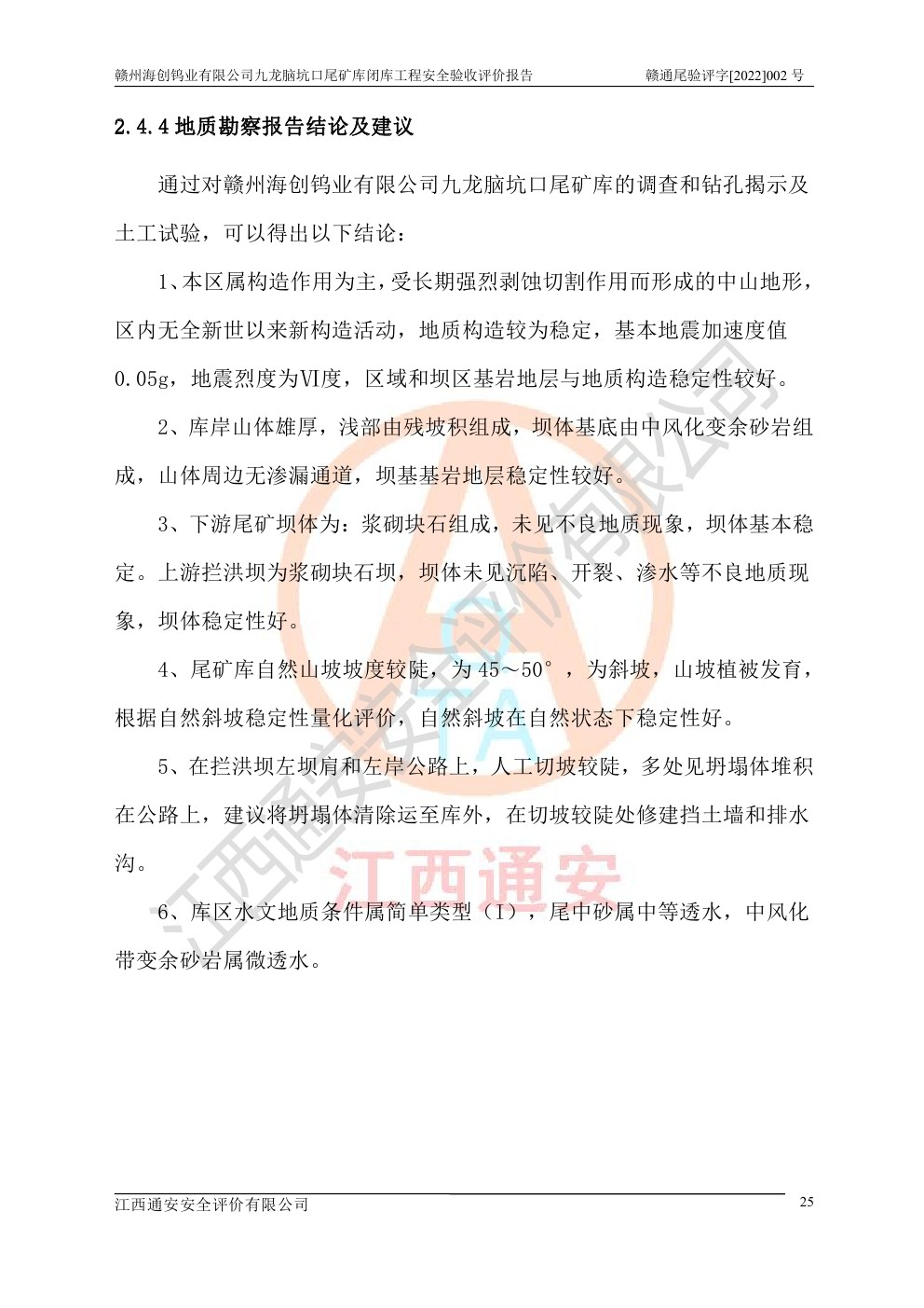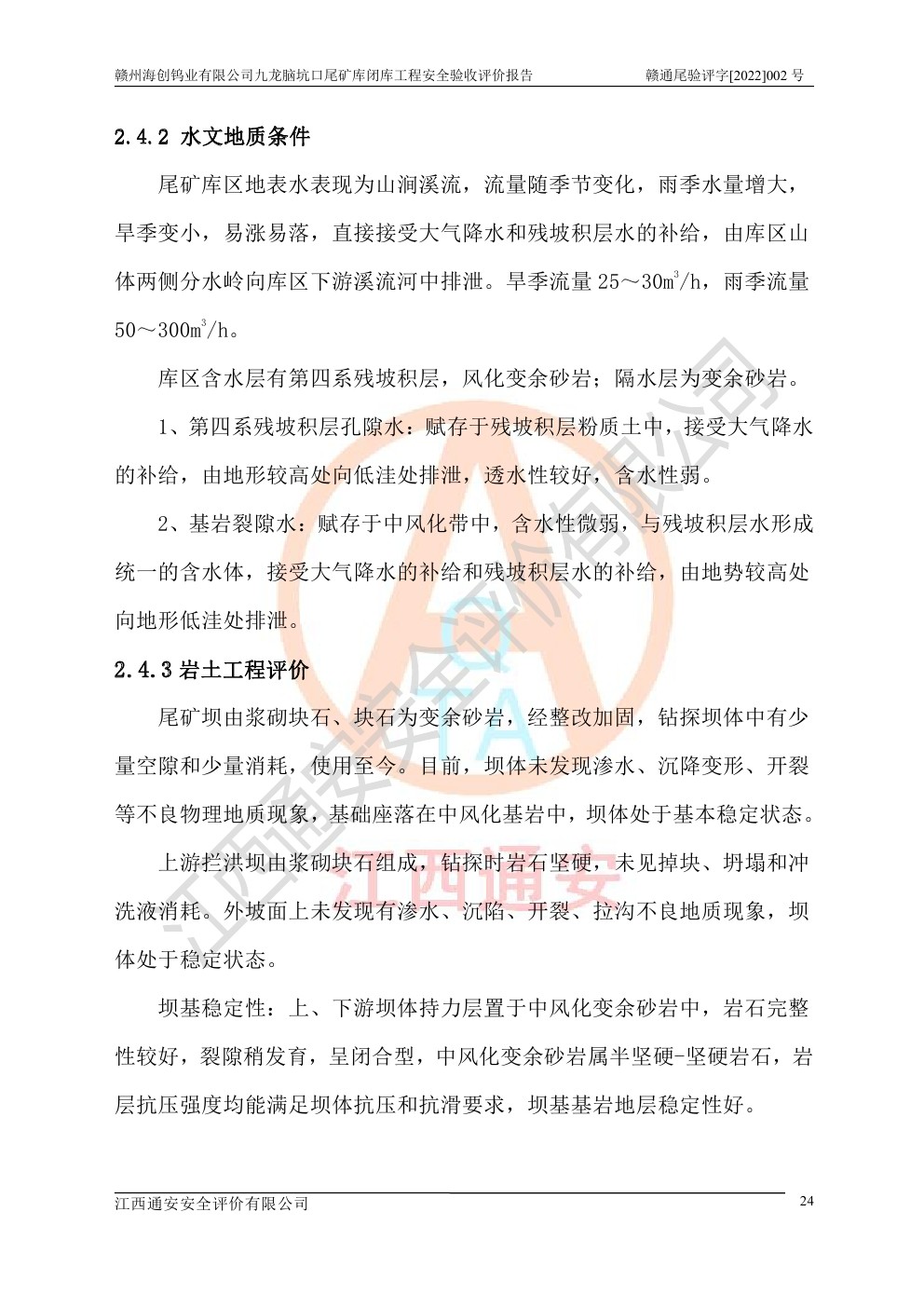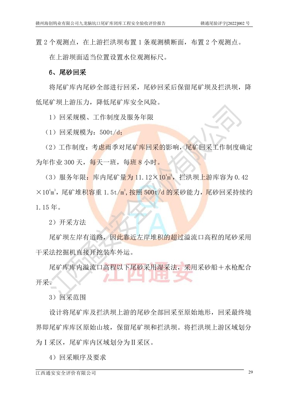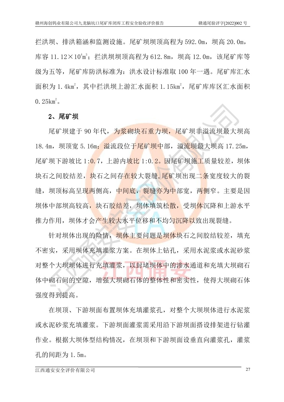 贛州海創(chuàng)鎢業(yè)有限公司九龍腦坑口尾礦庫(kù)閉庫(kù)工程安全驗(yàn)收評(píng)價(jià)報(bào)告