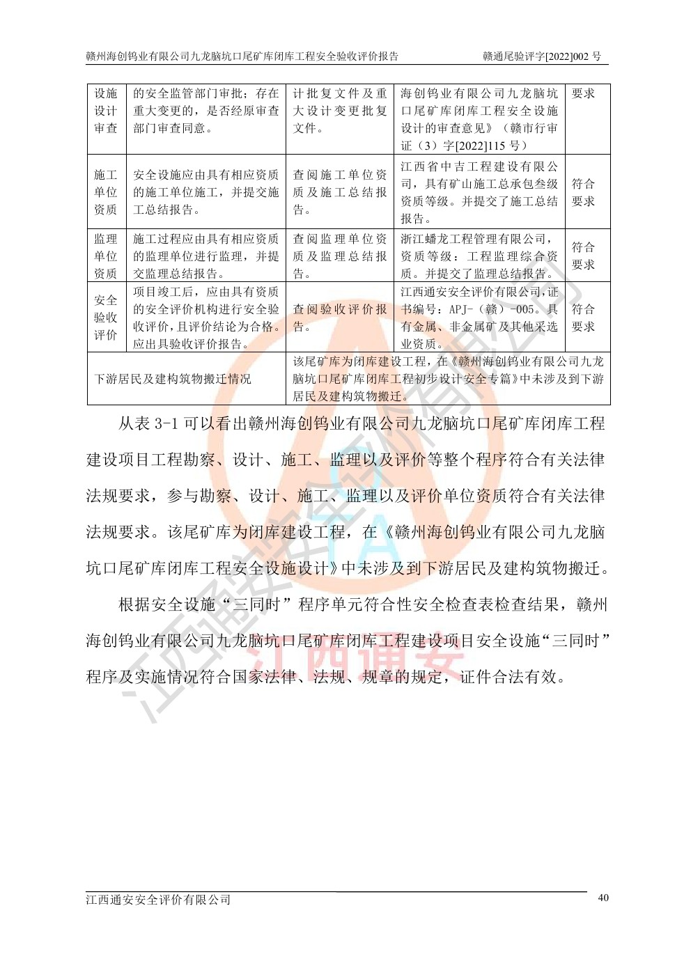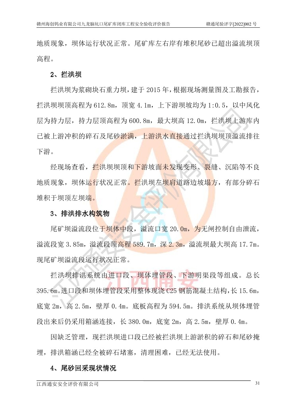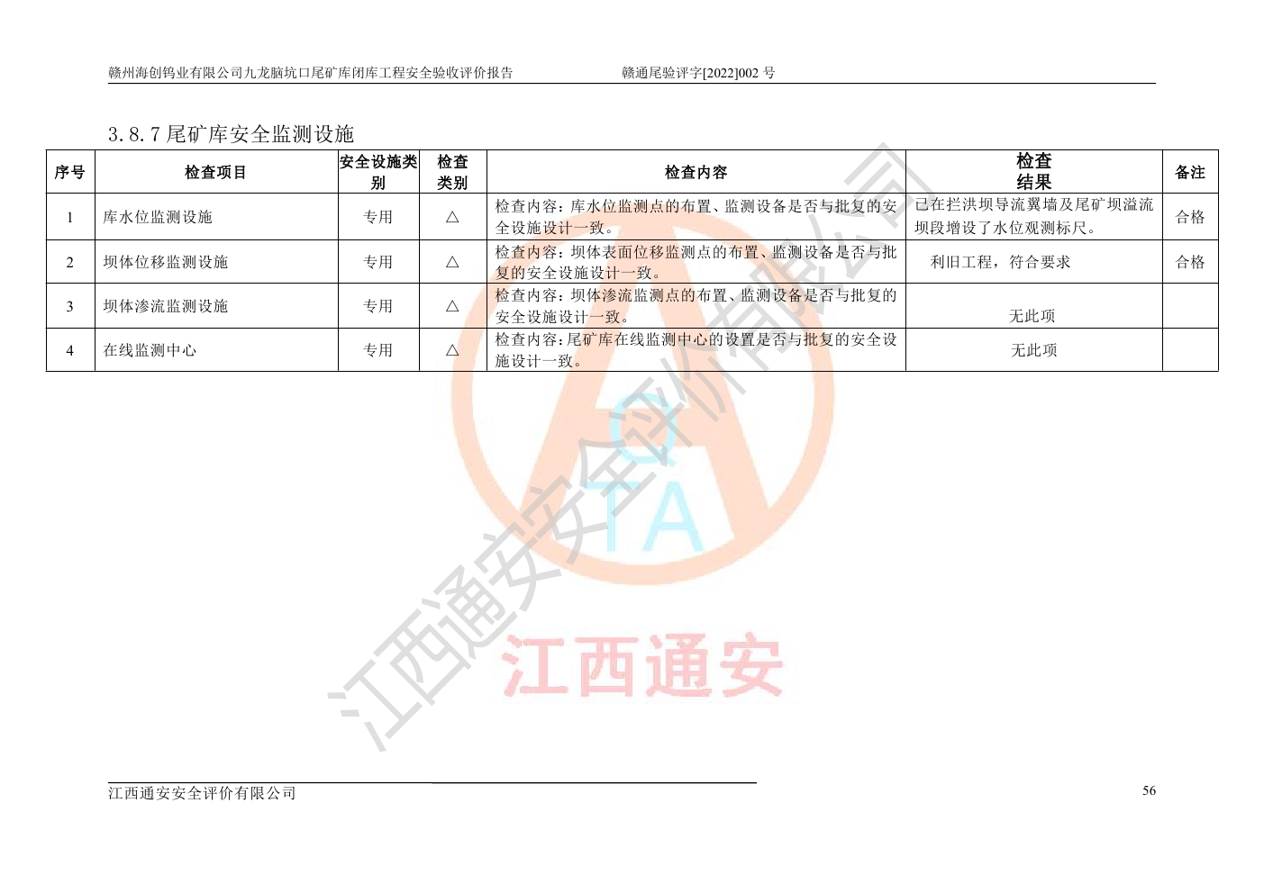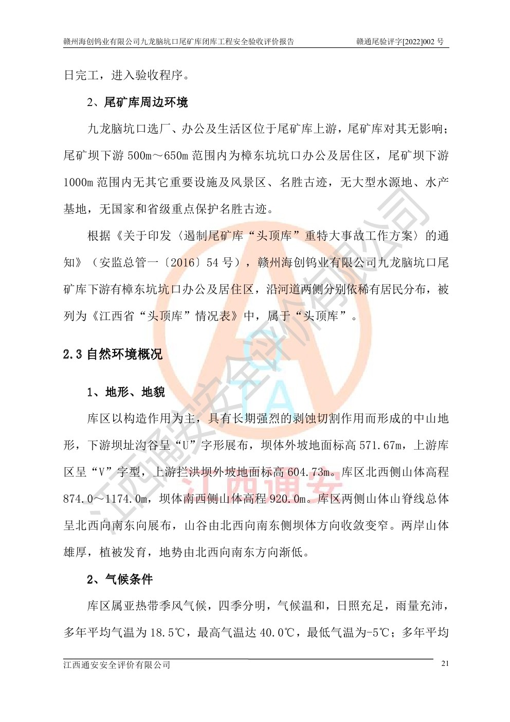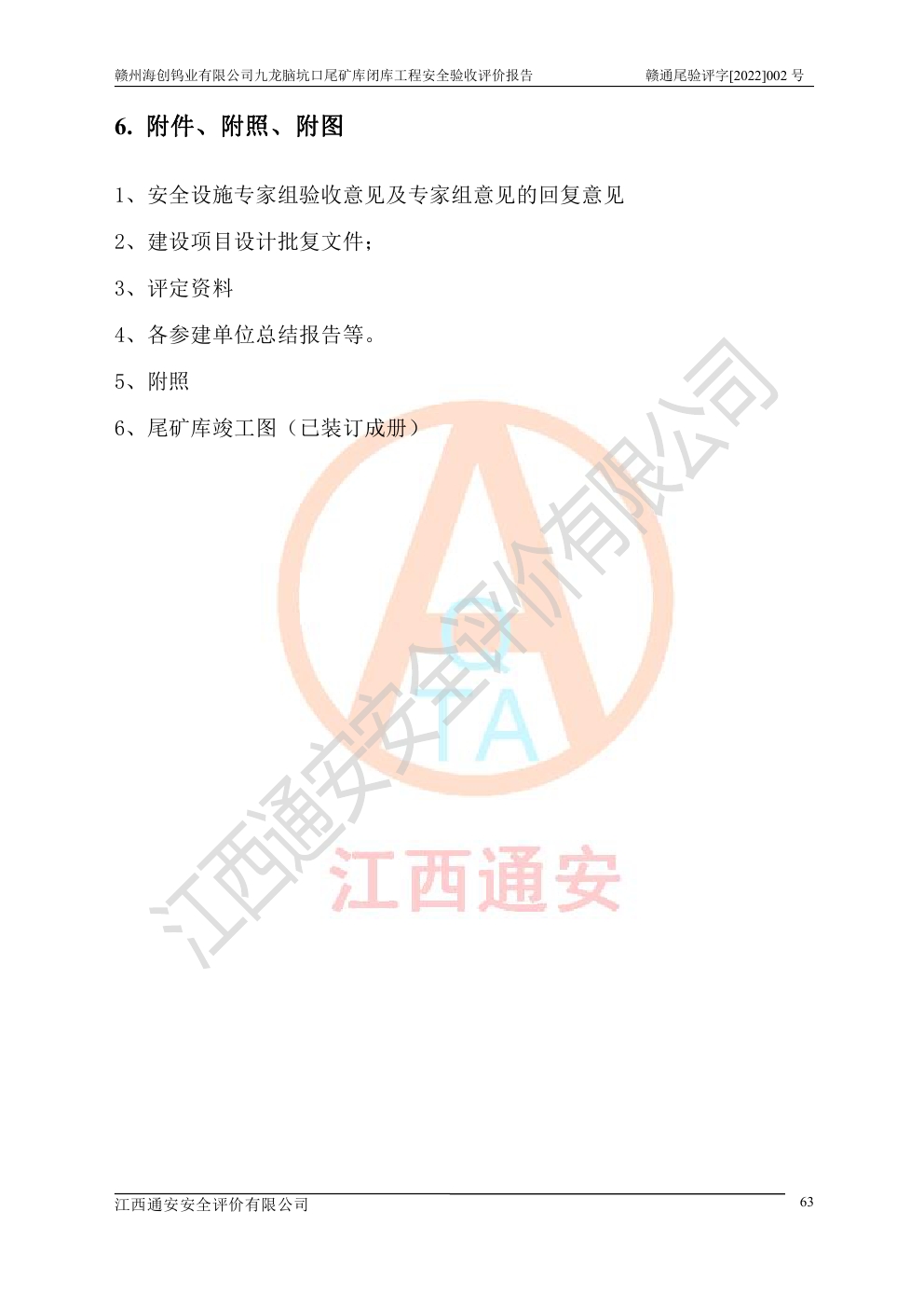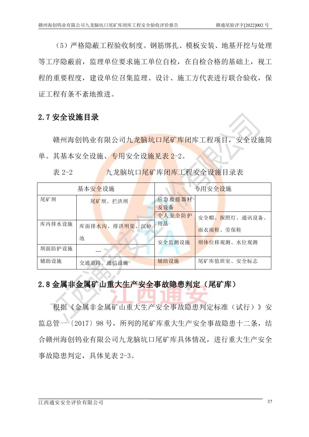 贛州海創(chuàng)鎢業(yè)有限公司九龍腦坑口尾礦庫(kù)閉庫(kù)工程安全驗(yàn)收評(píng)價(jià)報(bào)告