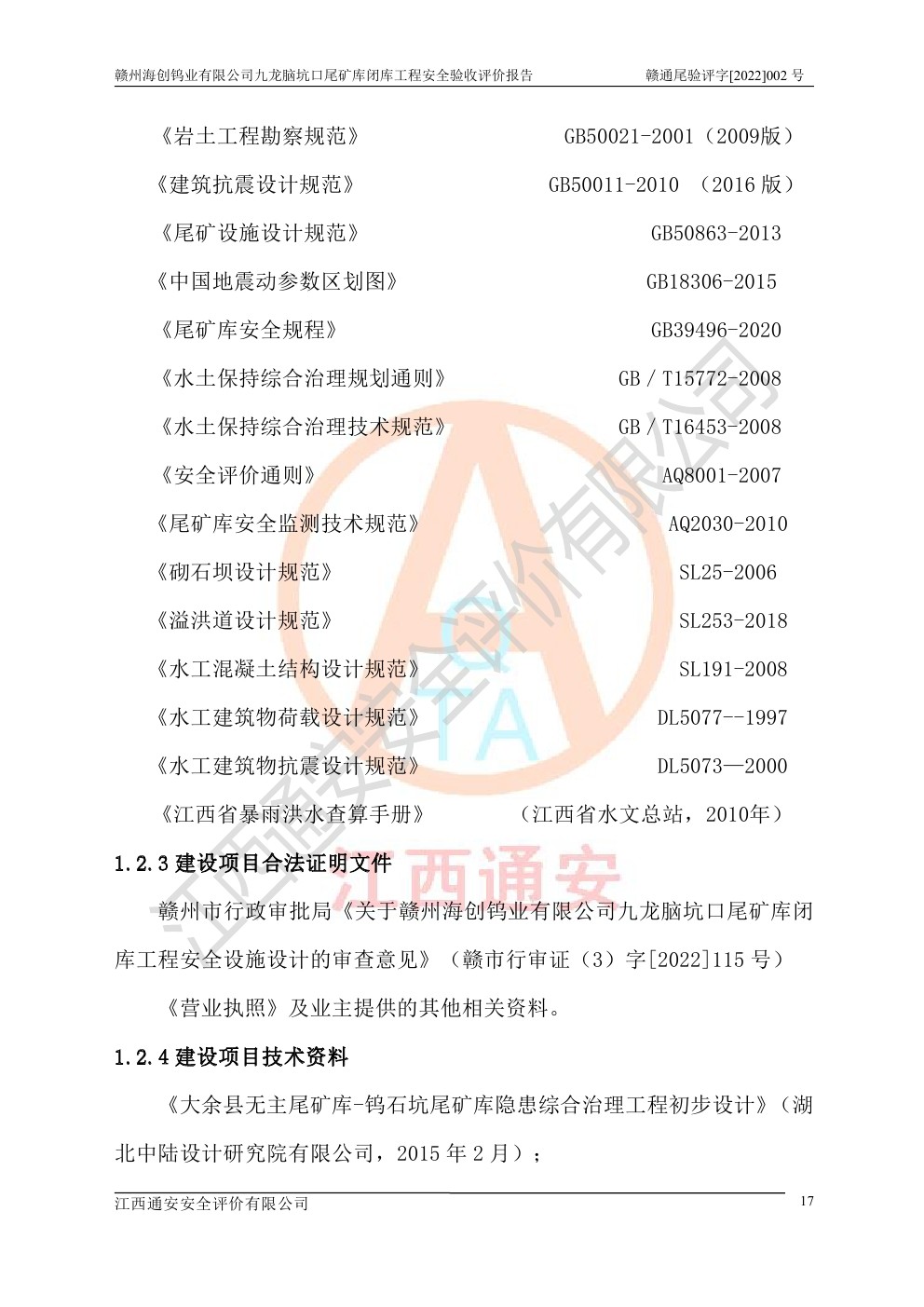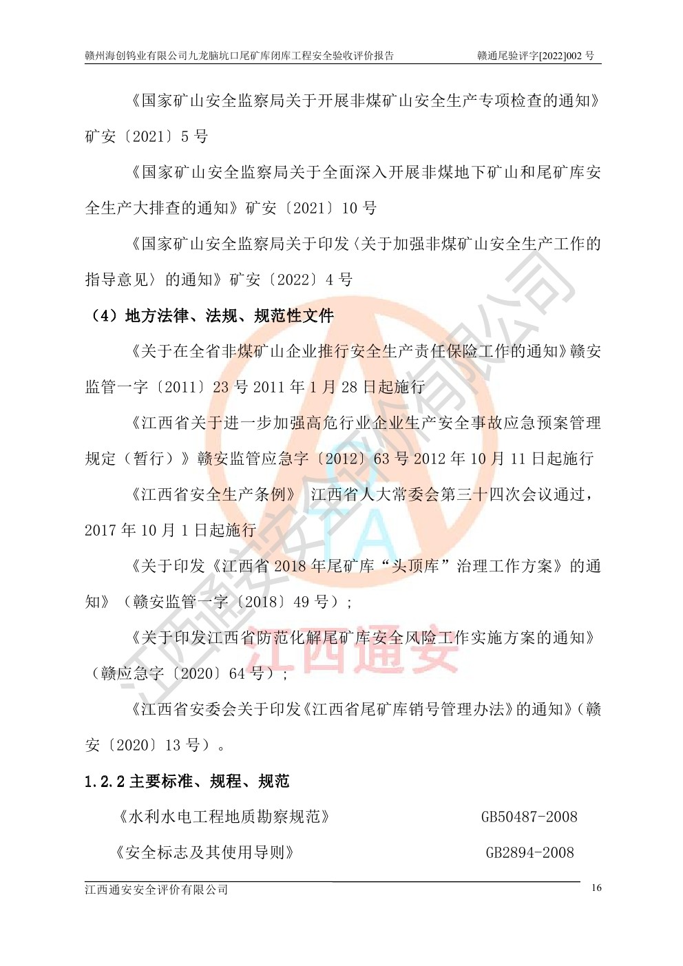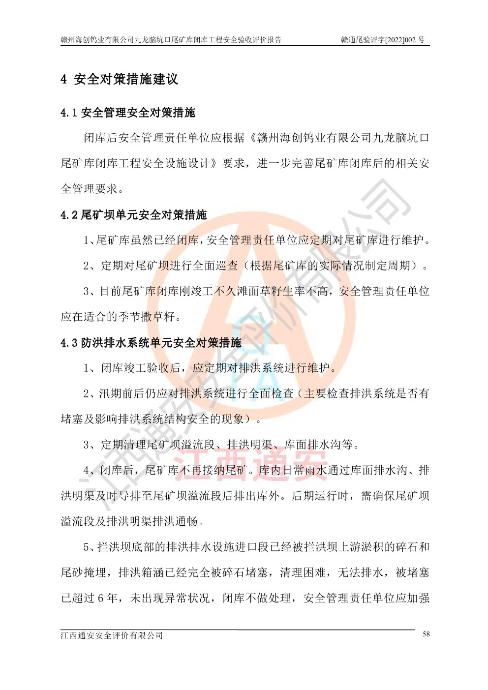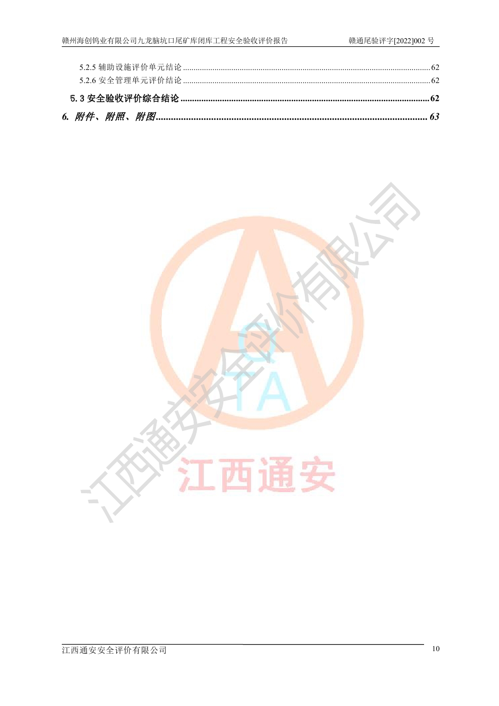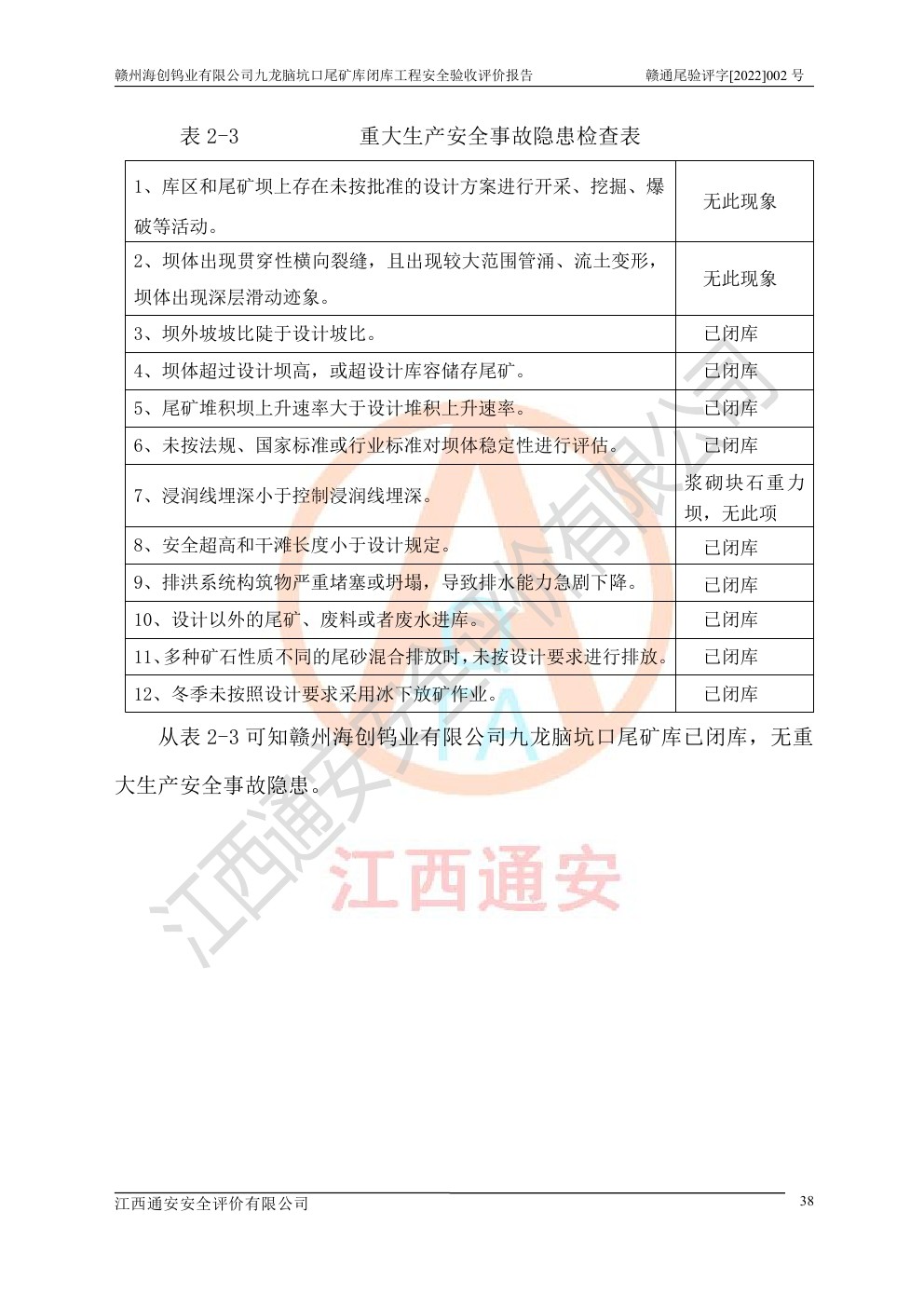贛州海創(chuàng)鎢業(yè)有限公司九龍腦坑口尾礦庫(kù)閉庫(kù)工程安全驗(yàn)收評(píng)價(jià)報(bào)告