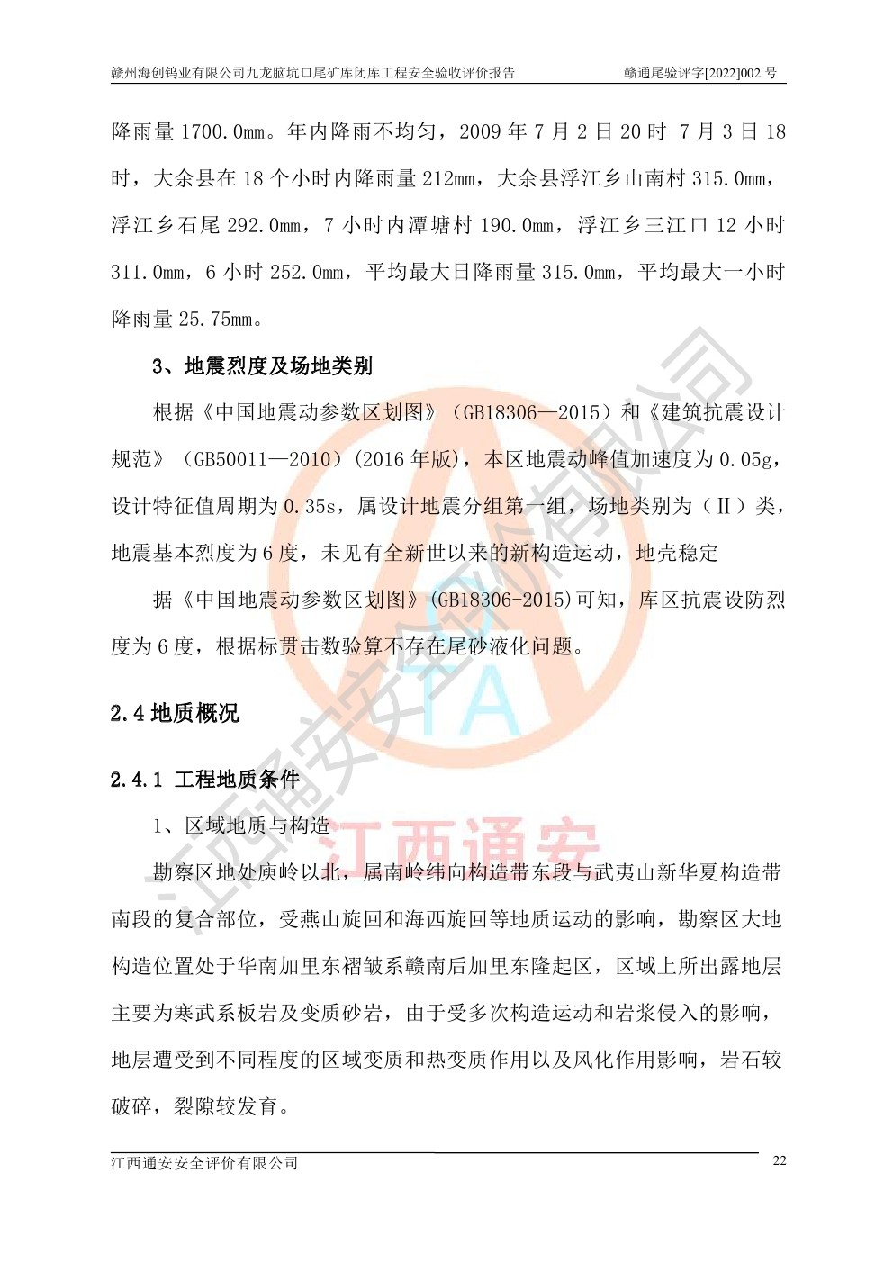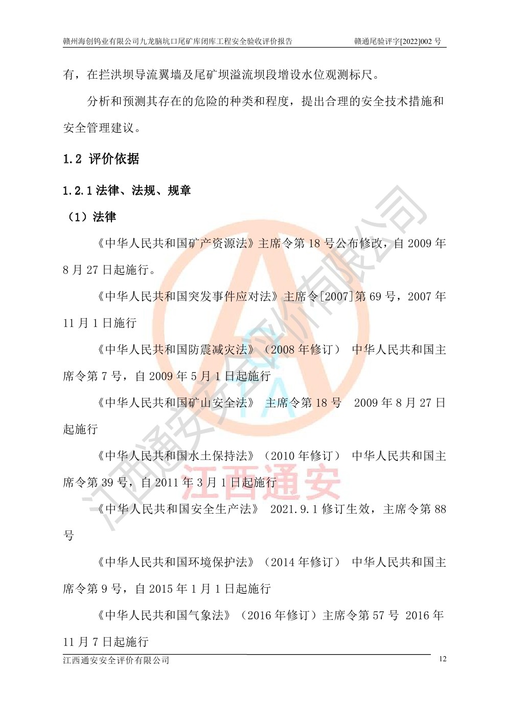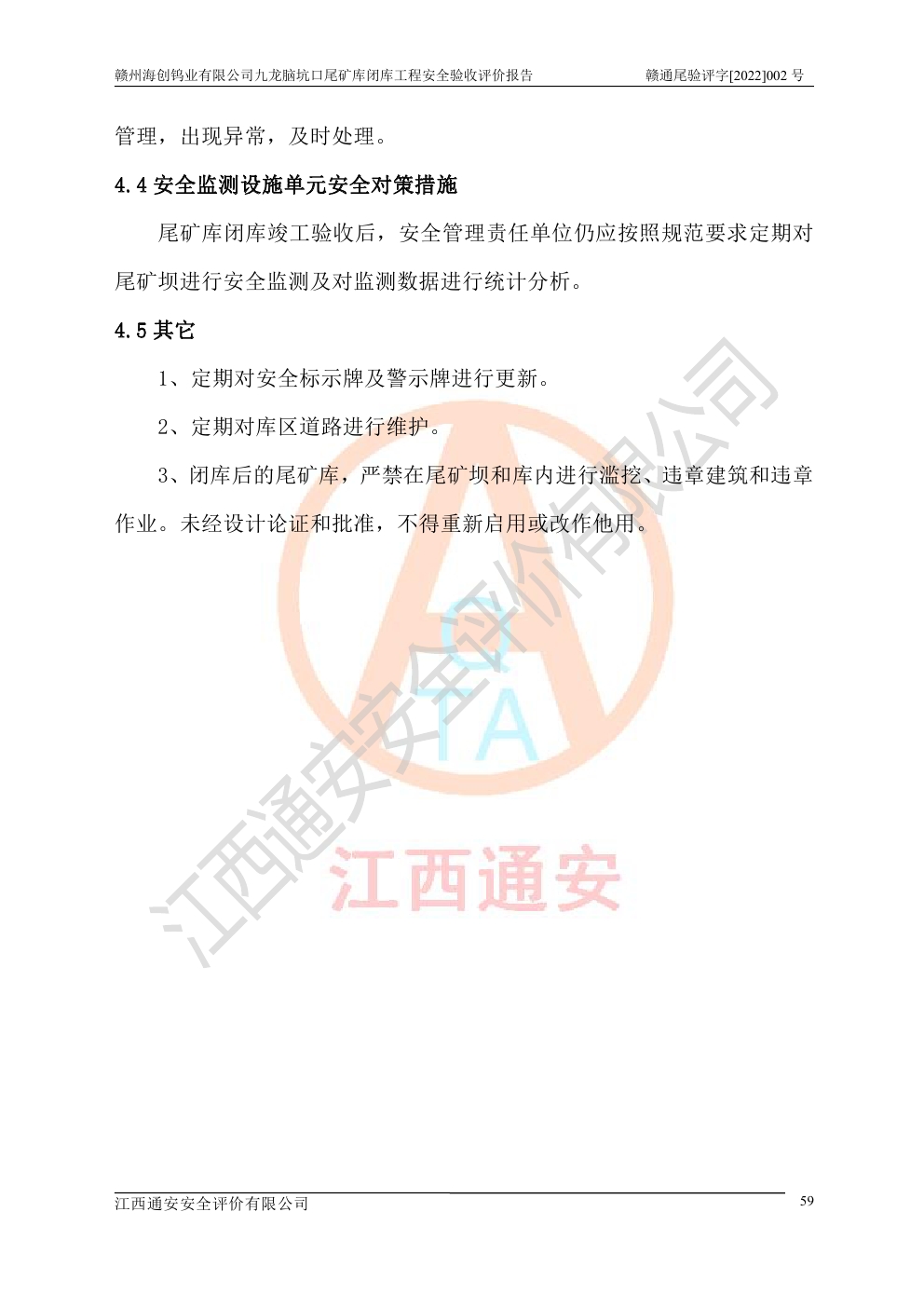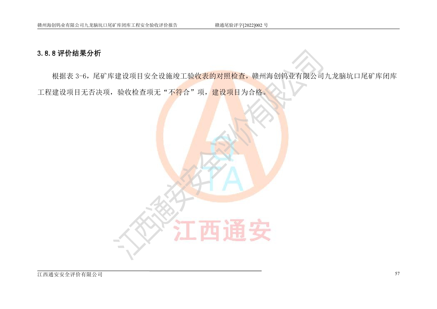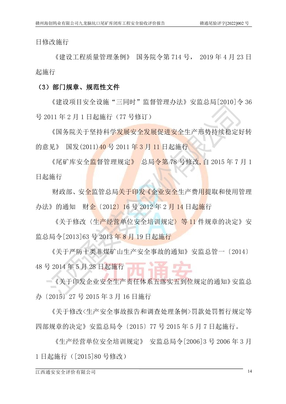 贛州海創(chuàng)鎢業(yè)有限公司九龍腦坑口尾礦庫(kù)閉庫(kù)工程安全驗(yàn)收評(píng)價(jià)報(bào)告