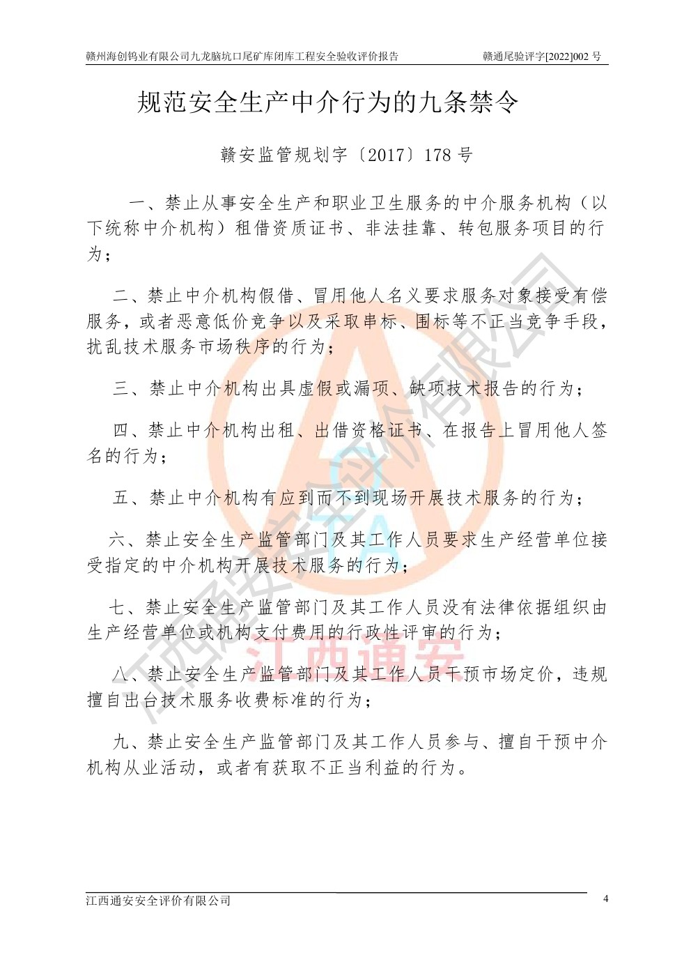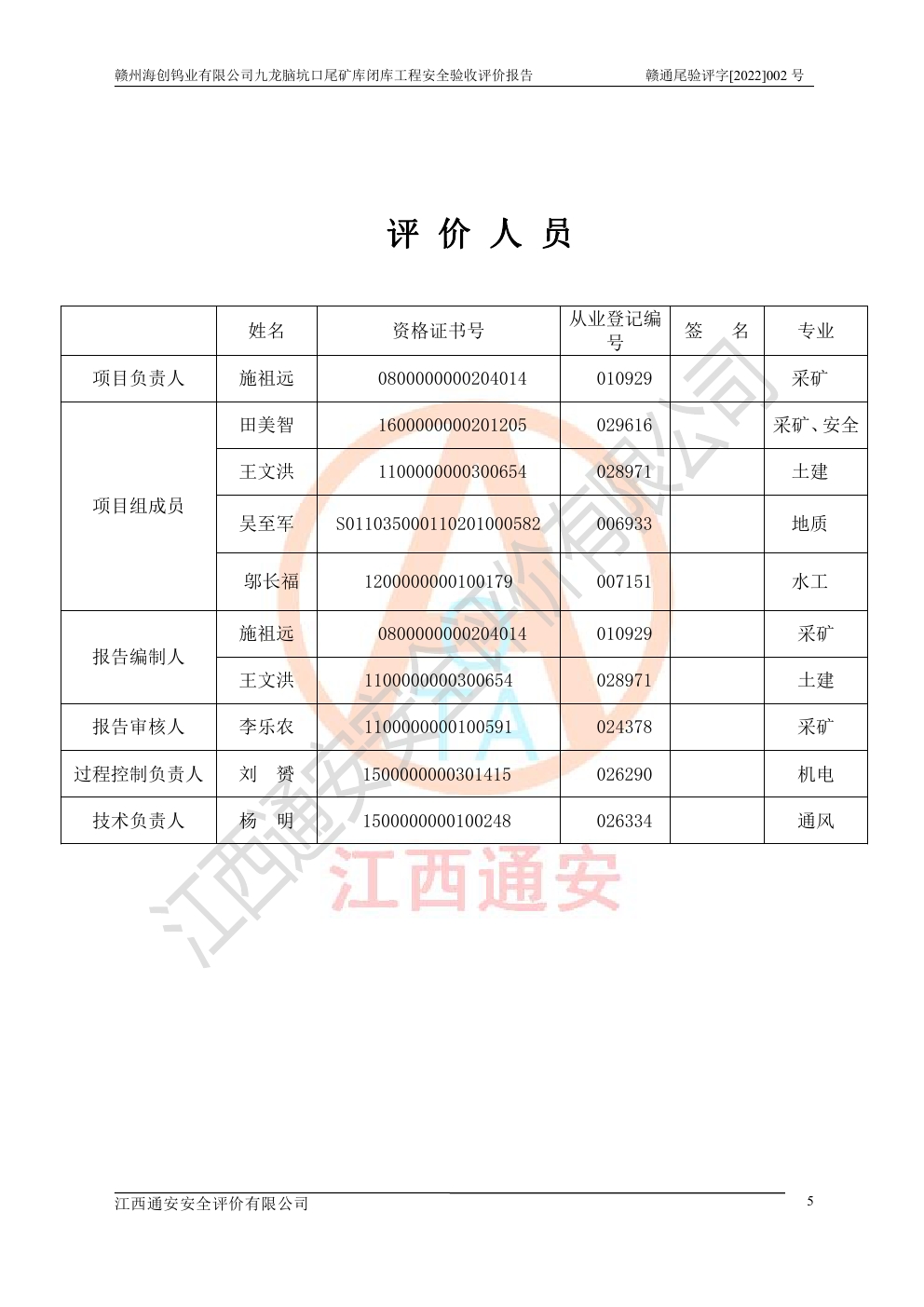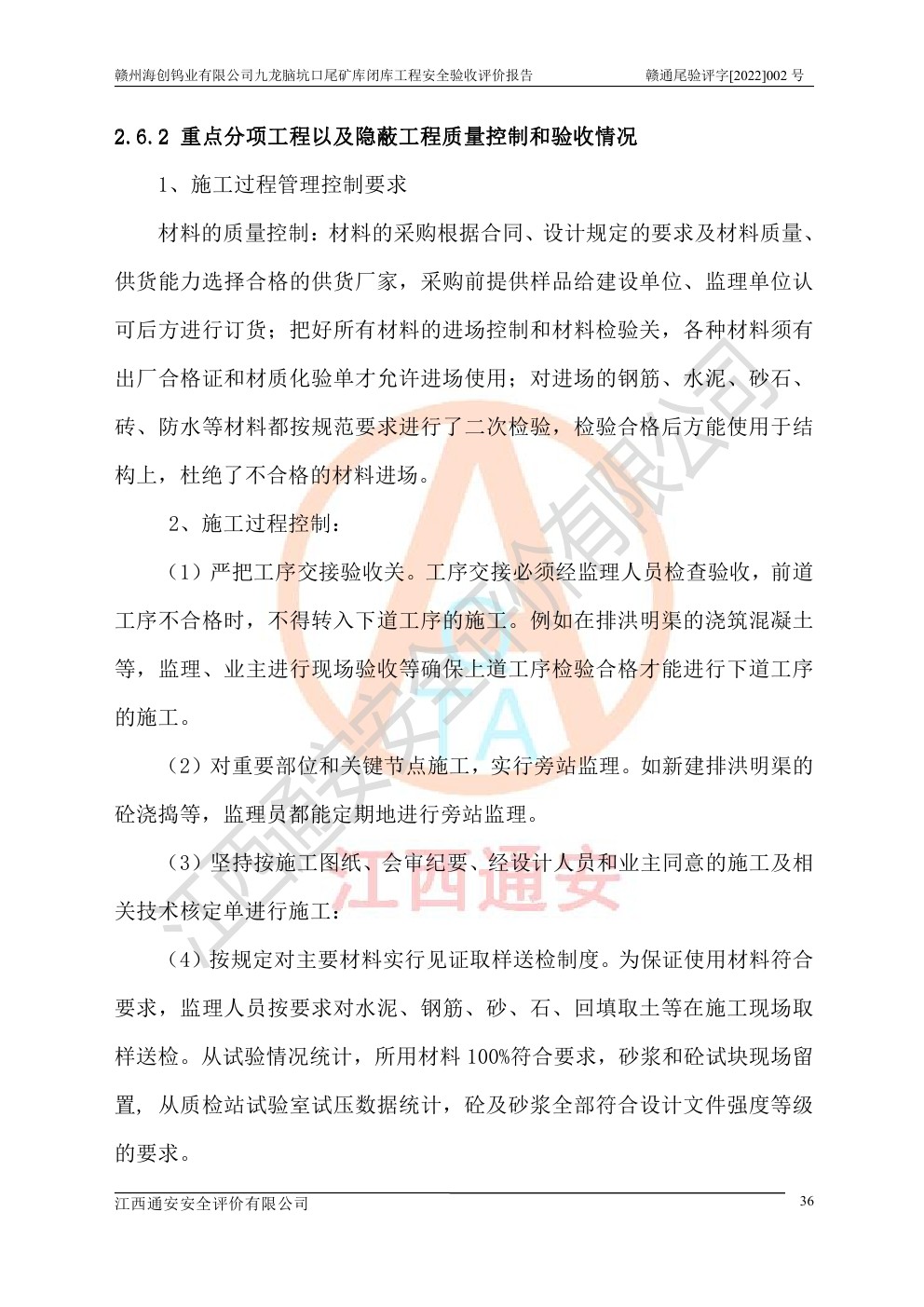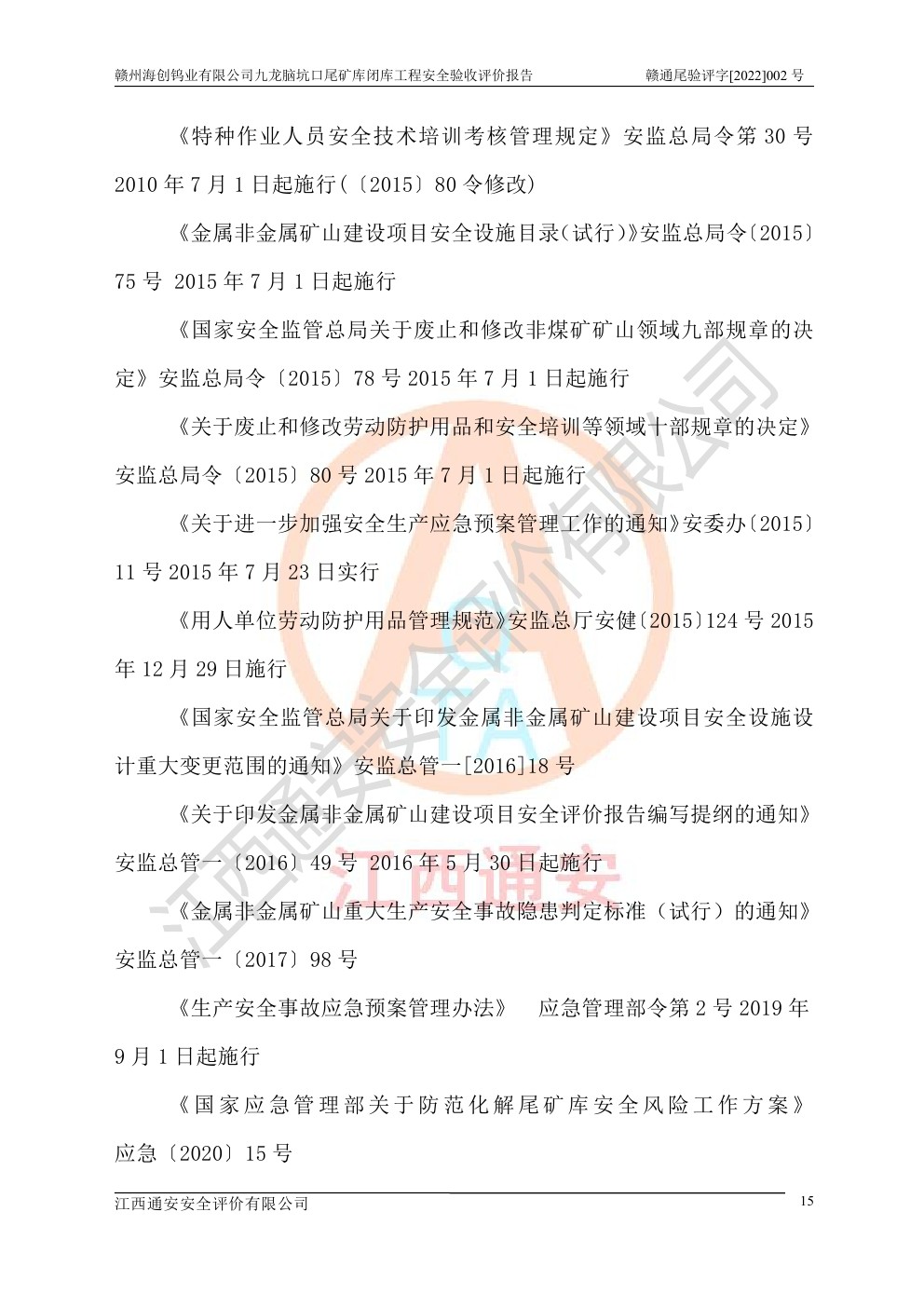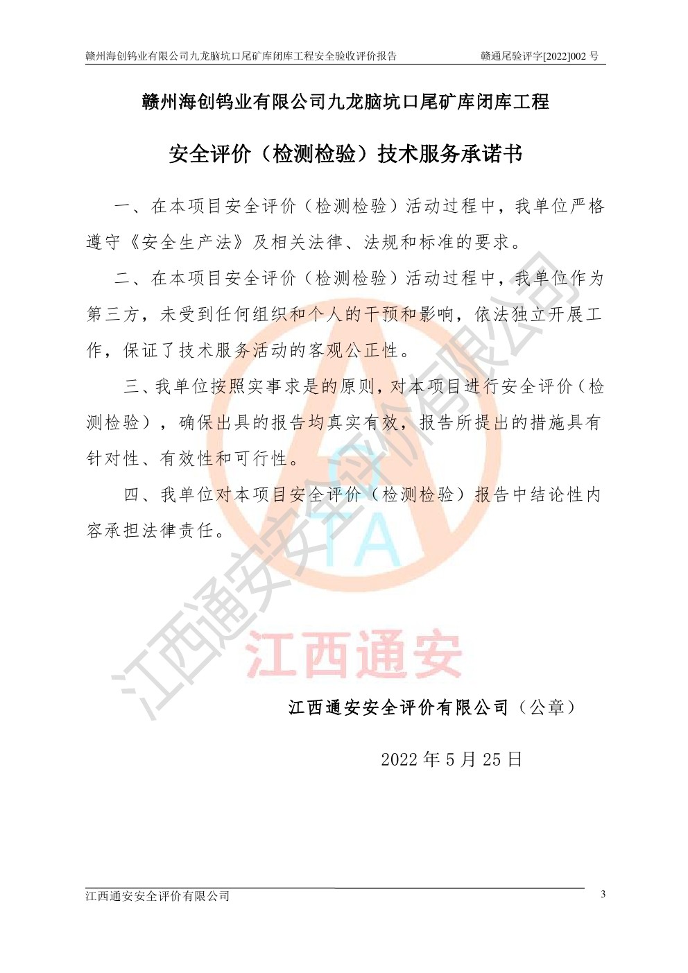 贛州海創(chuàng)鎢業(yè)有限公司九龍腦坑口尾礦庫(kù)閉庫(kù)工程安全驗(yàn)收評(píng)價(jià)報(bào)告