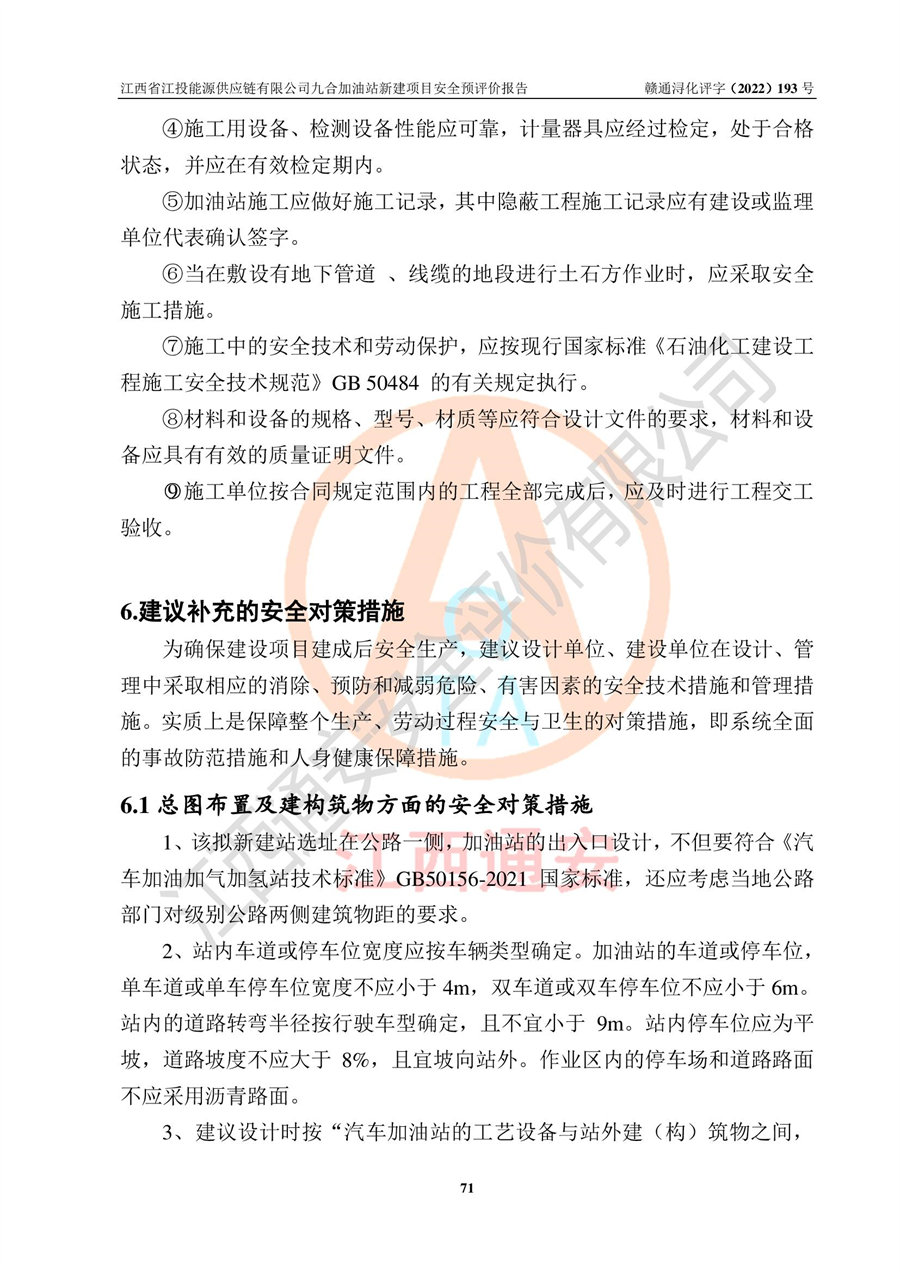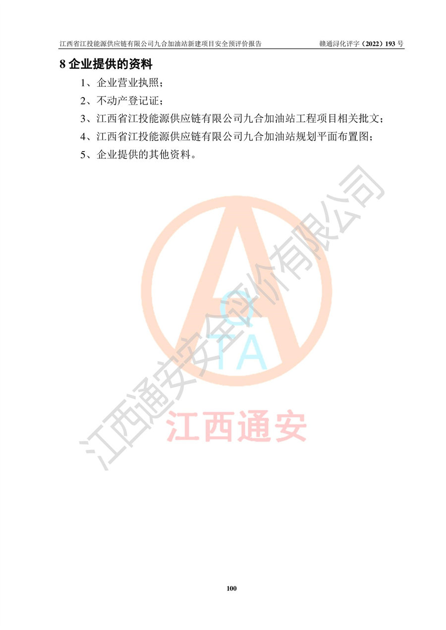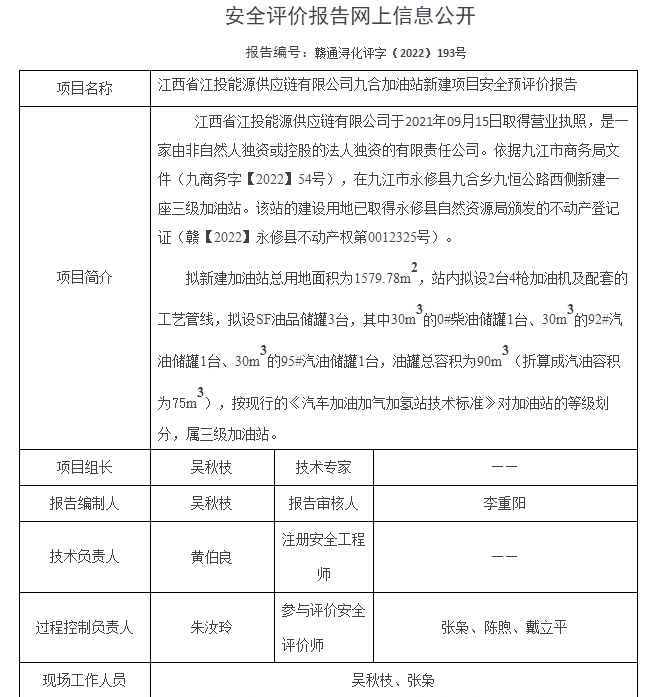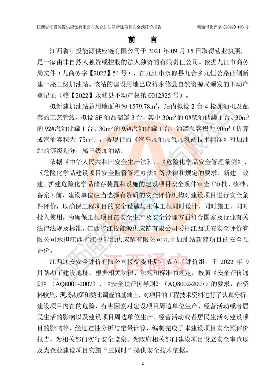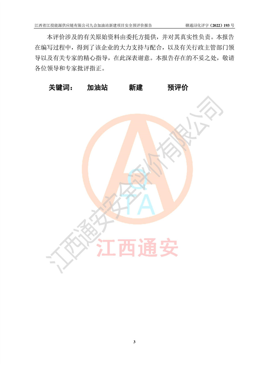 江西省江投能源供應(yīng)鏈有限公司九合加油站新建項(xiàng)目安全預(yù)評價(jià)報(bào)告