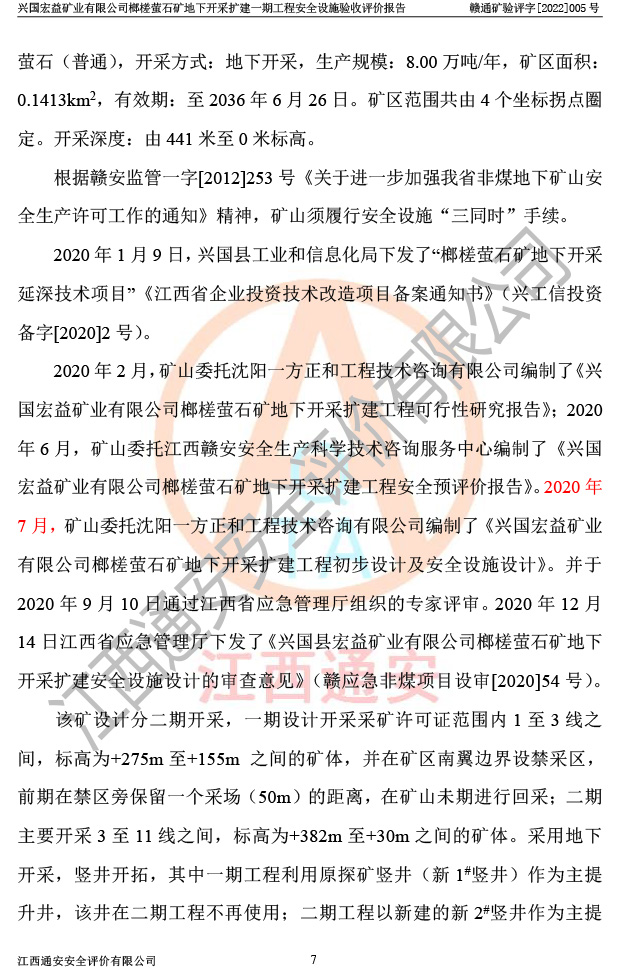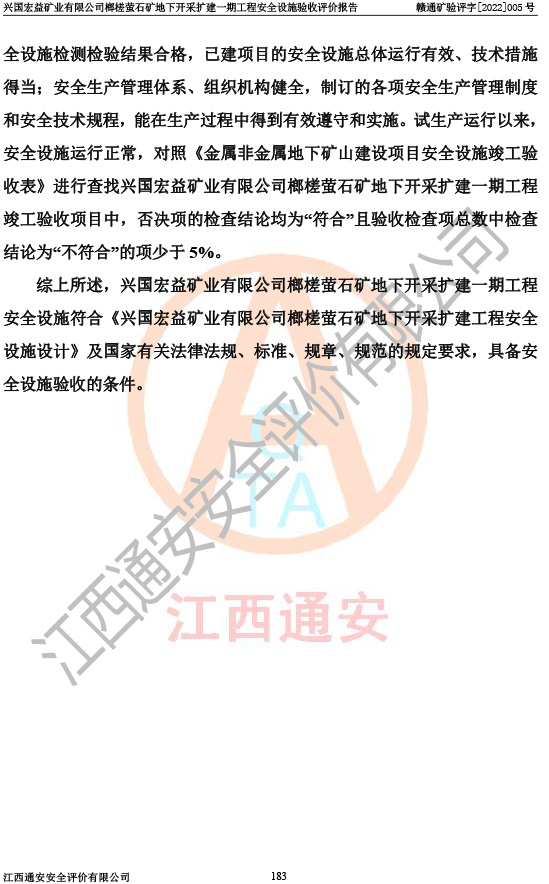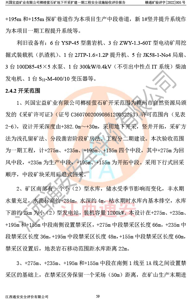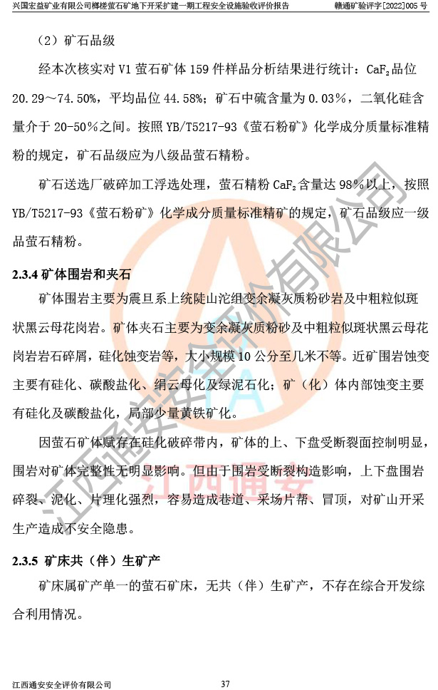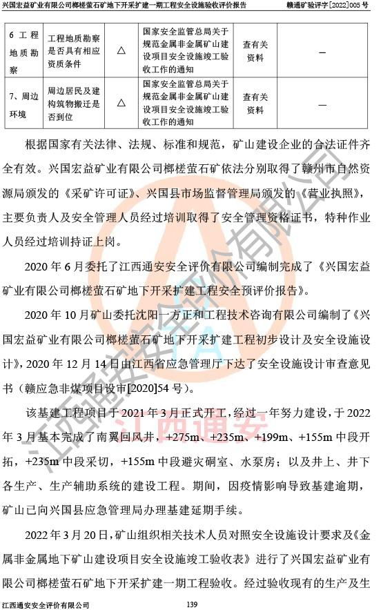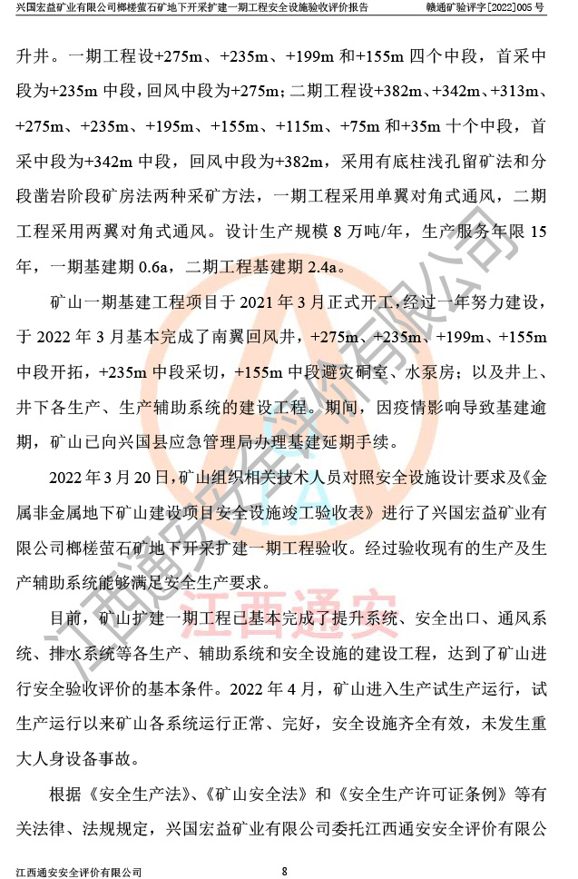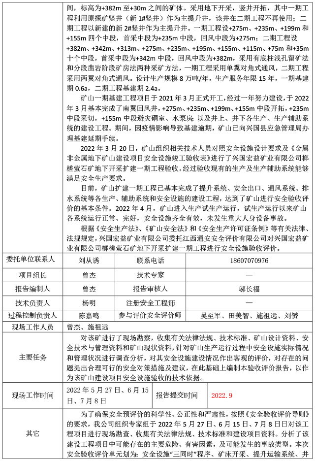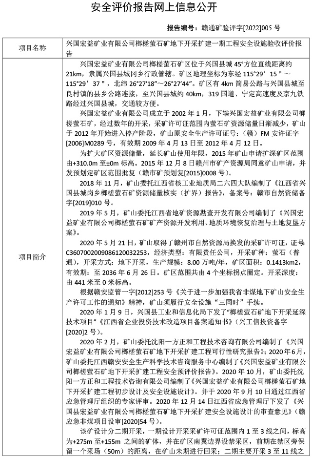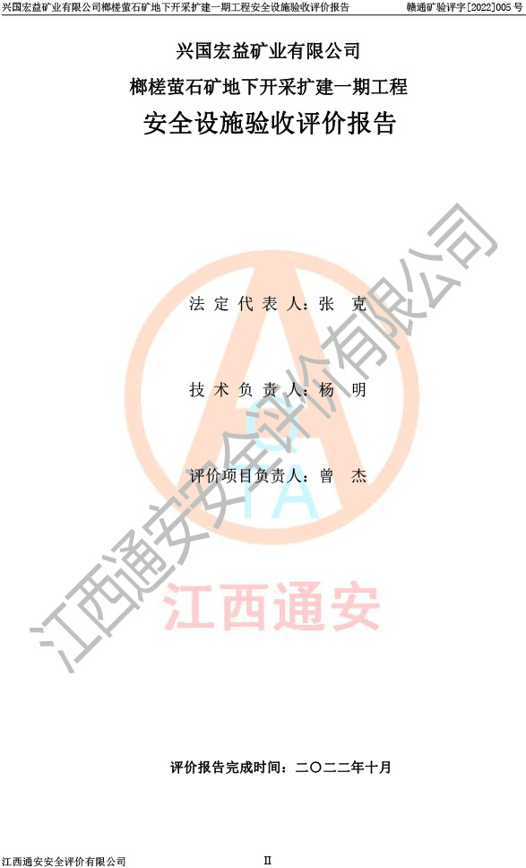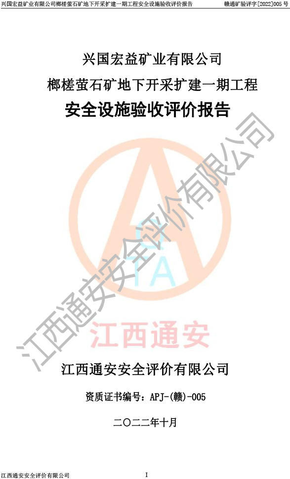 興國(guó)宏益礦業(yè)有限公司榔槎螢石礦地下開采擴(kuò)建一期工程安全設(shè)施驗(yàn)收評(píng)價(jià)報(bào)告