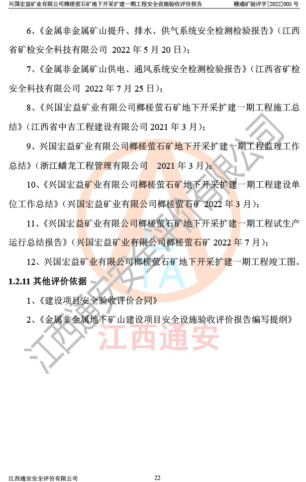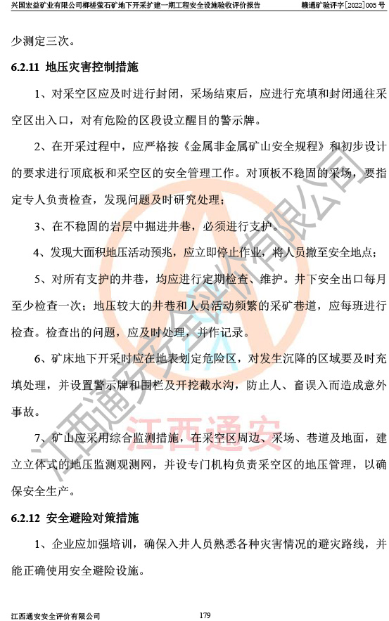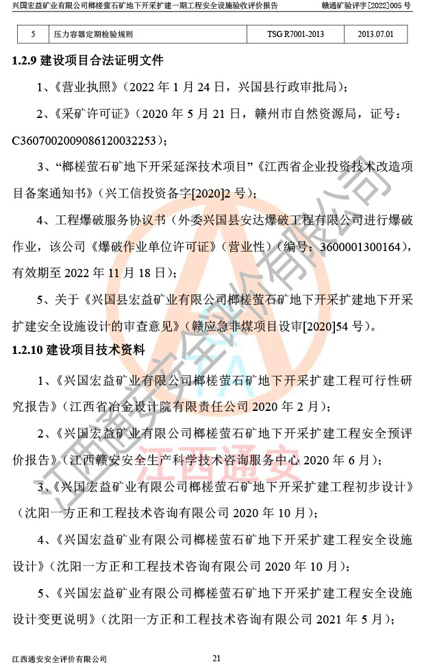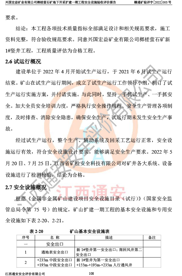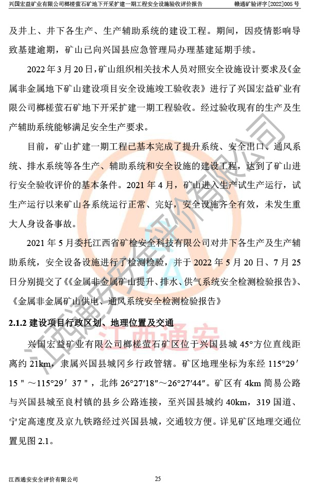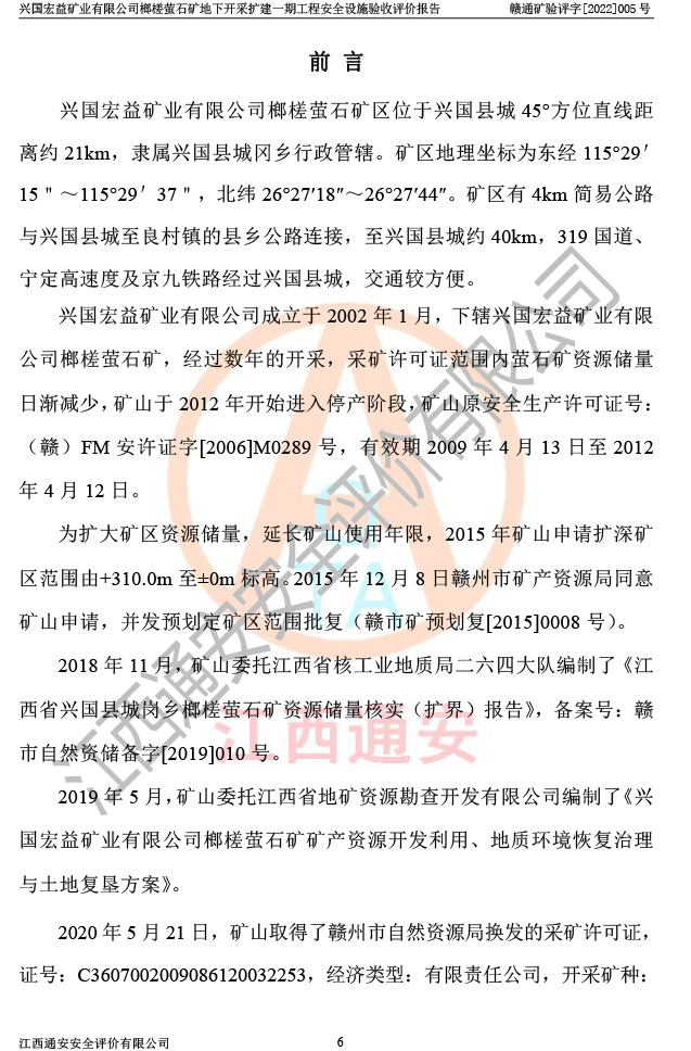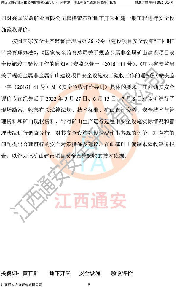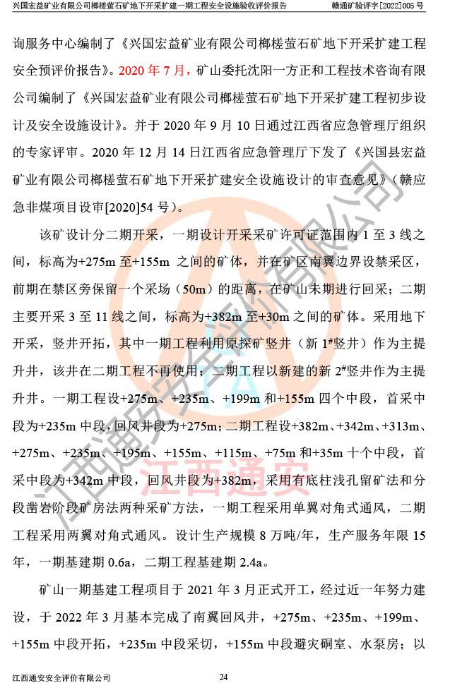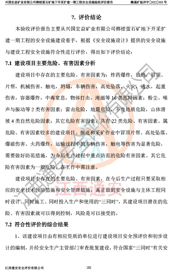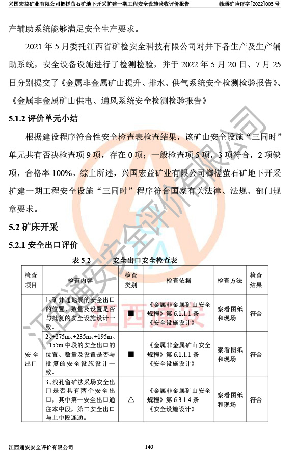 興國(guó)宏益礦業(yè)有限公司榔槎螢石礦地下開采擴(kuò)建一期工程安全設(shè)施驗(yàn)收評(píng)價(jià)報(bào)告