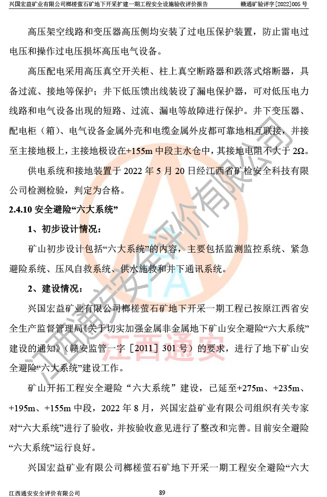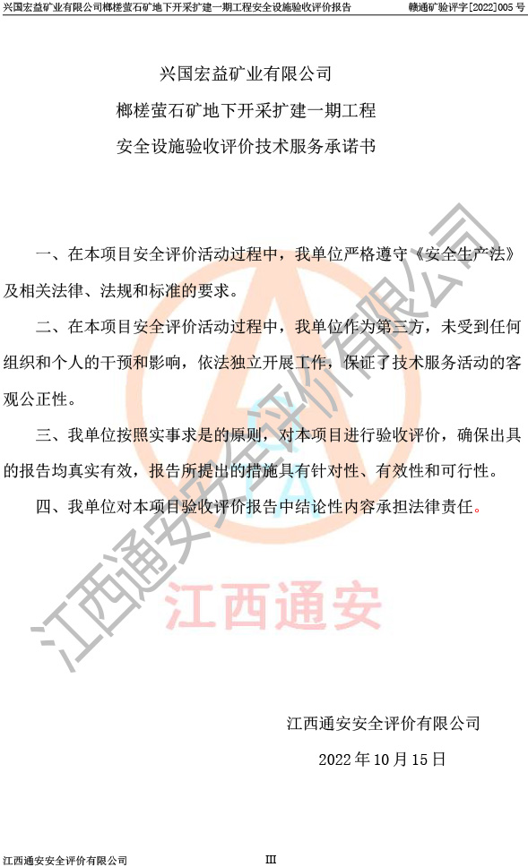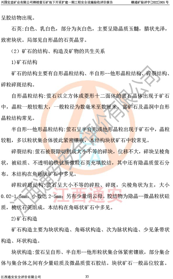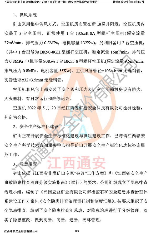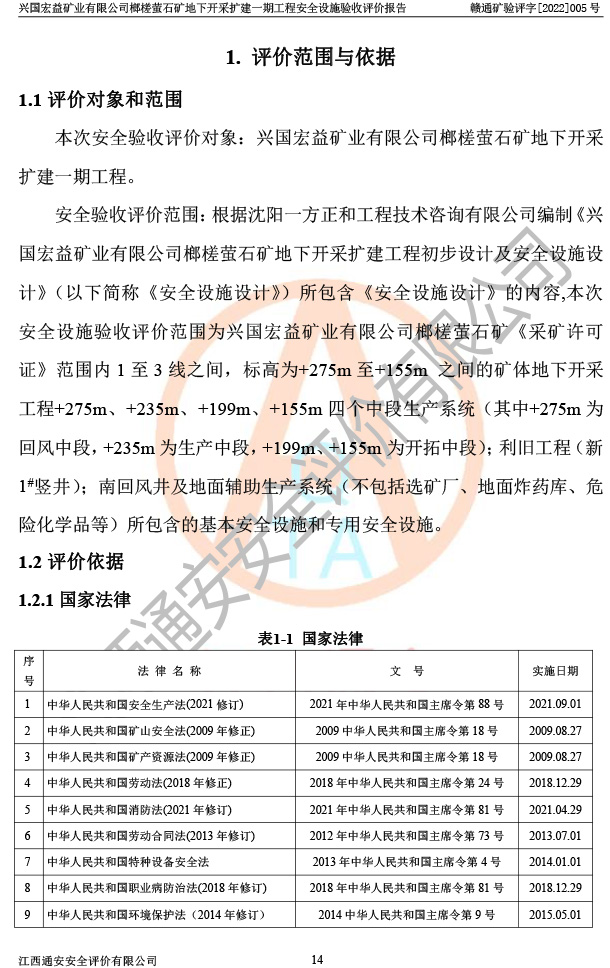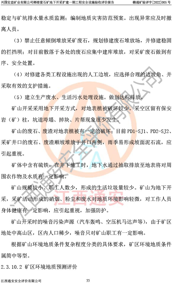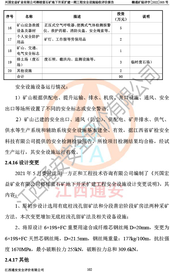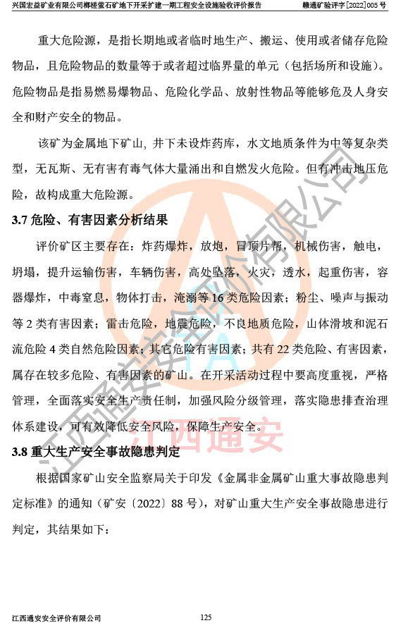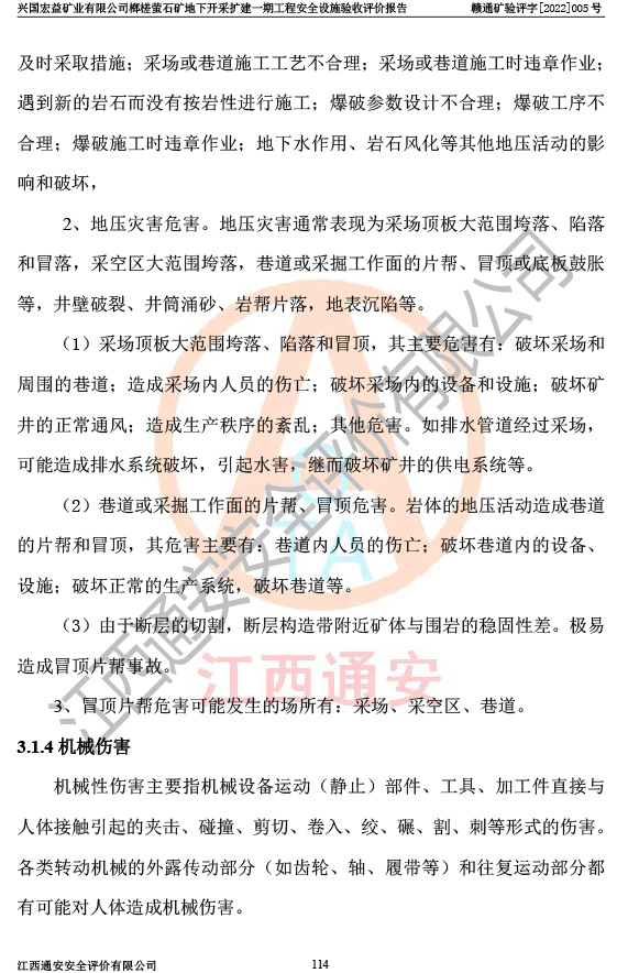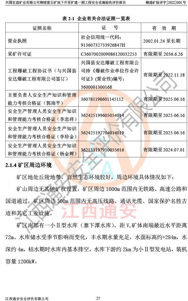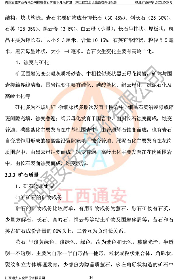 興國(guó)宏益礦業(yè)有限公司榔槎螢石礦地下開采擴(kuò)建一期工程安全設(shè)施驗(yàn)收評(píng)價(jià)報(bào)告