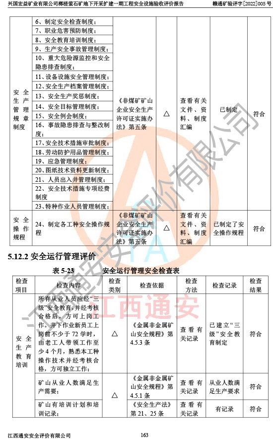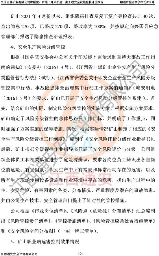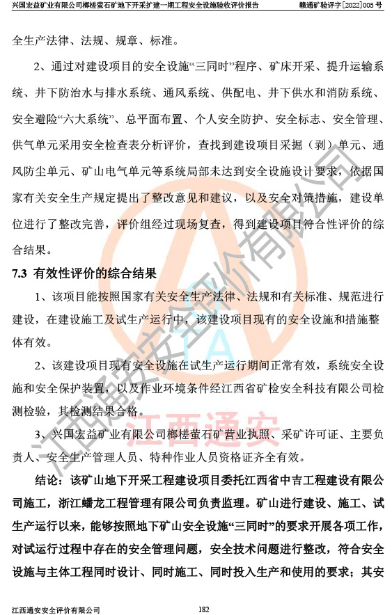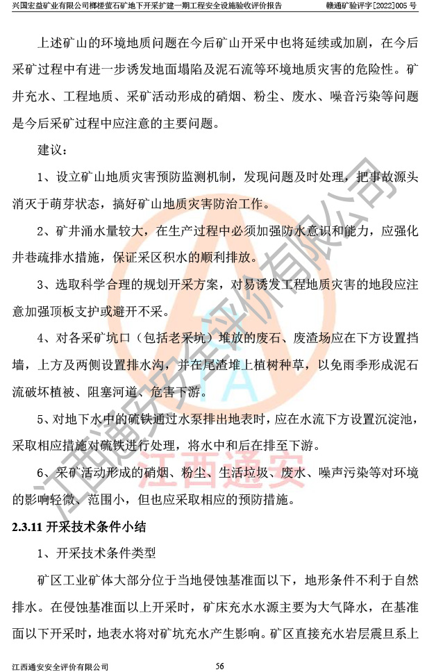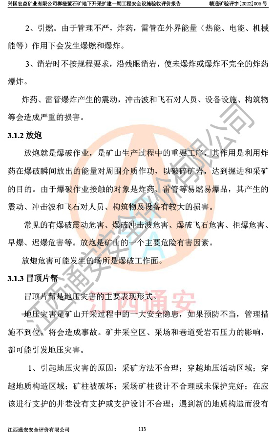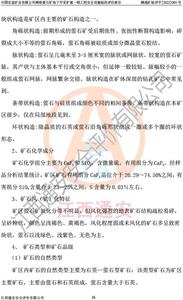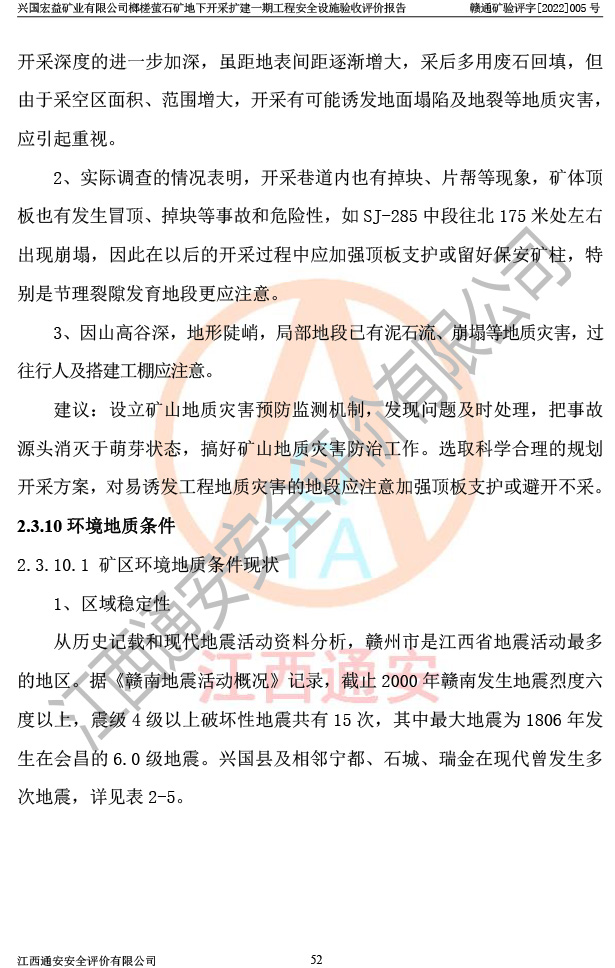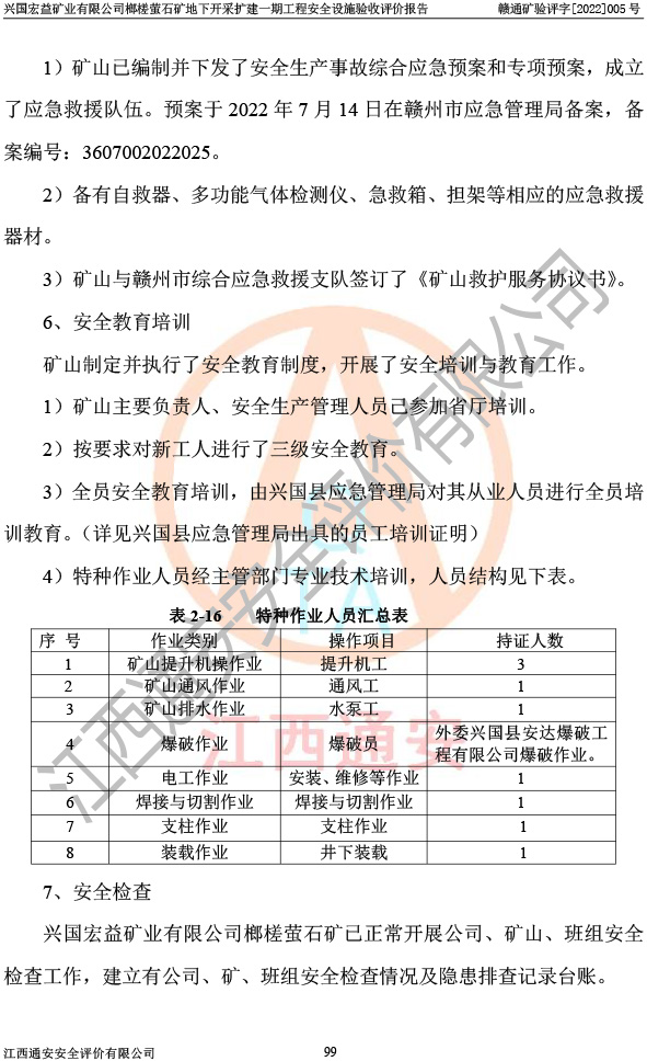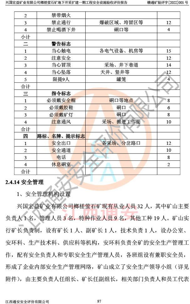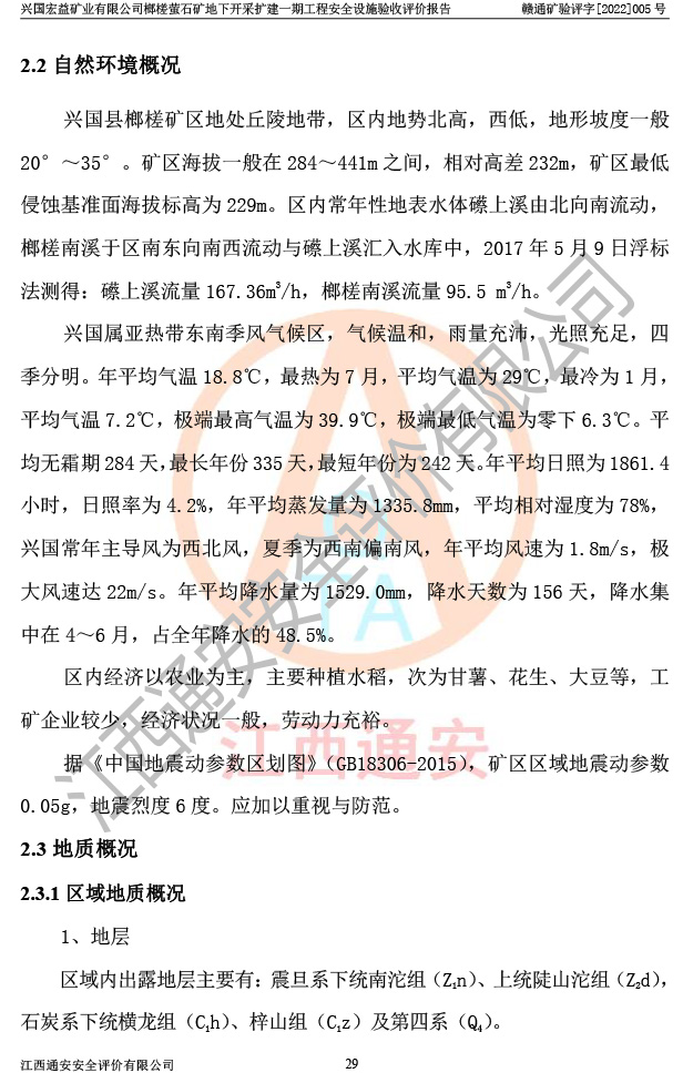 興國(guó)宏益礦業(yè)有限公司榔槎螢石礦地下開采擴(kuò)建一期工程安全設(shè)施驗(yàn)收評(píng)價(jià)報(bào)告