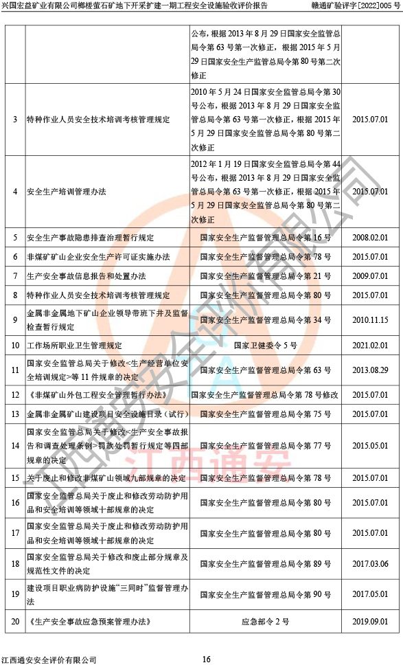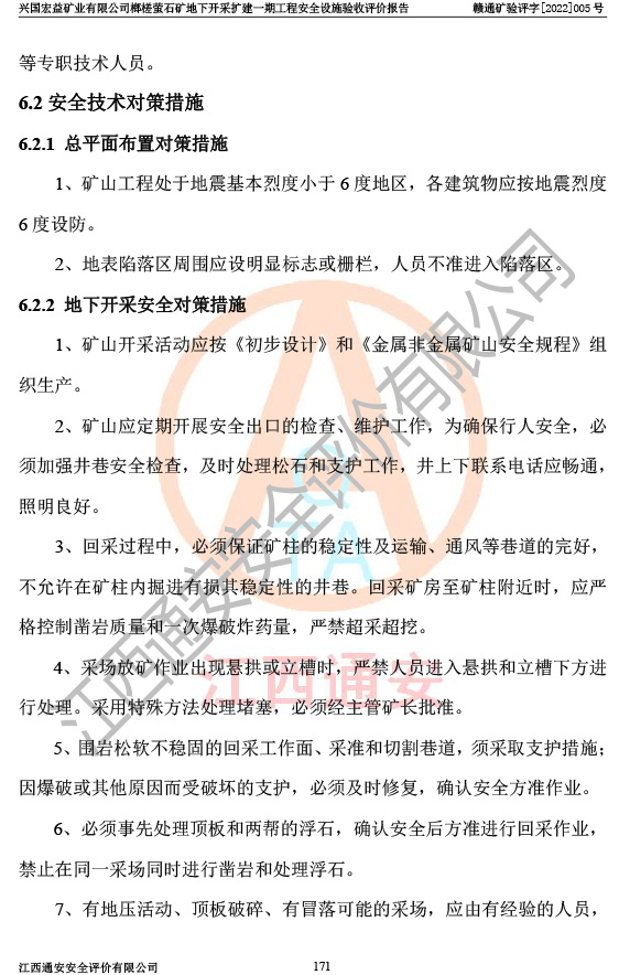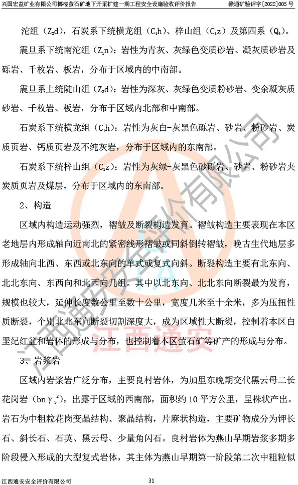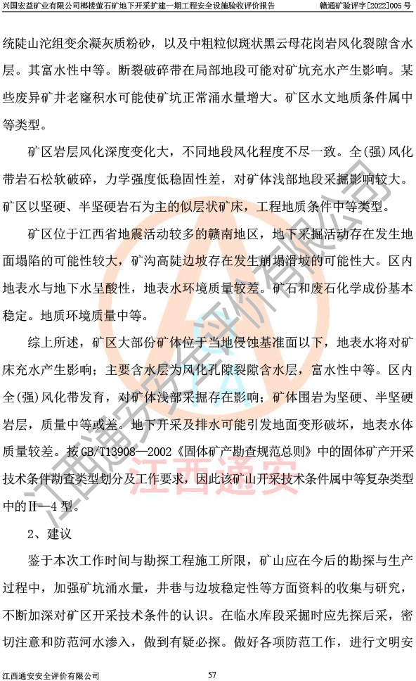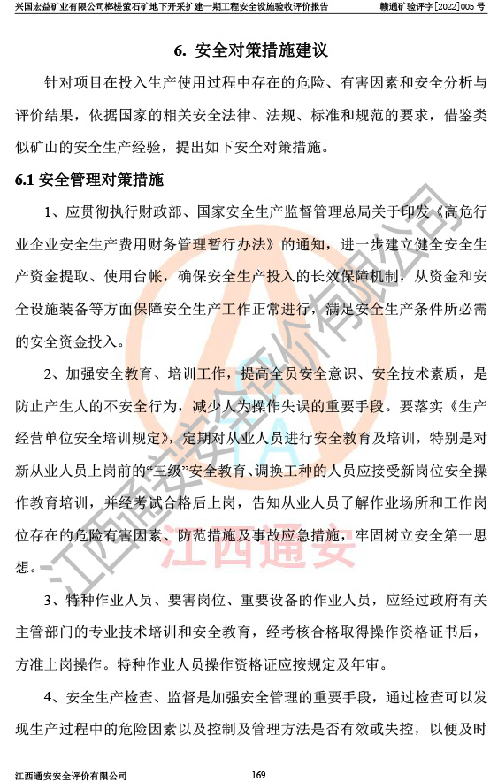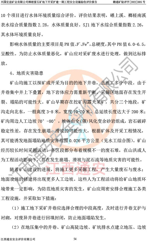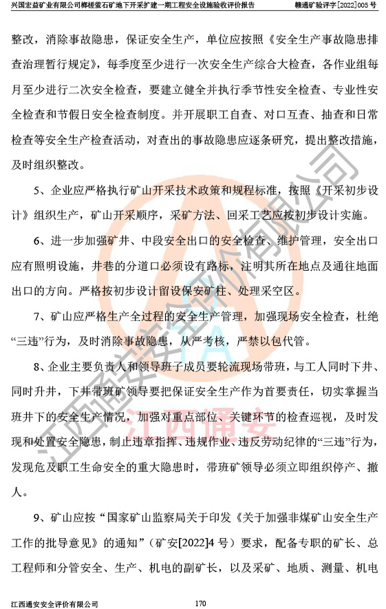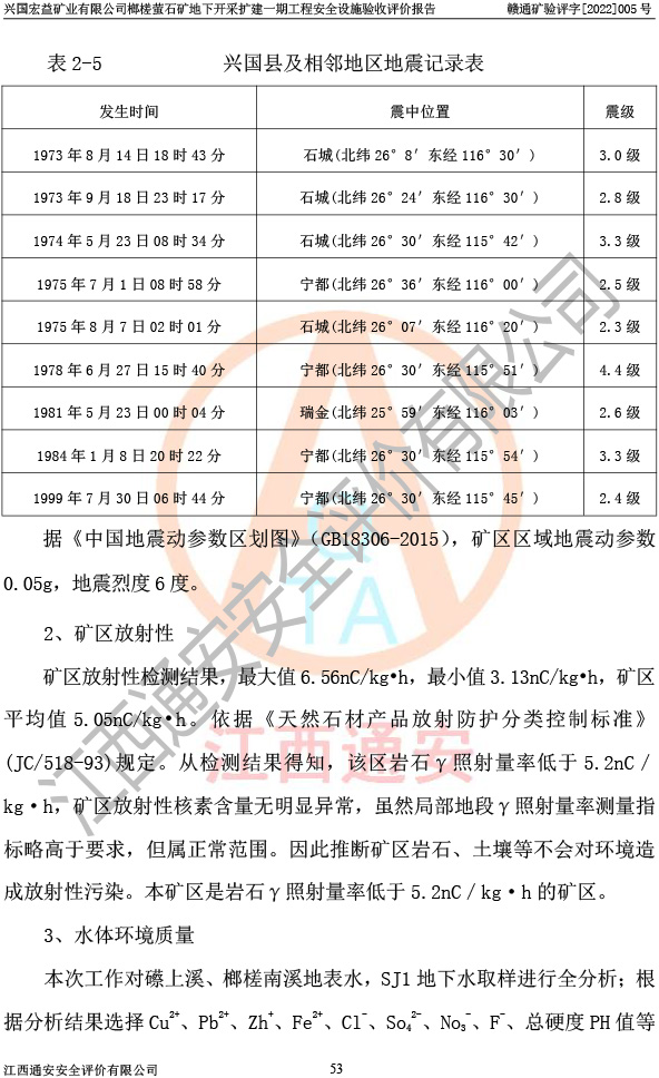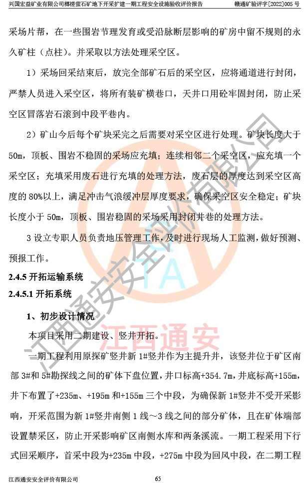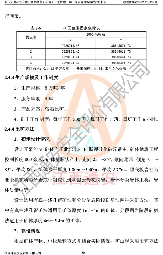 興國(guó)宏益礦業(yè)有限公司榔槎螢石礦地下開采擴(kuò)建一期工程安全設(shè)施驗(yàn)收評(píng)價(jià)報(bào)告