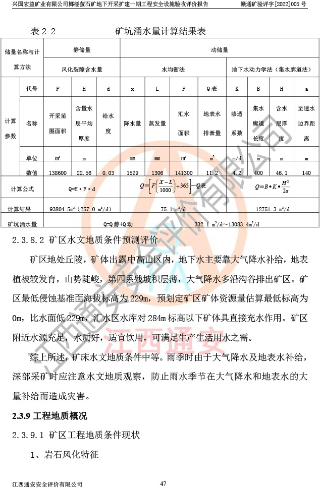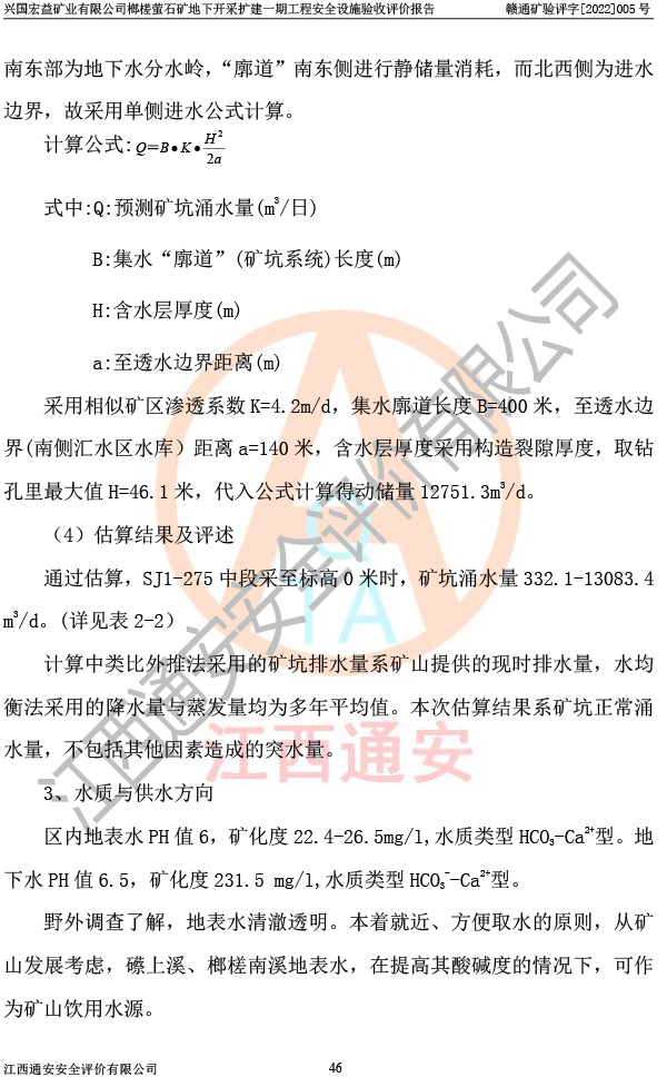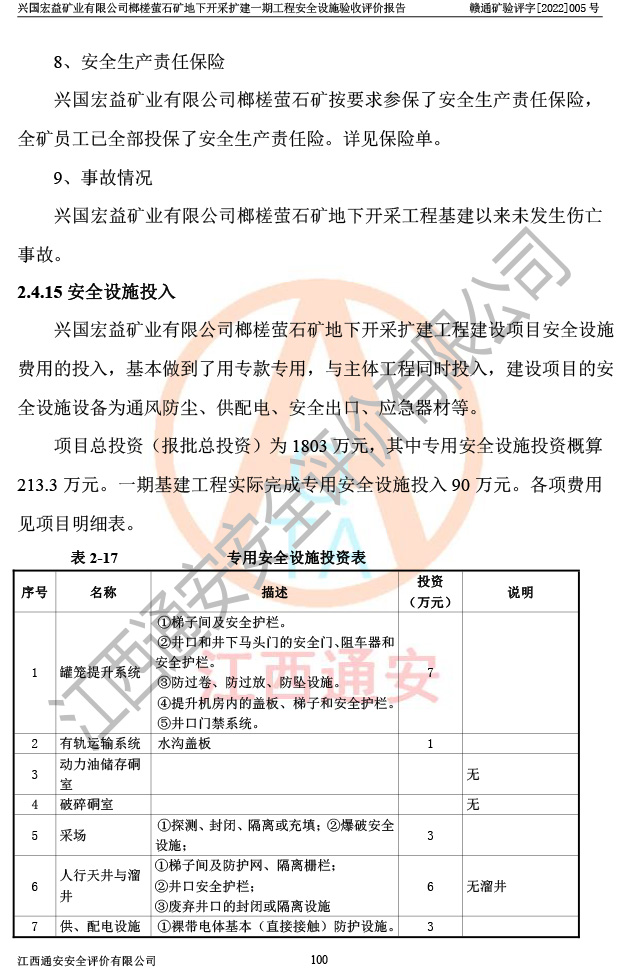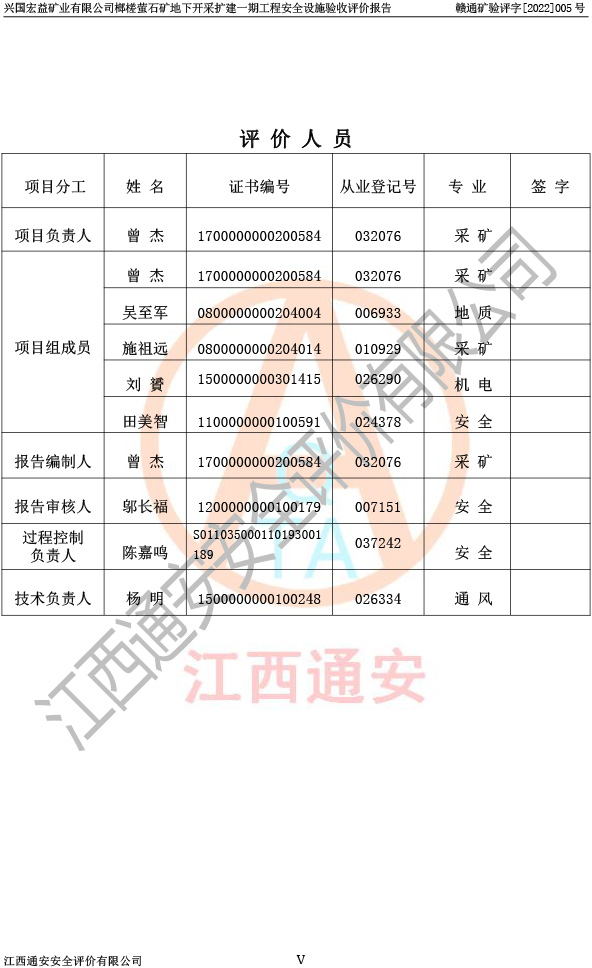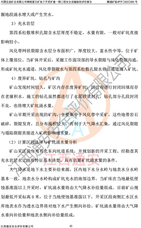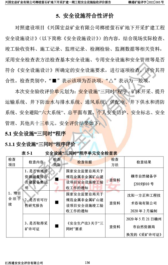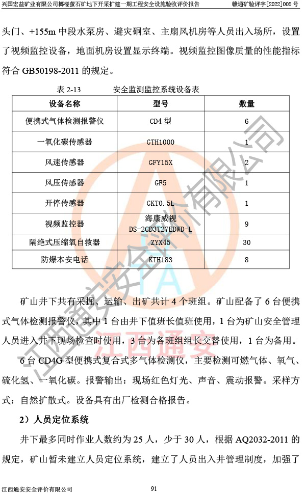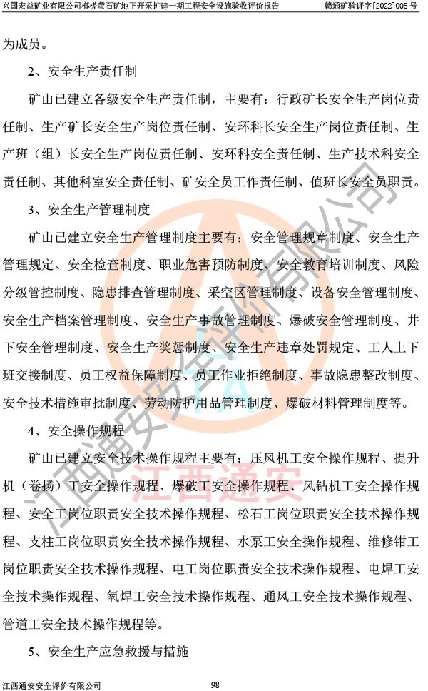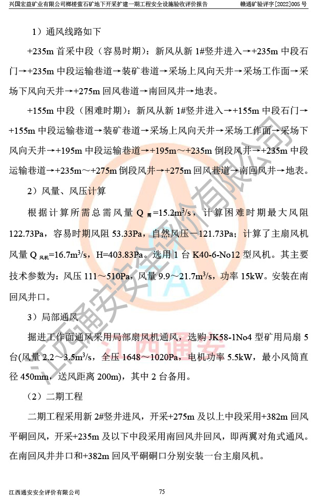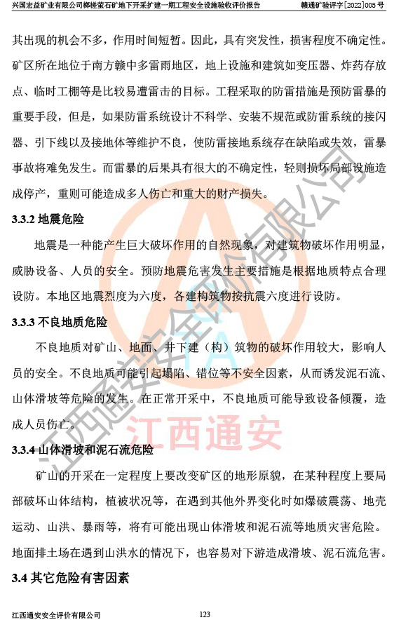 興國(guó)宏益礦業(yè)有限公司榔槎螢石礦地下開采擴(kuò)建一期工程安全設(shè)施驗(yàn)收評(píng)價(jià)報(bào)告