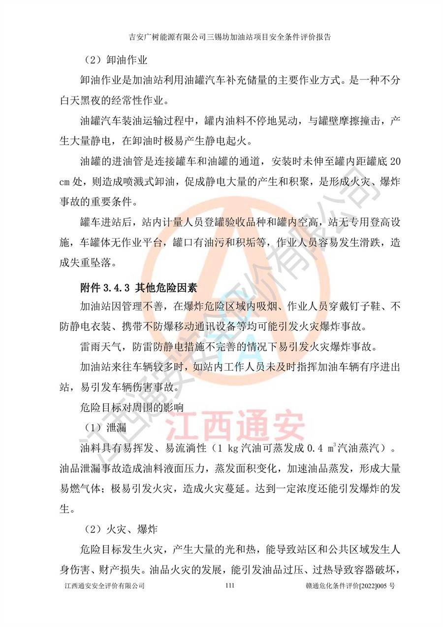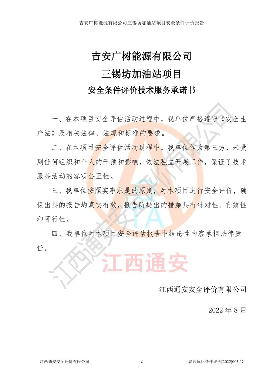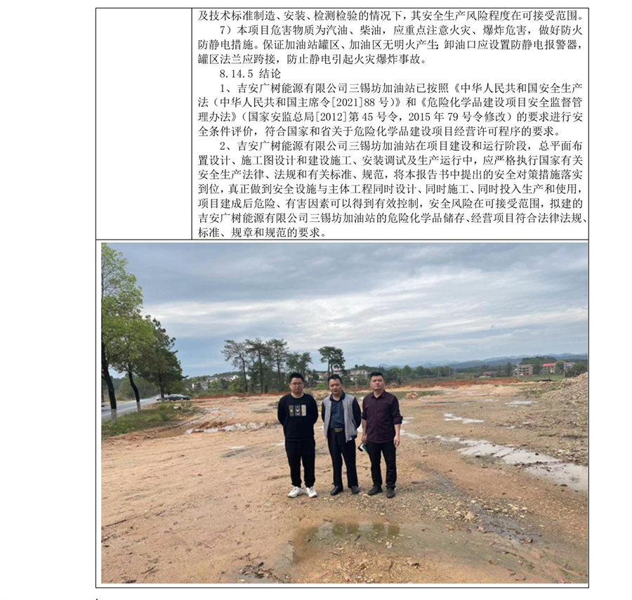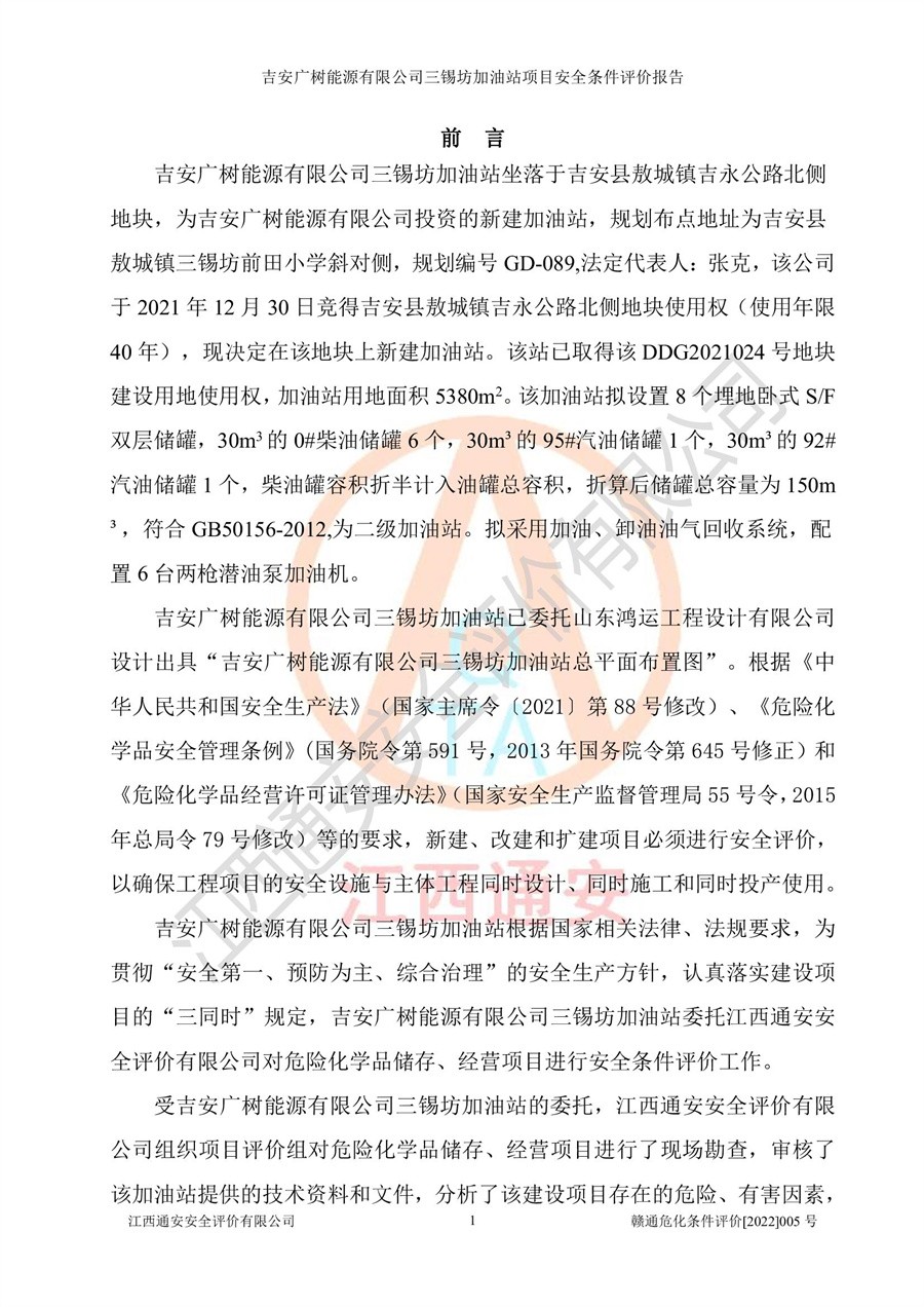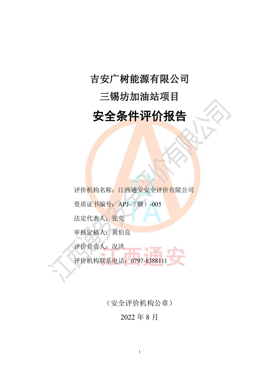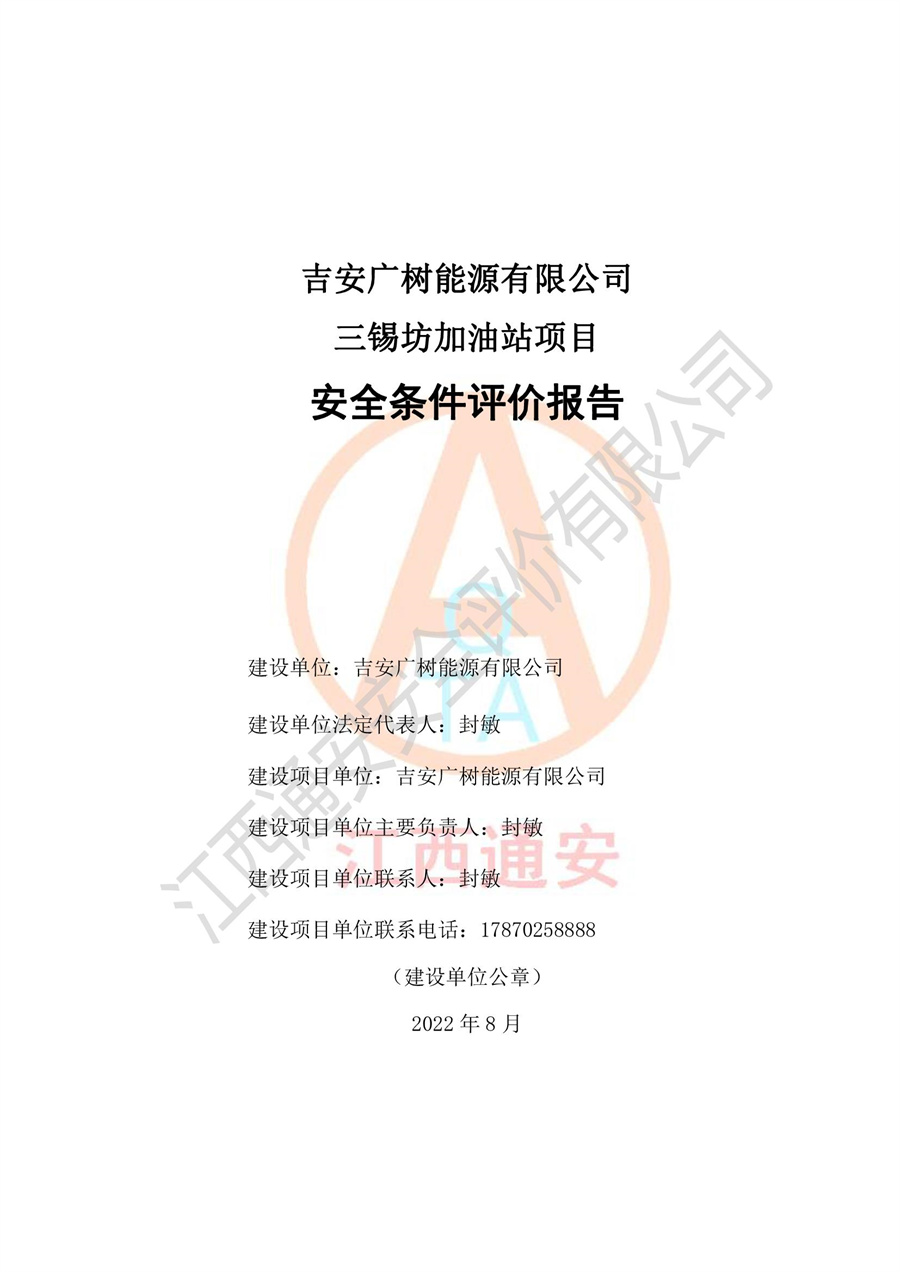 吉安廣樹能源有限公司三錫坊加油站項目安全條件評價報告
