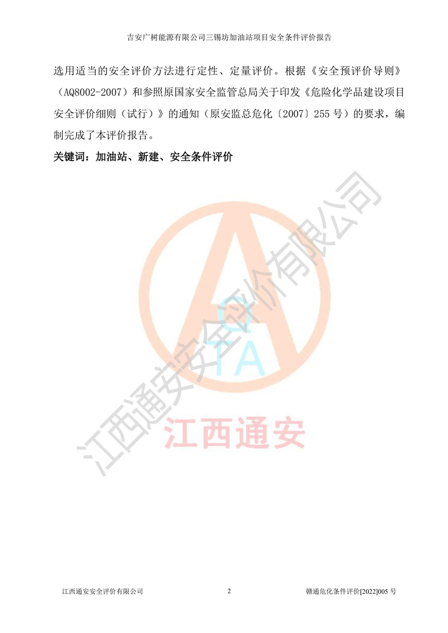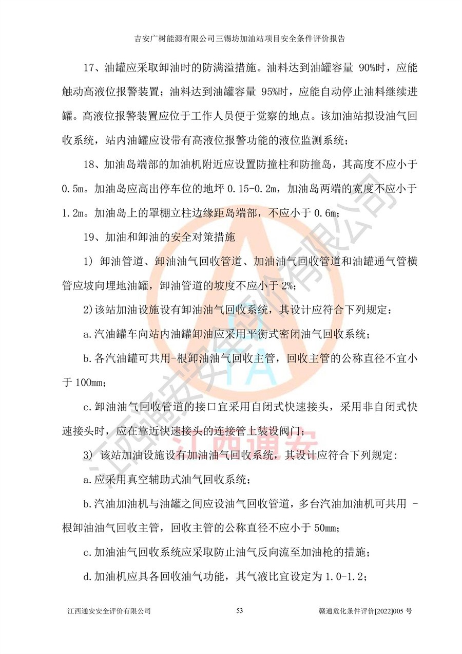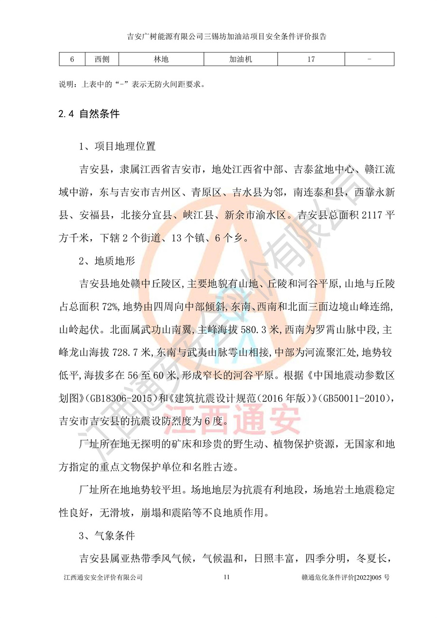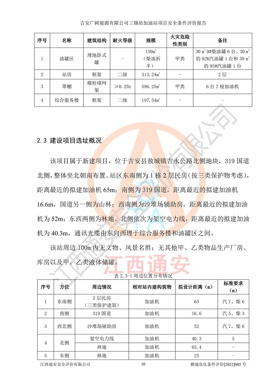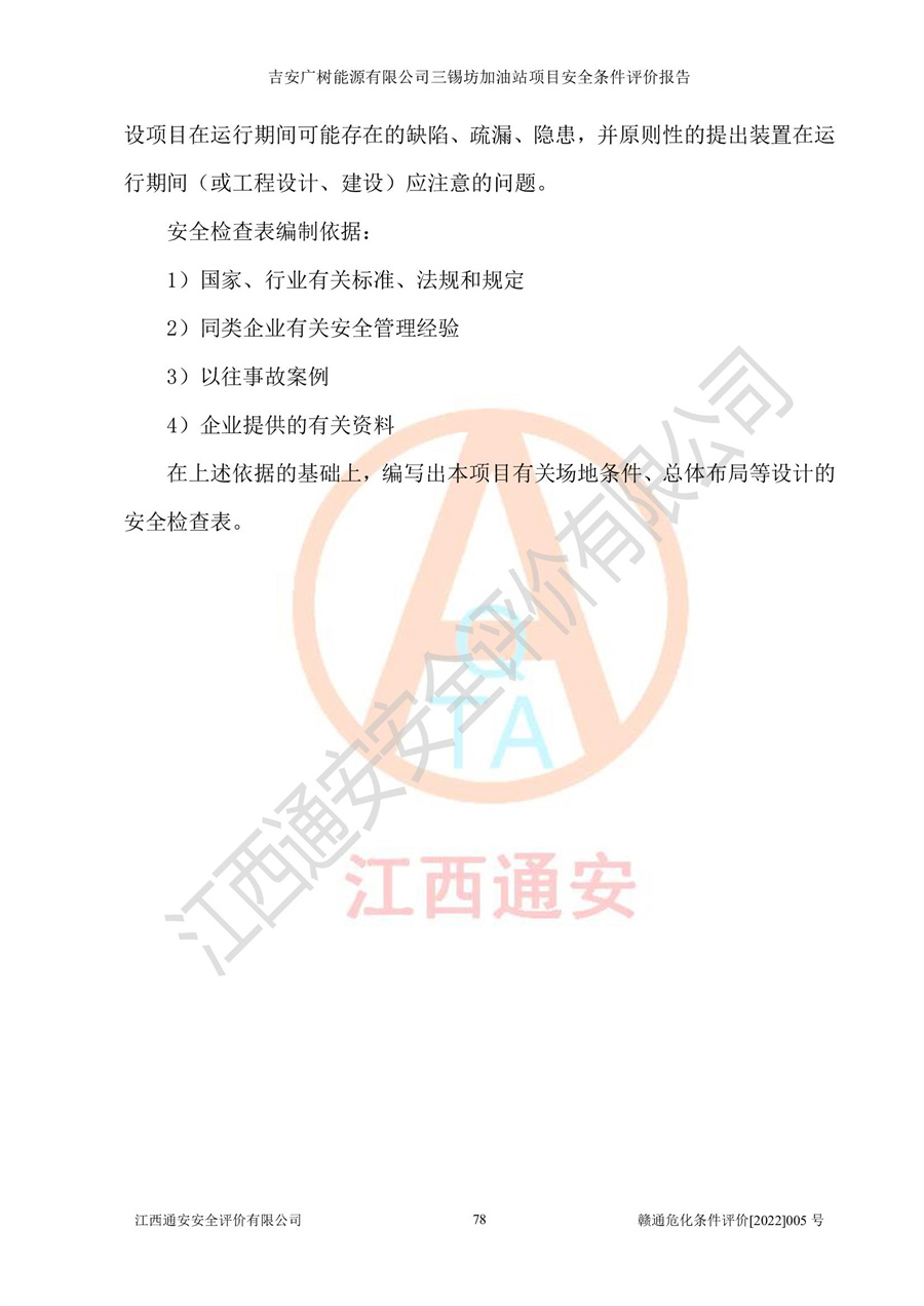 吉安廣樹能源有限公司三錫坊加油站項目安全條件評價報告