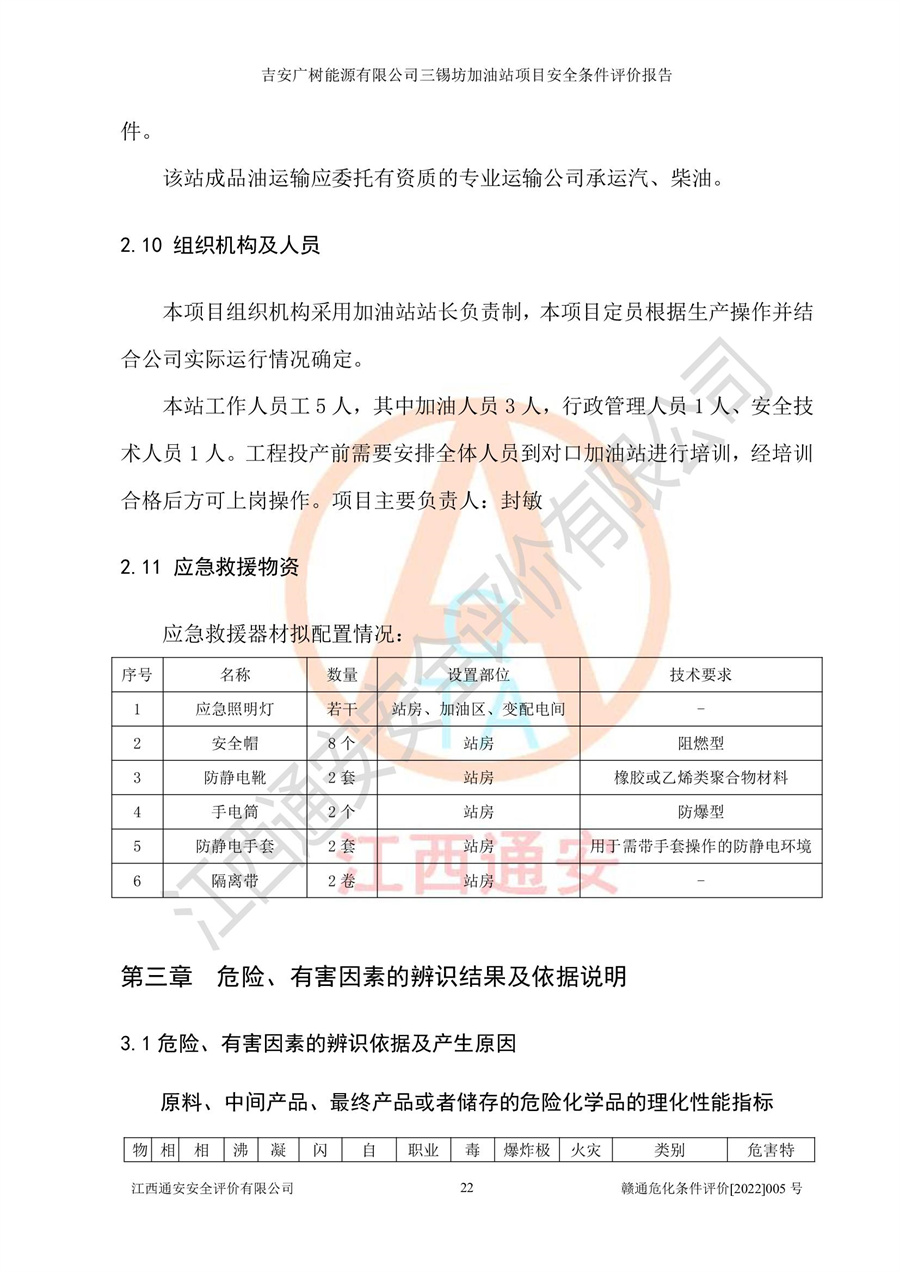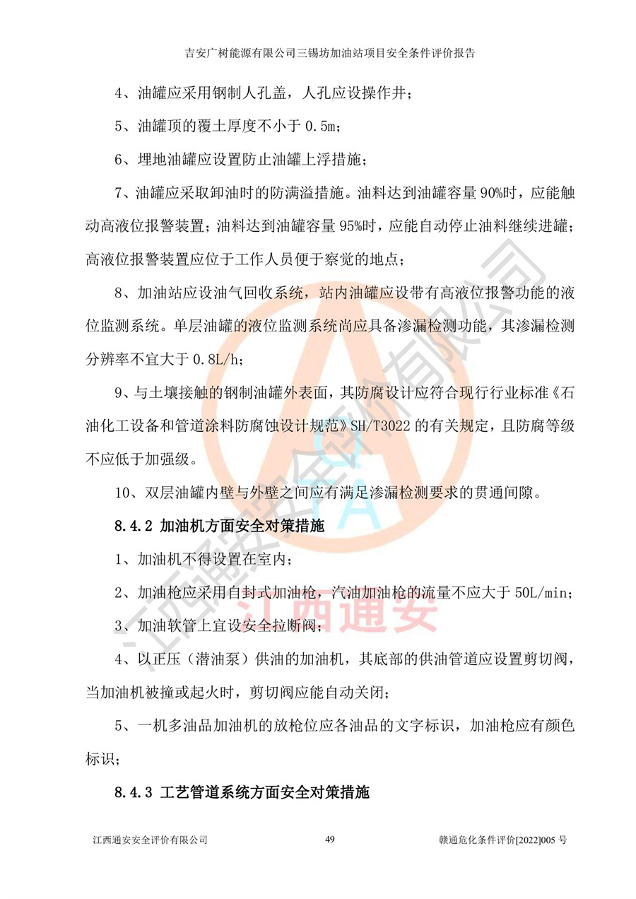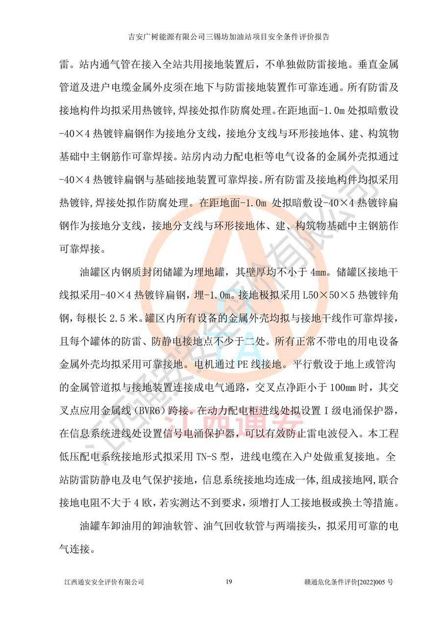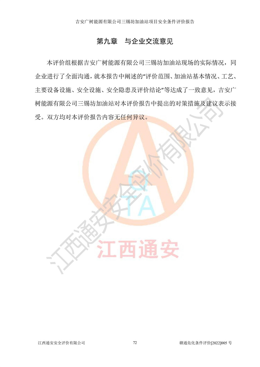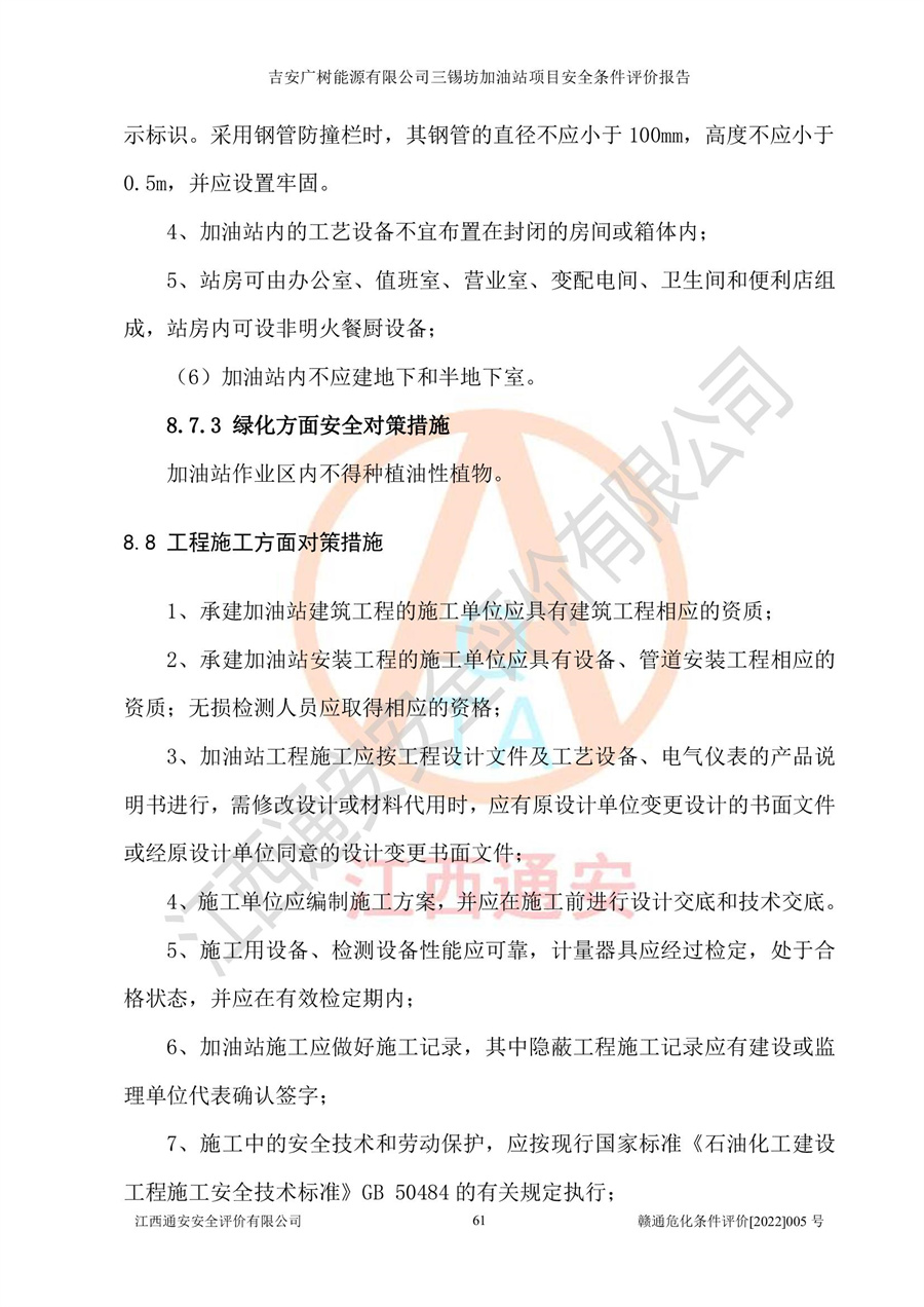 吉安廣樹能源有限公司三錫坊加油站項目安全條件評價報告