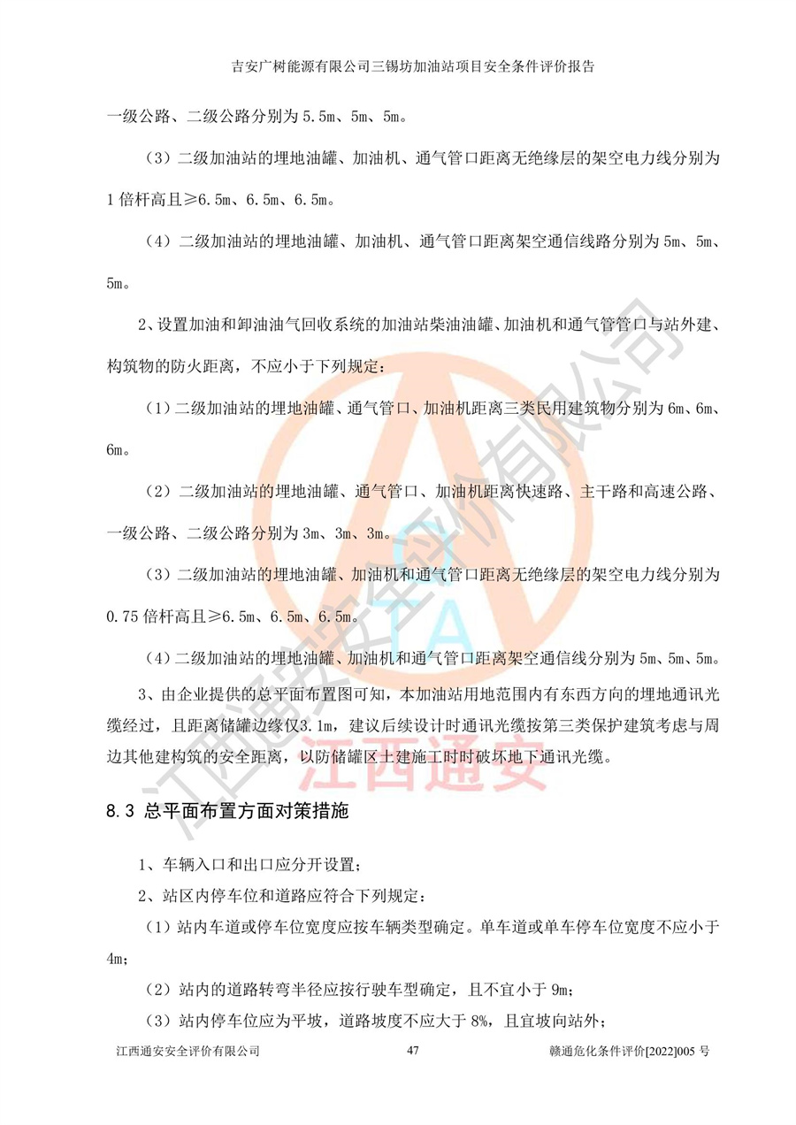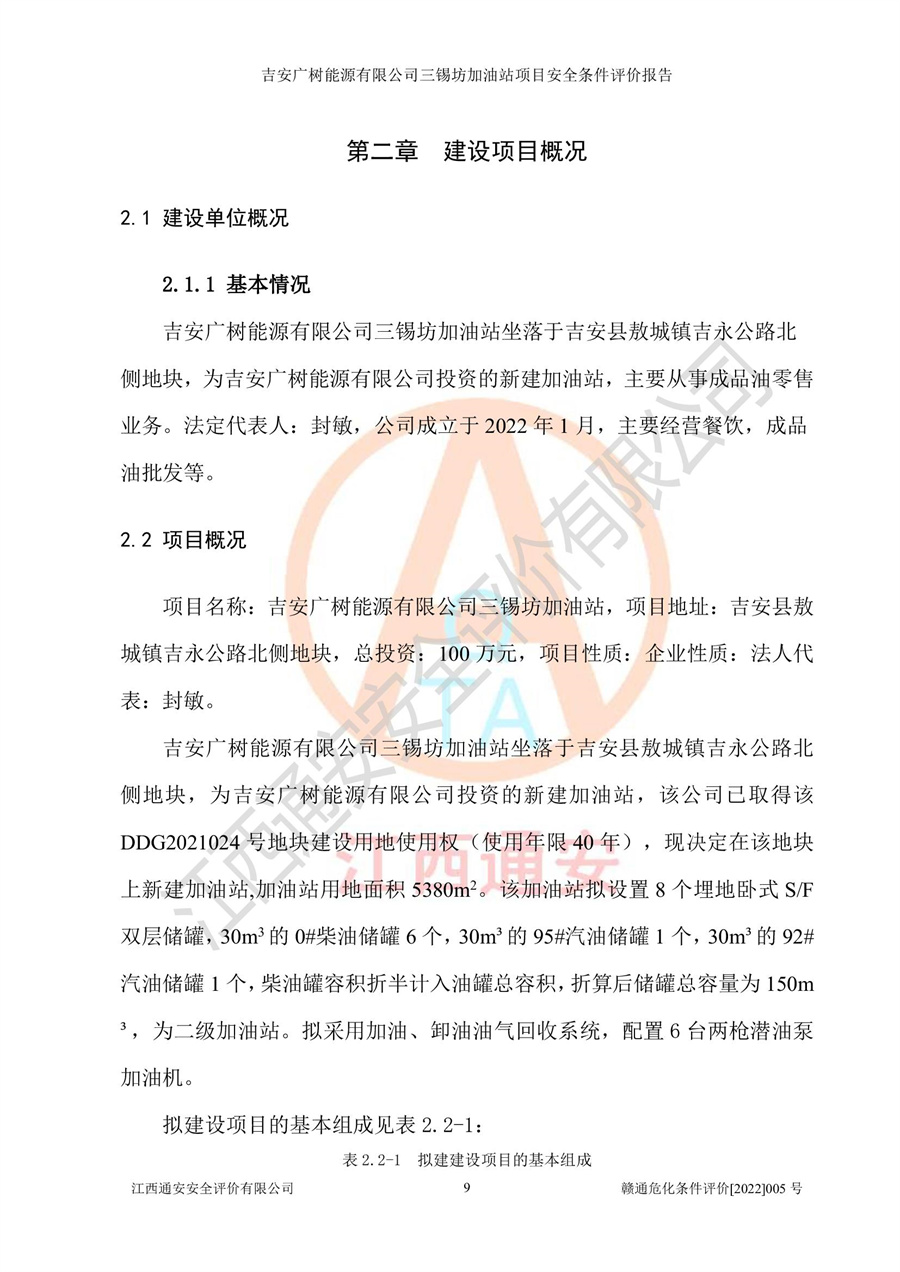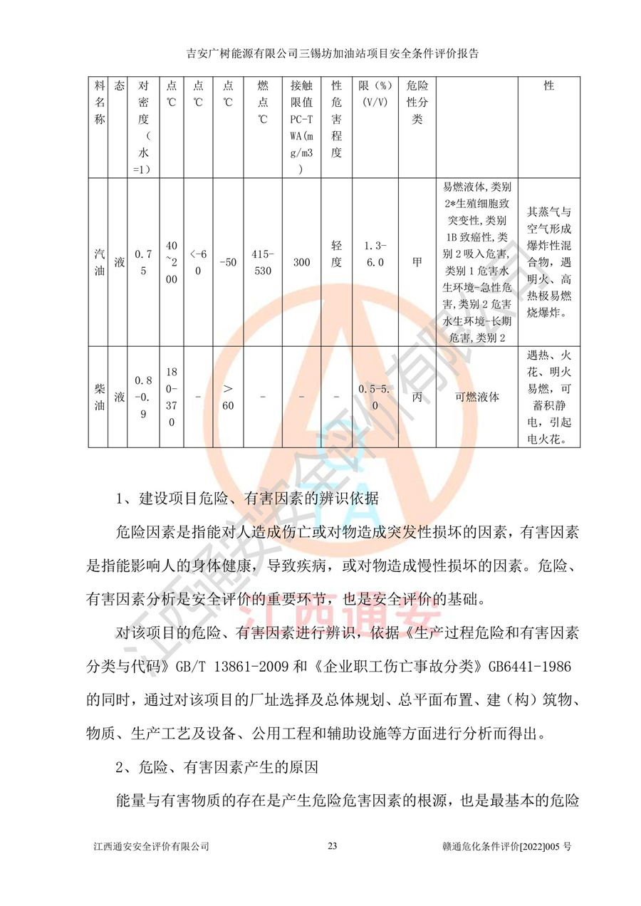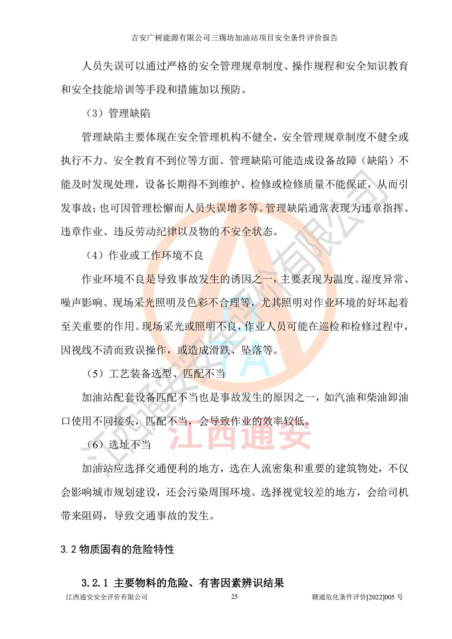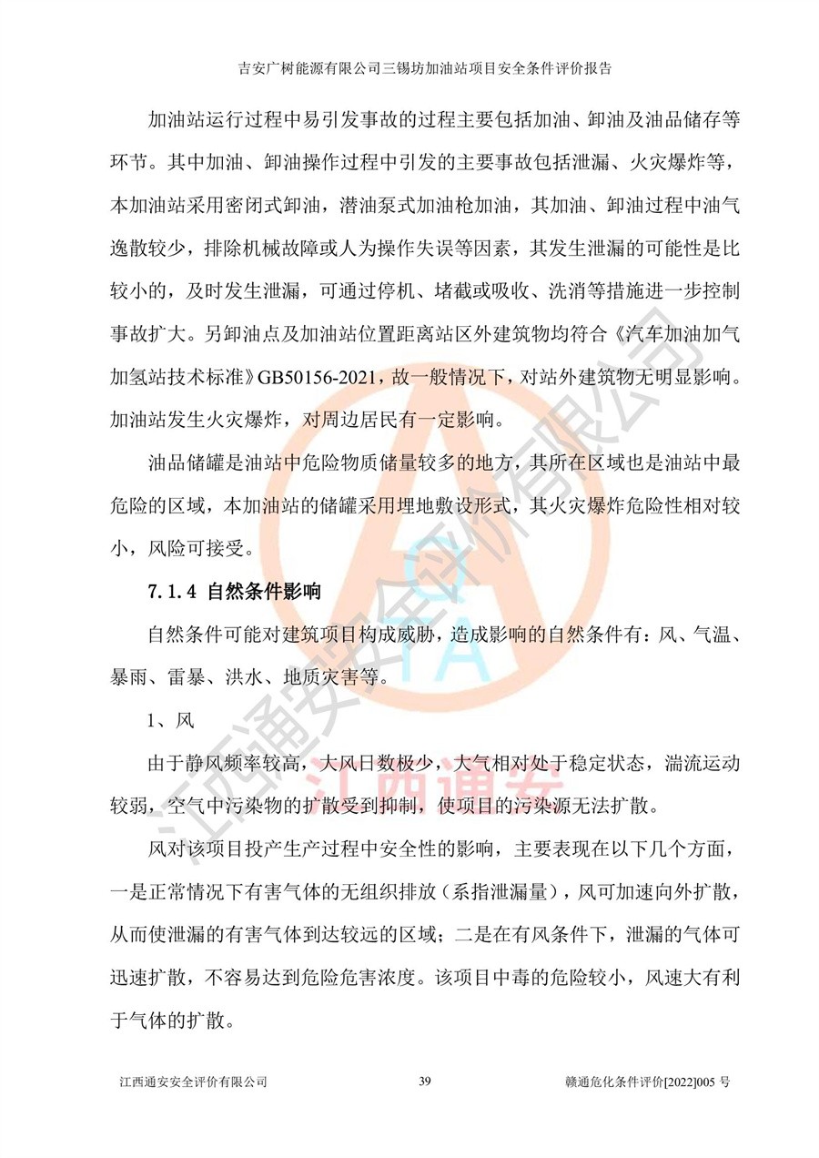 吉安廣樹能源有限公司三錫坊加油站項目安全條件評價報告