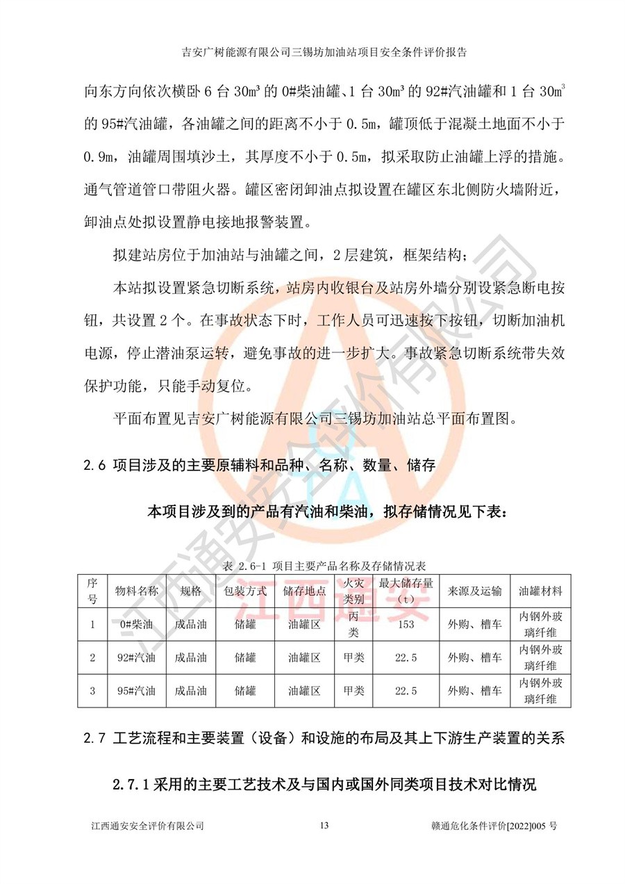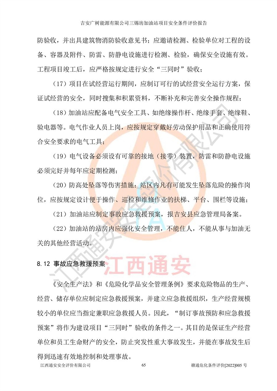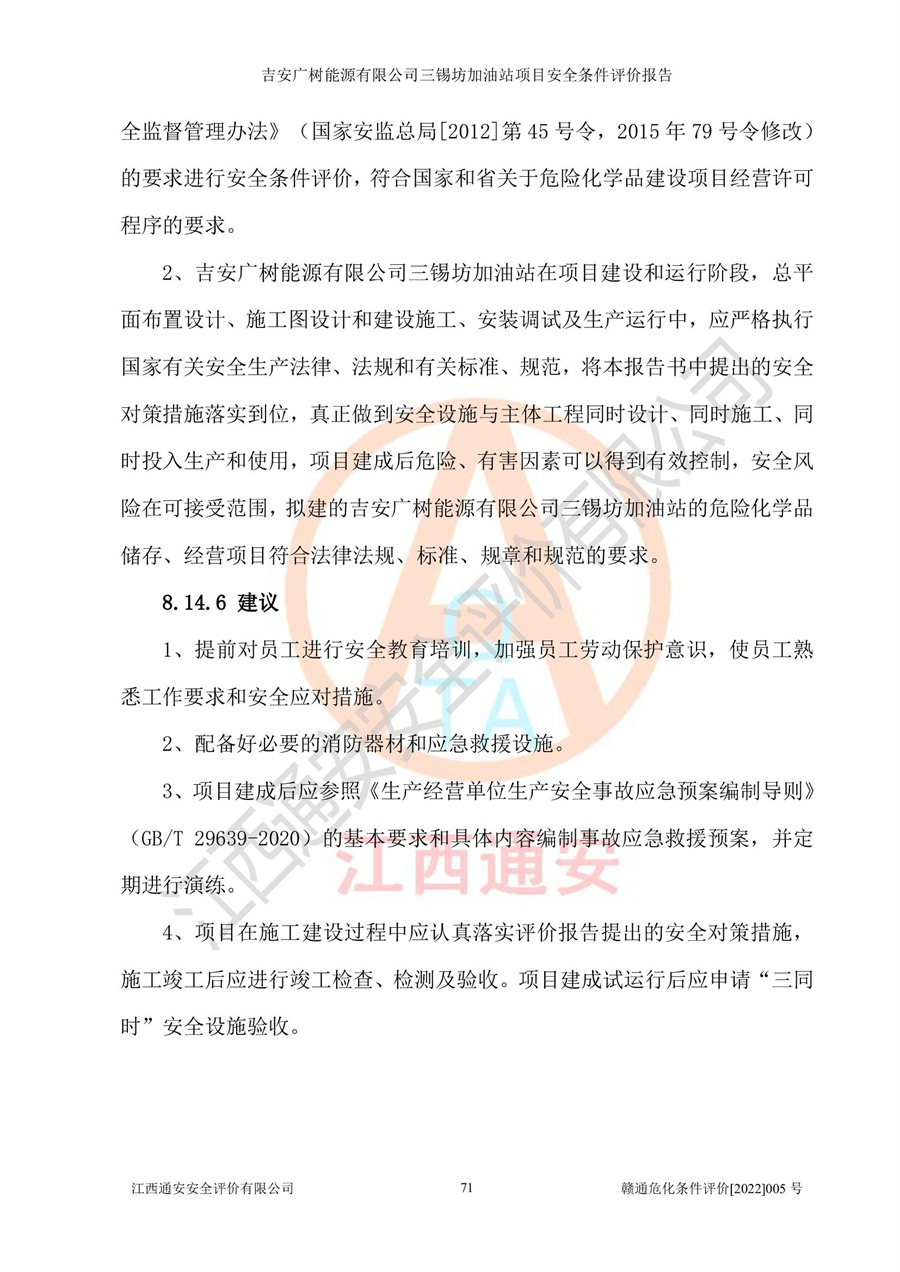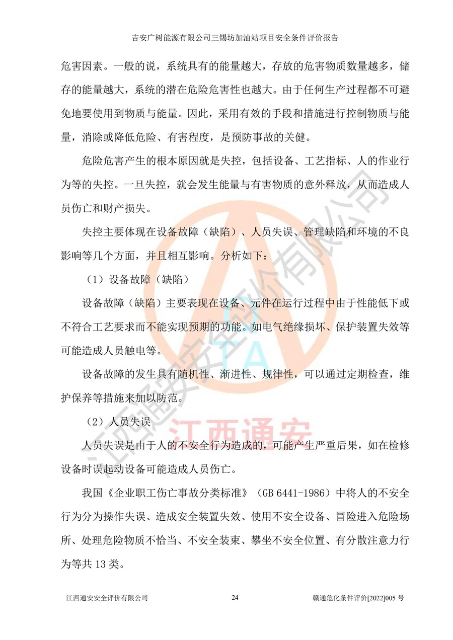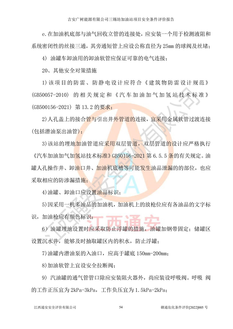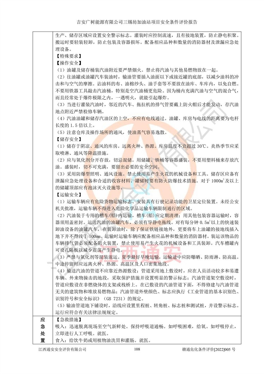 吉安廣樹能源有限公司三錫坊加油站項目安全條件評價報告