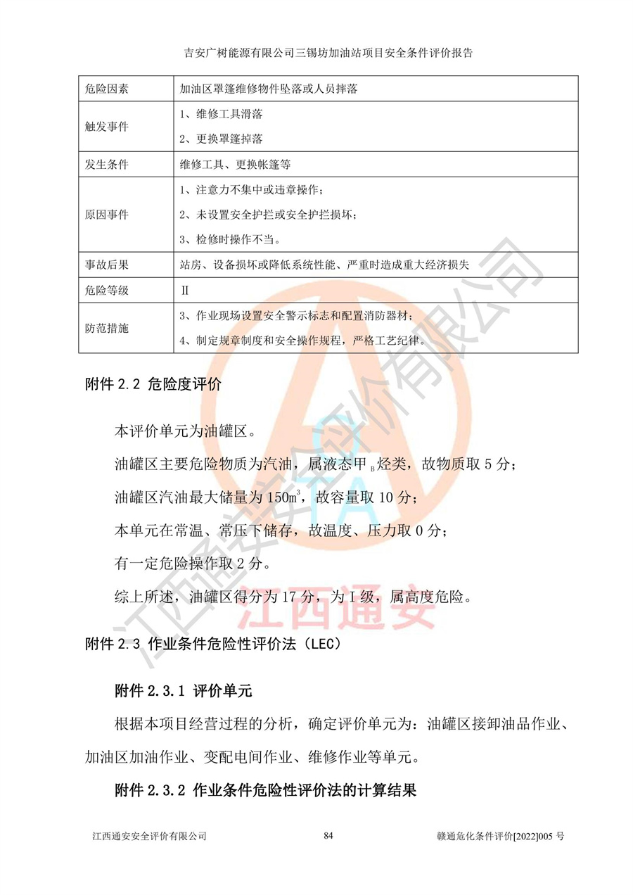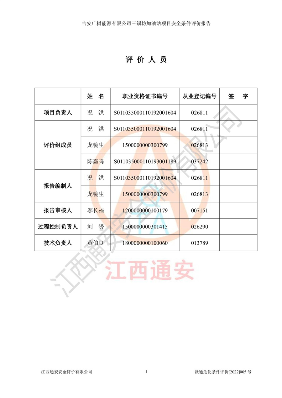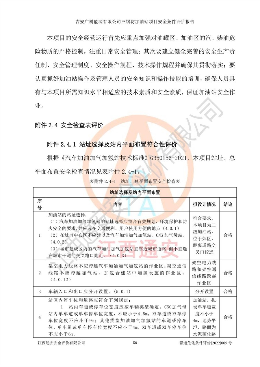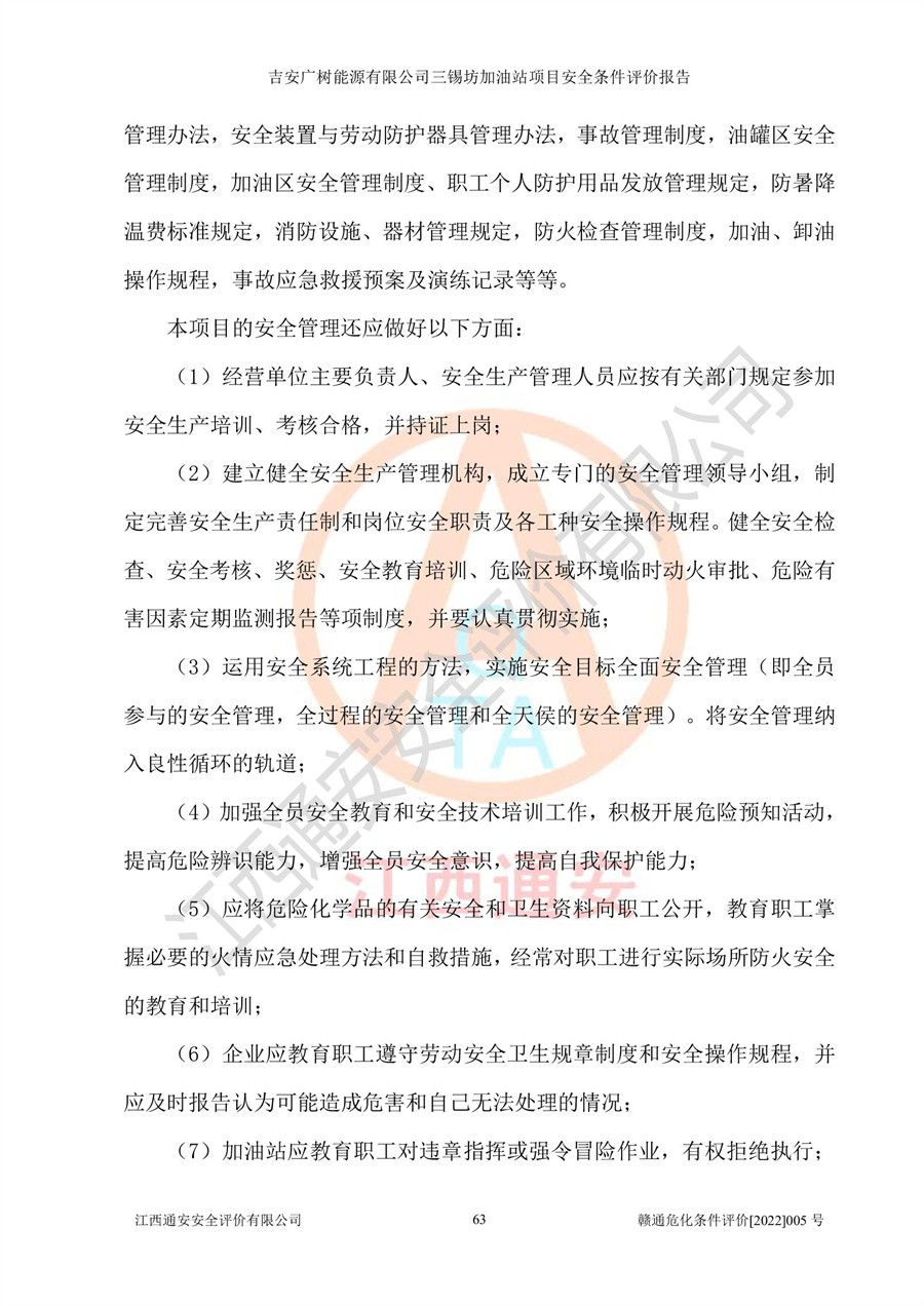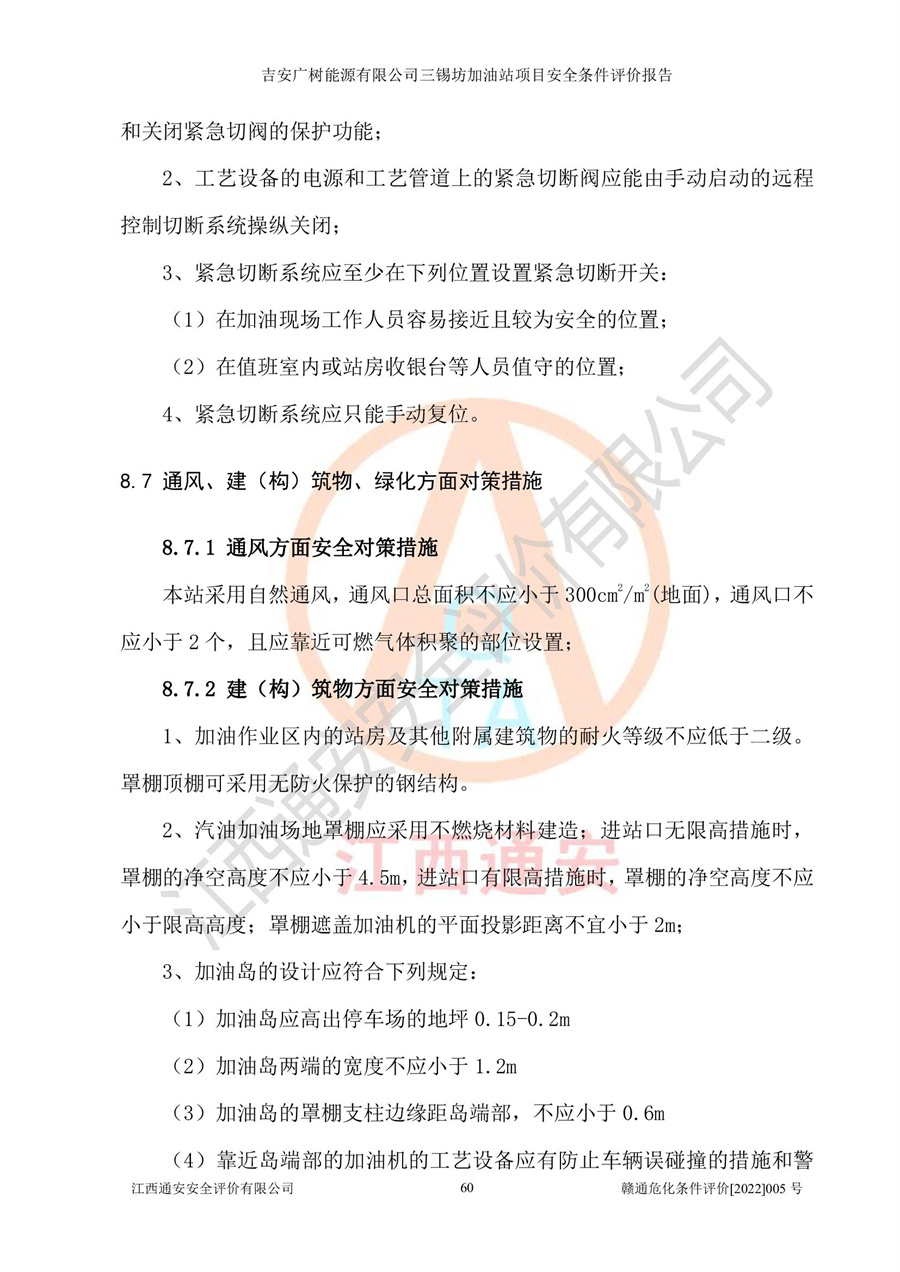 吉安廣樹能源有限公司三錫坊加油站項目安全條件評價報告