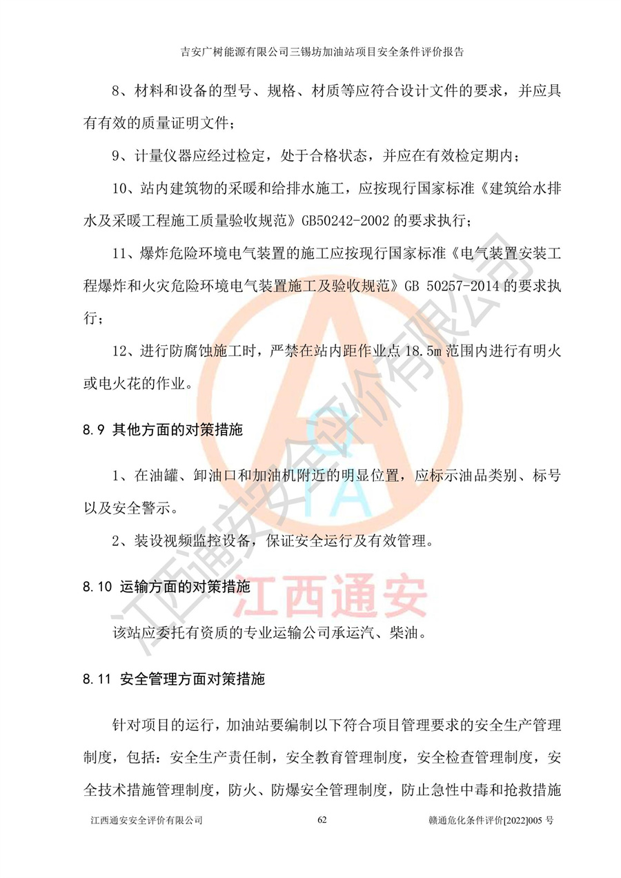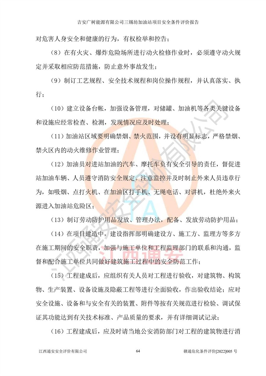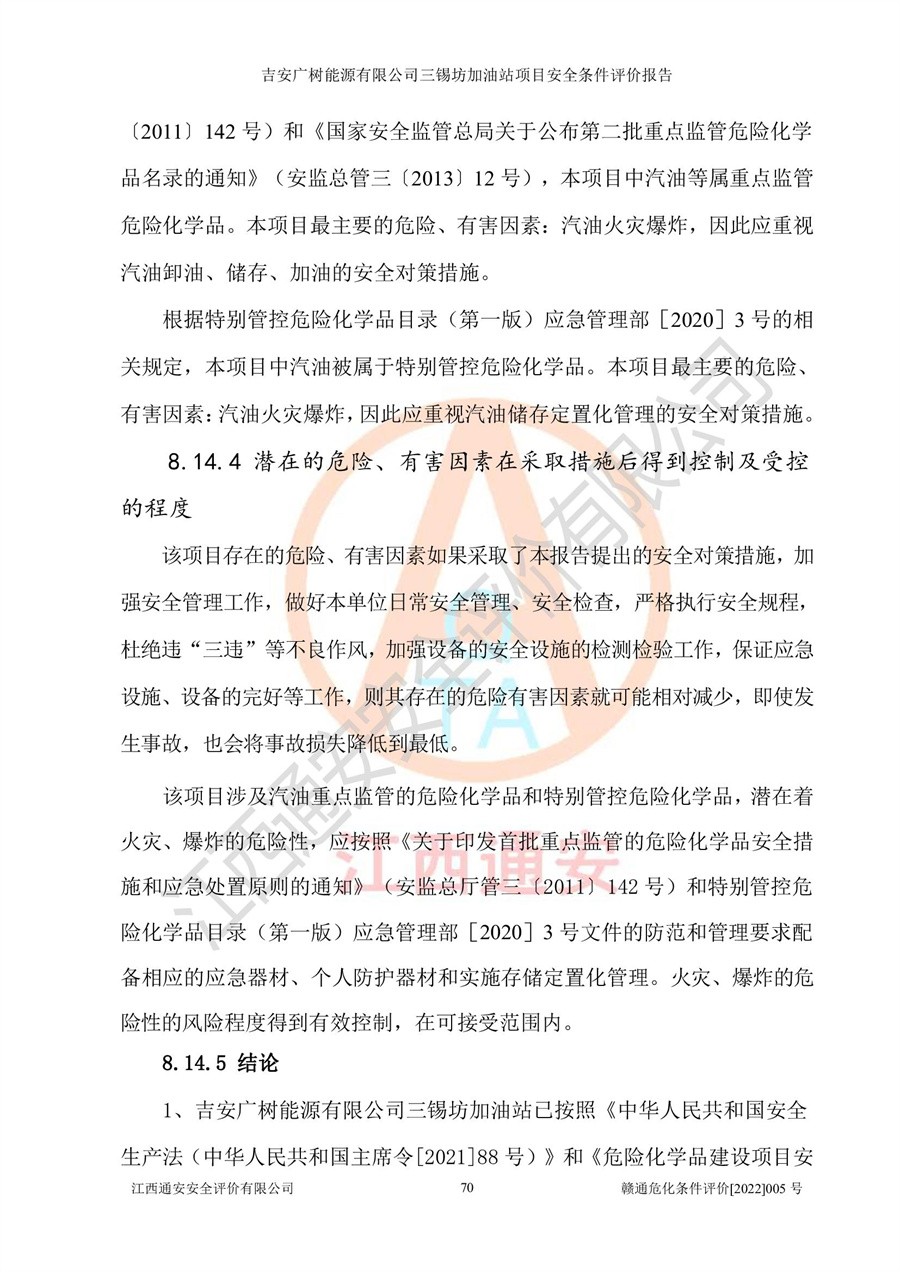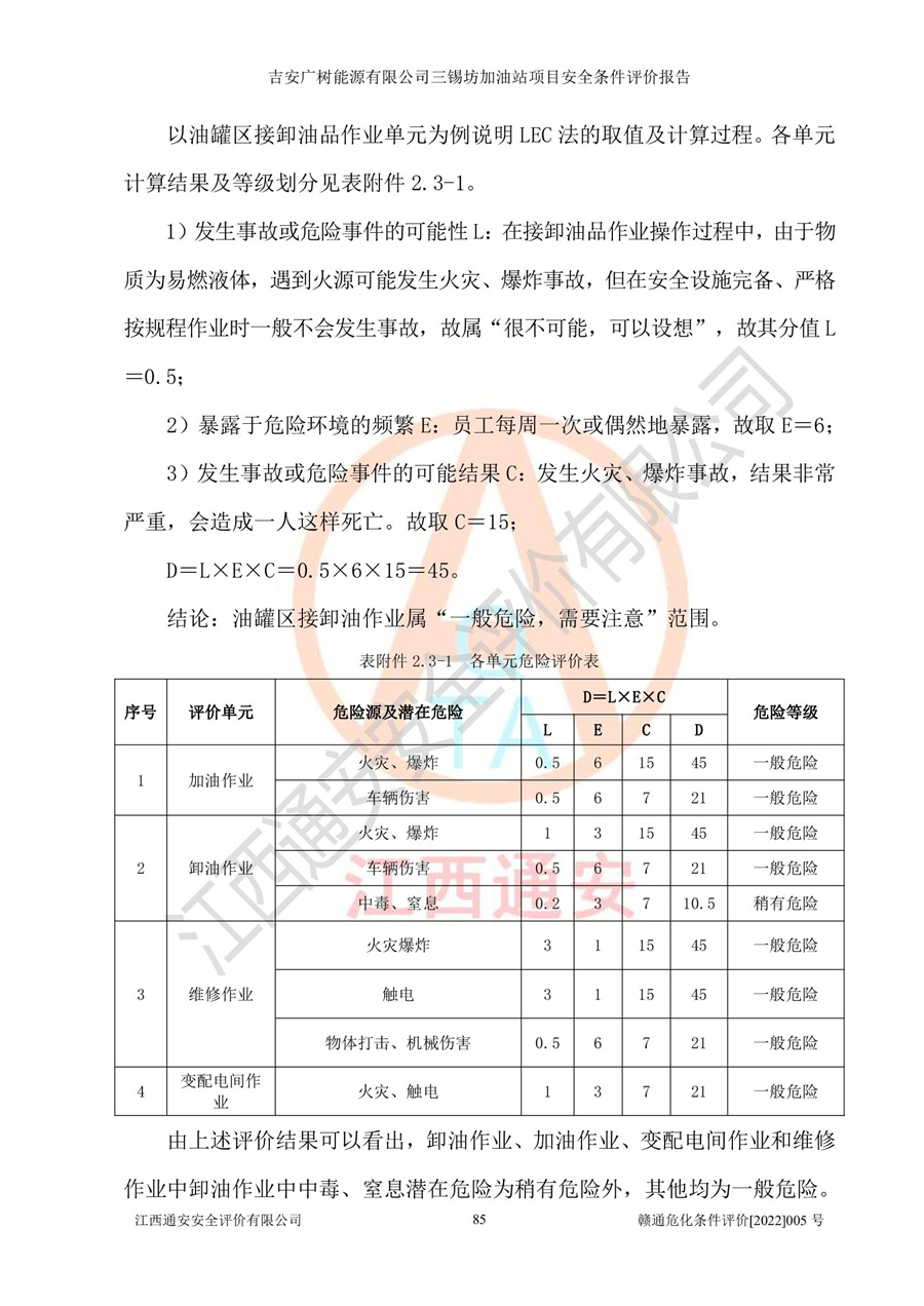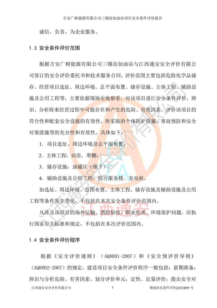 吉安廣樹能源有限公司三錫坊加油站項目安全條件評價報告