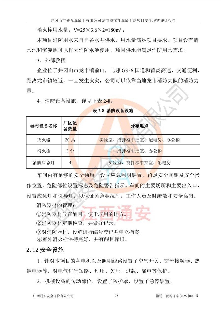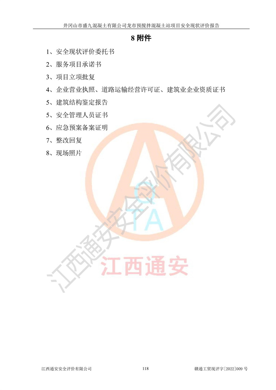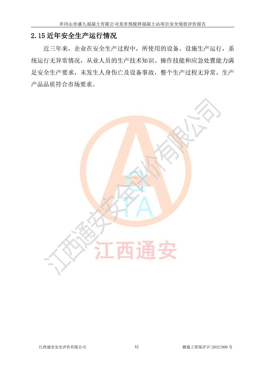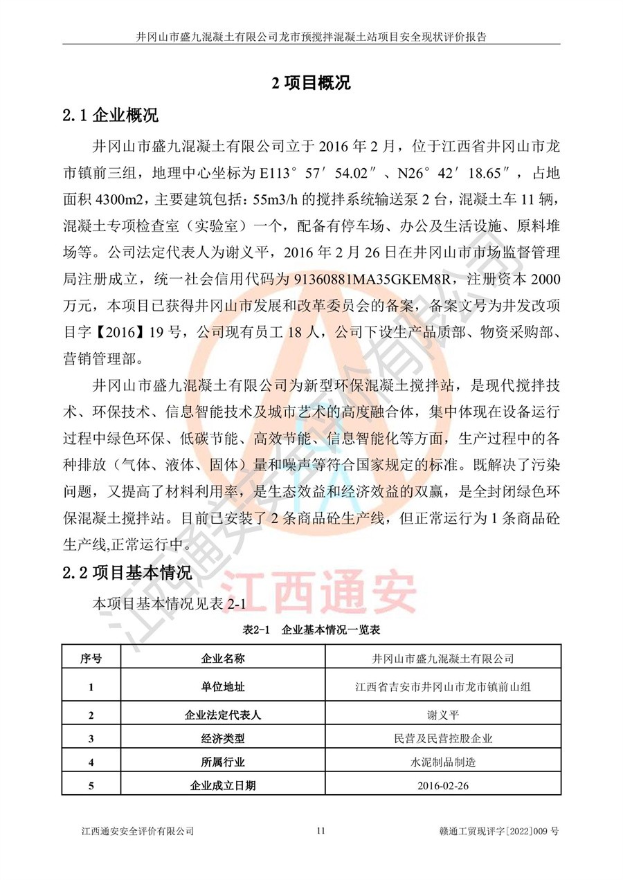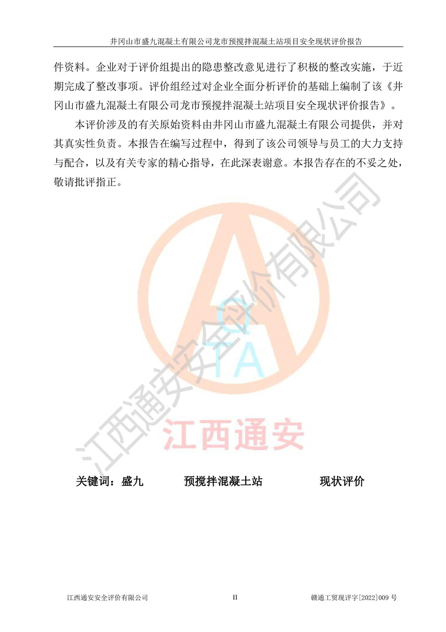 井岡山市盛九混凝土有限公司龍市預(yù)攪拌混凝土站項目安全現(xiàn)狀評價報告