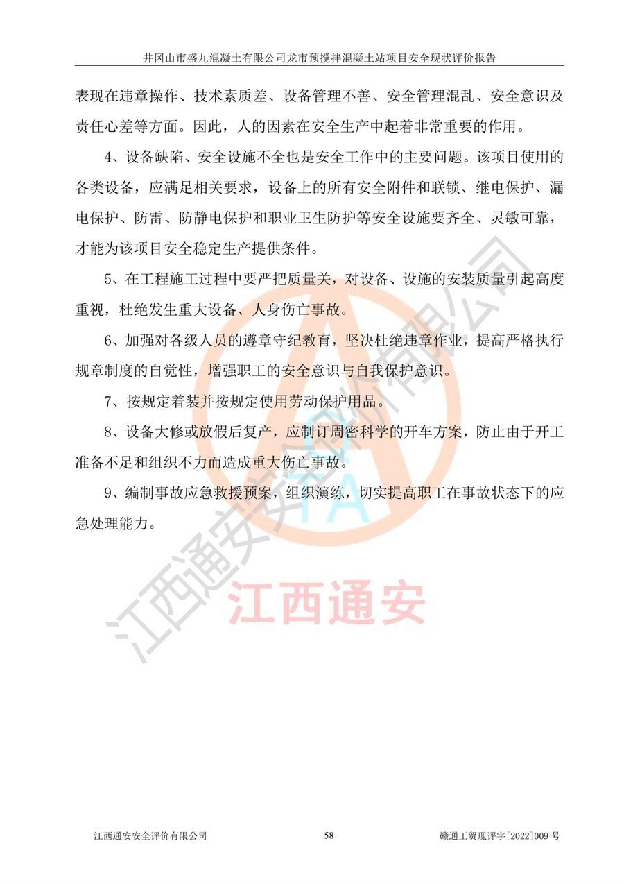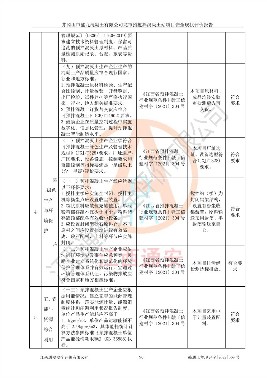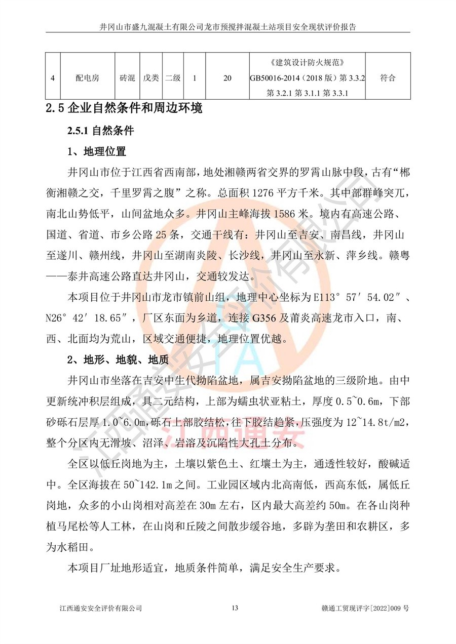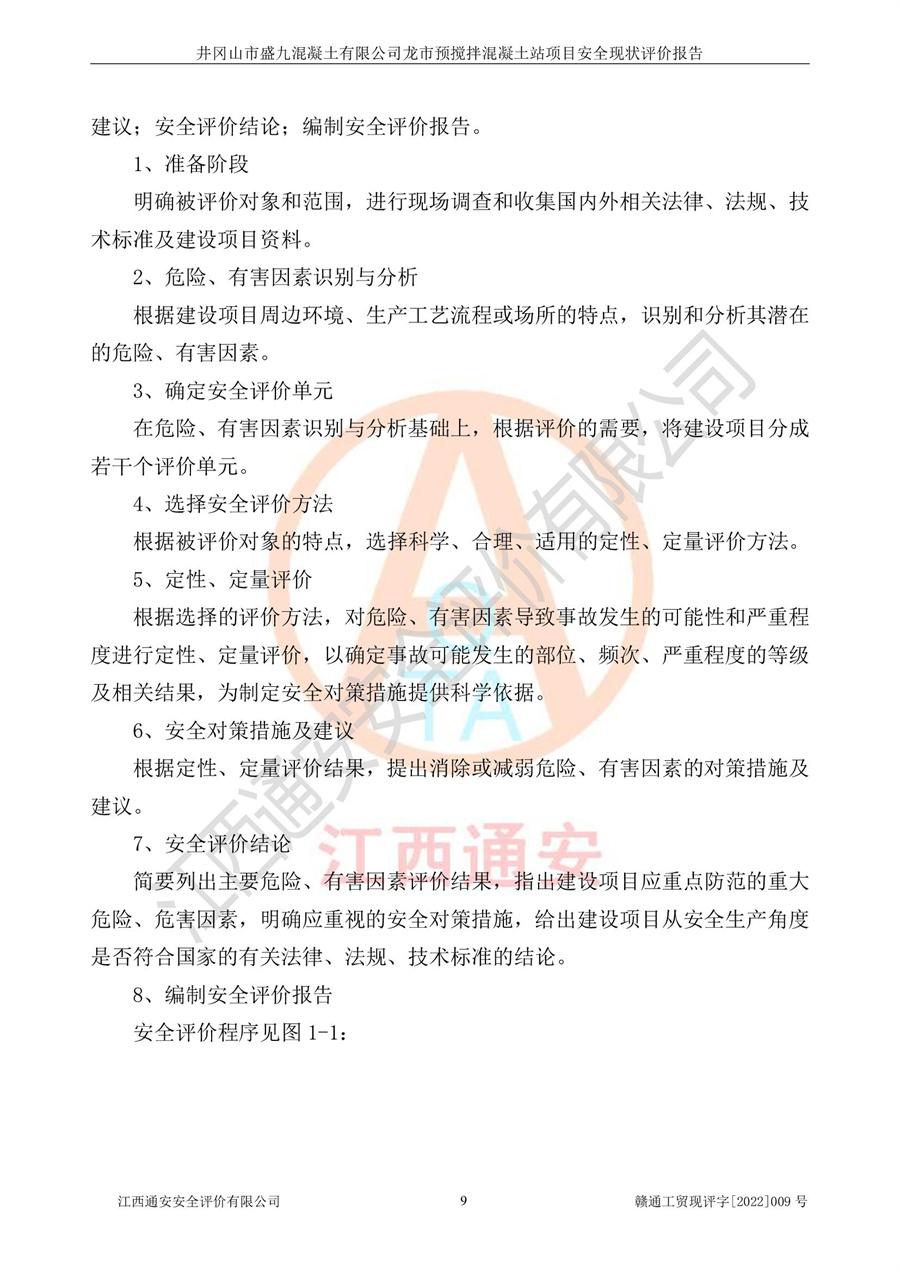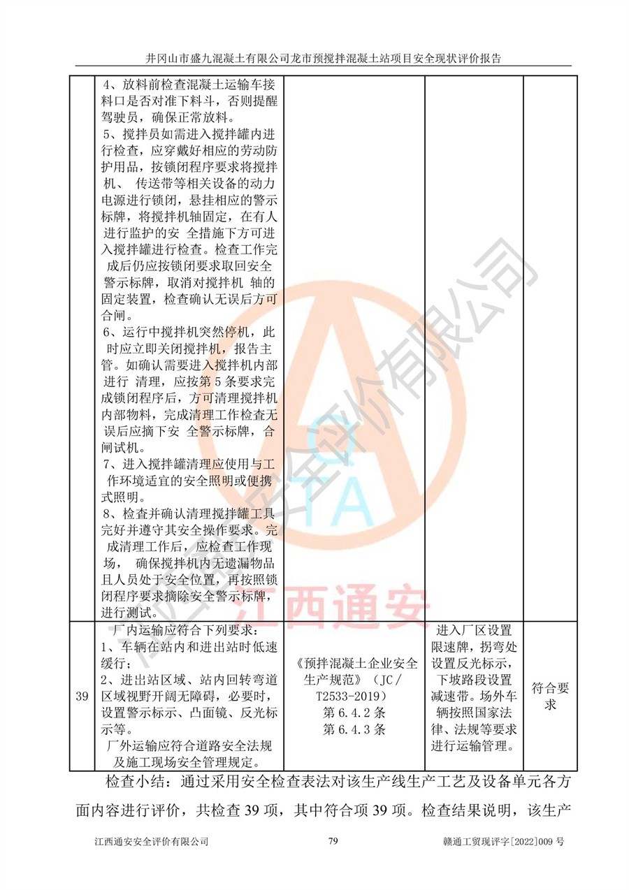 井岡山市盛九混凝土有限公司龍市預(yù)攪拌混凝土站項目安全現(xiàn)狀評價報告